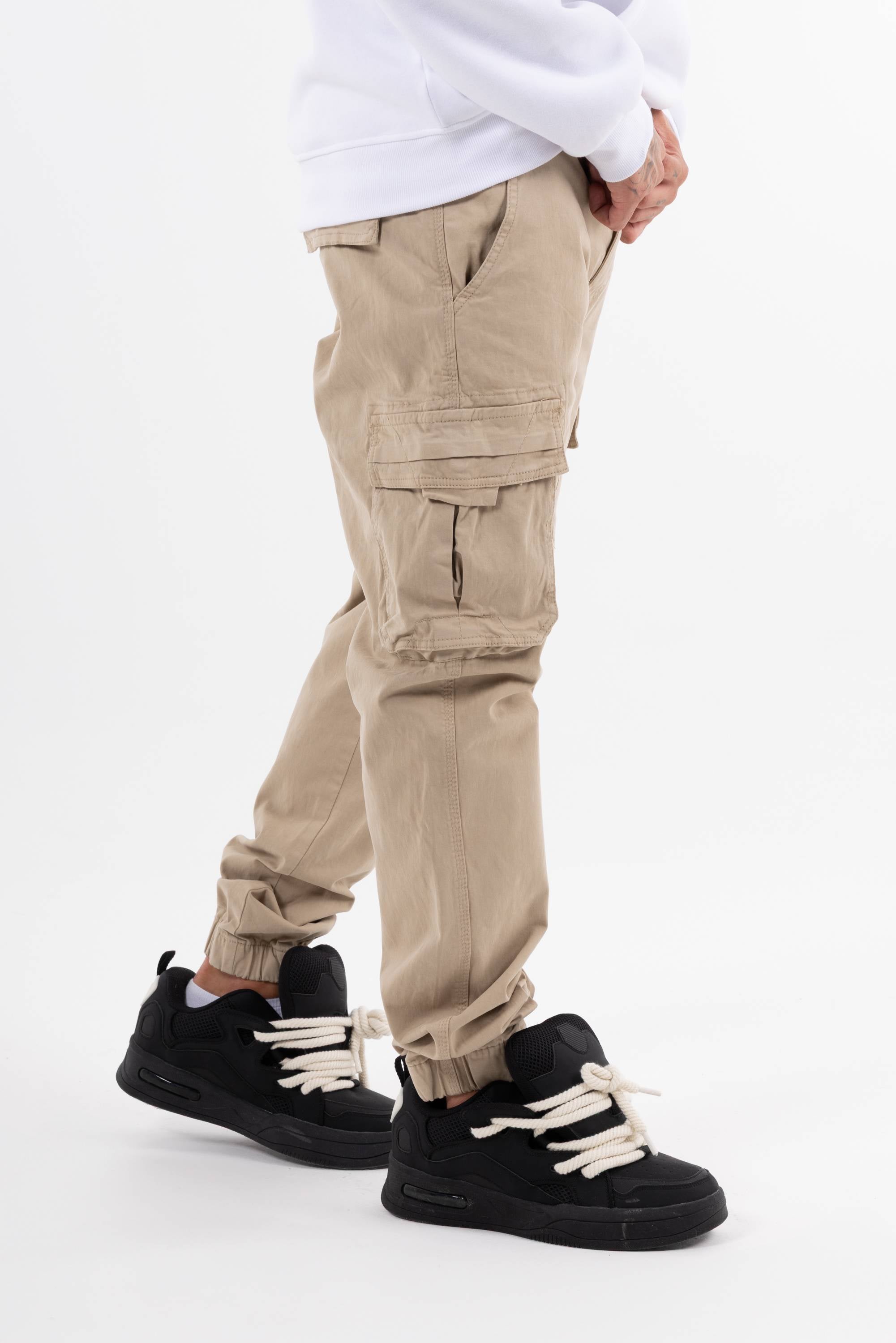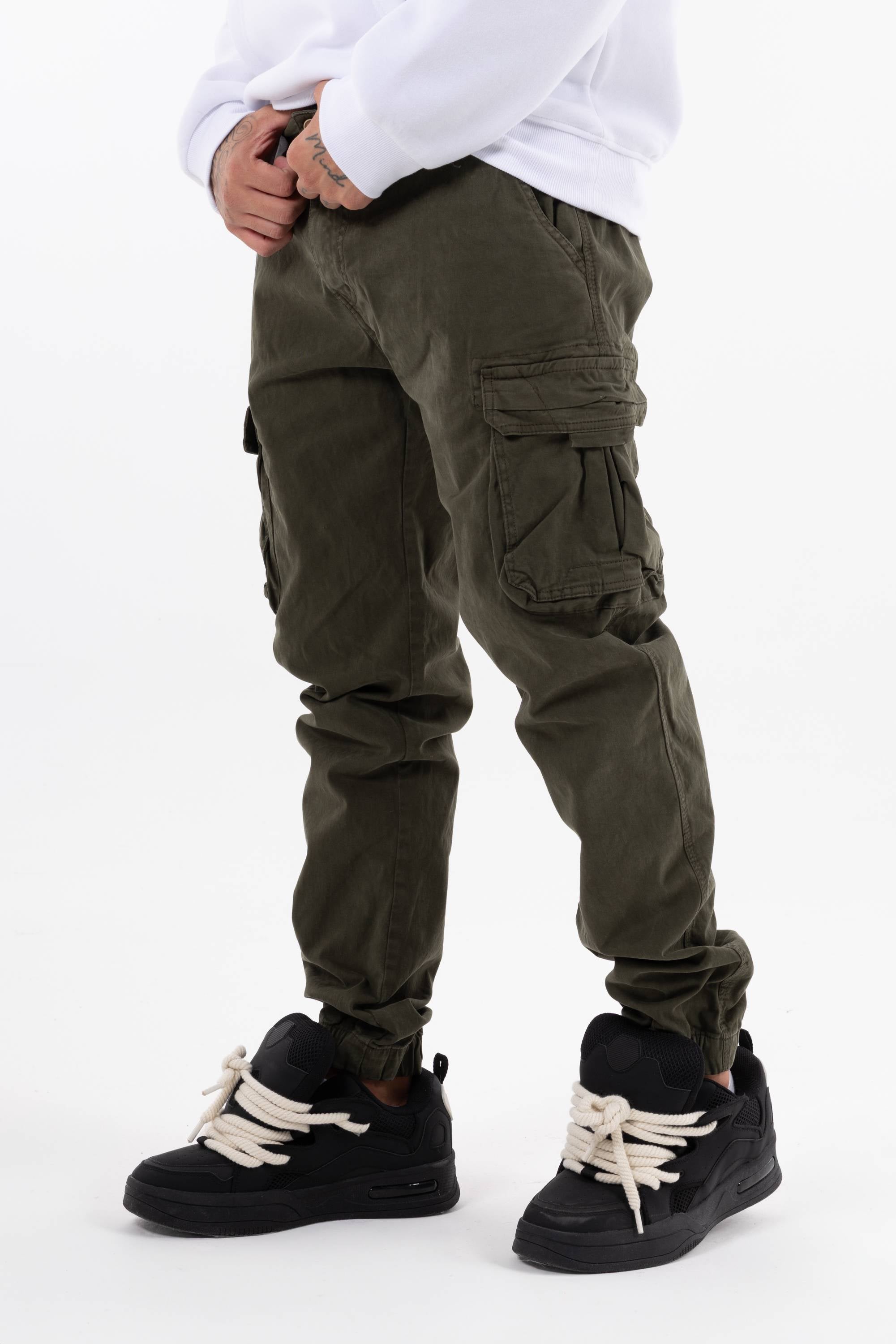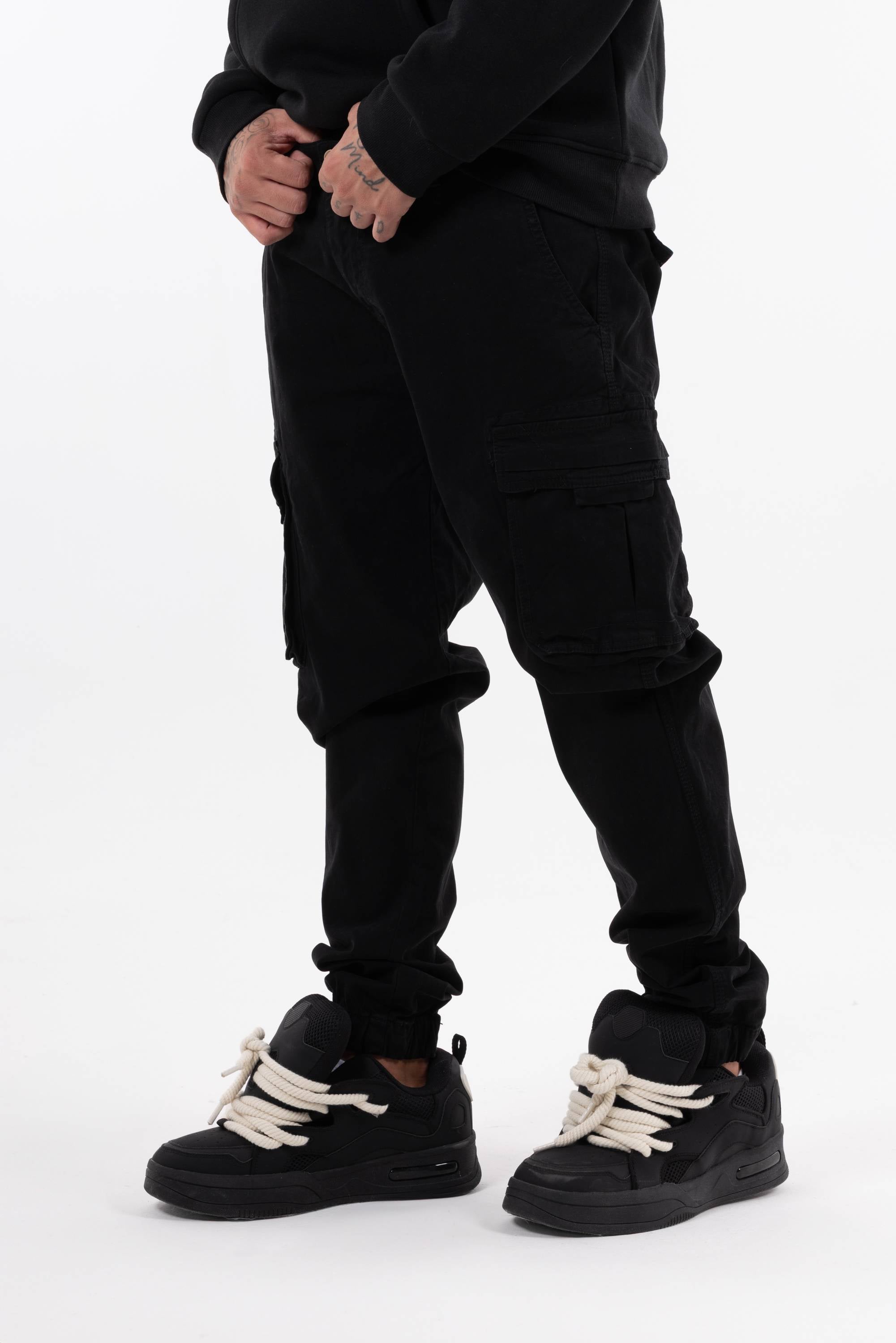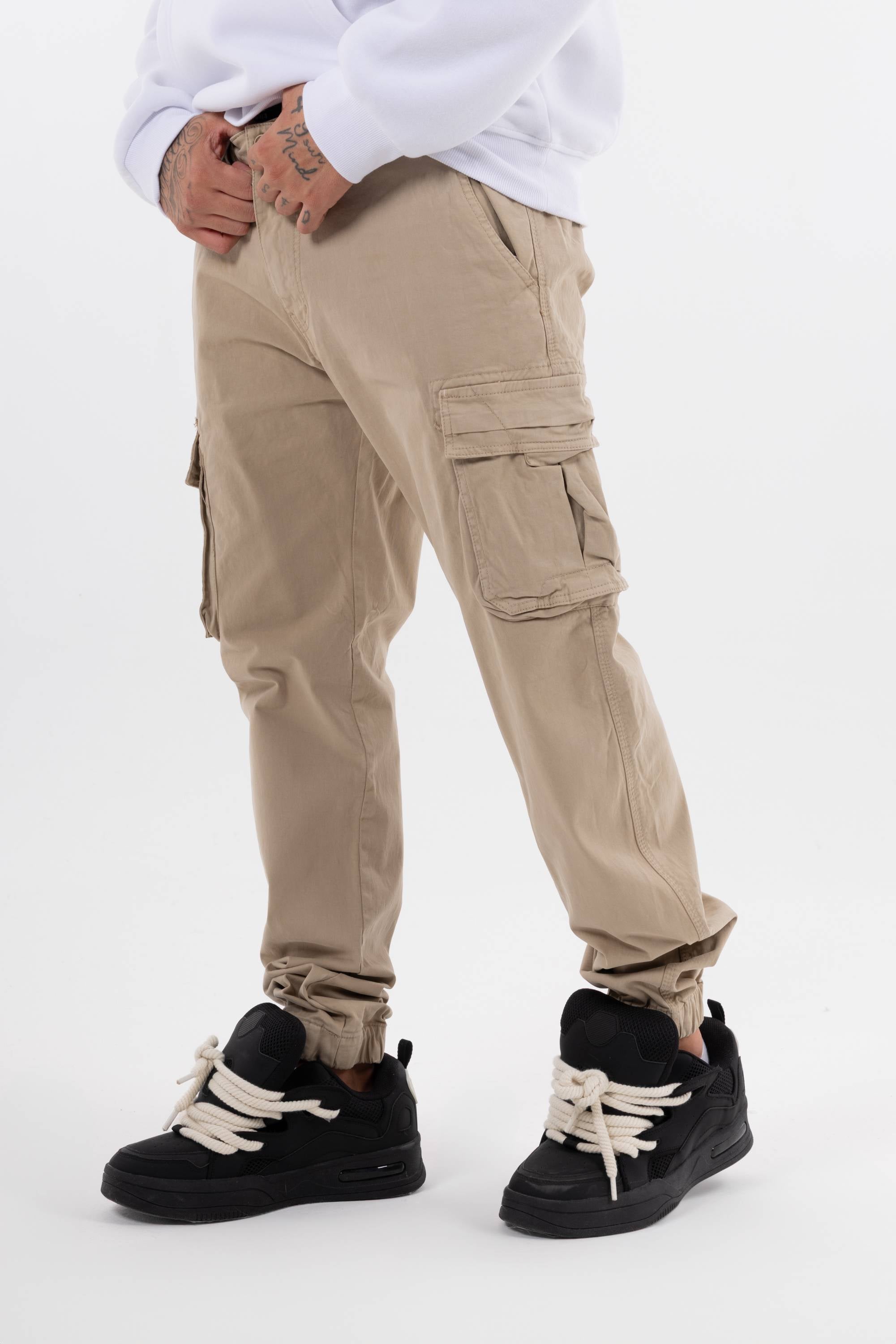Pantaloni cargo con tasconi laterali e fondo con elastico alle caviglie. Un capo comodo e di tendenza ideale per un look dinamico e contemporaneo.Un capo versatile che coniuga comfort e stile.