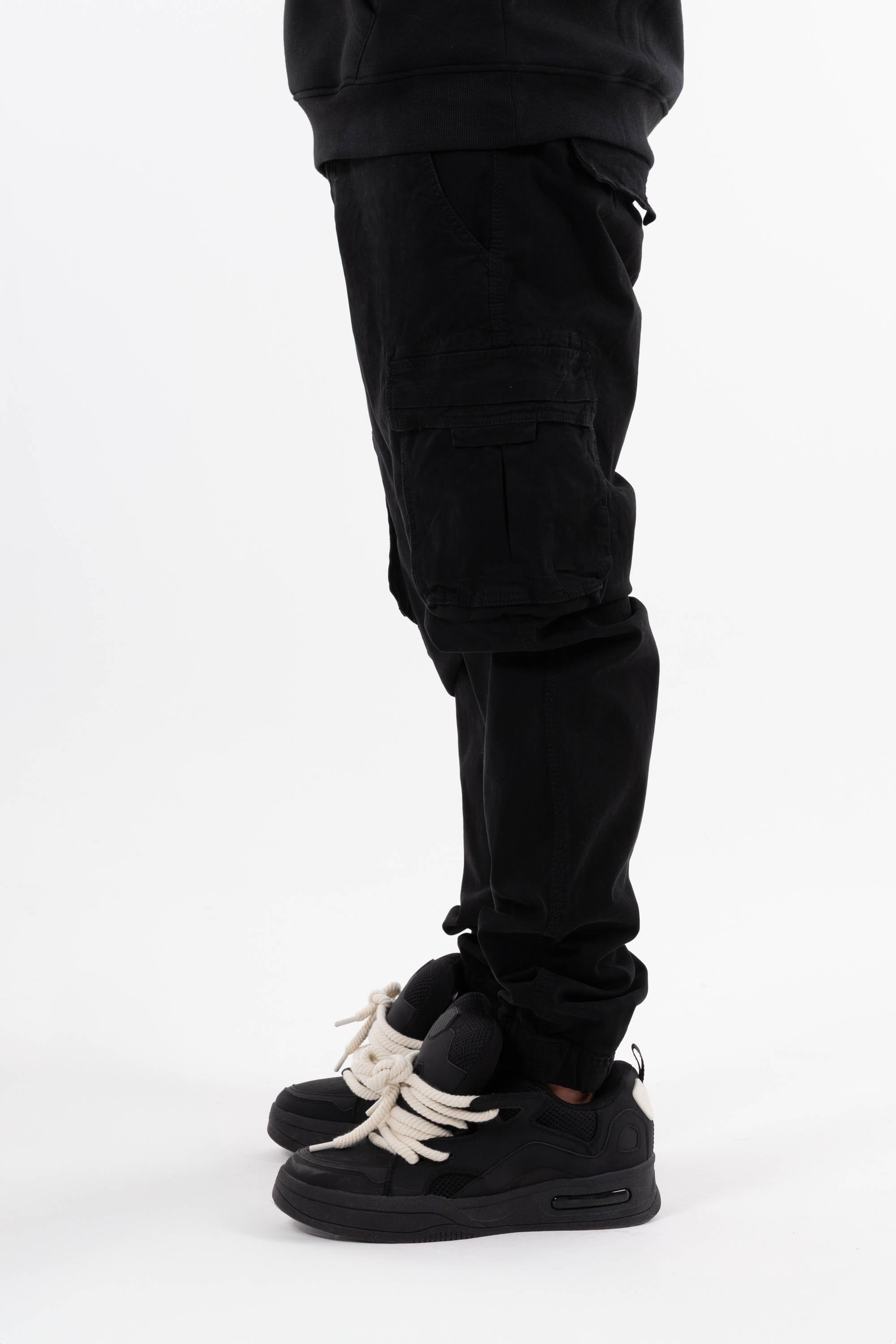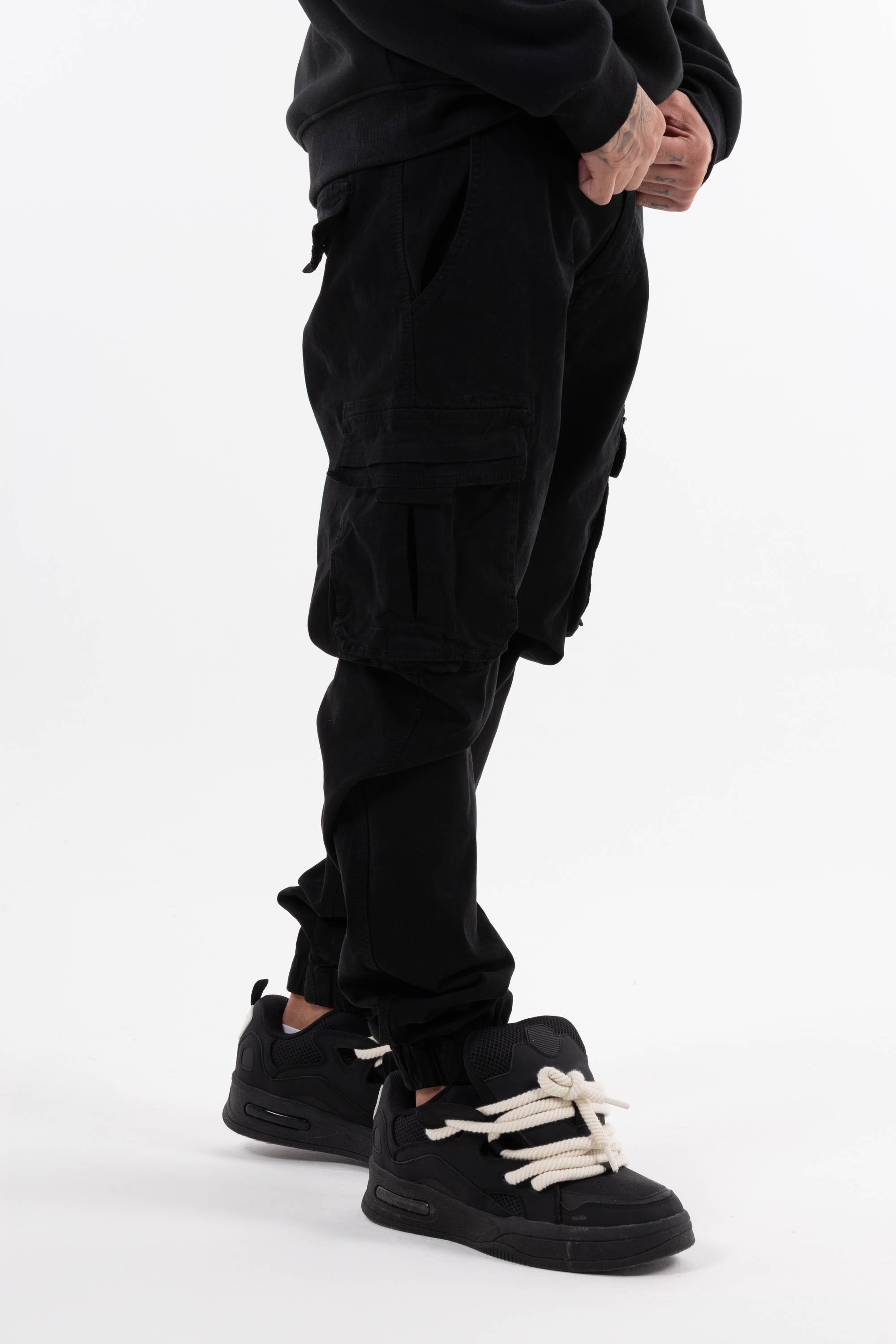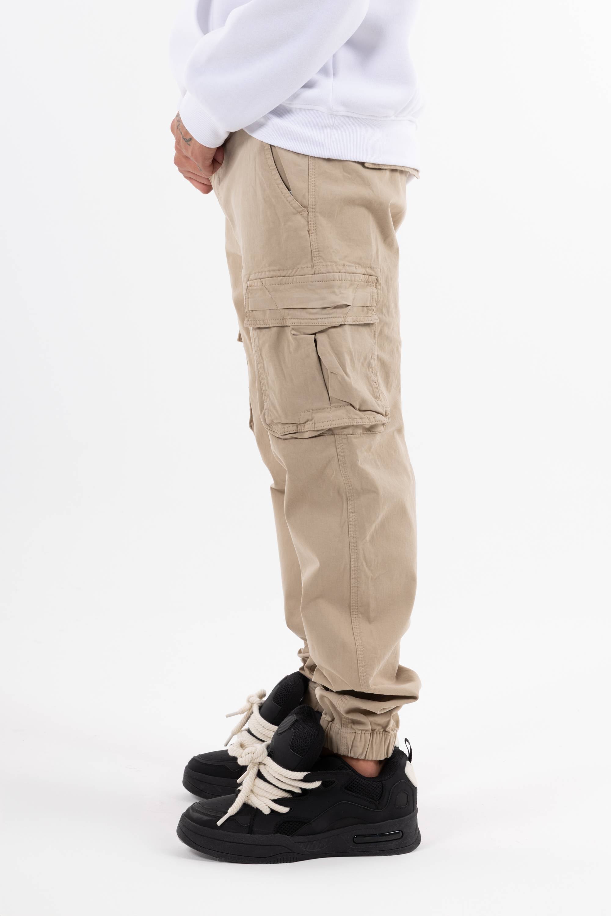 Pantaloni cargo con tasconi laterali e fondo con elastico alle caviglie. Un capo comodo e di tendenza ideale per un look dinamico e contemporaneo.Un capo versatile che coniuga comfort e stile.