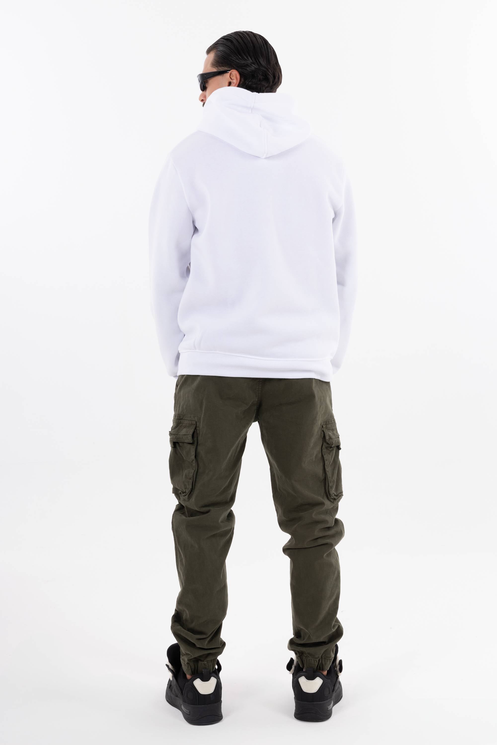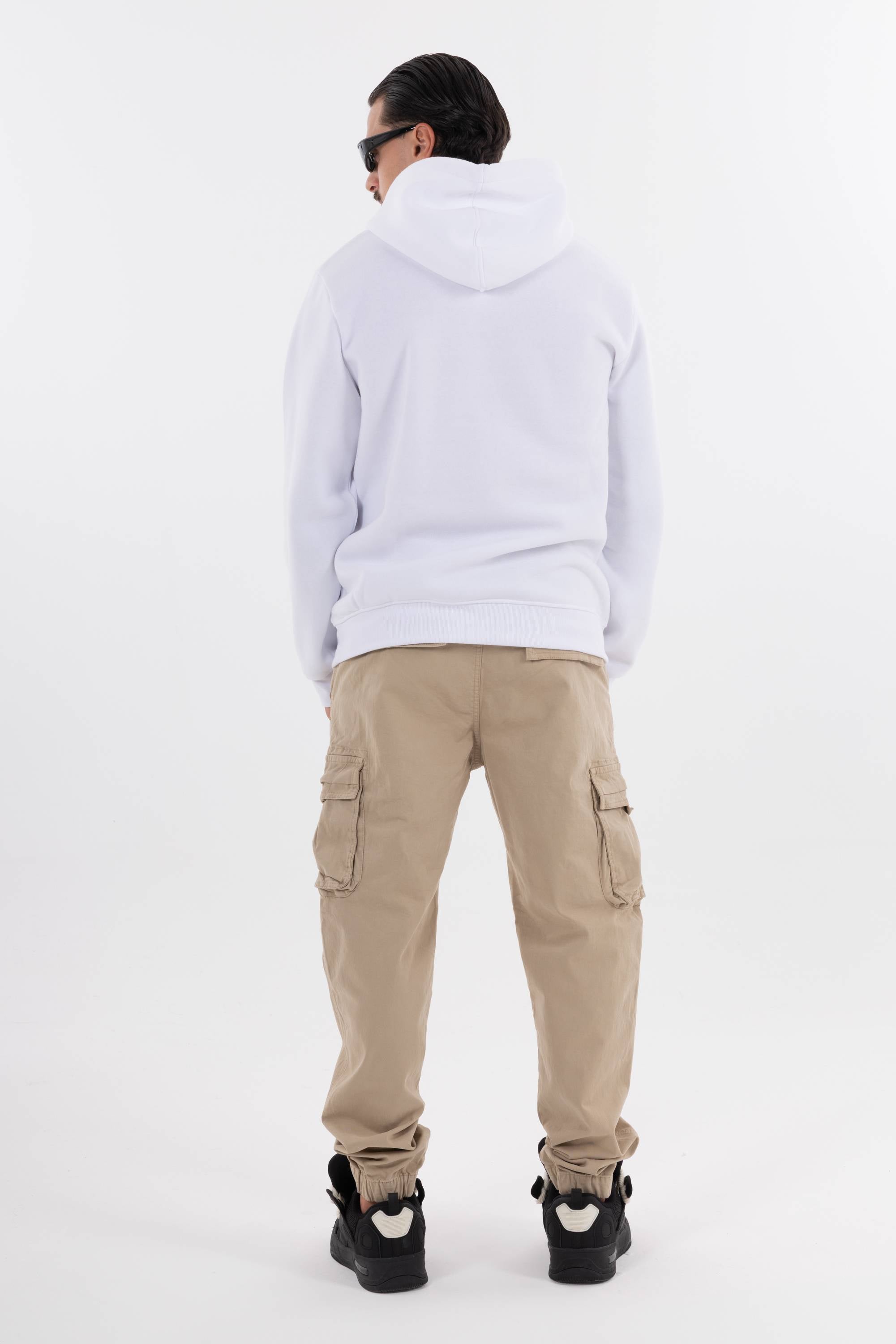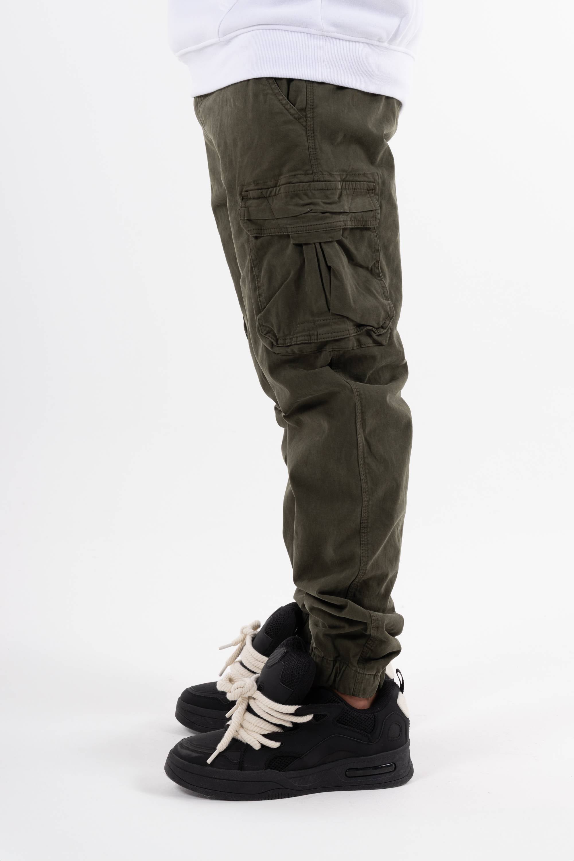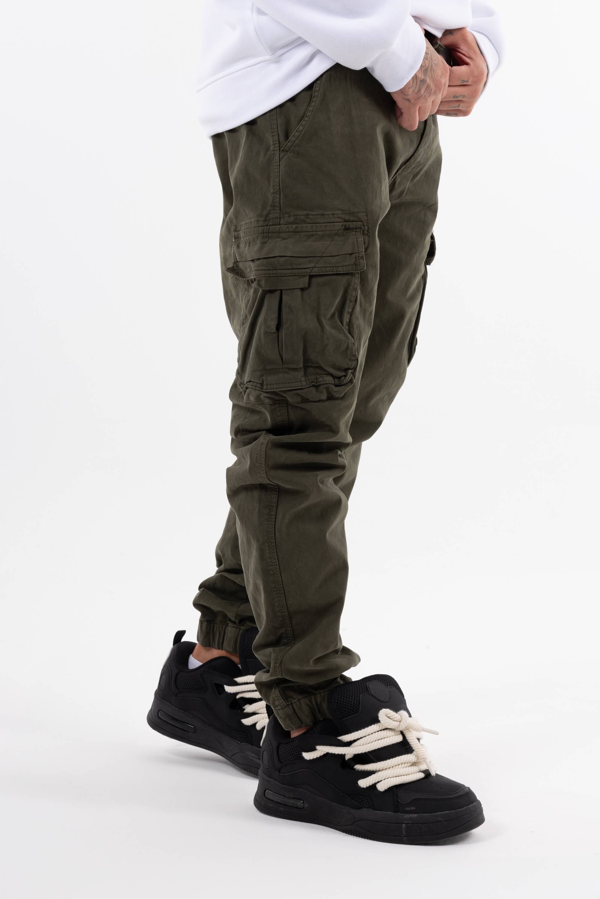 Pantaloni cargo con tasconi laterali e fondo con elastico alle caviglie. Un capo comodo e di tendenza ideale per un look dinamico e contemporaneo.Un capo versatile che coniuga comfort e stile.