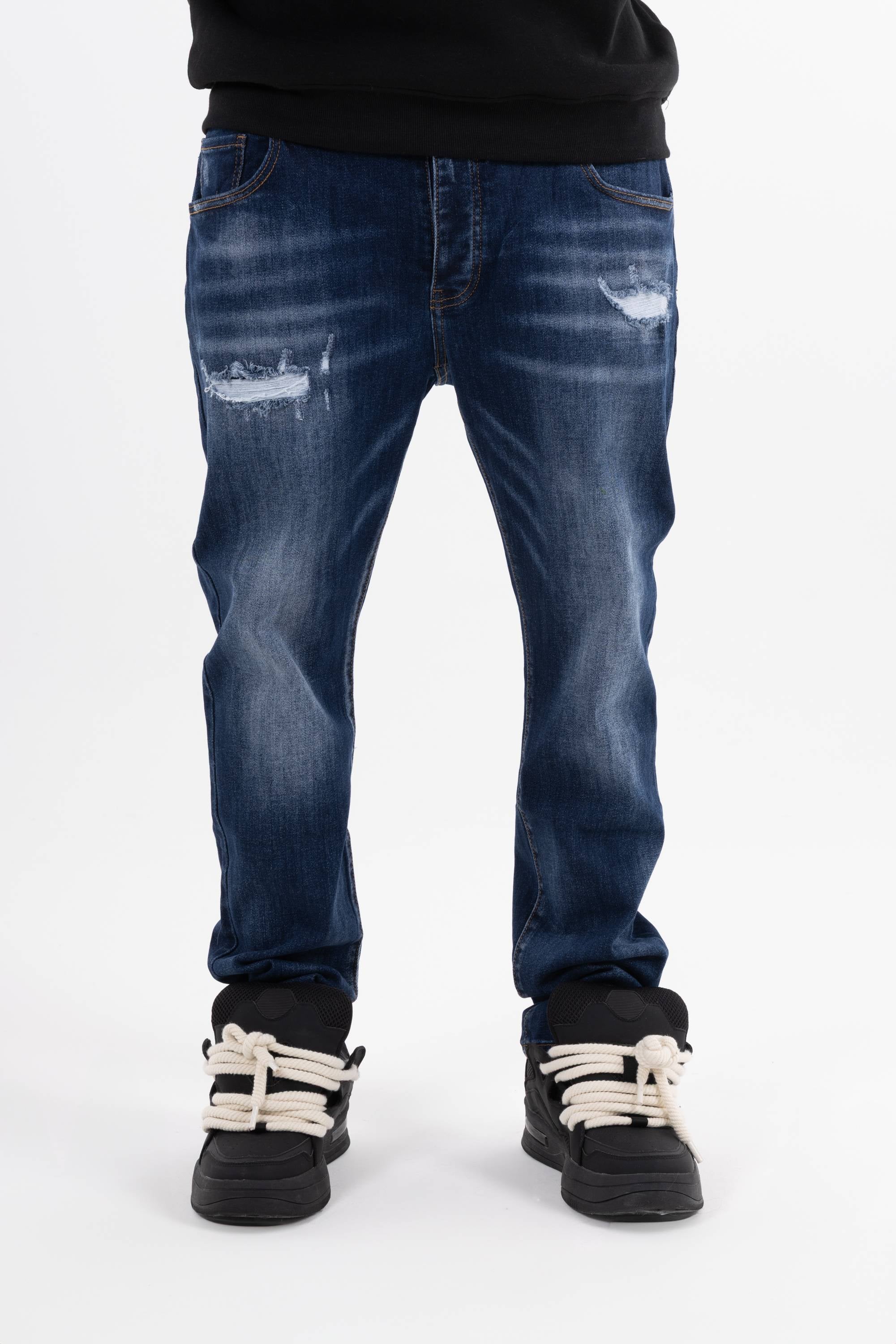 Jeans regular fit con lavaggio scuro e abrasioni per un look grintoso e contemporaneo. Un capo dalcarattere forte ideale per chi ama uno stile metropolitano e distintivo.