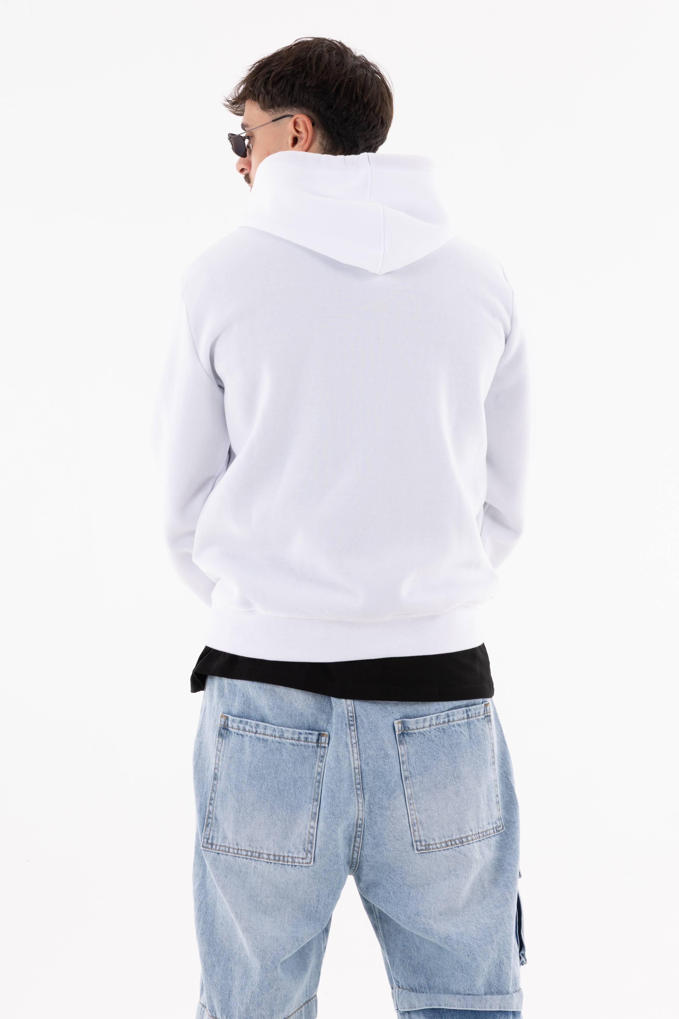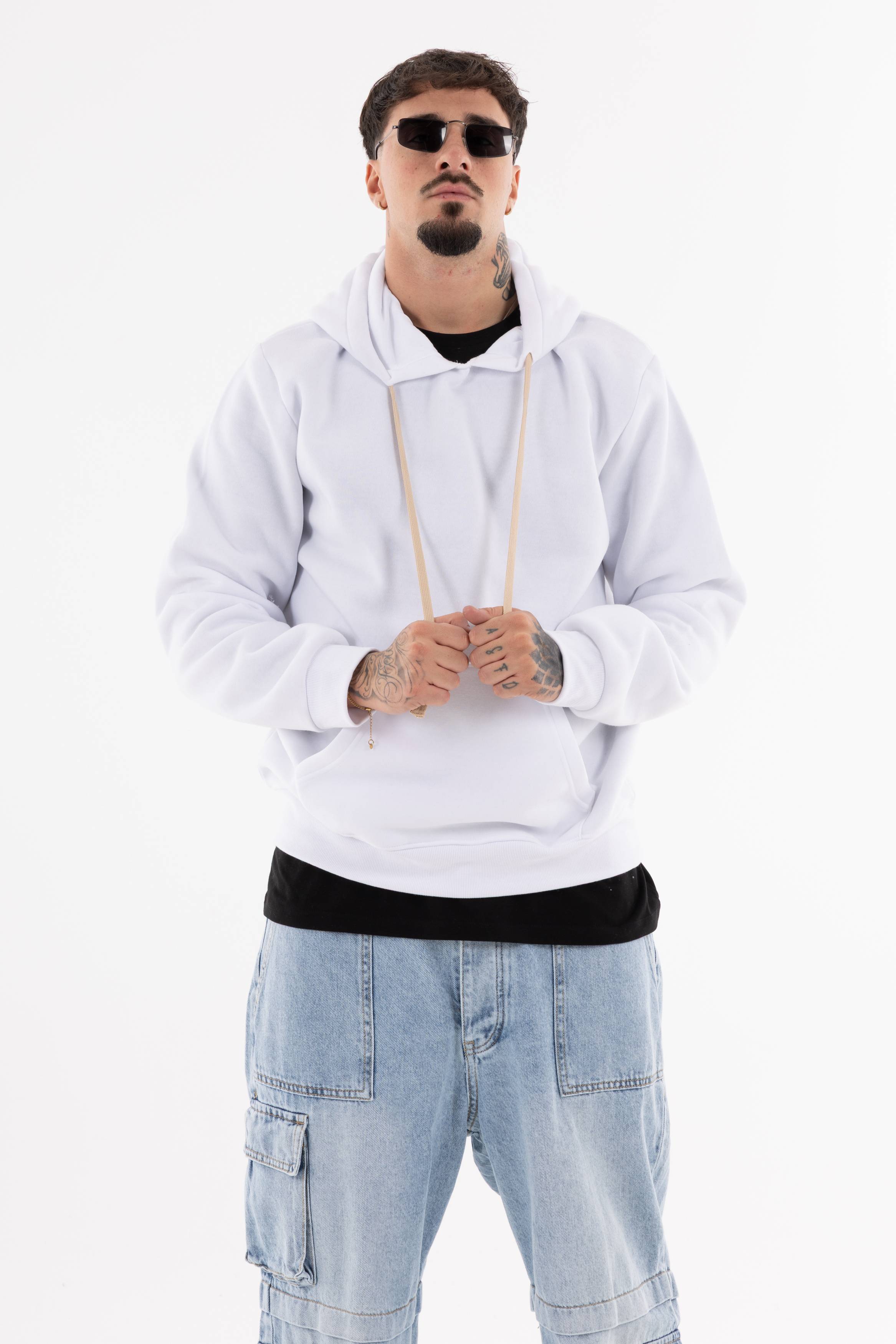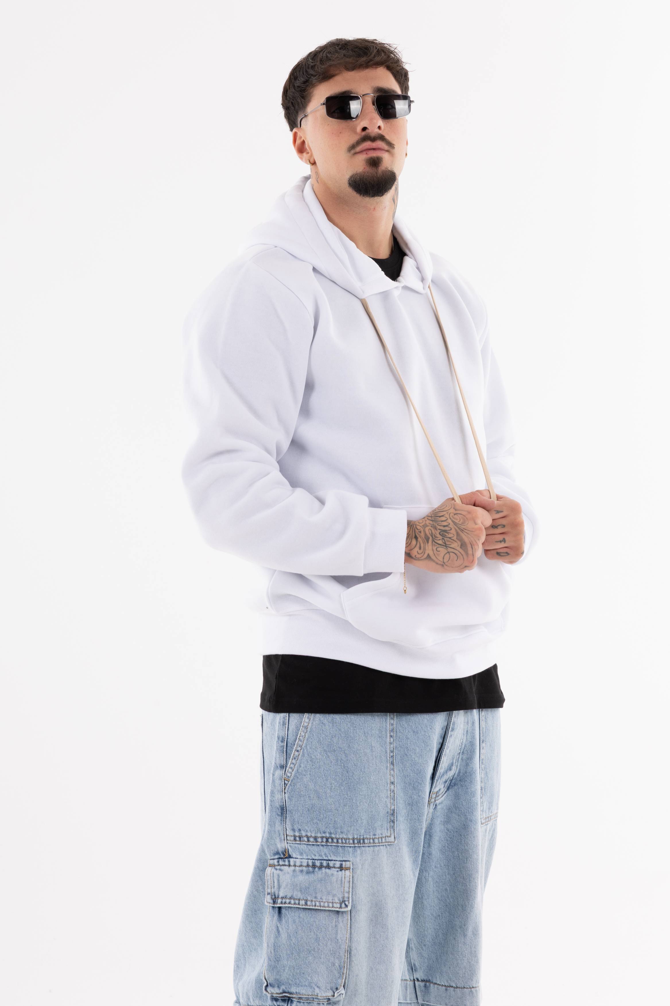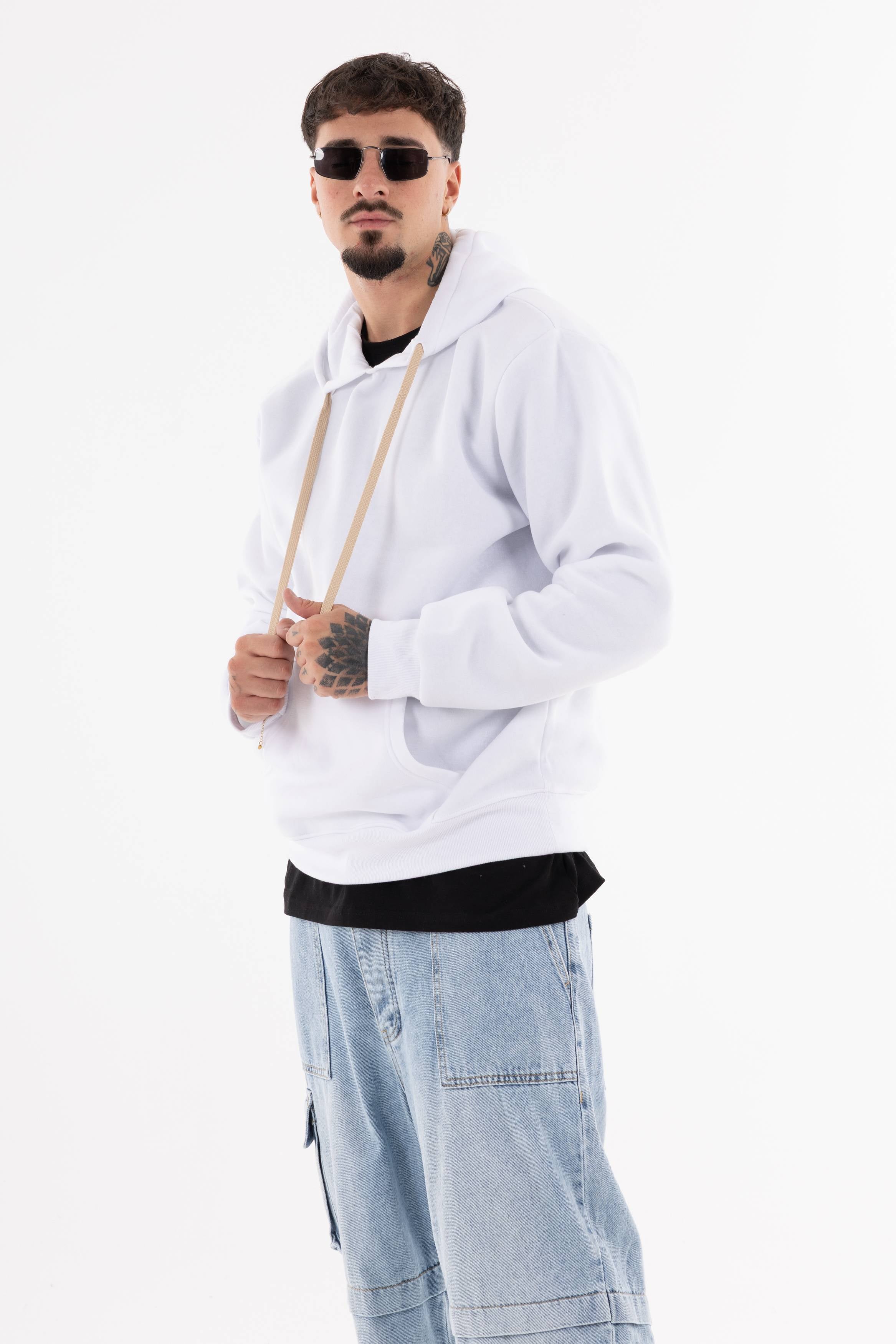 Felpa con cappuccio laccetti a contrasto e tasca frontale a marsupio. Dallo stile casual e versatile, coordinabile ai pantaloni tuta per un completo sportivo comodo e di tendenza.