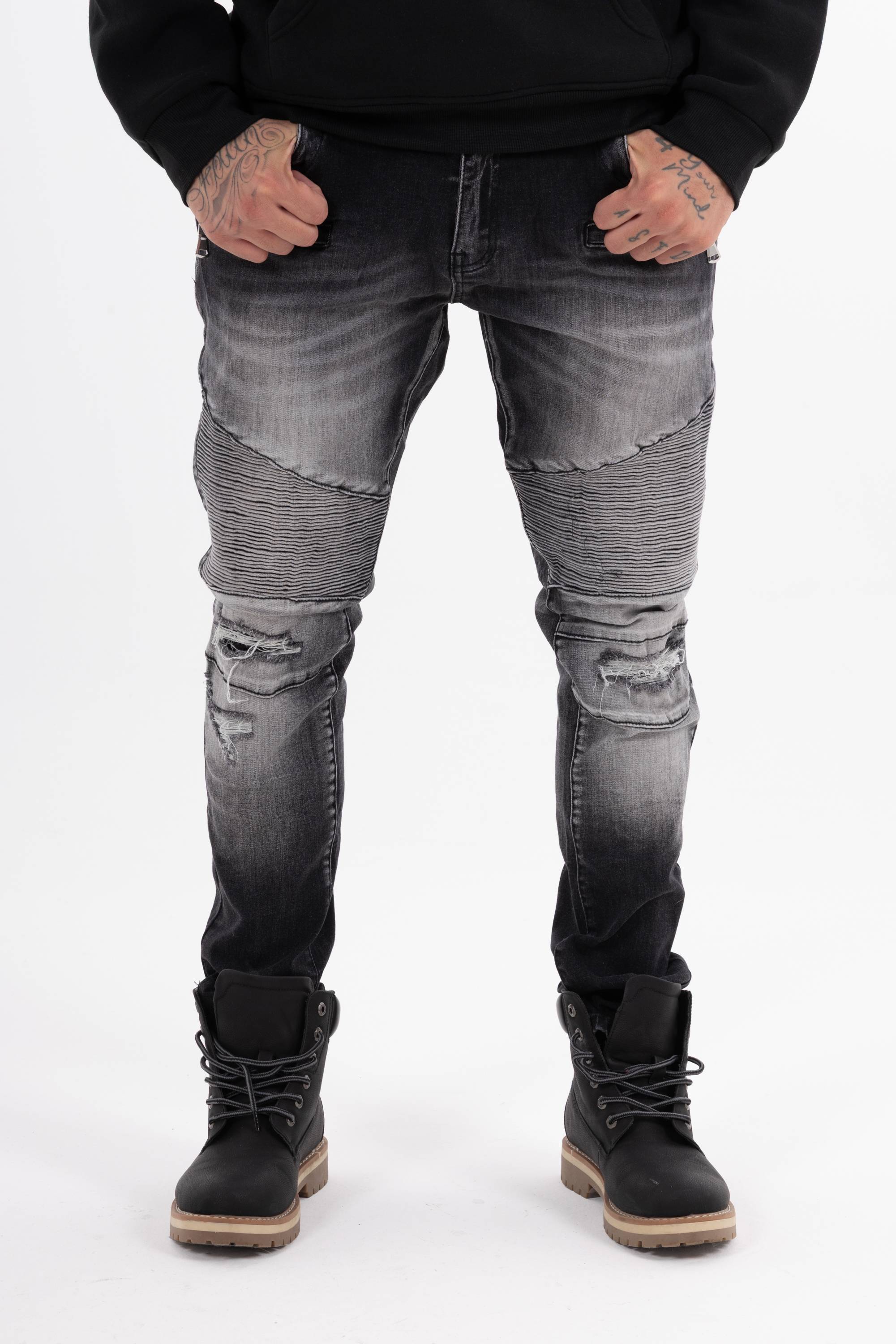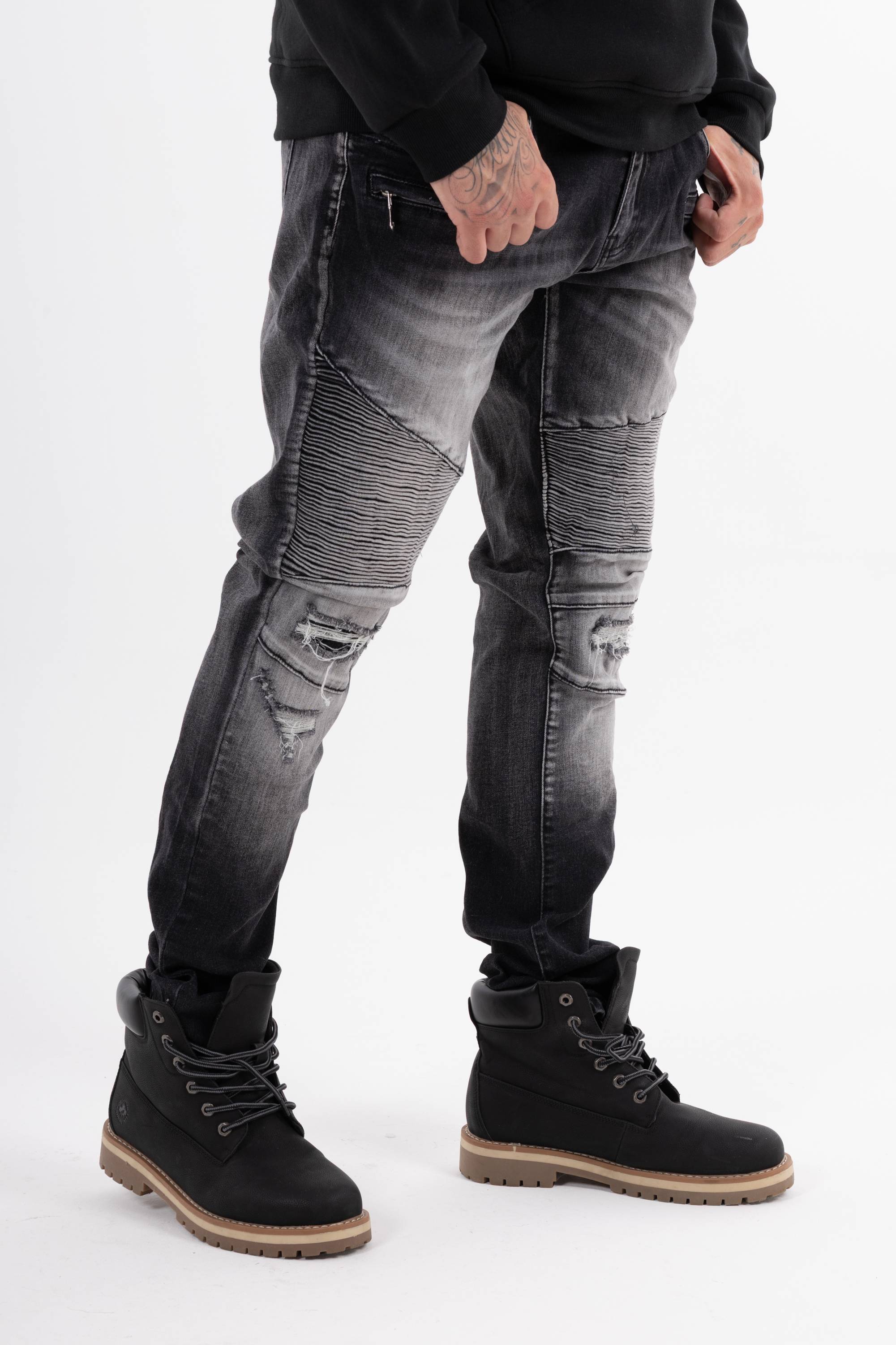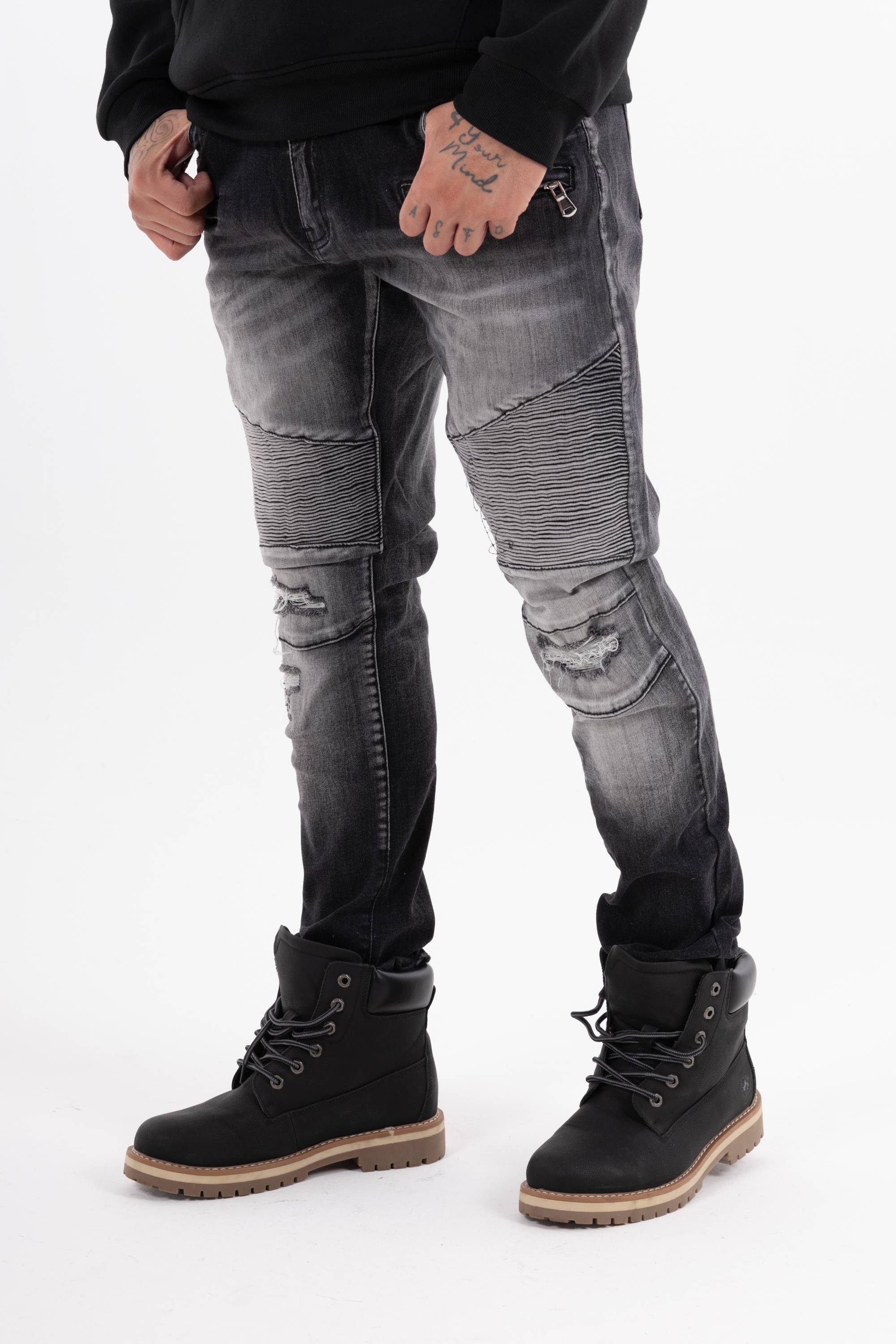 Jeans biker dal design strutturato con cuciture e linee marcate che richiamano lo stile motociclista. Un capo dal forte carattere ideale per look urbani e decisi.