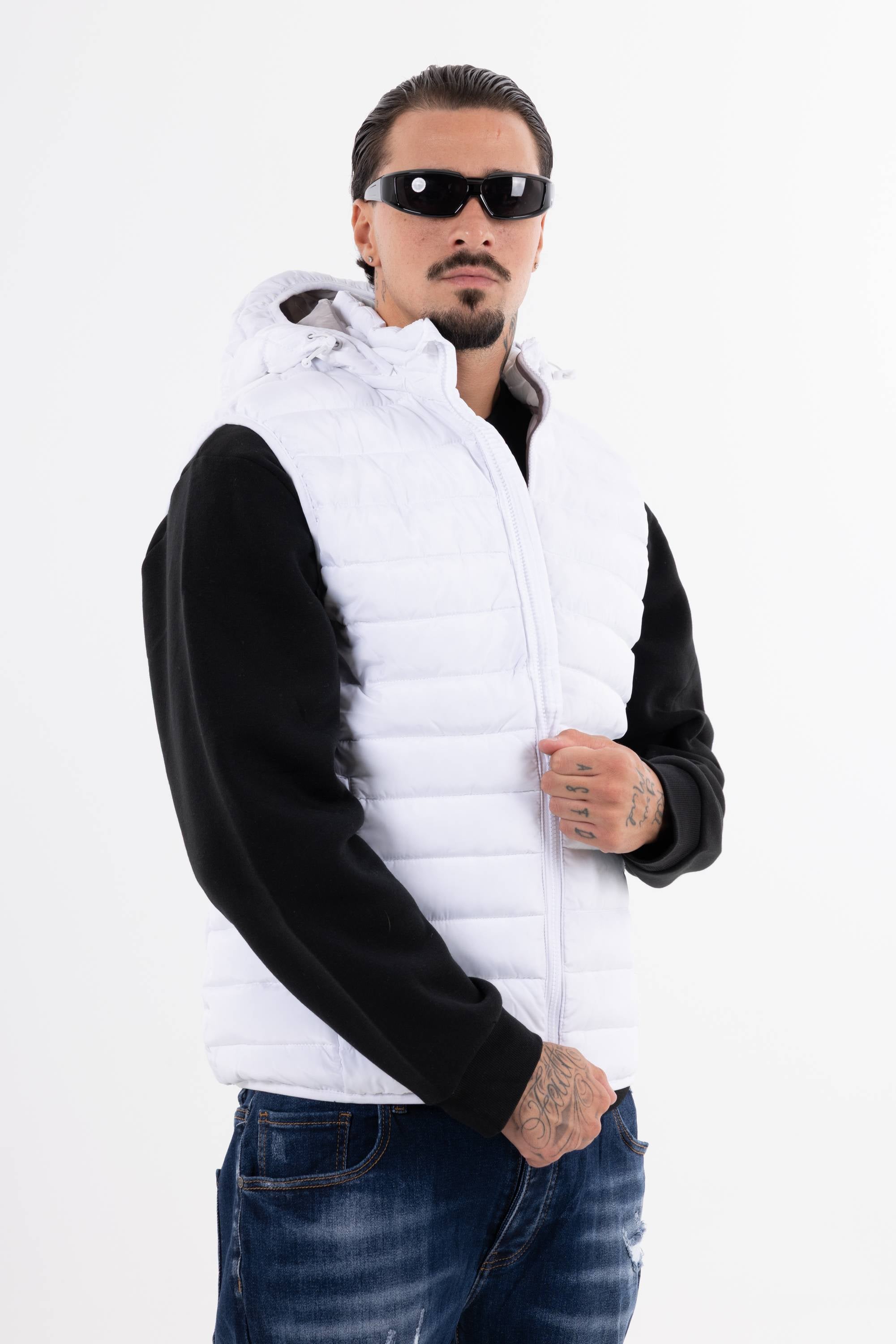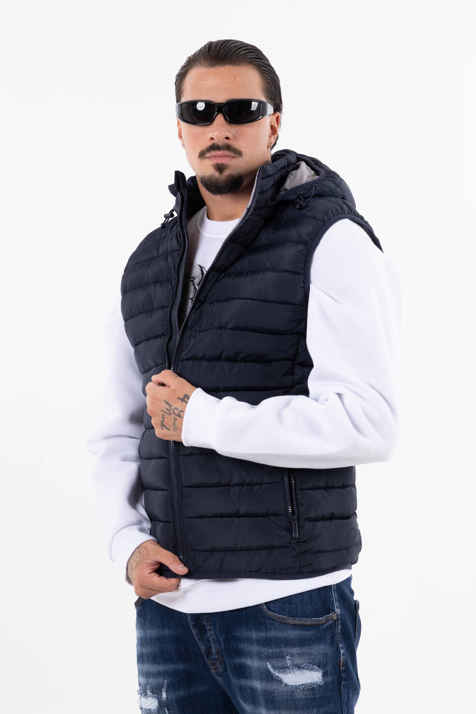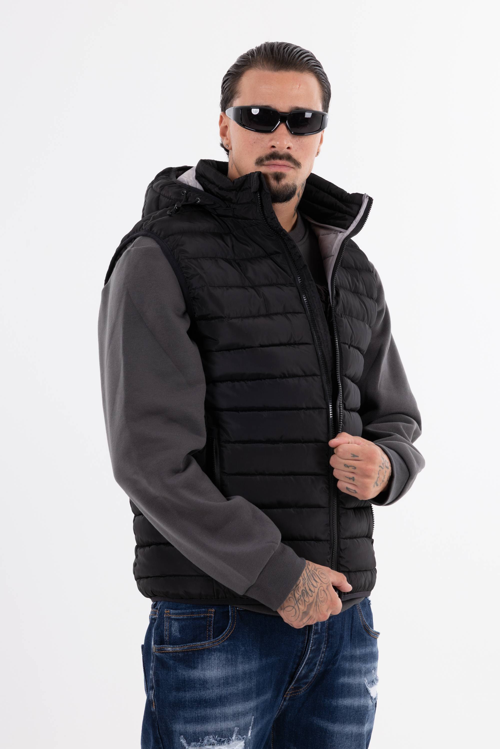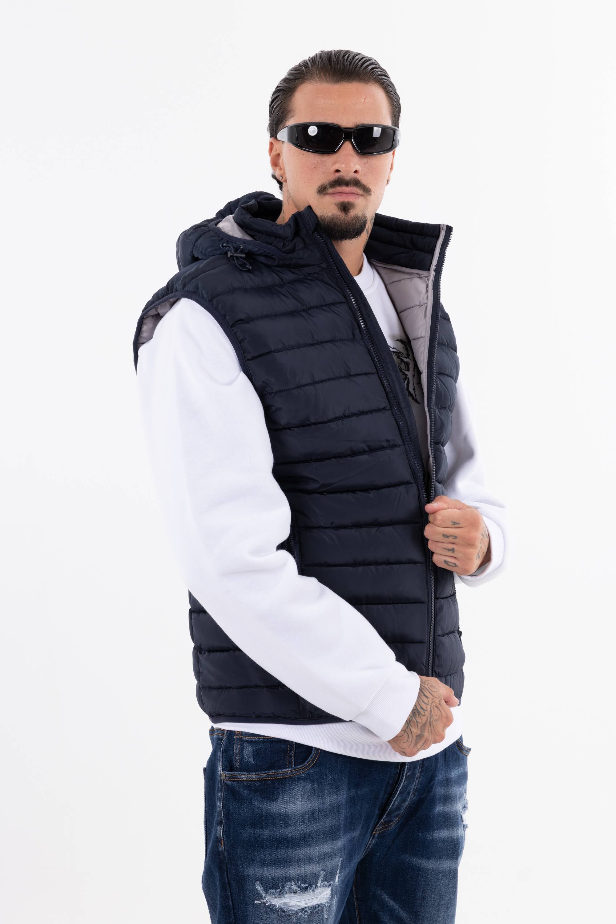 Giubbotto smanicato trapuntato con cappuccio chiusura frontale con zip e tasche con zip. Perfetto per affrontare il freddo unisce funzionalit� e stile per un look casual e dinamico.