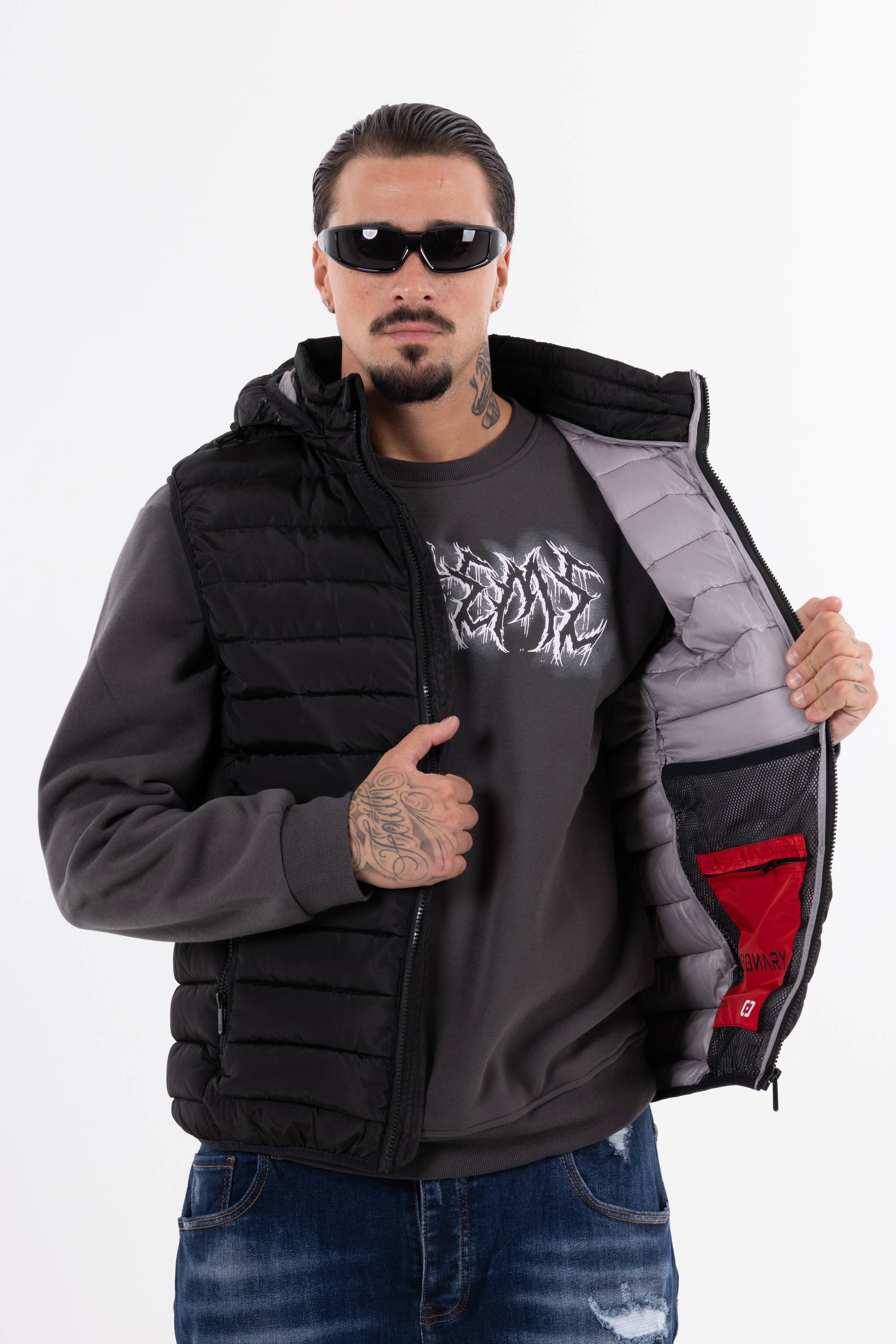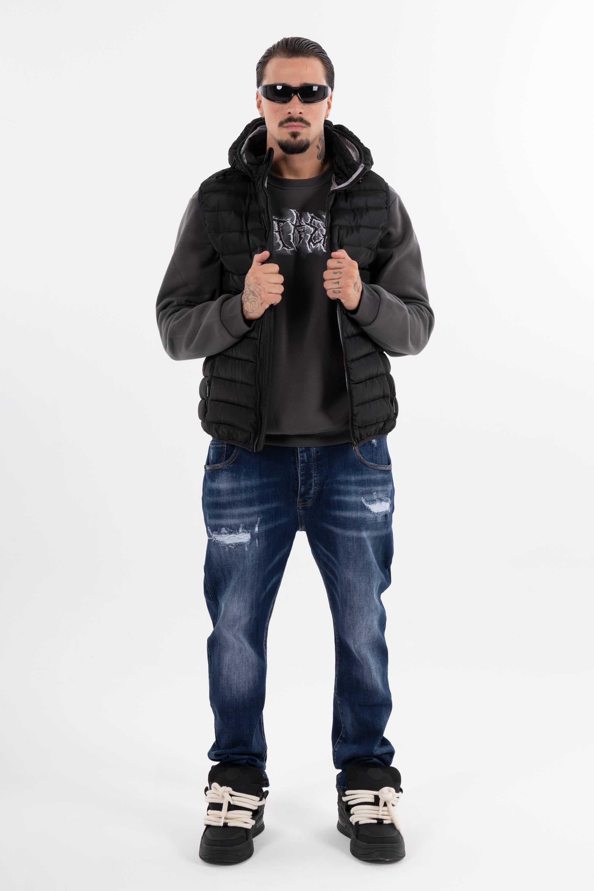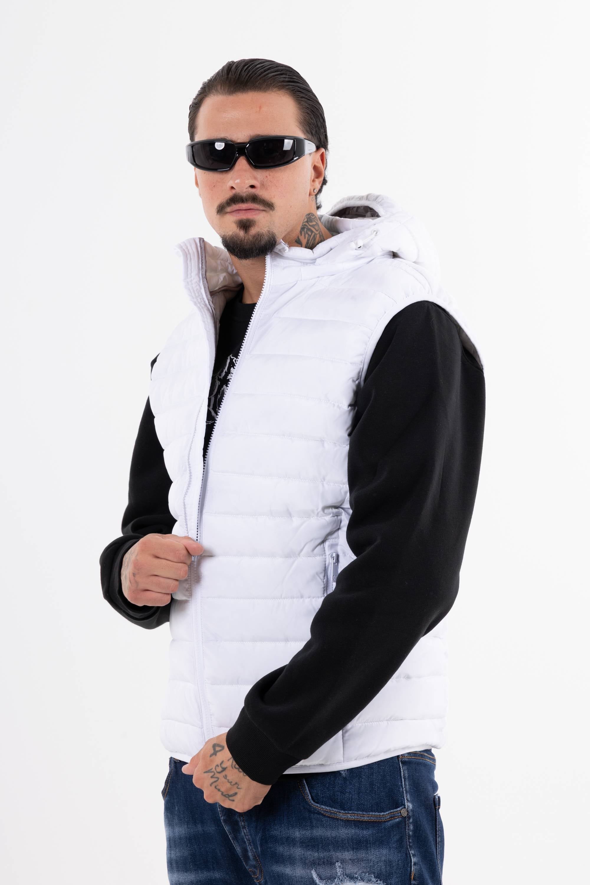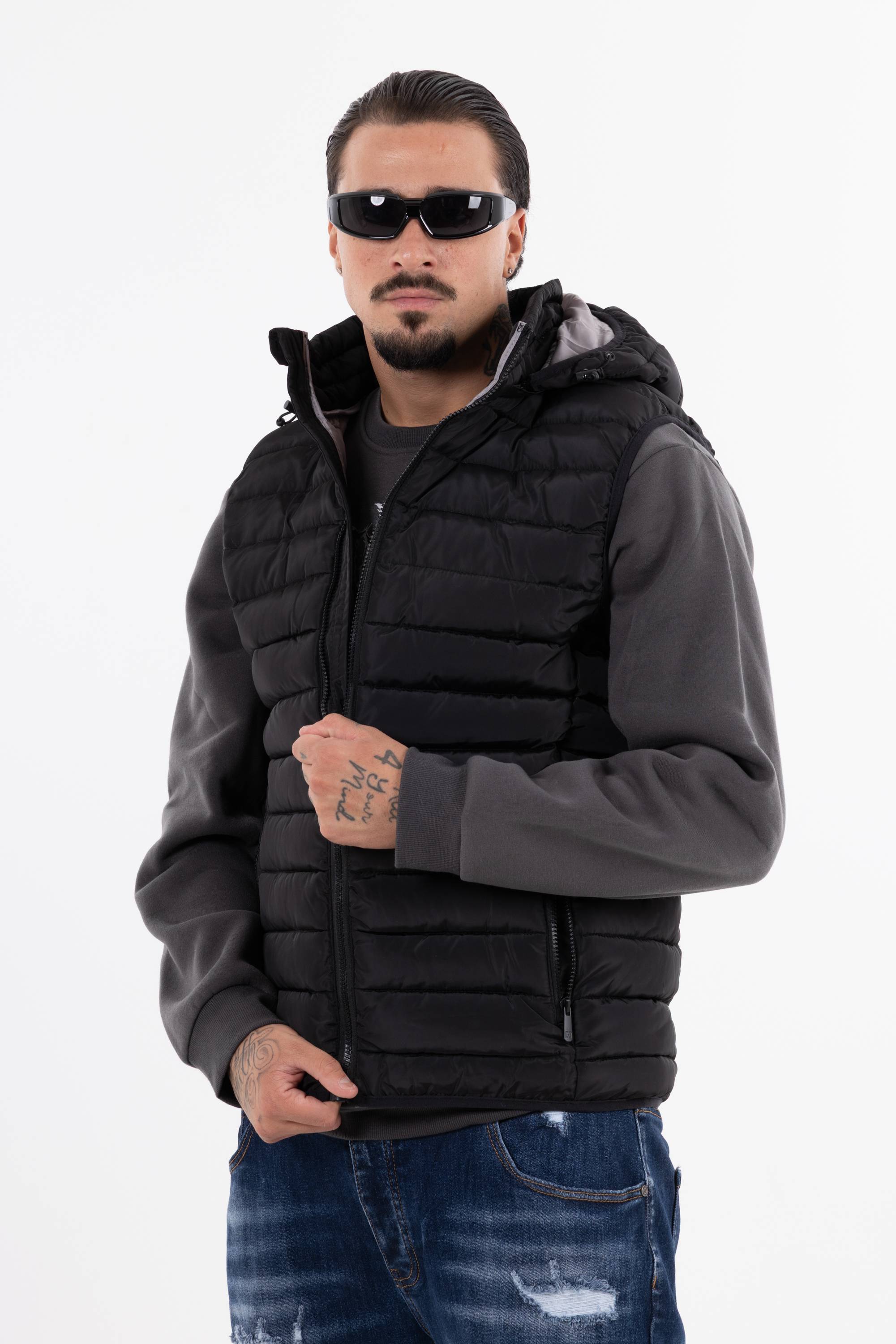 Giubbotto smanicato trapuntato con cappuccio chiusura frontale con zip e tasche con zip. Perfetto per affrontare il freddo unisce funzionalit� e stile per un look casual e dinamico.