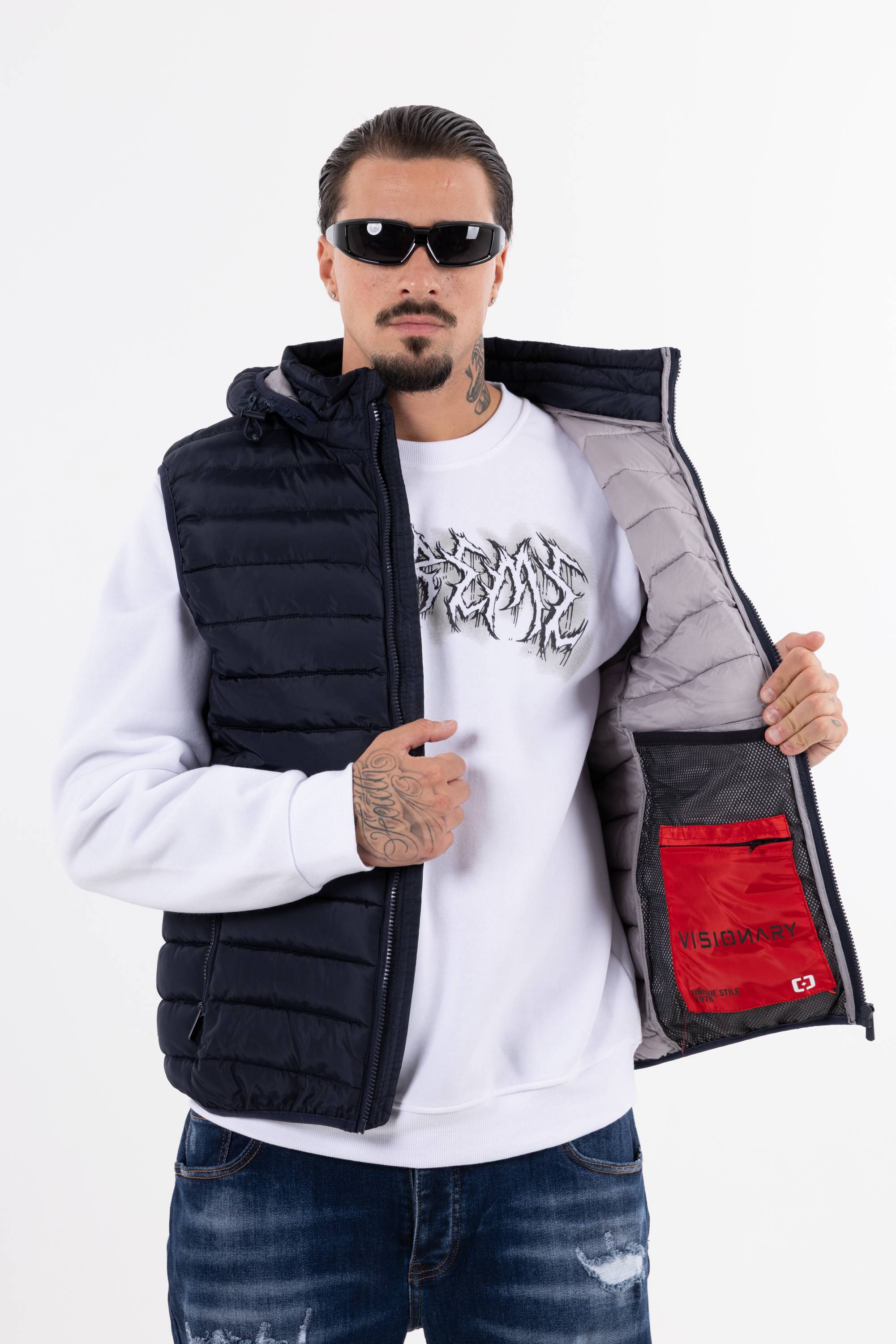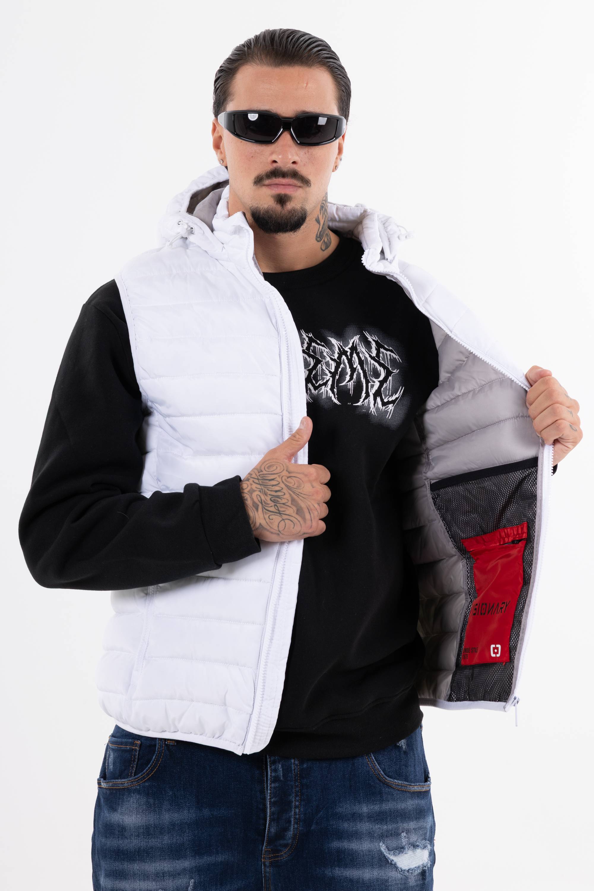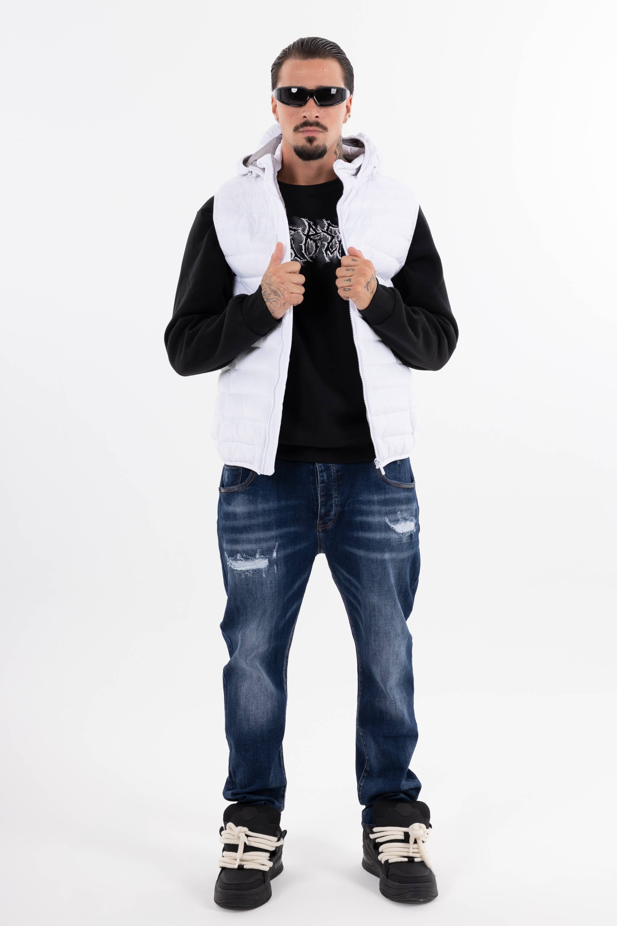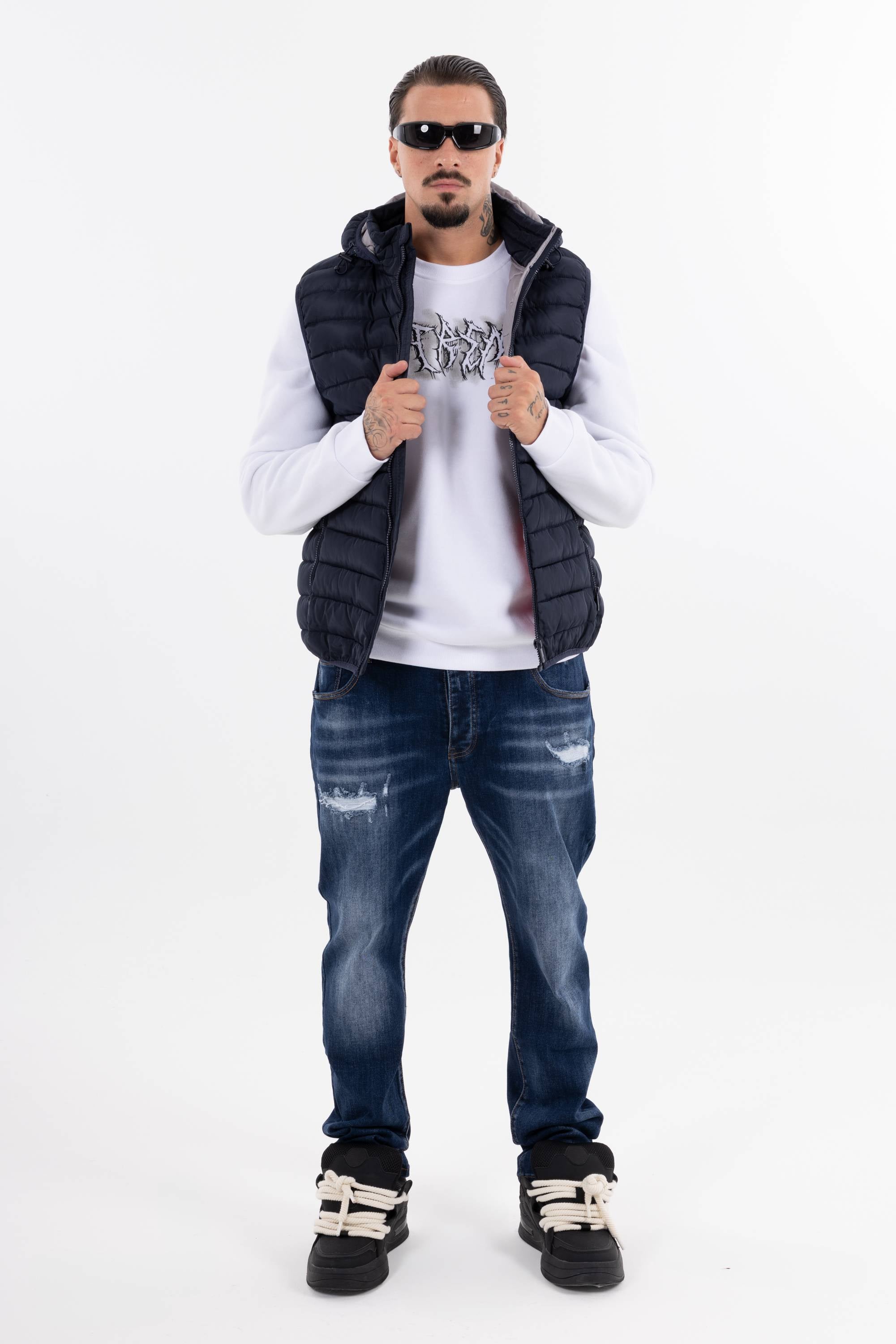 Giubbotto smanicato trapuntato con cappuccio chiusura frontale con zip e tasche con zip. Perfetto per affrontare il freddo unisce funzionalit� e stile per un look casual e dinamico.
