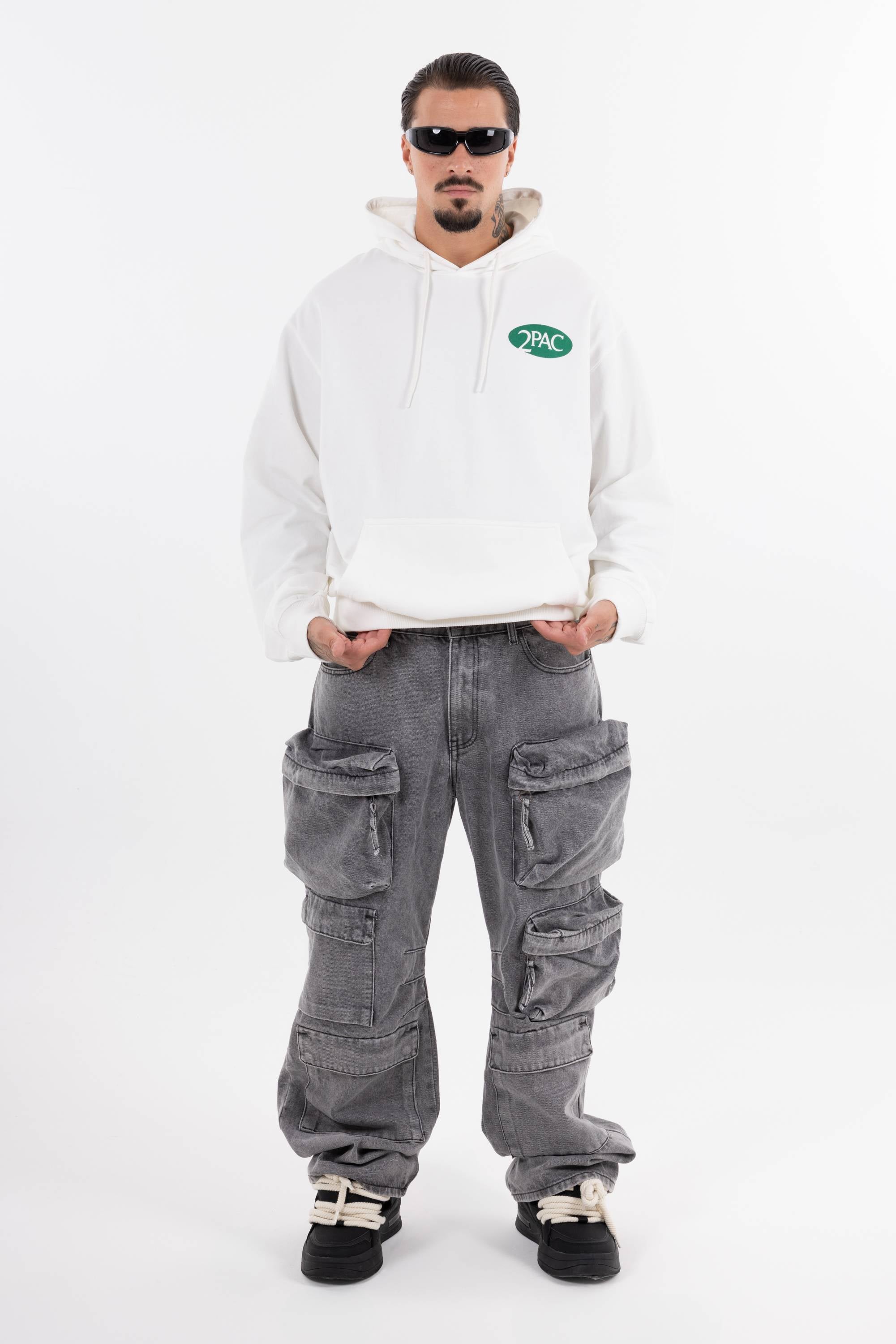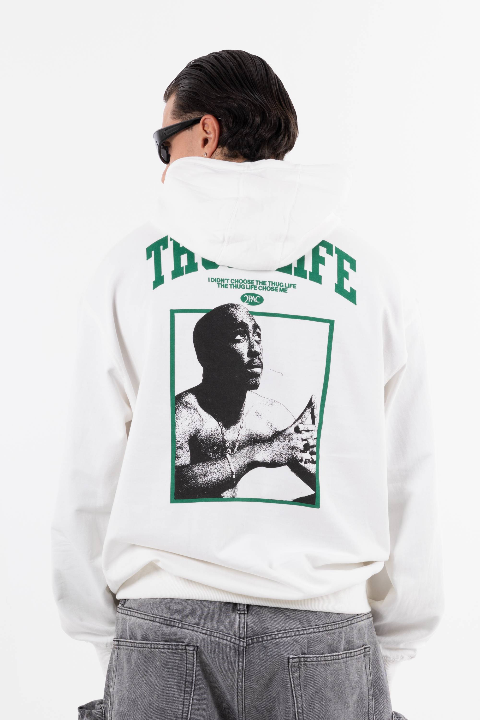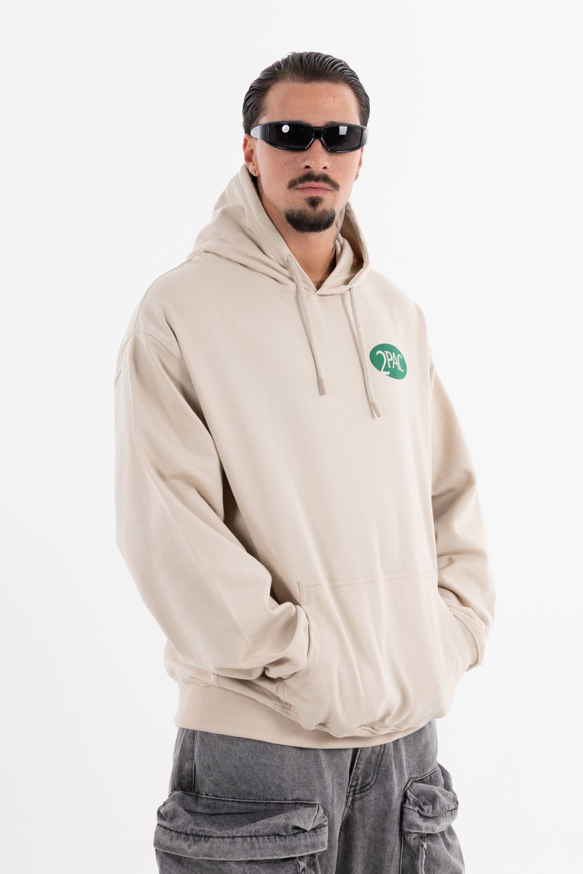 Felpa boxy fit con cappuccio e doppia stampa Tupac sul davanti e sul retro. Un capo street bold e d�impatto pensato per look decisi e contemporaneidallo spirito urban autentico.
