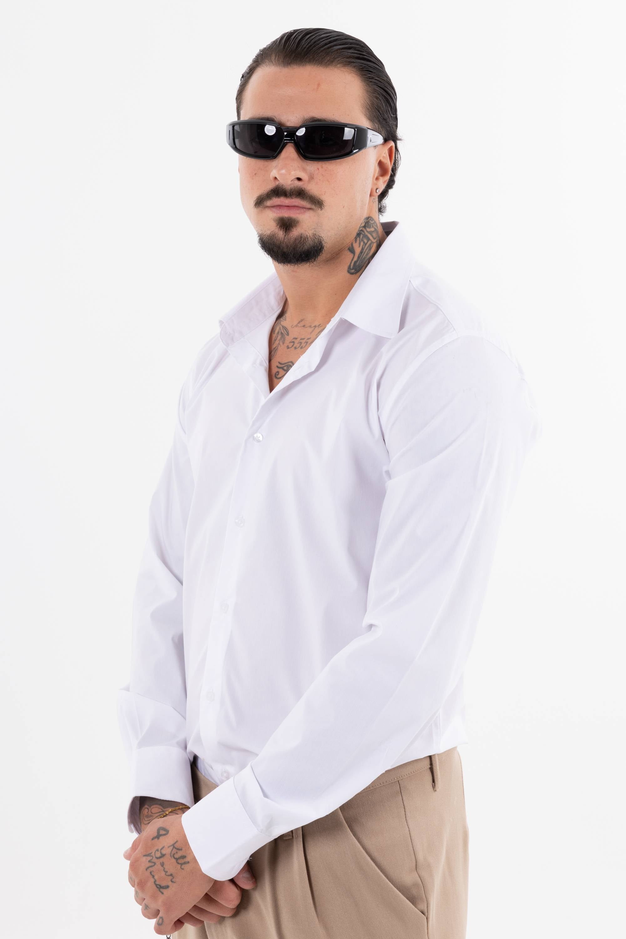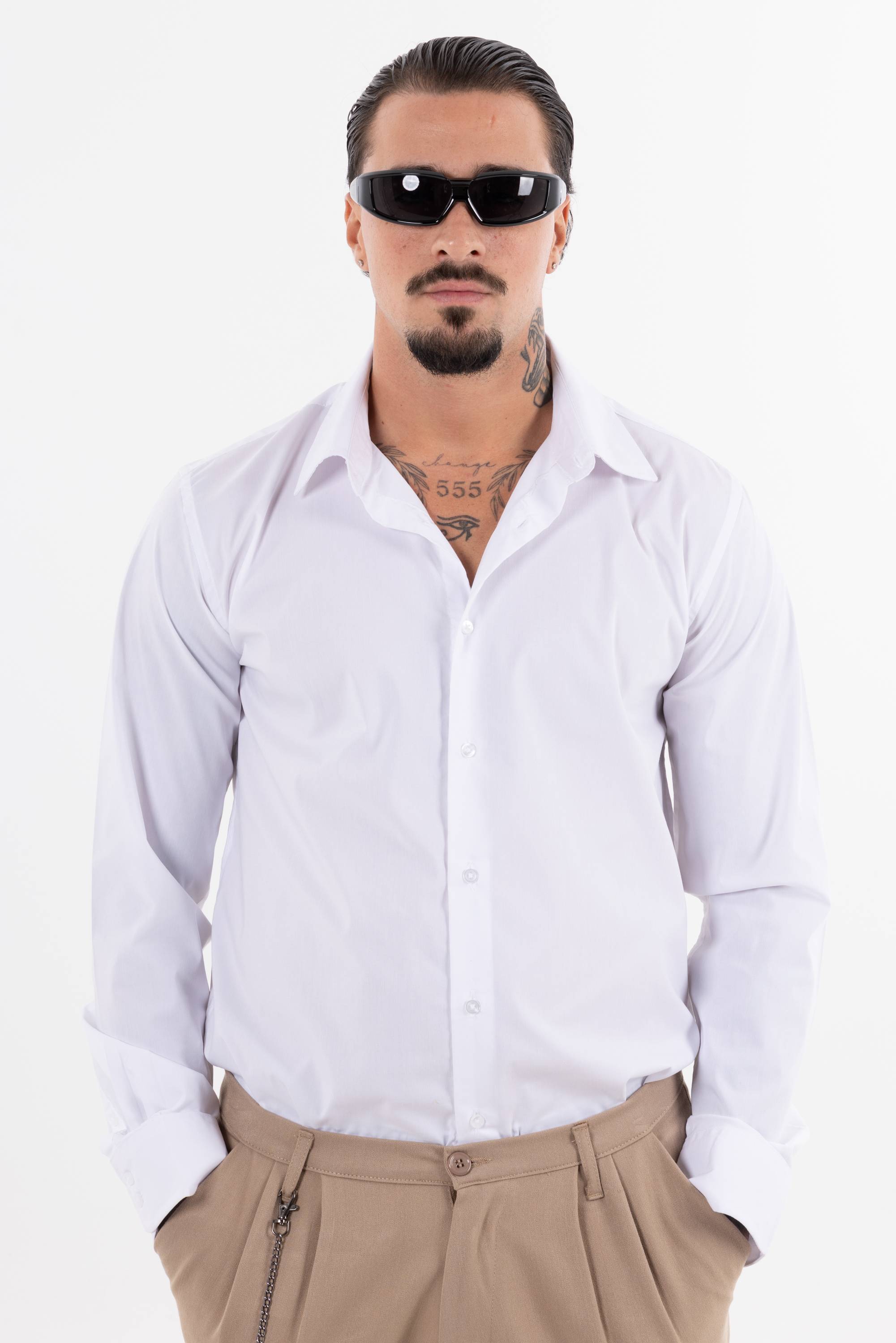 Camicia classica con collo regolare e taglio pulitto un vero must have per il guardaroba maschile.Tessuto morbido e linea essenziale la rendono perfetta per look formali o smart-casual.