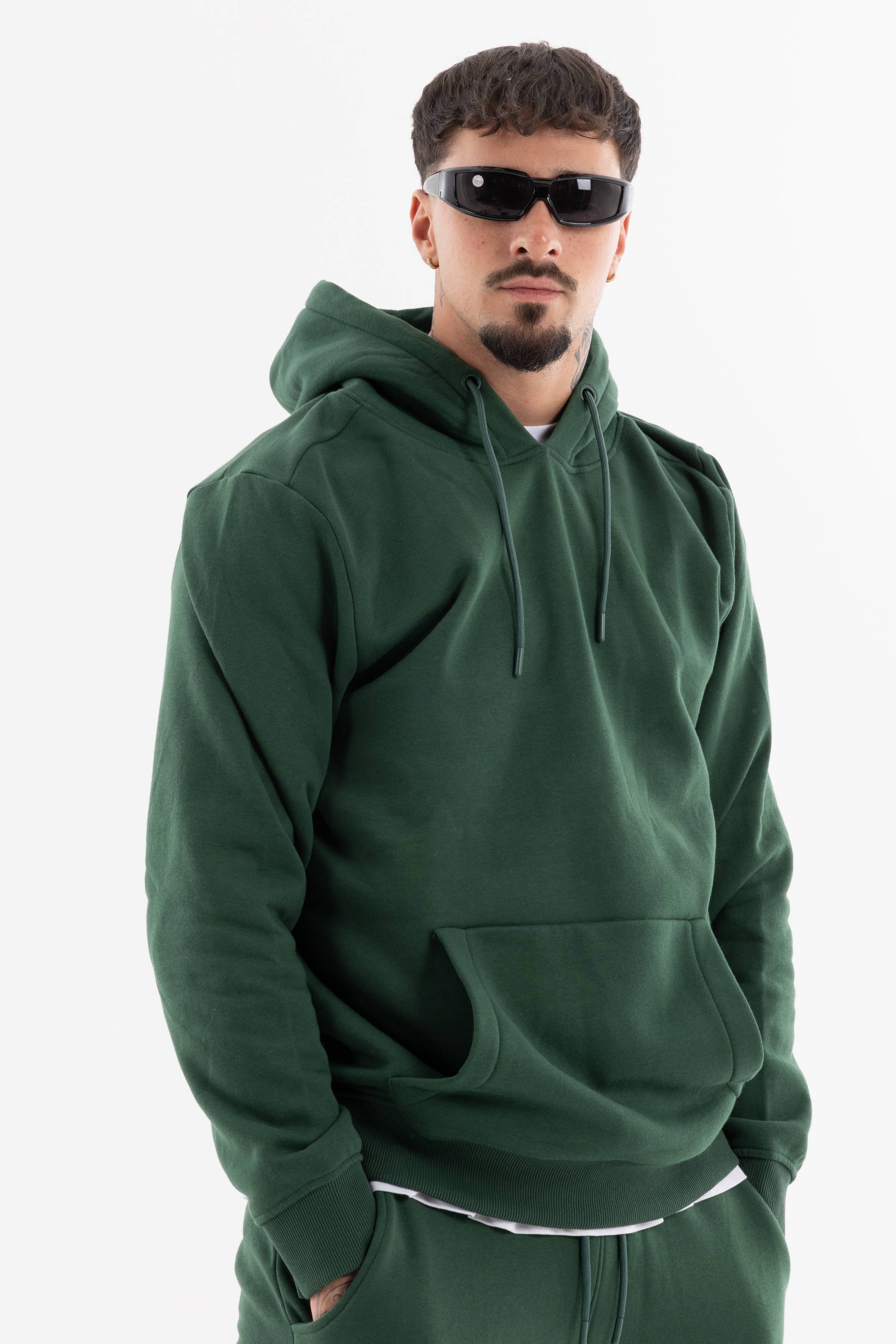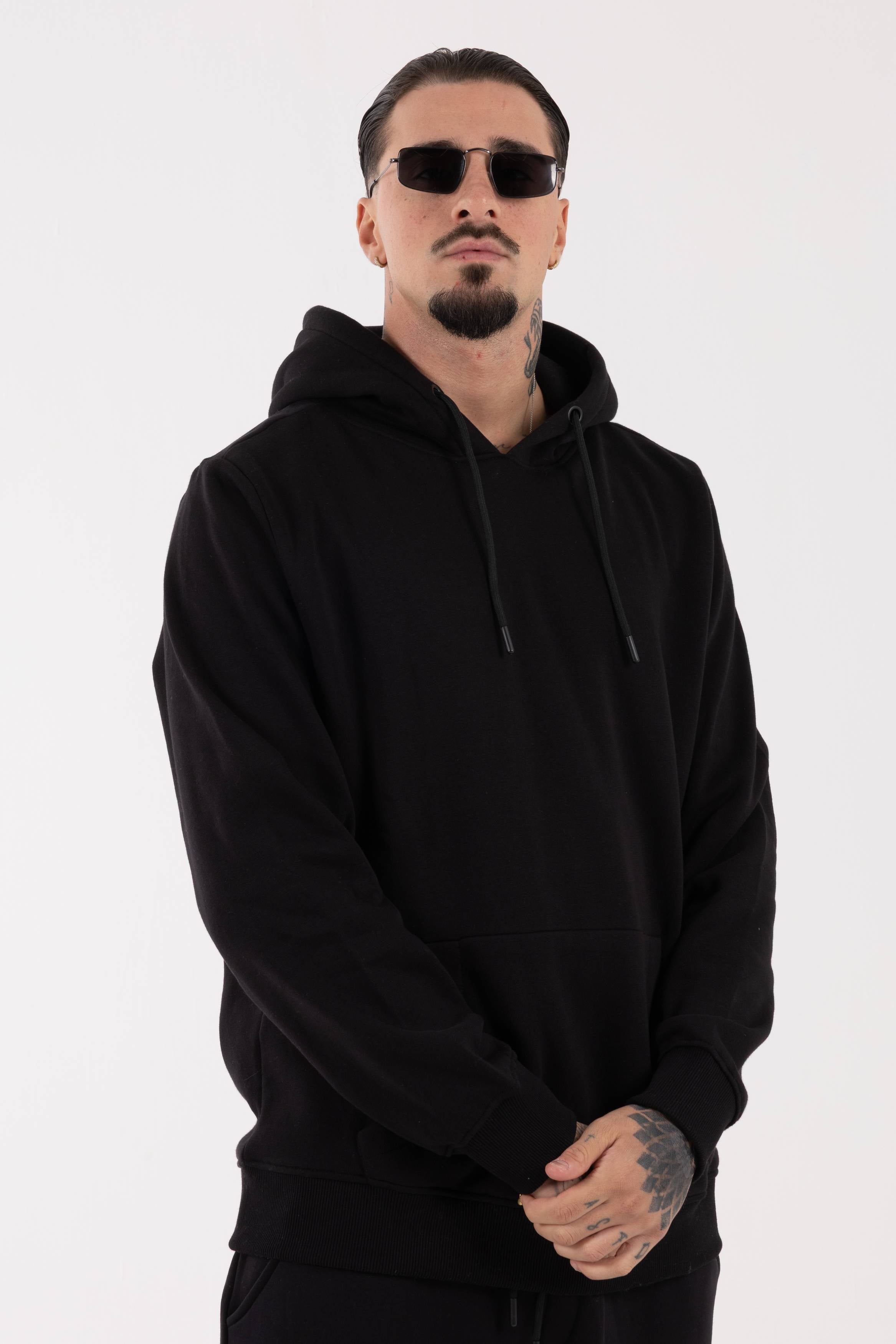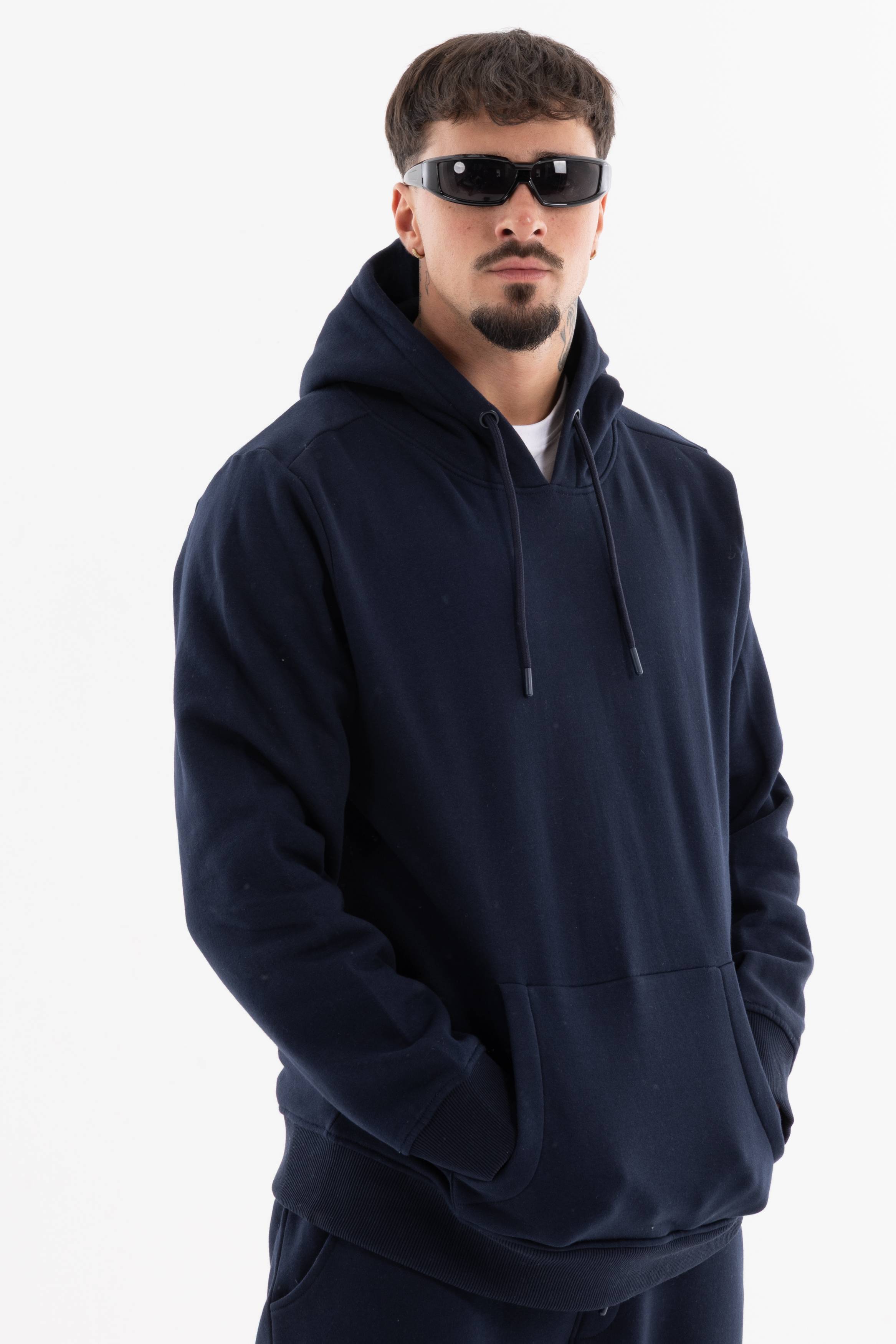 Felpa uomo basic con cappuccio e zip pratica e versatile. Tessuto morbido e confortevole perfettaper look casual o outfit sportivi. Coordinabile con joggers.