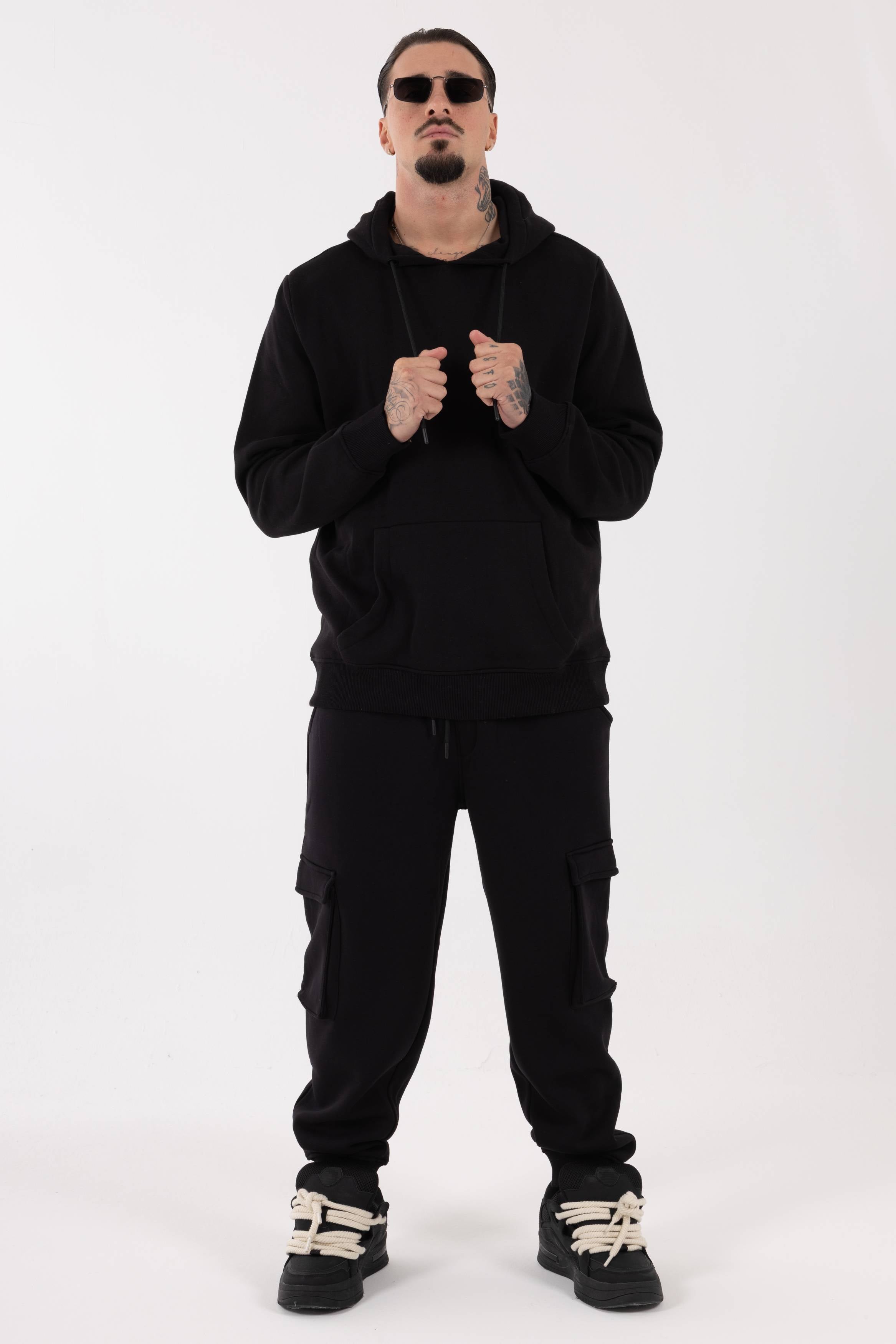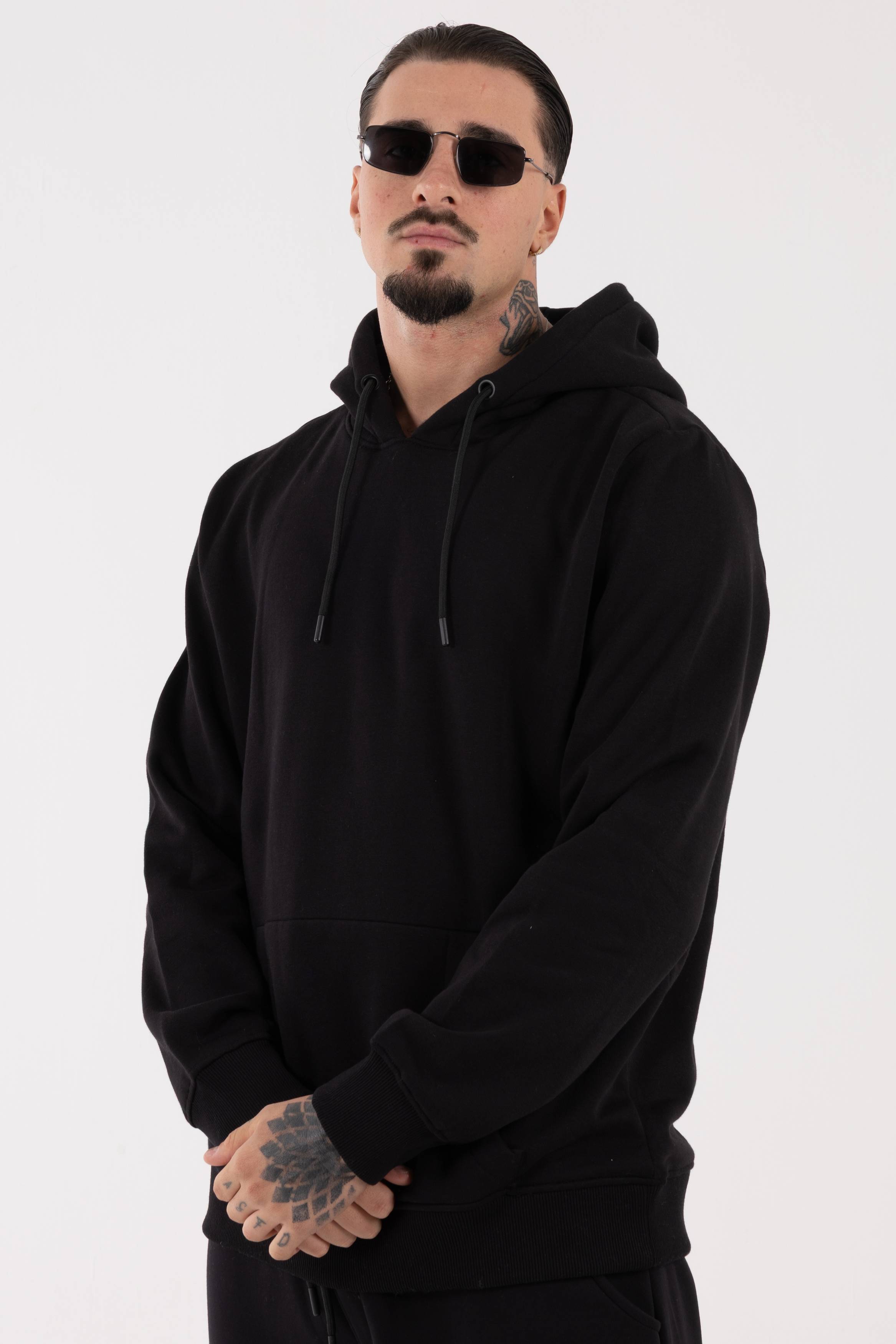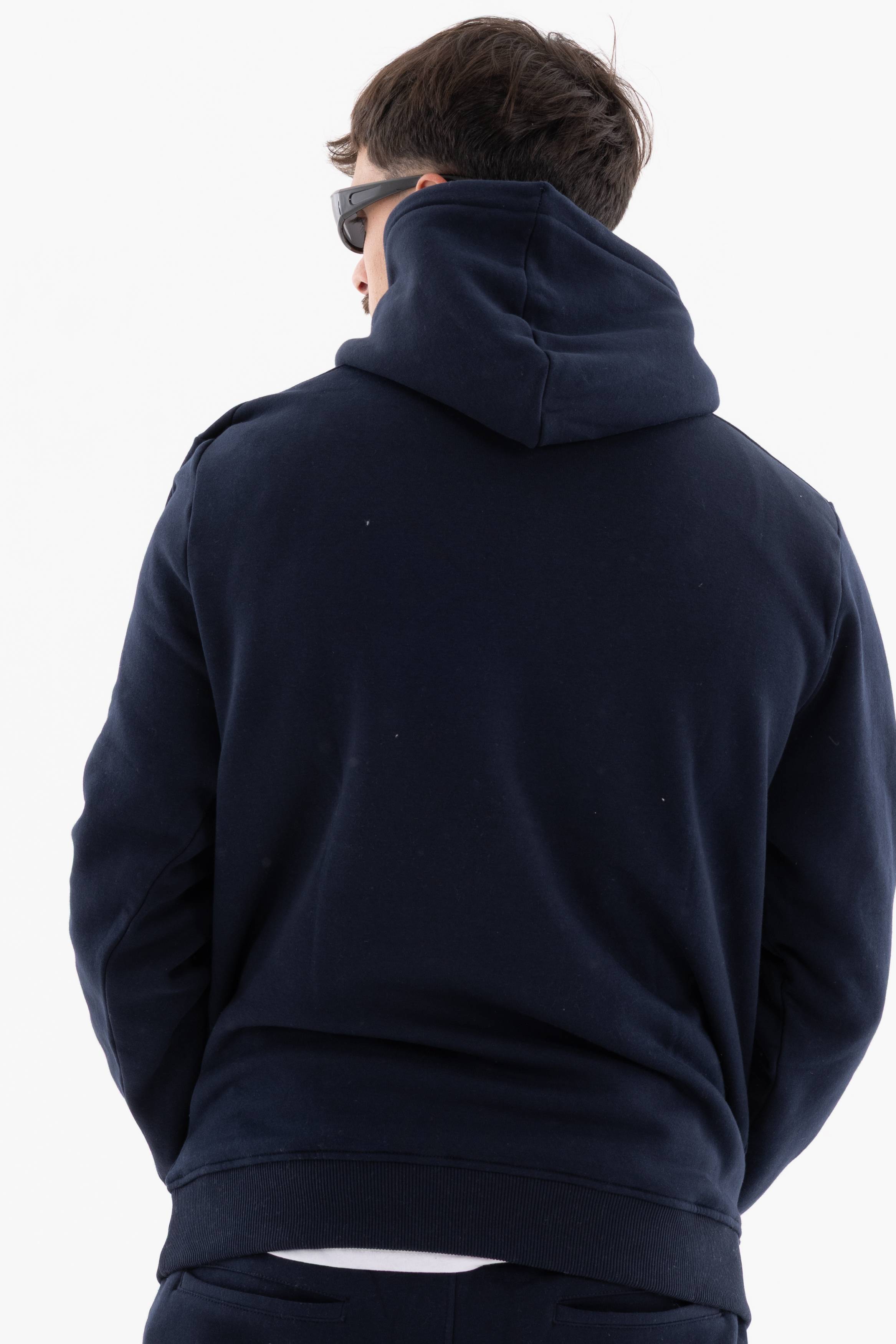Felpa uomo basic con cappuccio e zip pratica e versatile. Tessuto morbido e confortevole perfettaper look casual o outfit sportivi. Coordinabile con joggers.