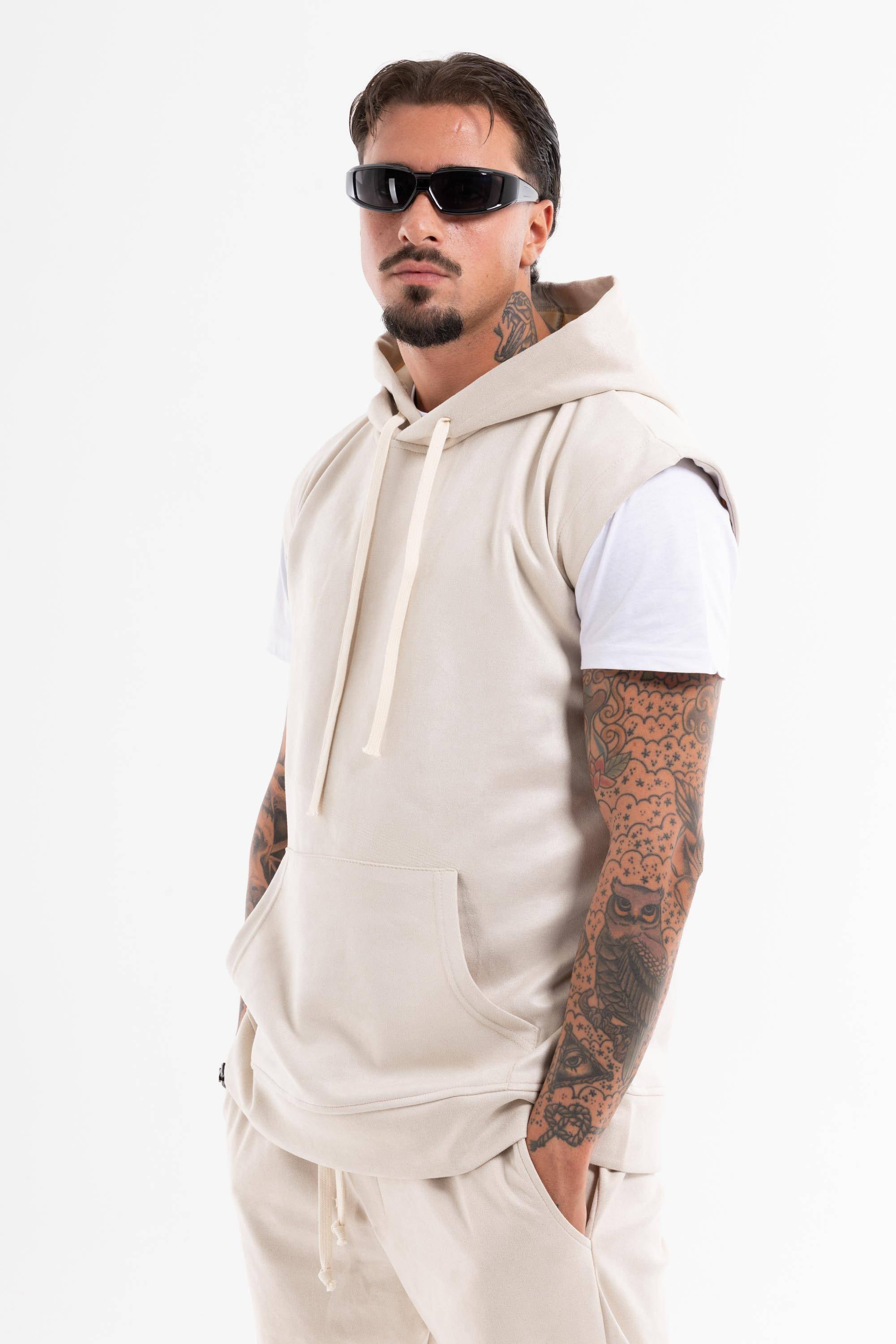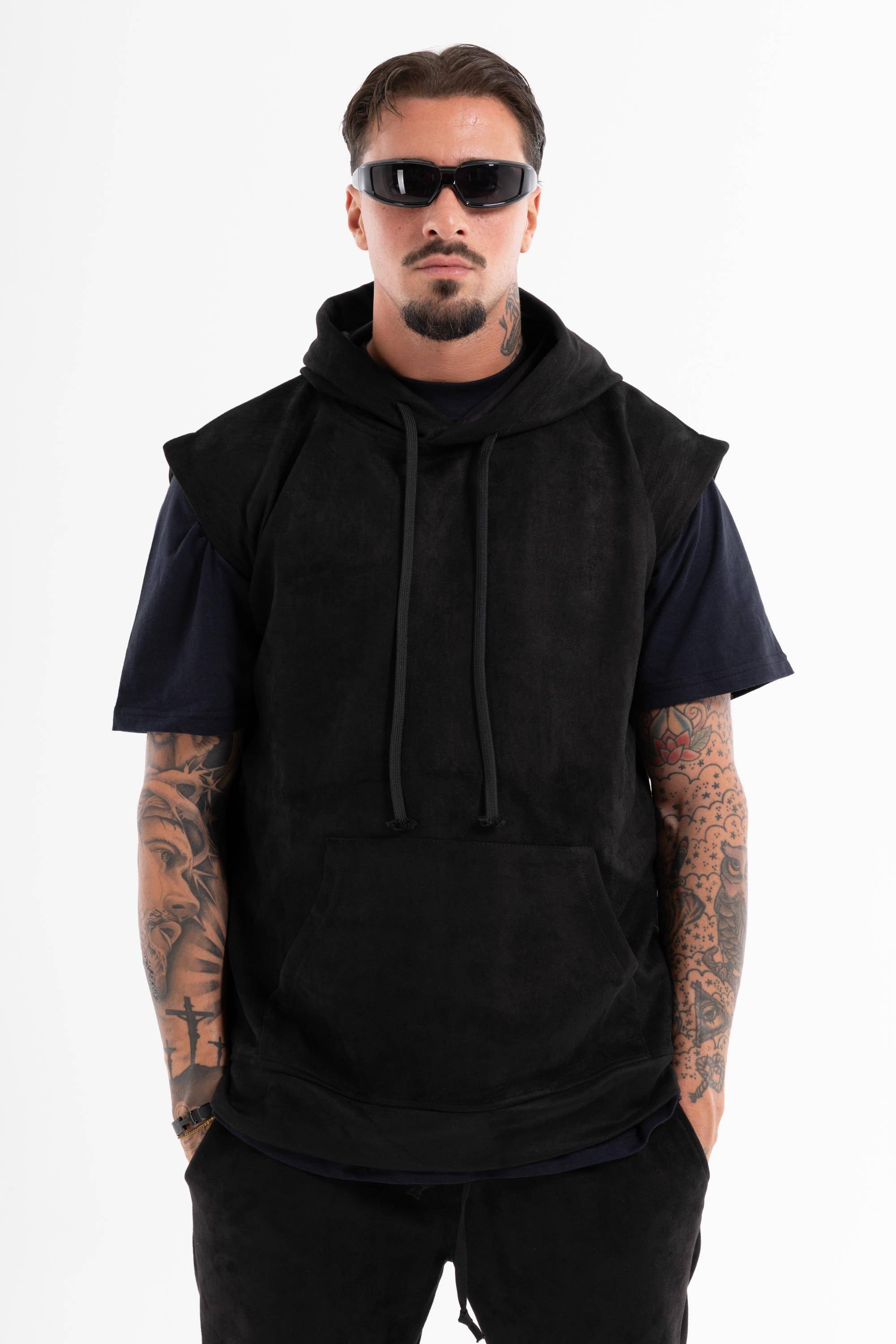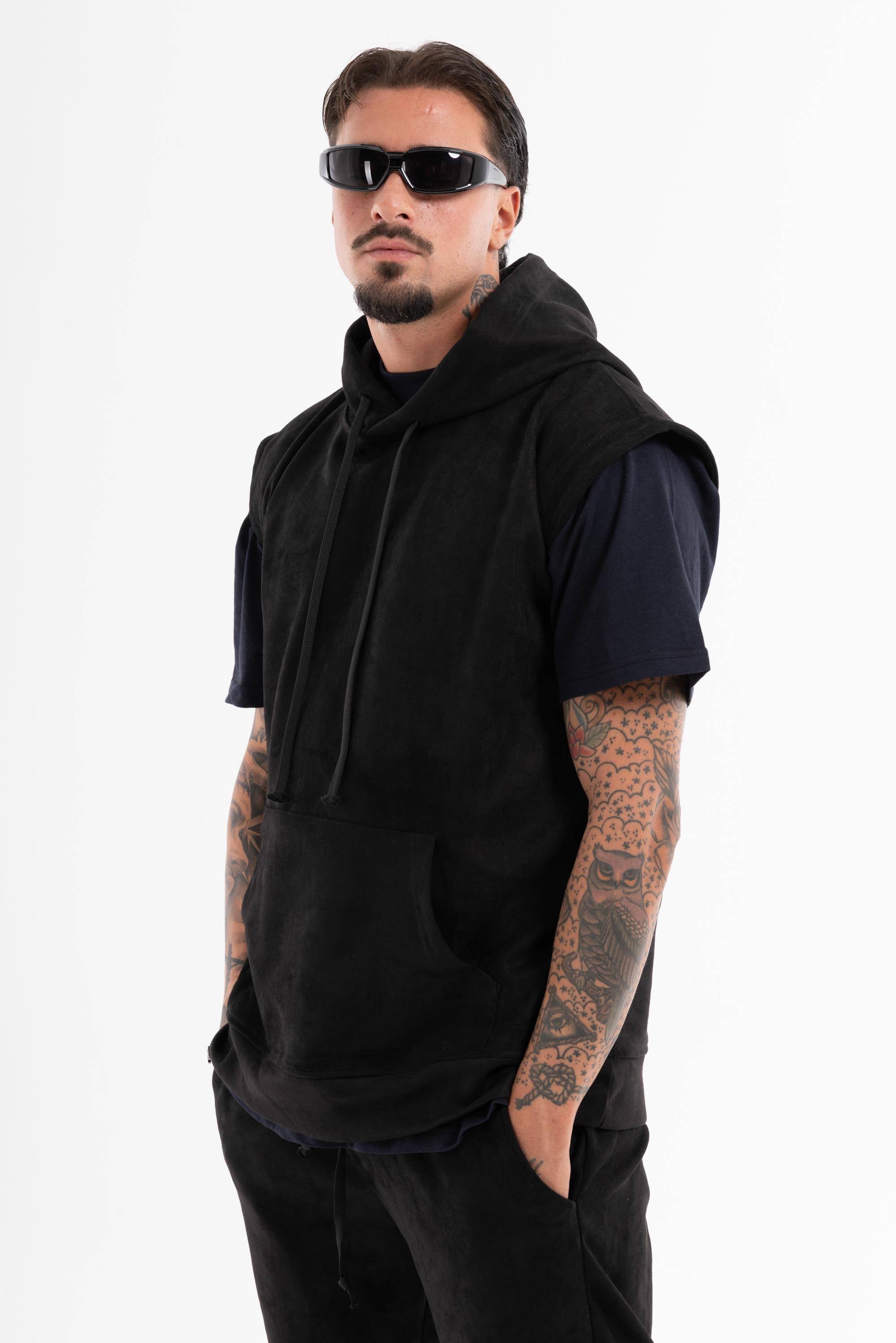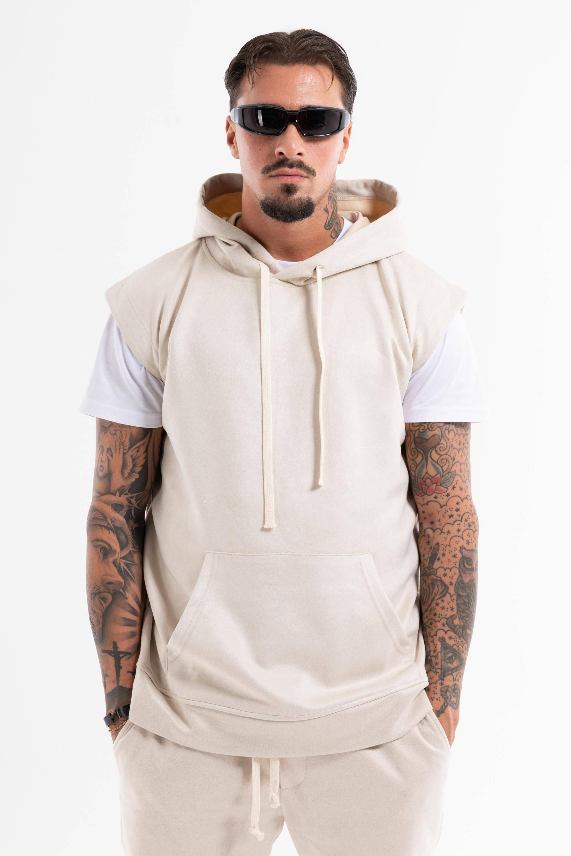 Felpa smanicata con cappuccio e finitura effetto camoscio per un look ricercato ma informale.Linee essenziali e vestibilit� comoda. Perfetta daindossare su t-shirt per uno stile impeccabile.