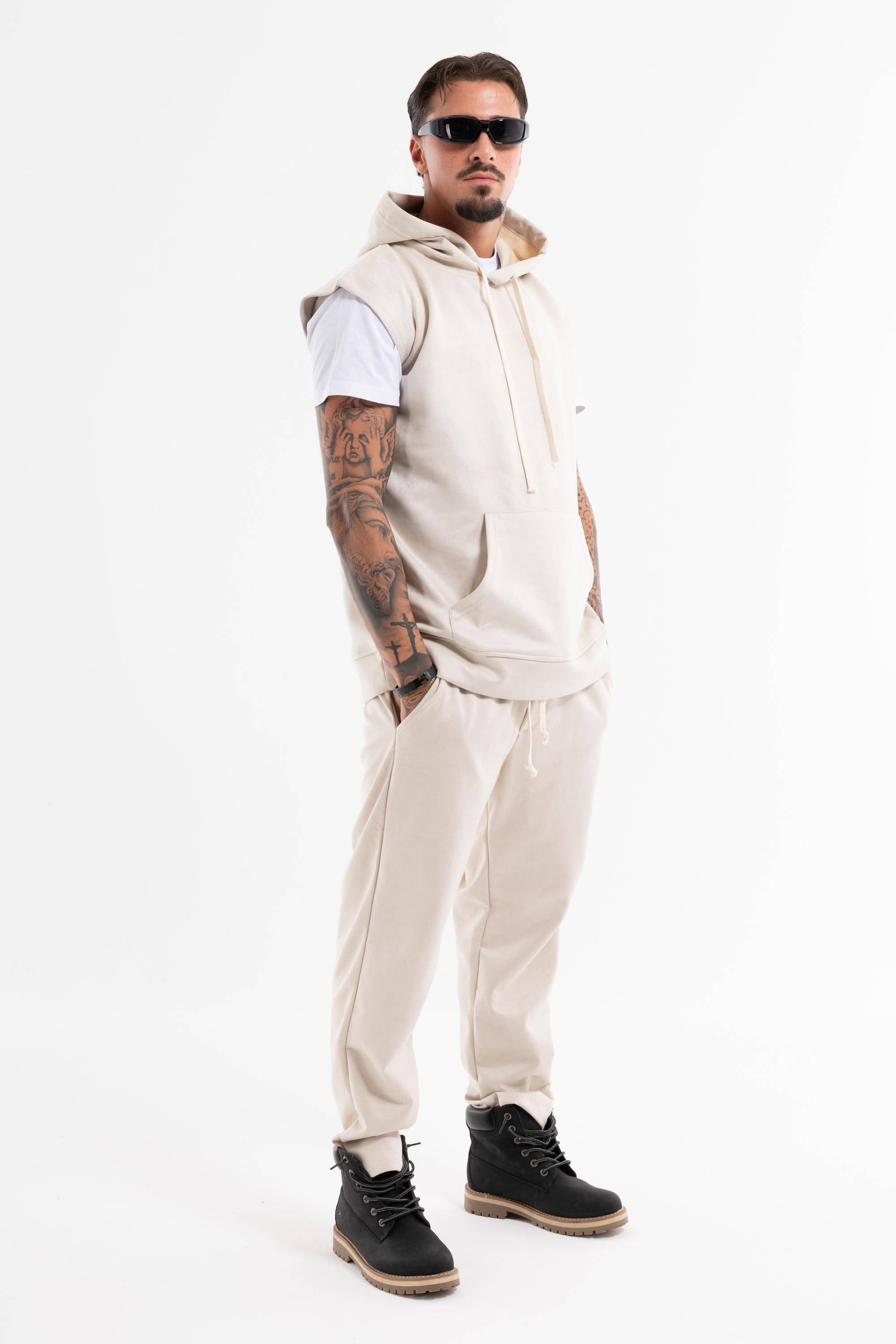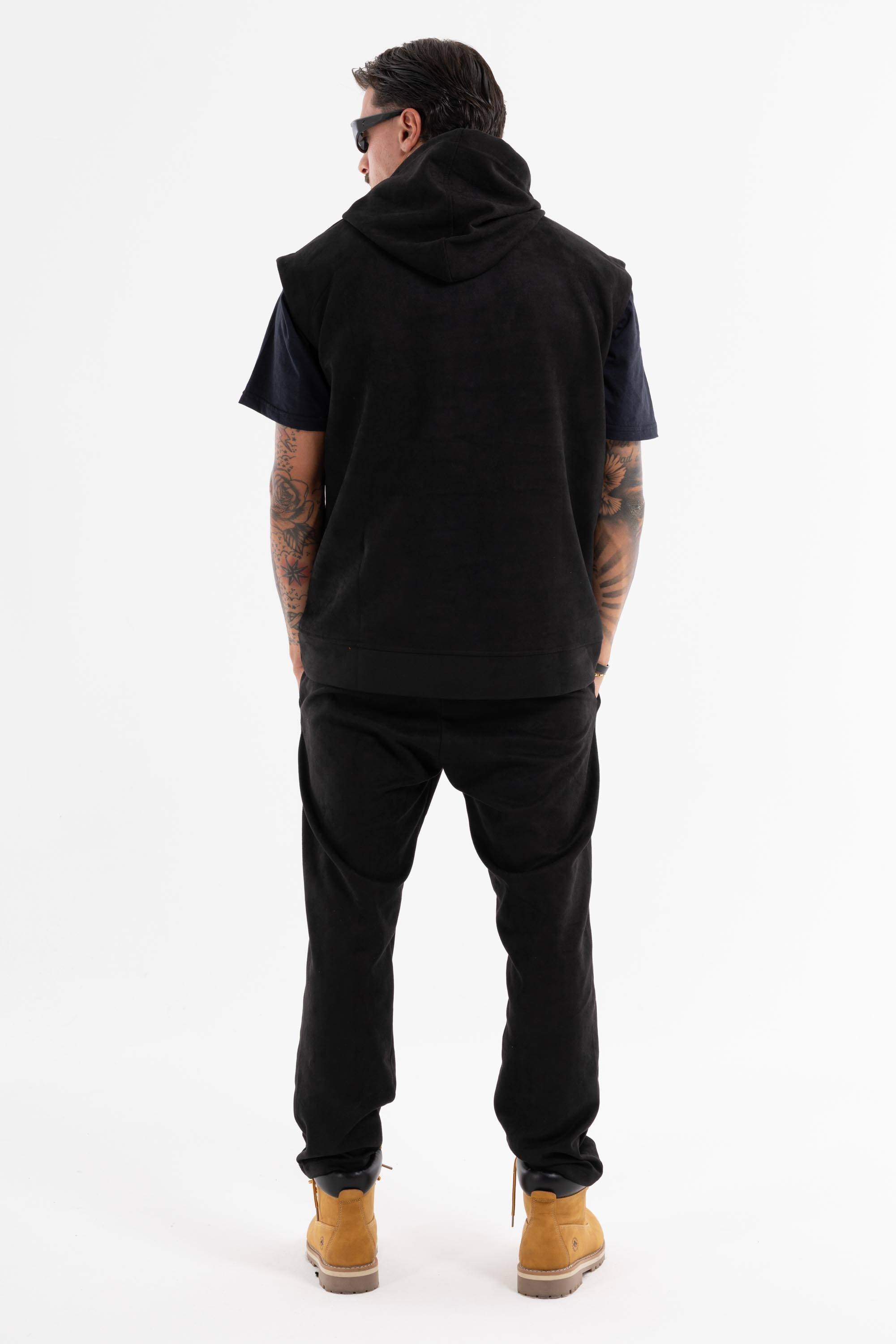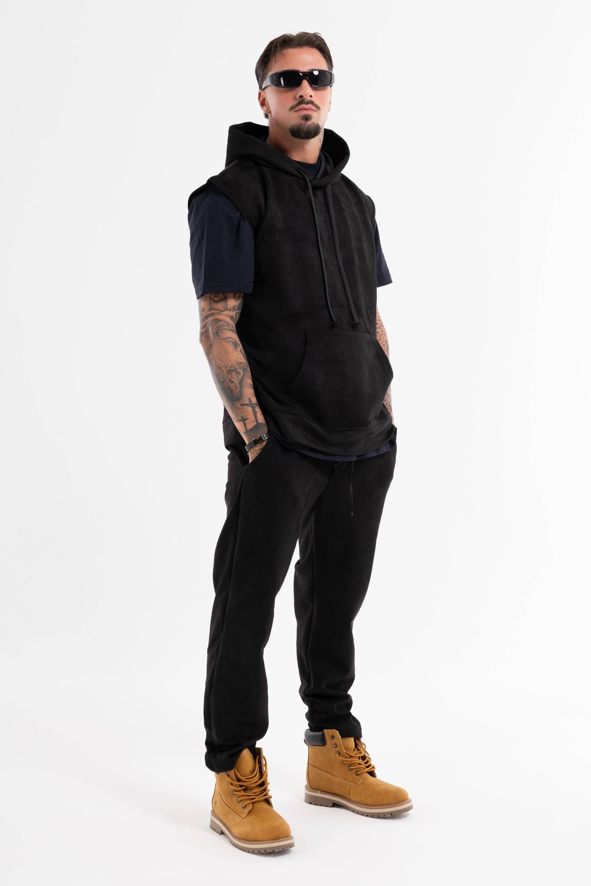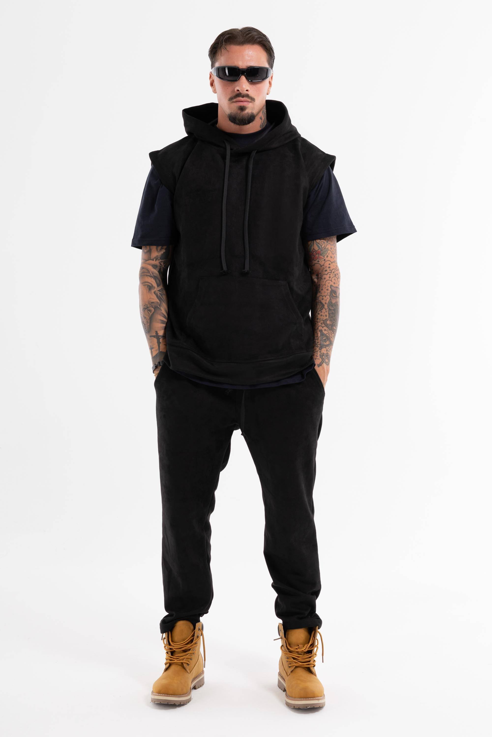 Felpa smanicata con cappuccio e finitura effetto camoscio per un look ricercato ma informale.Linee essenziali e vestibilit� comoda. Perfetta daindossare su t-shirt per uno stile impeccabile.