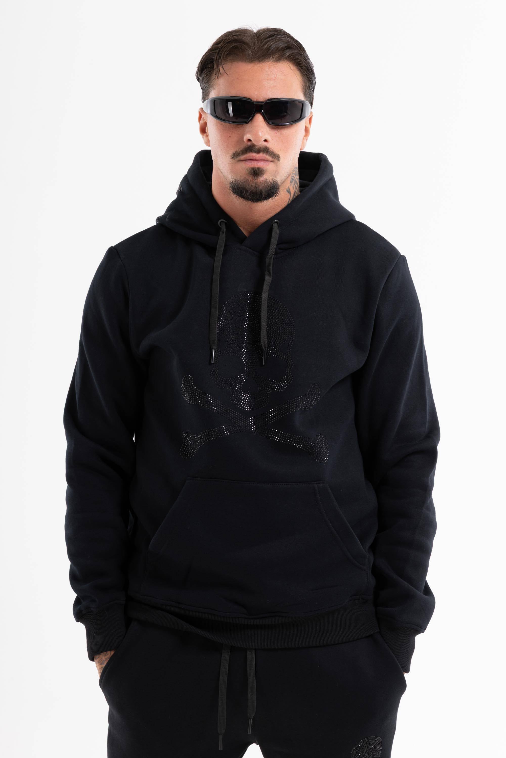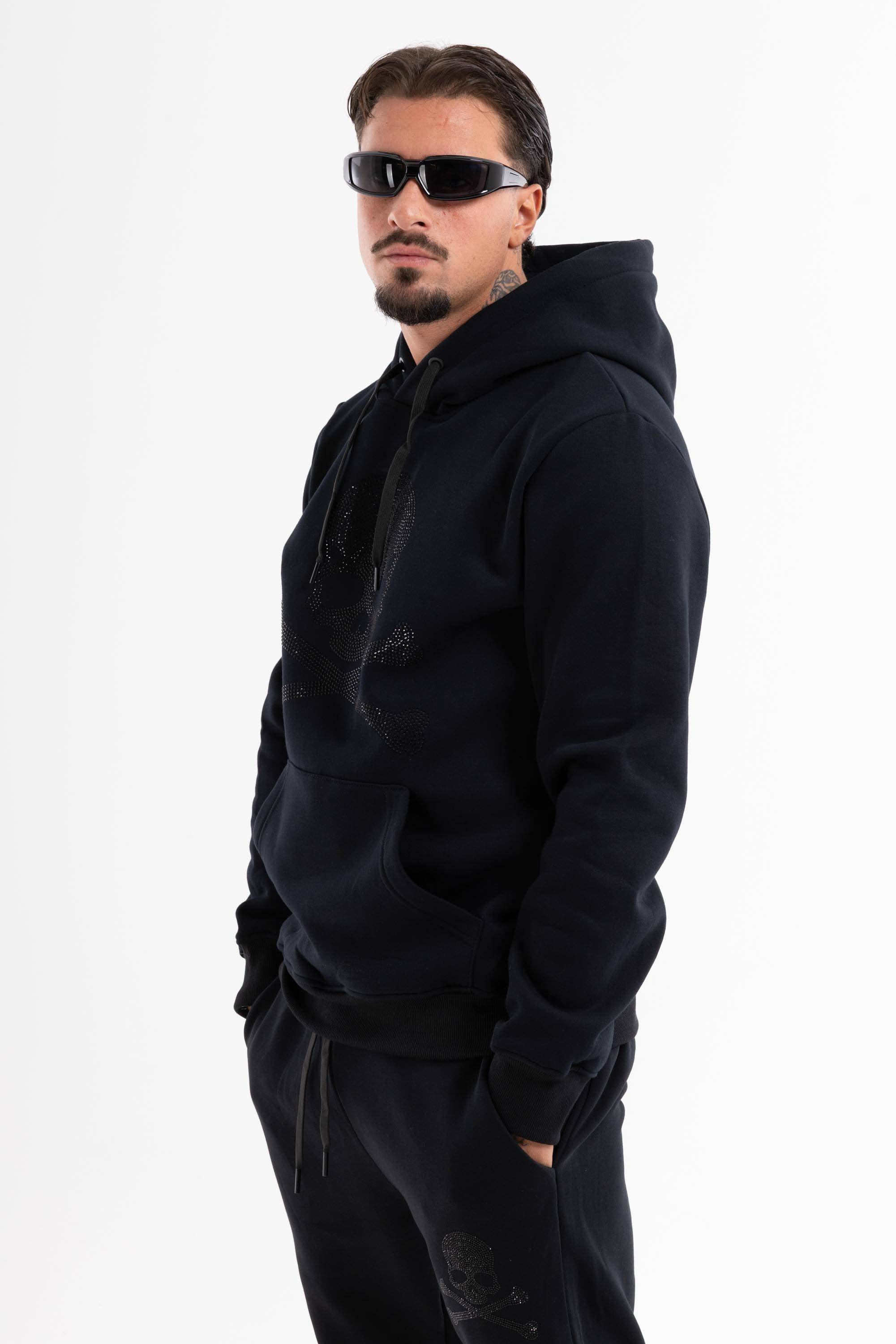 Felpa con cappuccio dal design deciso e brillante arricchita da applicazioni di strass con motivo a teschio. Tasca frontale polsini e vita elastici.Abbinabile ai joggers Alexander Kors coordinati.