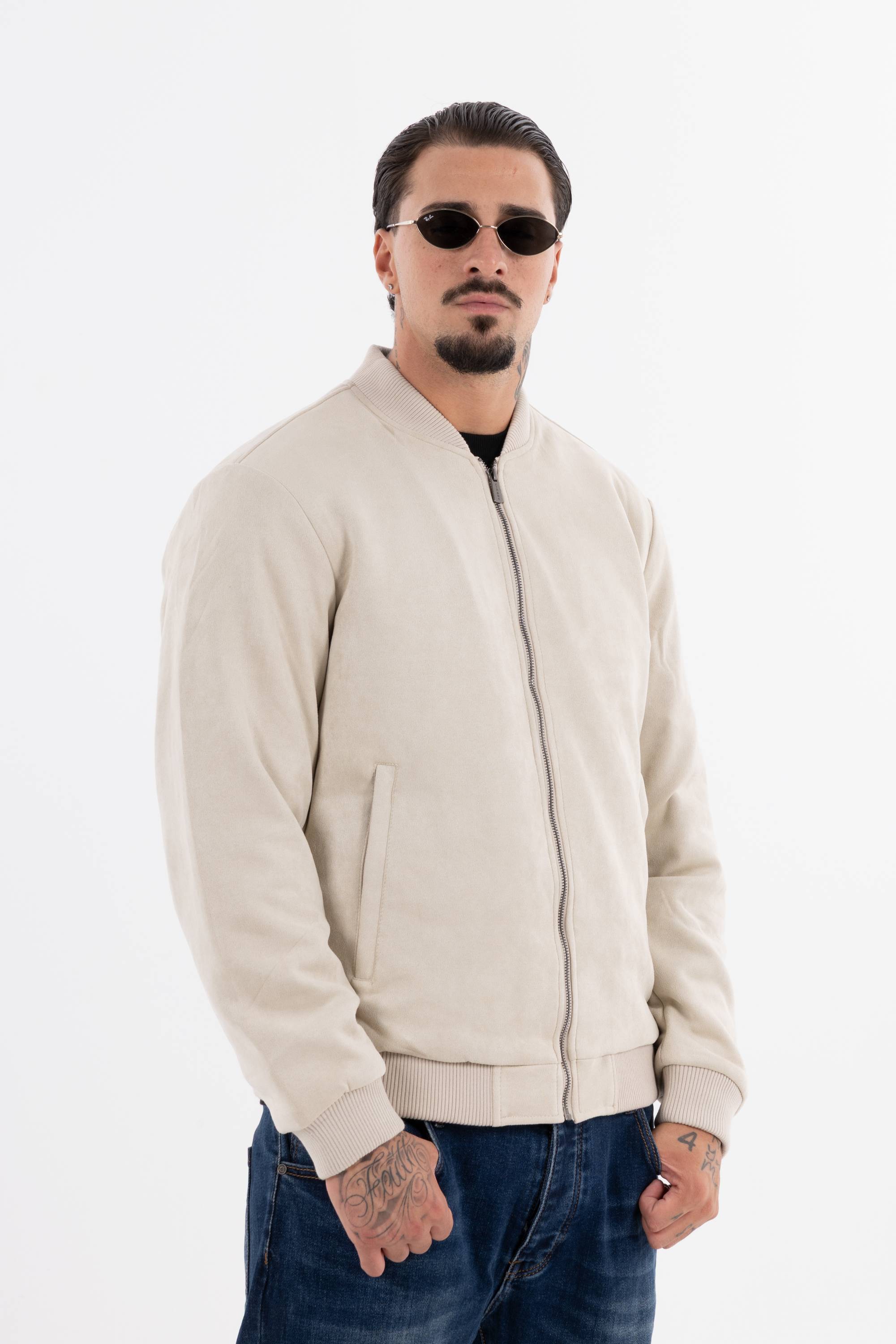 Giubbotto effetto camoscio in stile bomber con collo polsini e vita elasticizzati a contrasto e tasche frontali. Un capo di tendenza che dona un tocco deciso e contemporaneo al look quotidiano.