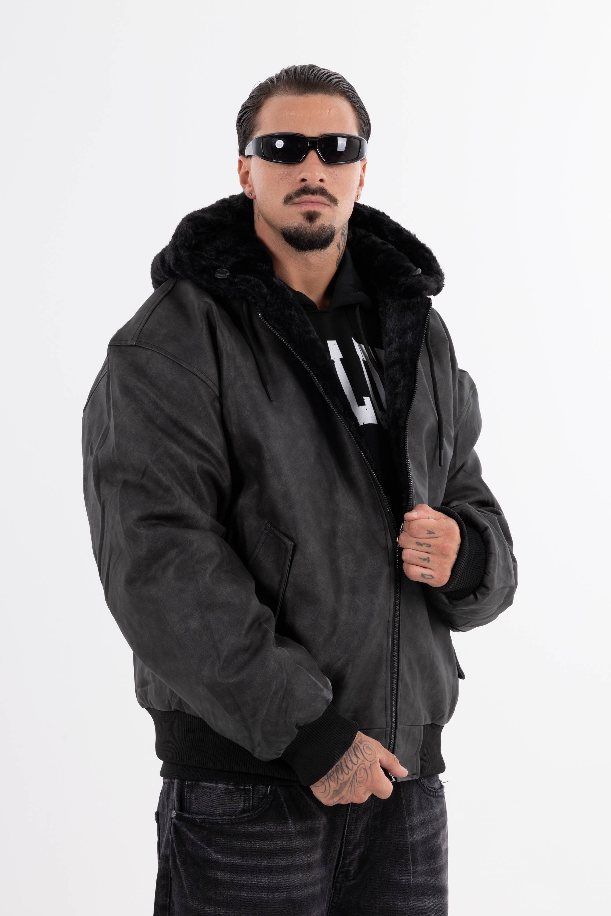 Giubbotto imbottito double face con un lato in pelliccia sintetica e l�altro effetto pelle. Un capo versatile e di carattere perfetto per cambiare stile con un solo gesto.
