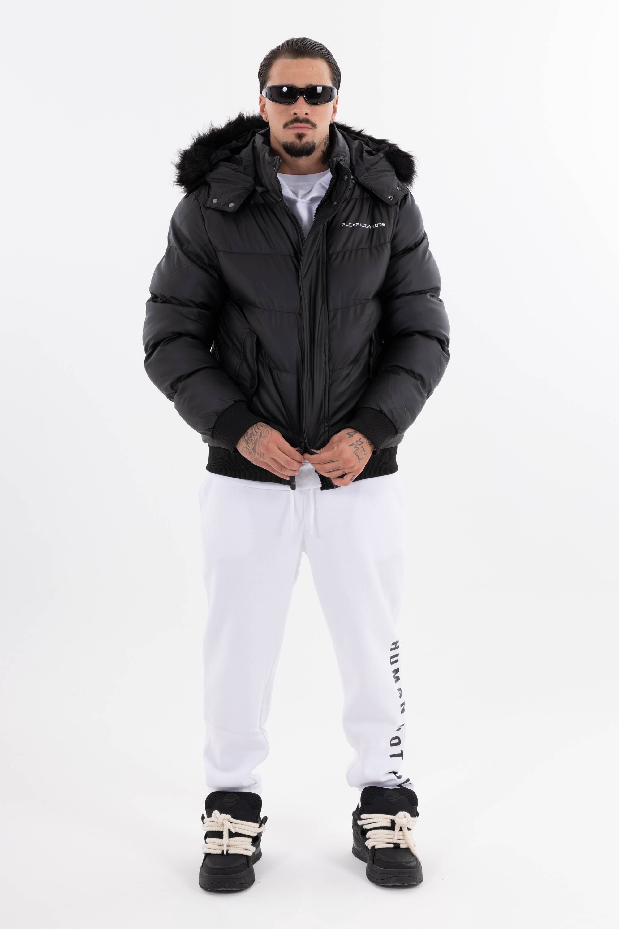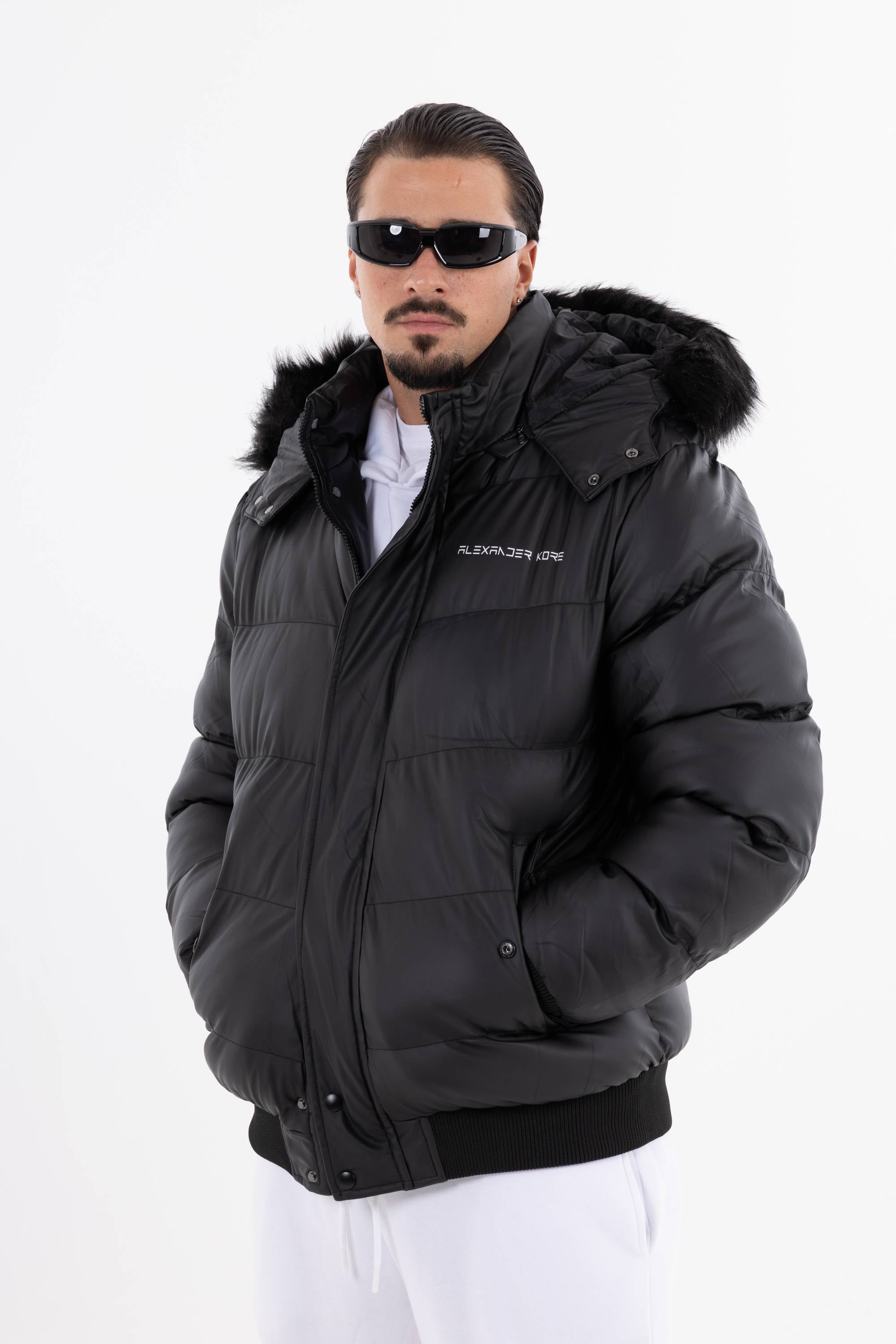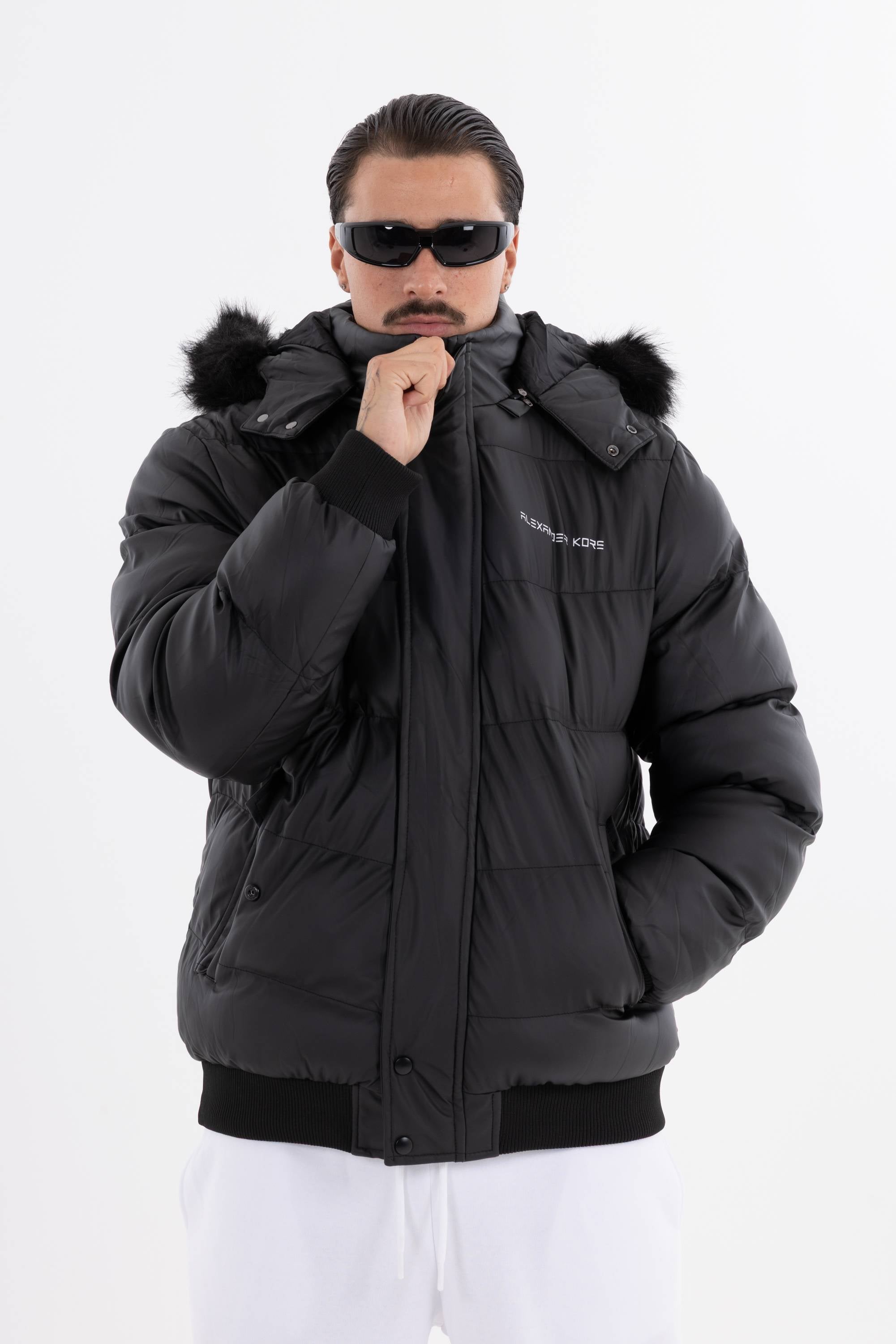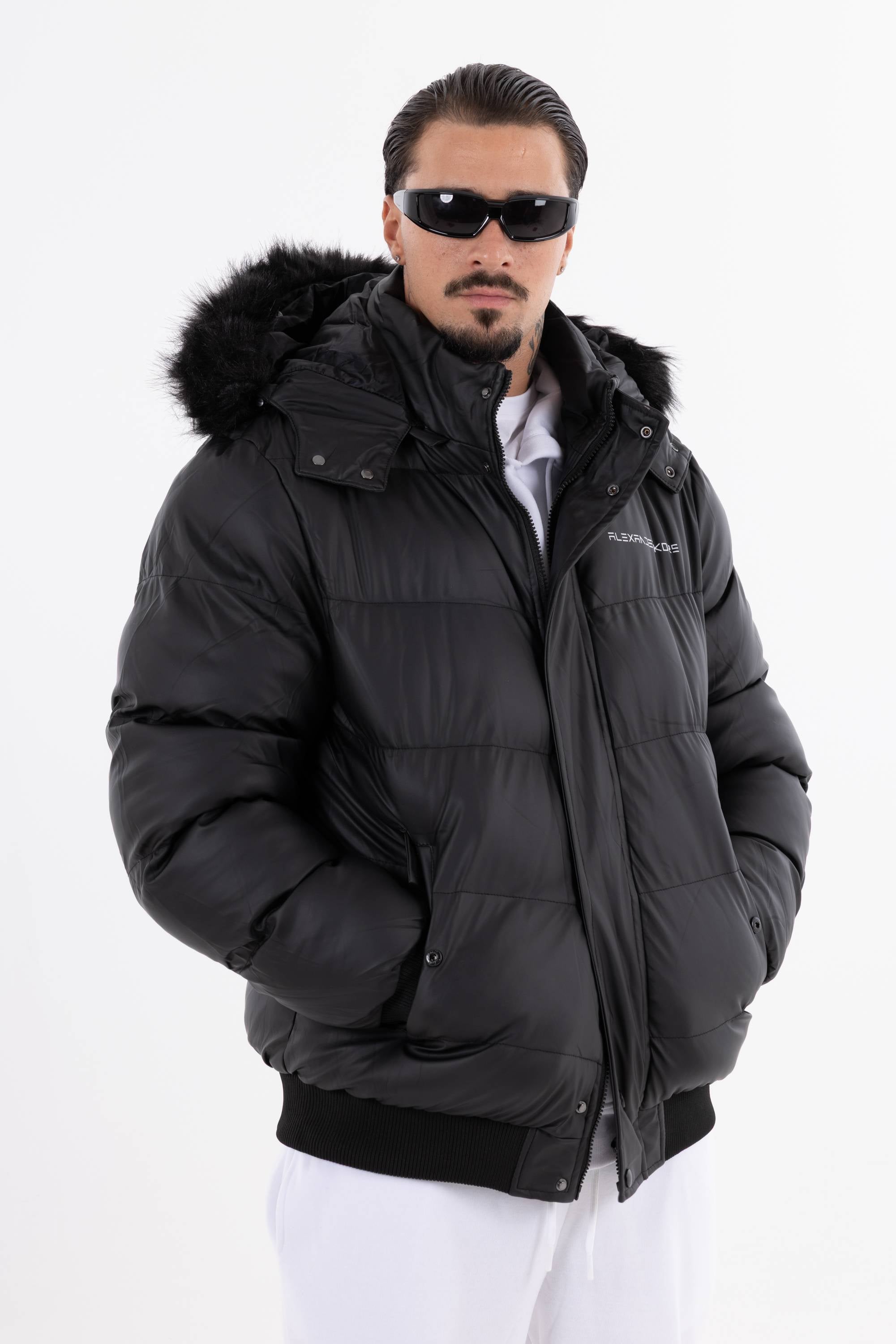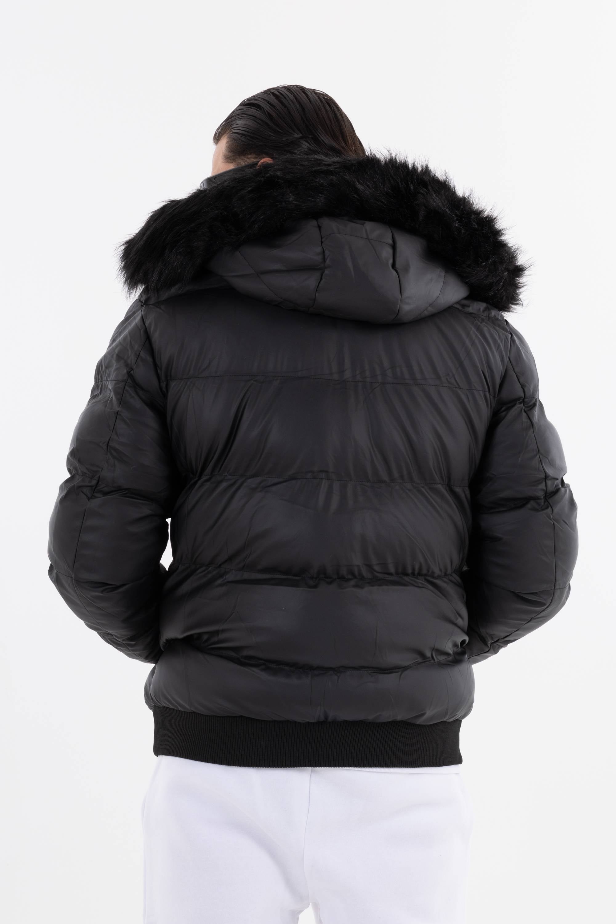 Giubbotto imbottito con polsini e vita in tessutoa contrasto cappuccio con pelliccia sintetica staccabile e pratiche tasche frontali. Un capo comodoe di tendenza per affrontare il freddo con stile.