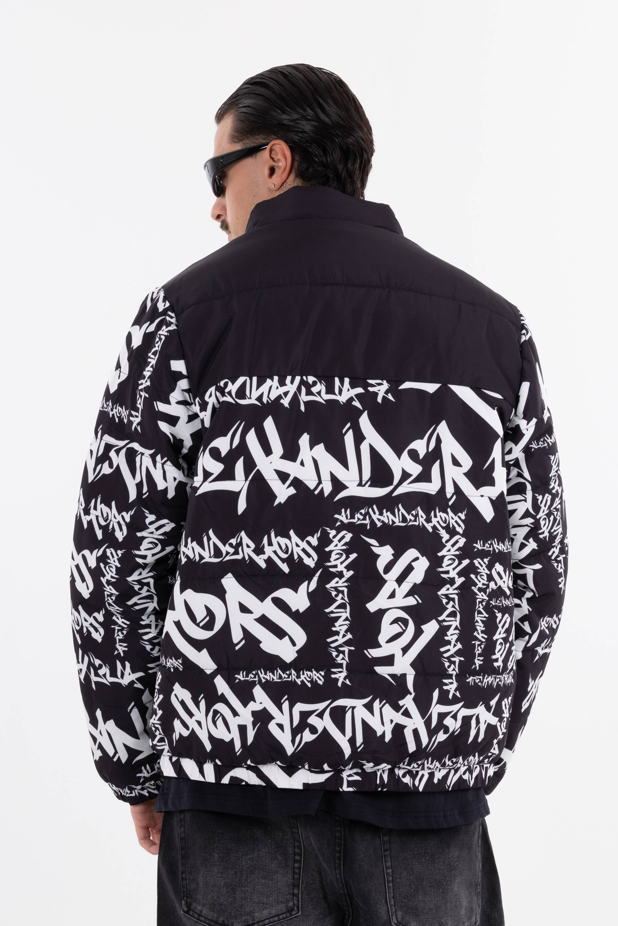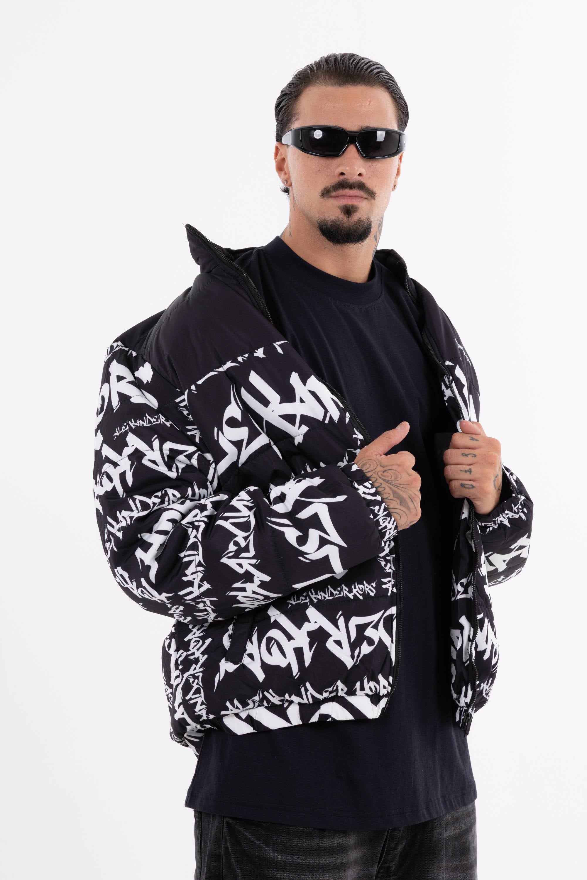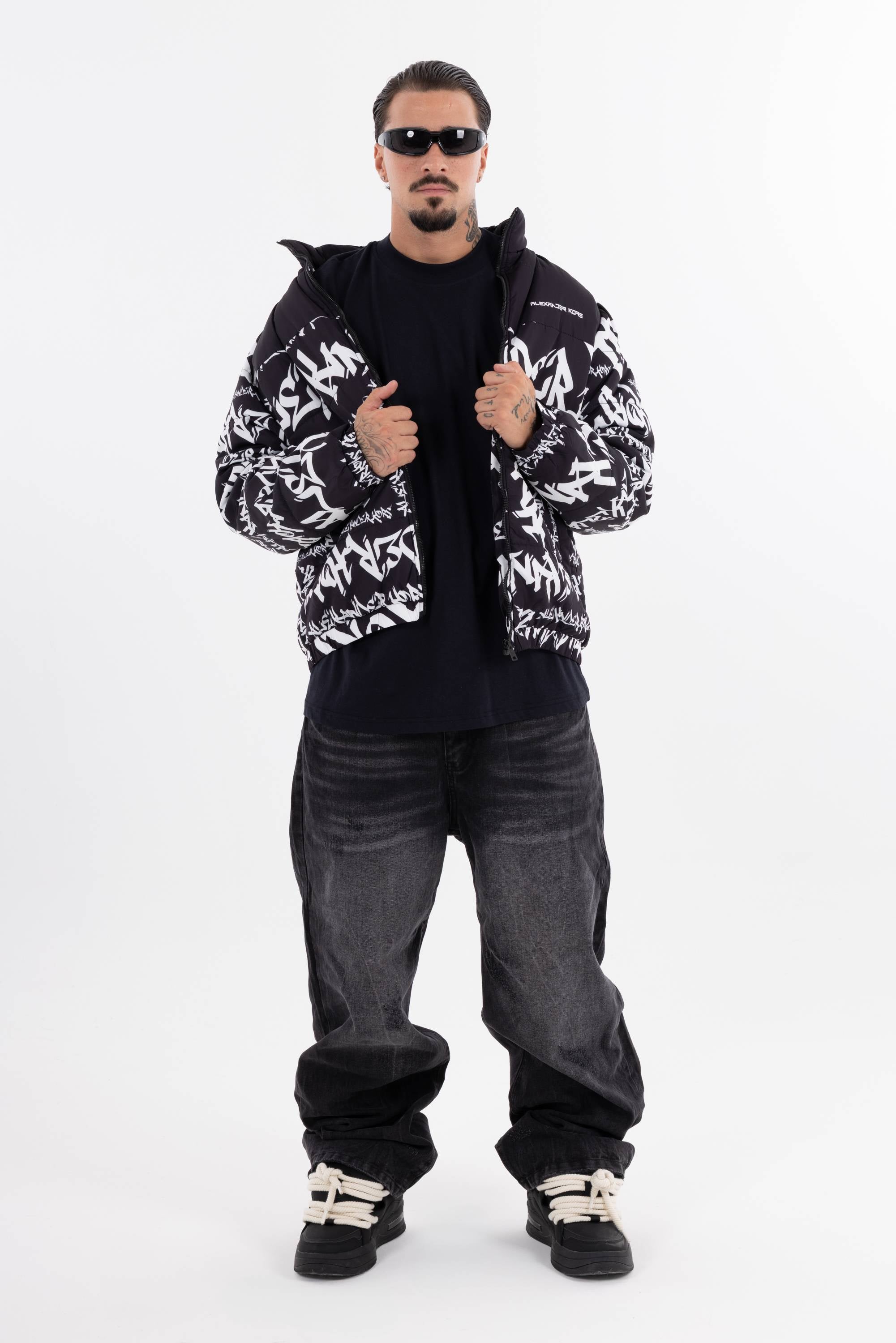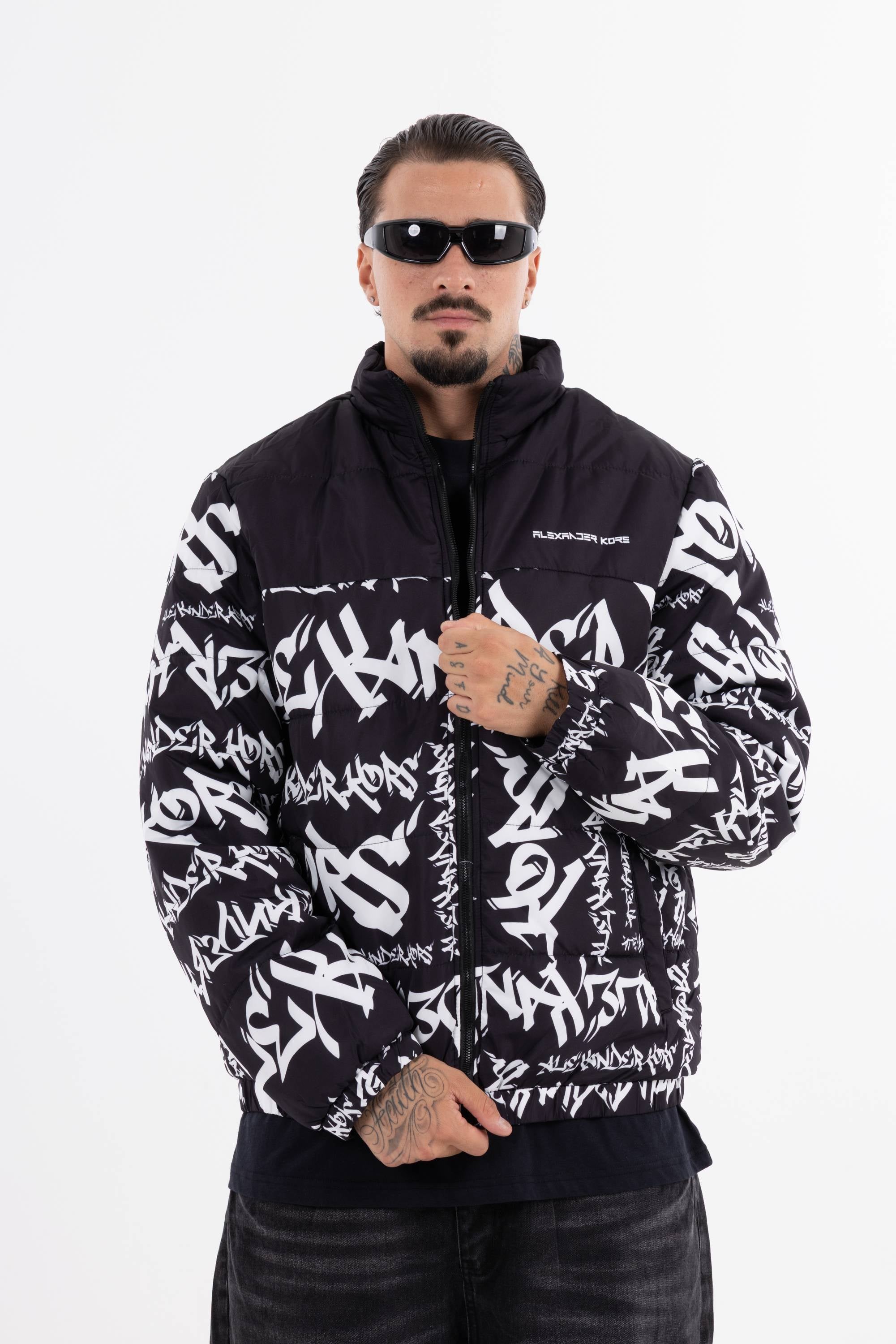 Giubbotto imbottito con pattern grafico all over effetto graffiti e dettagli a contrasto. Un capo bold e urbano pensato per chi vuole affrontare il freddo con stile e personalit�.