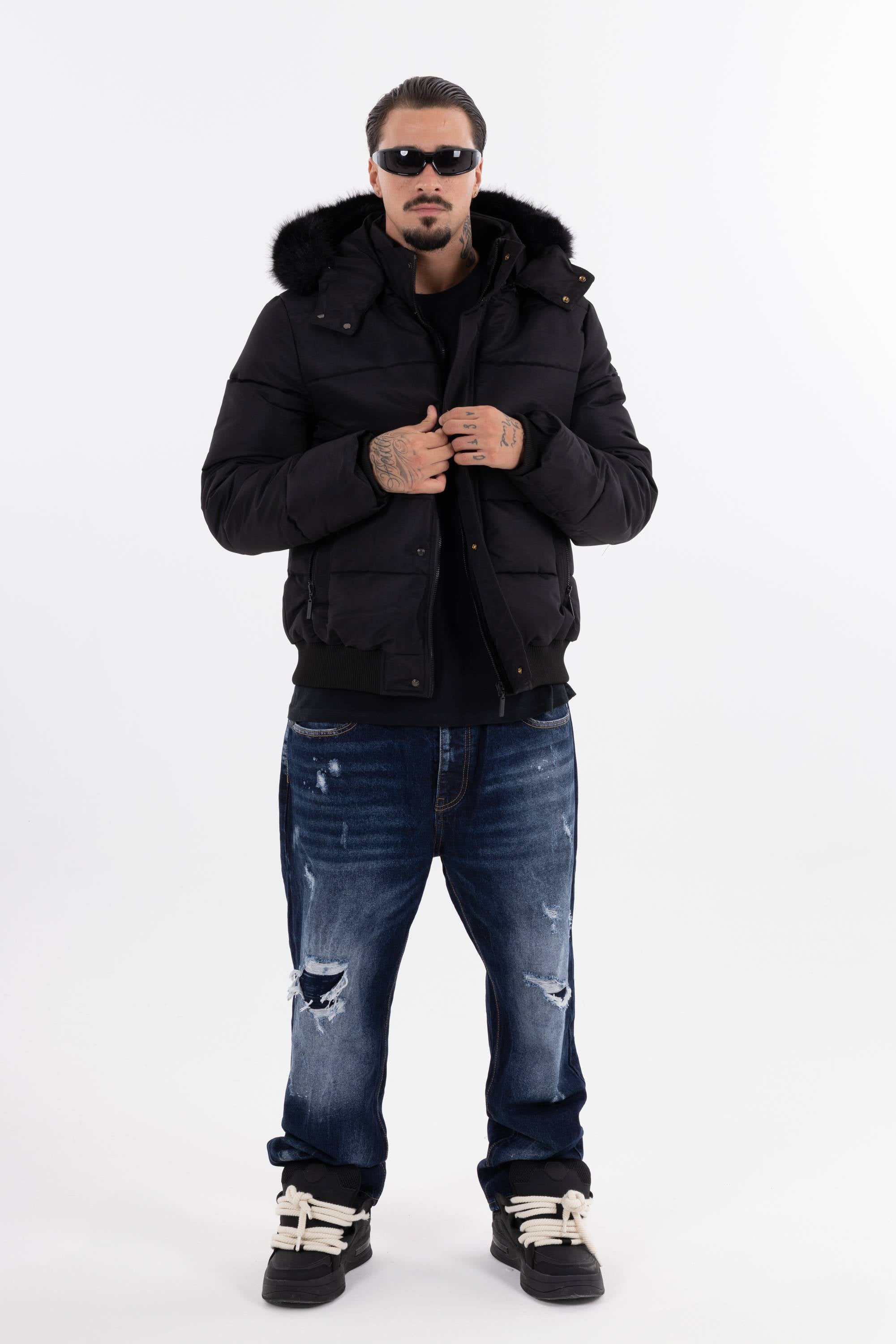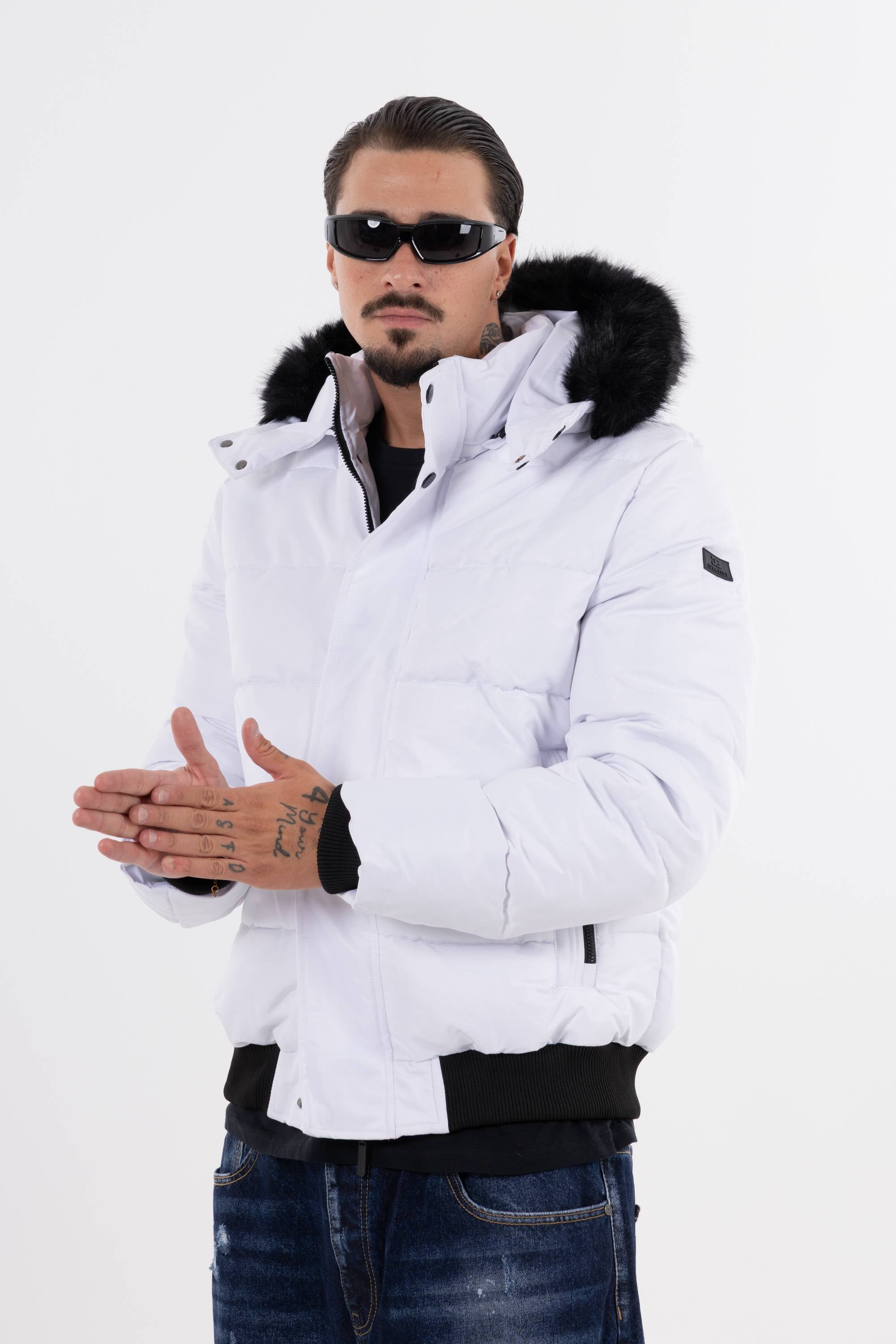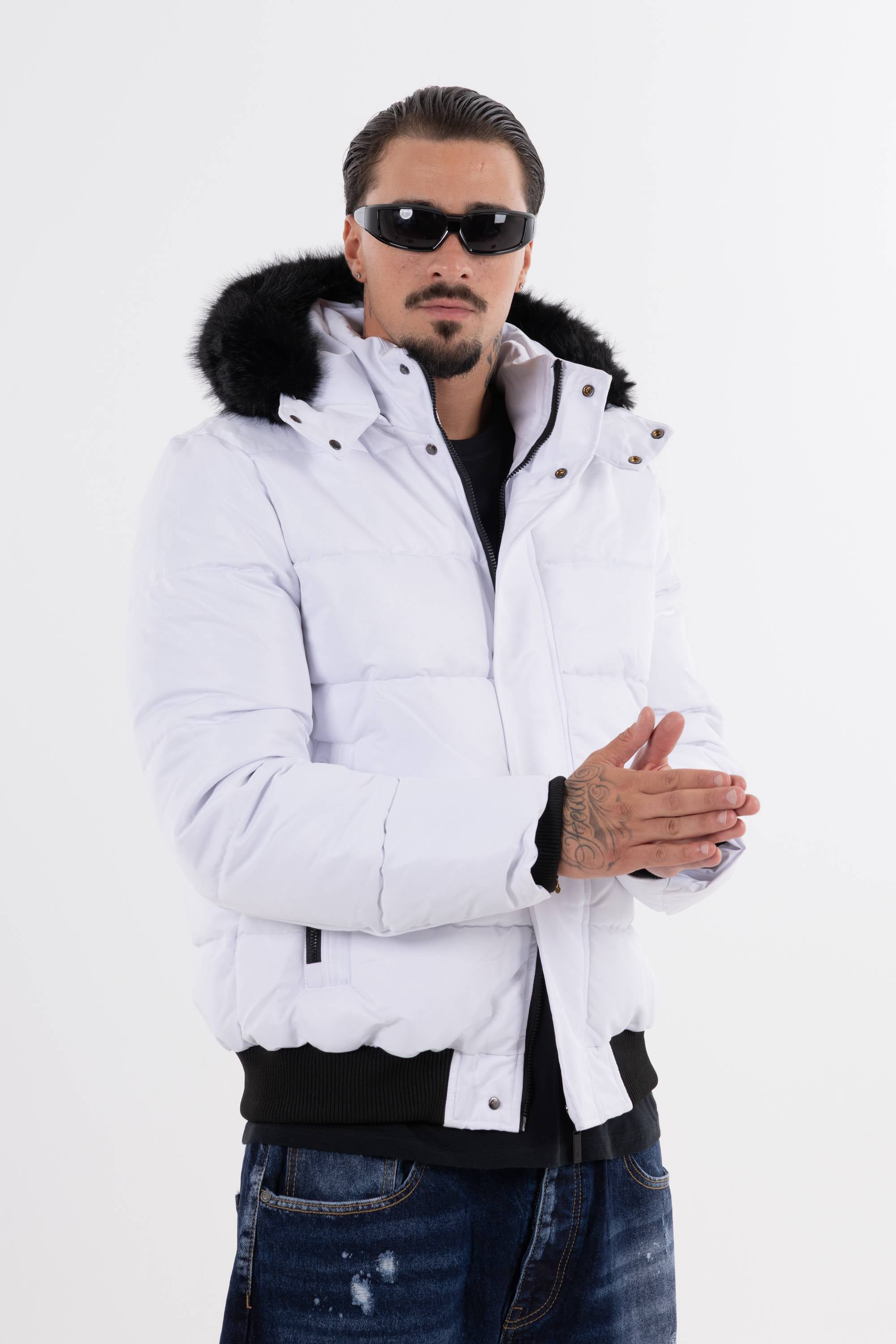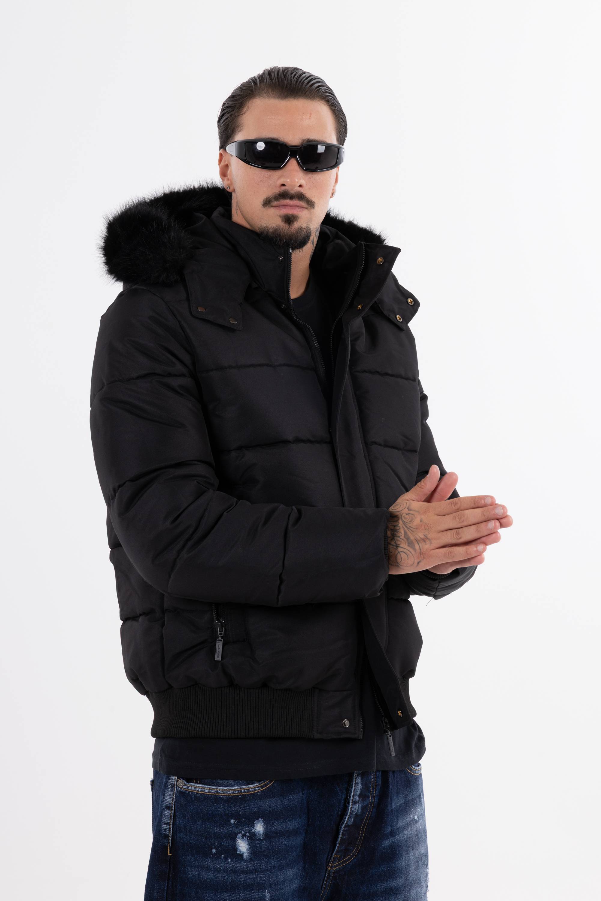 Giubbotto imbottito con cappuccio con pelliccia sintetica e pratiche tasche sul davanti. Un capo caldo e versatile perfetto per un look di carattere.