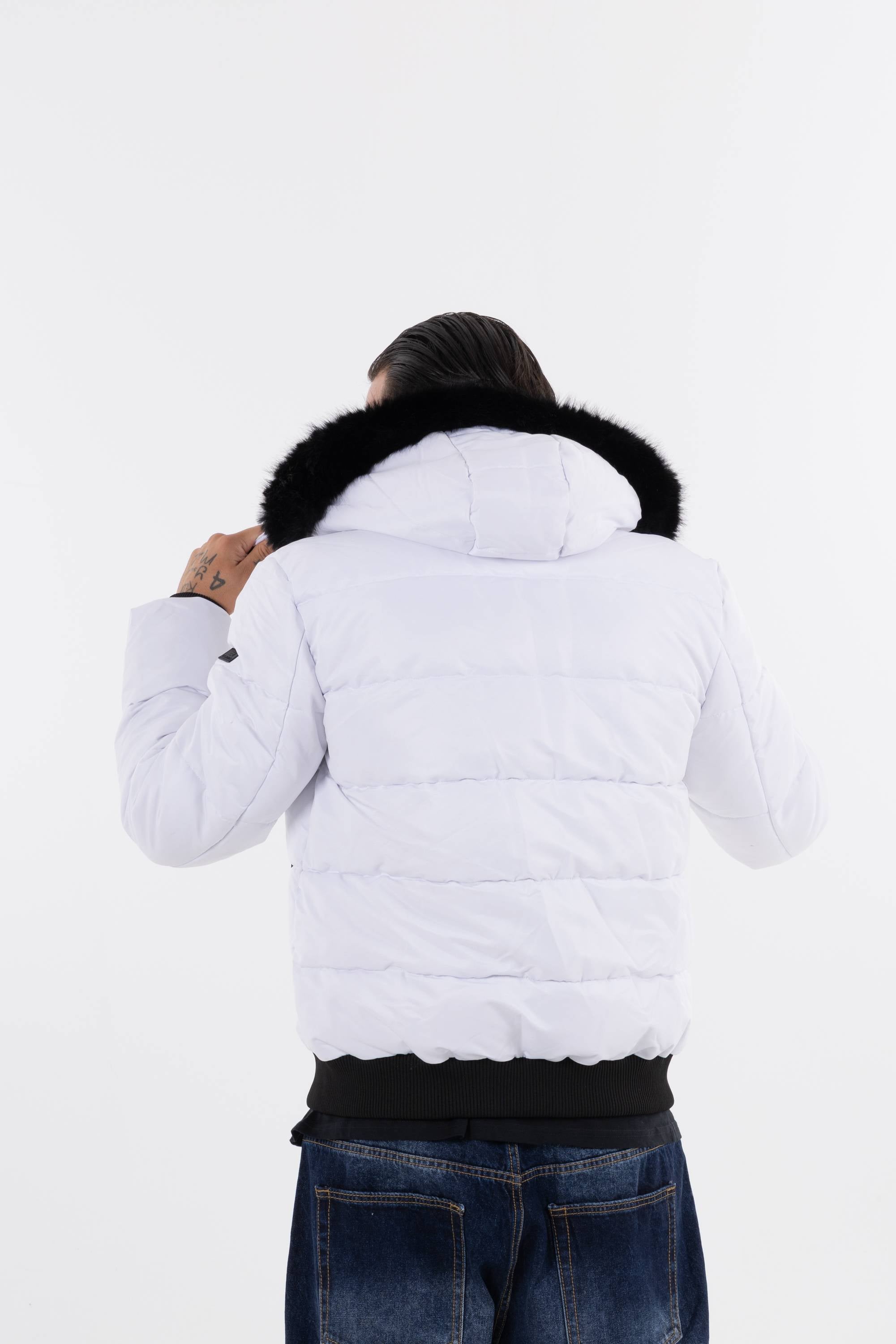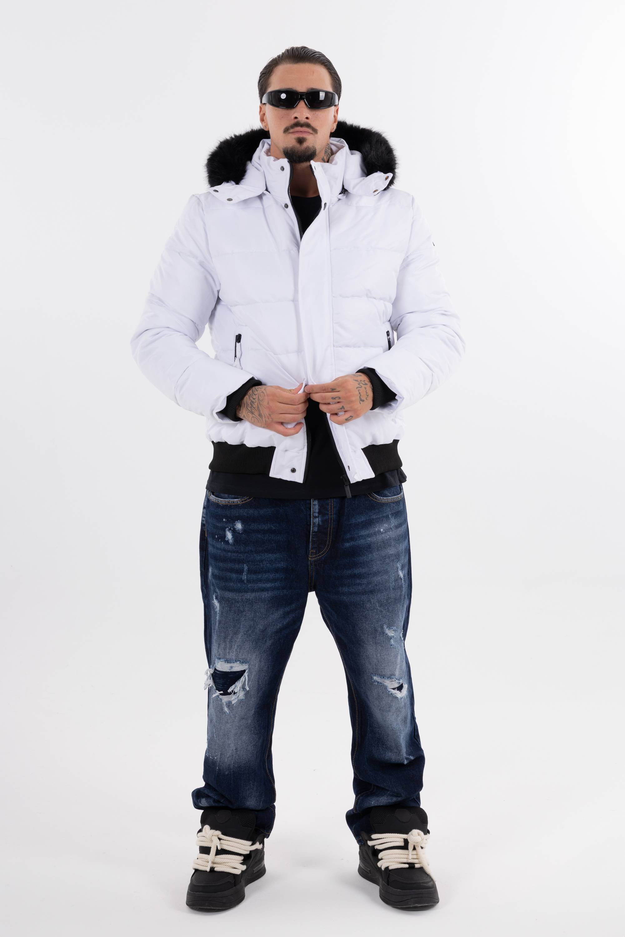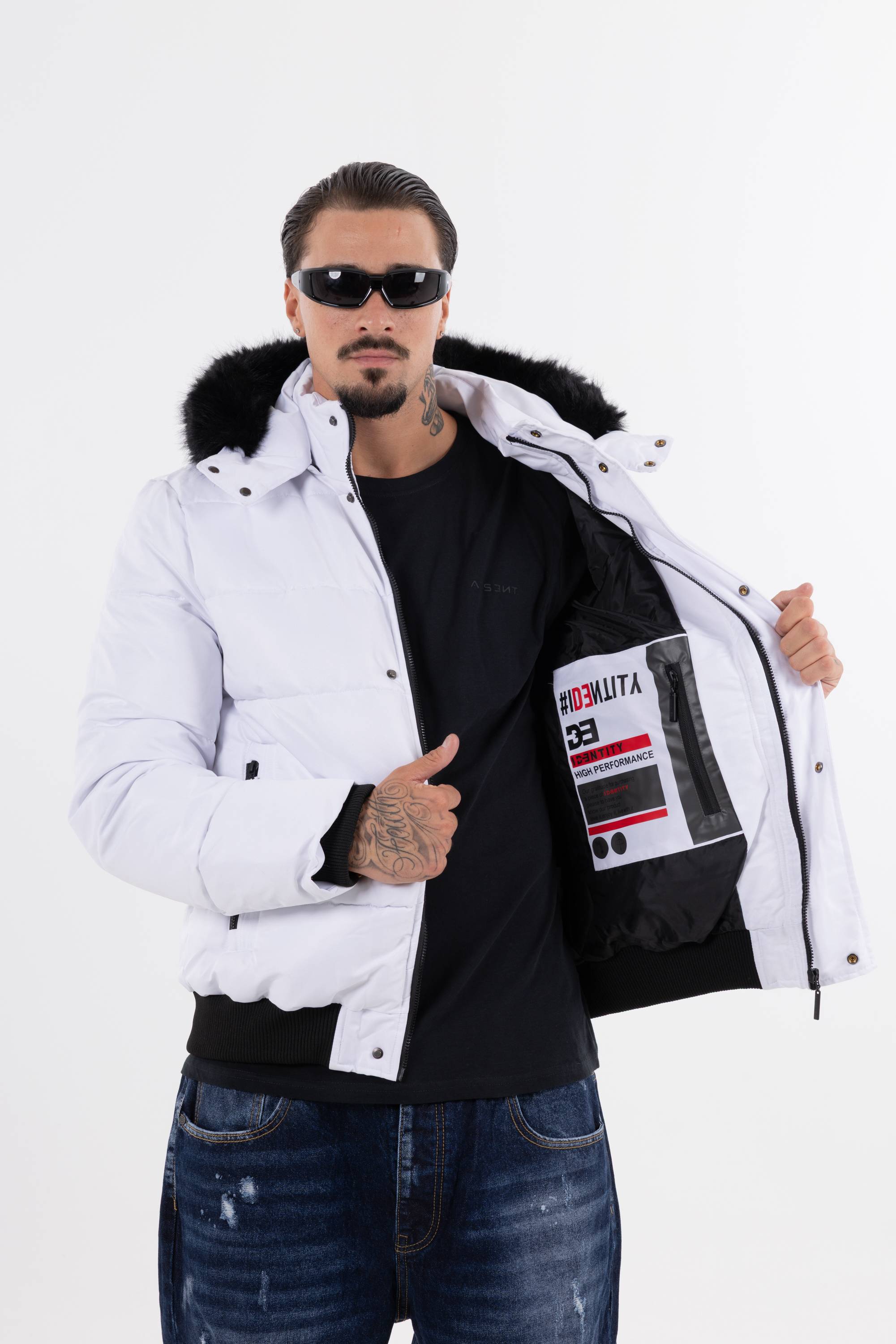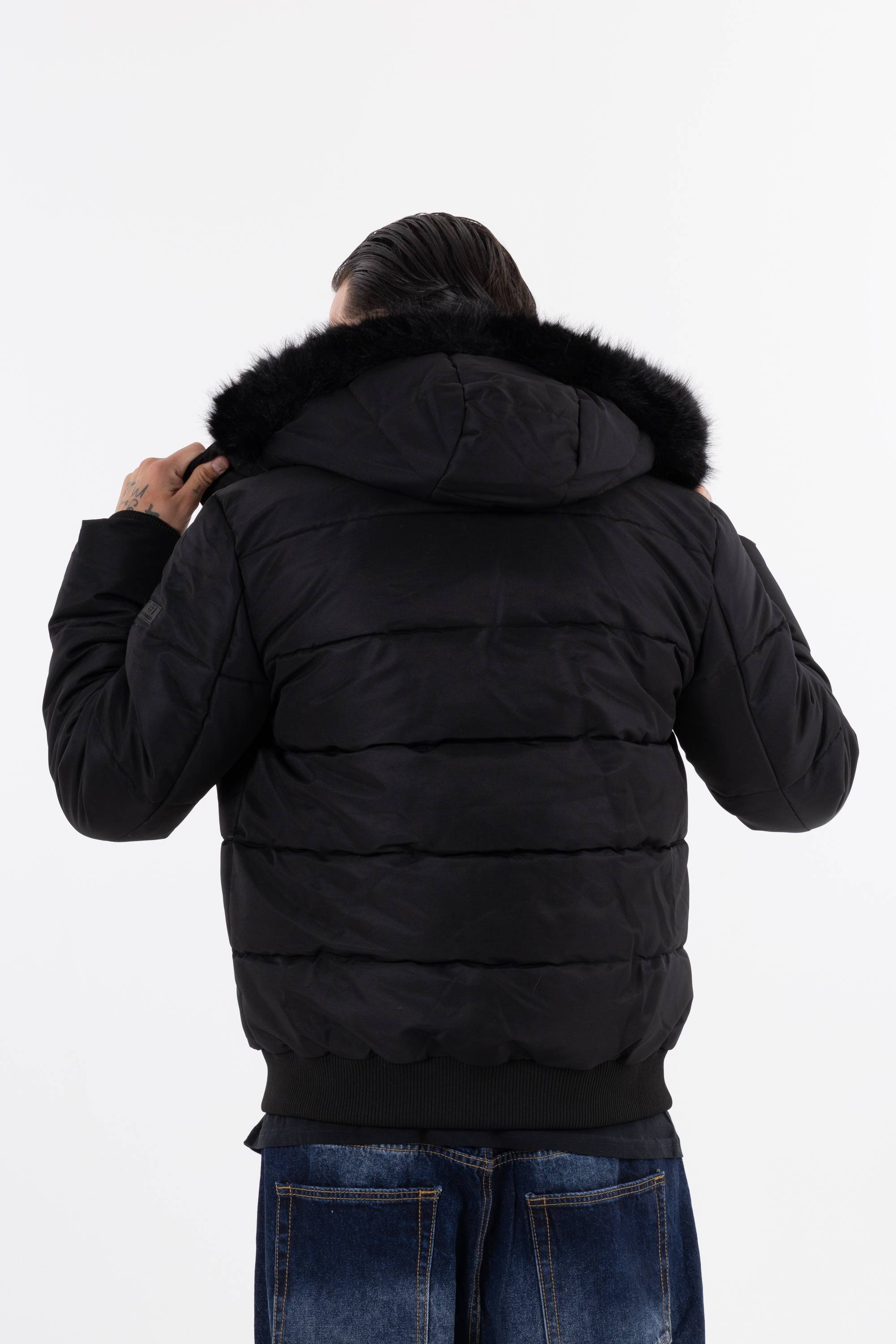 Giubbotto imbottito con cappuccio con pelliccia sintetica e pratiche tasche sul davanti. Un capo caldo e versatile perfetto per un look di carattere.