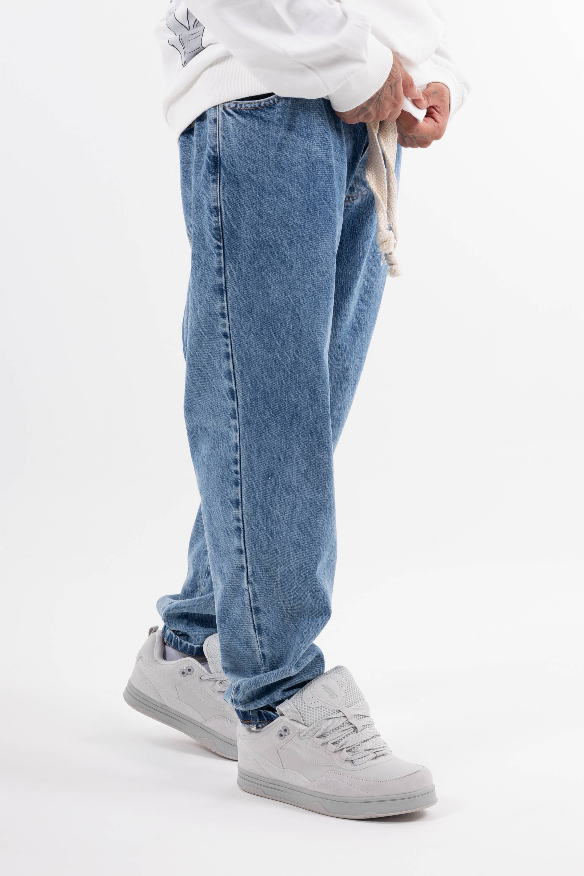 Jeans con fit comodo risvolti alle caviglie coulisse e maxi laccetti in vita. Un modello dal moodrilassato e contemporaneo perfetto per look casual dal carattere informale e originale.