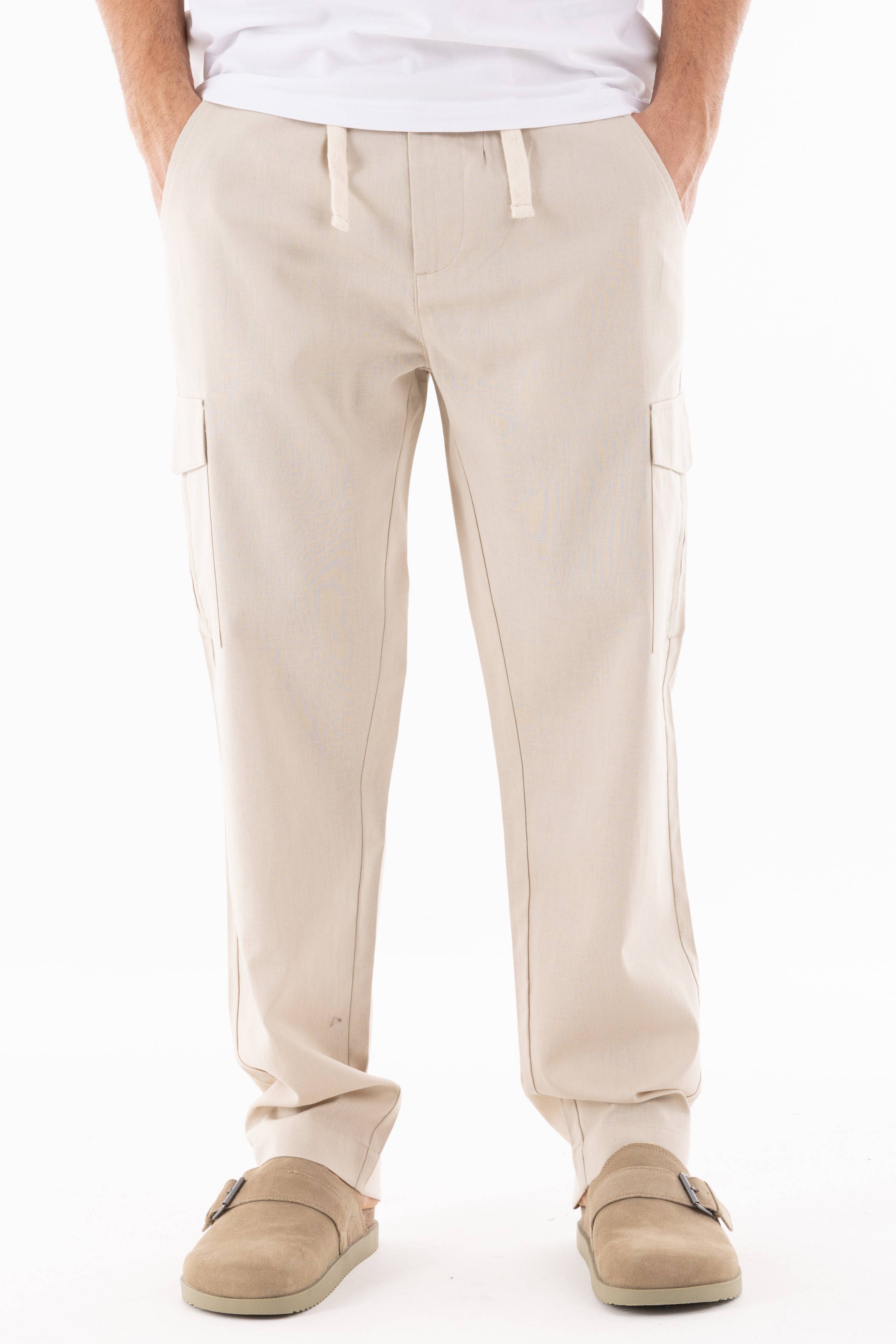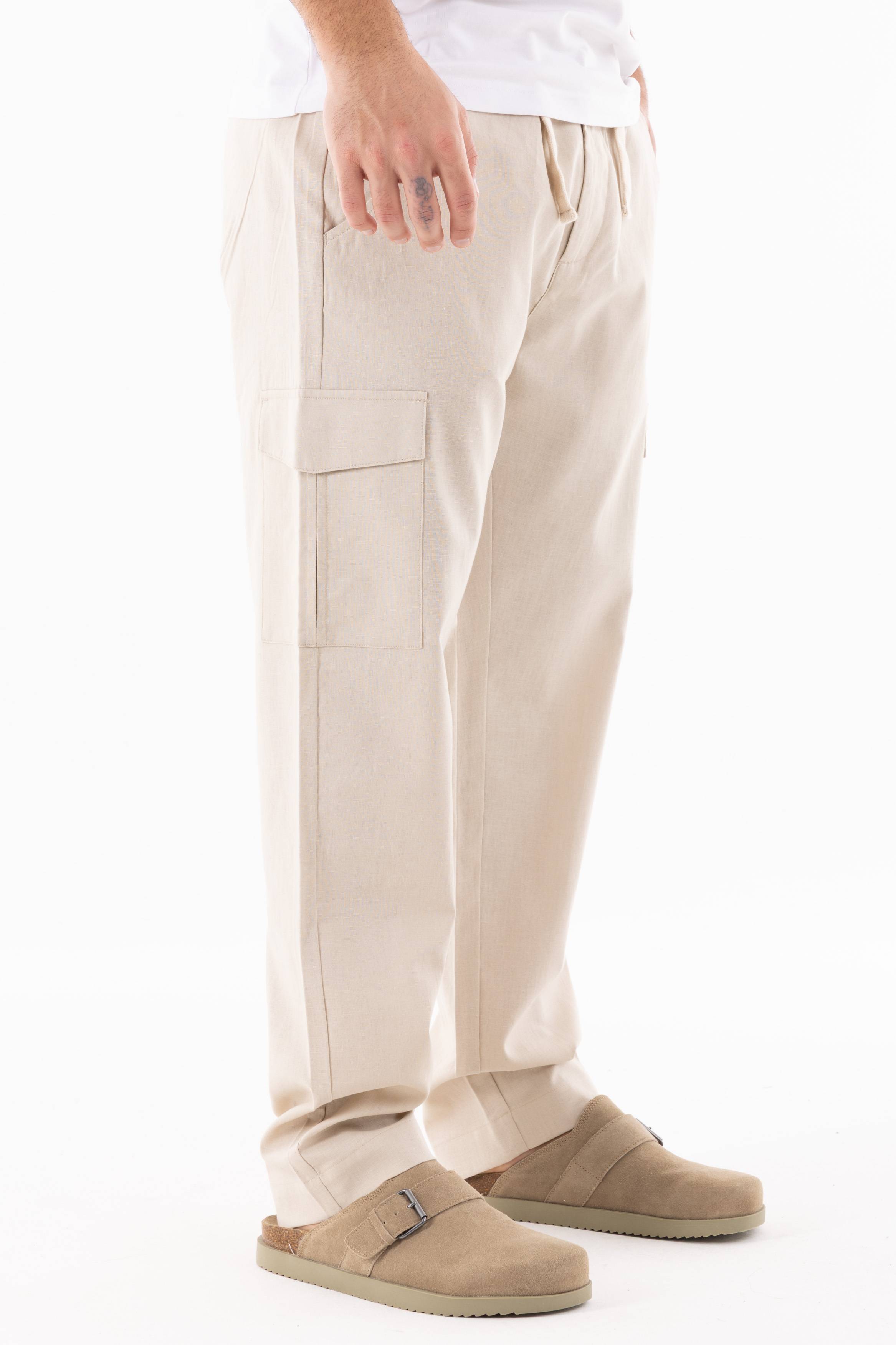 PANTALONI UOMO MISTO LINO CARGO - BEIGE / 42 ...è stato ordinato al fornitore e verrà spedito non appena sarà di nuovo disponibile.