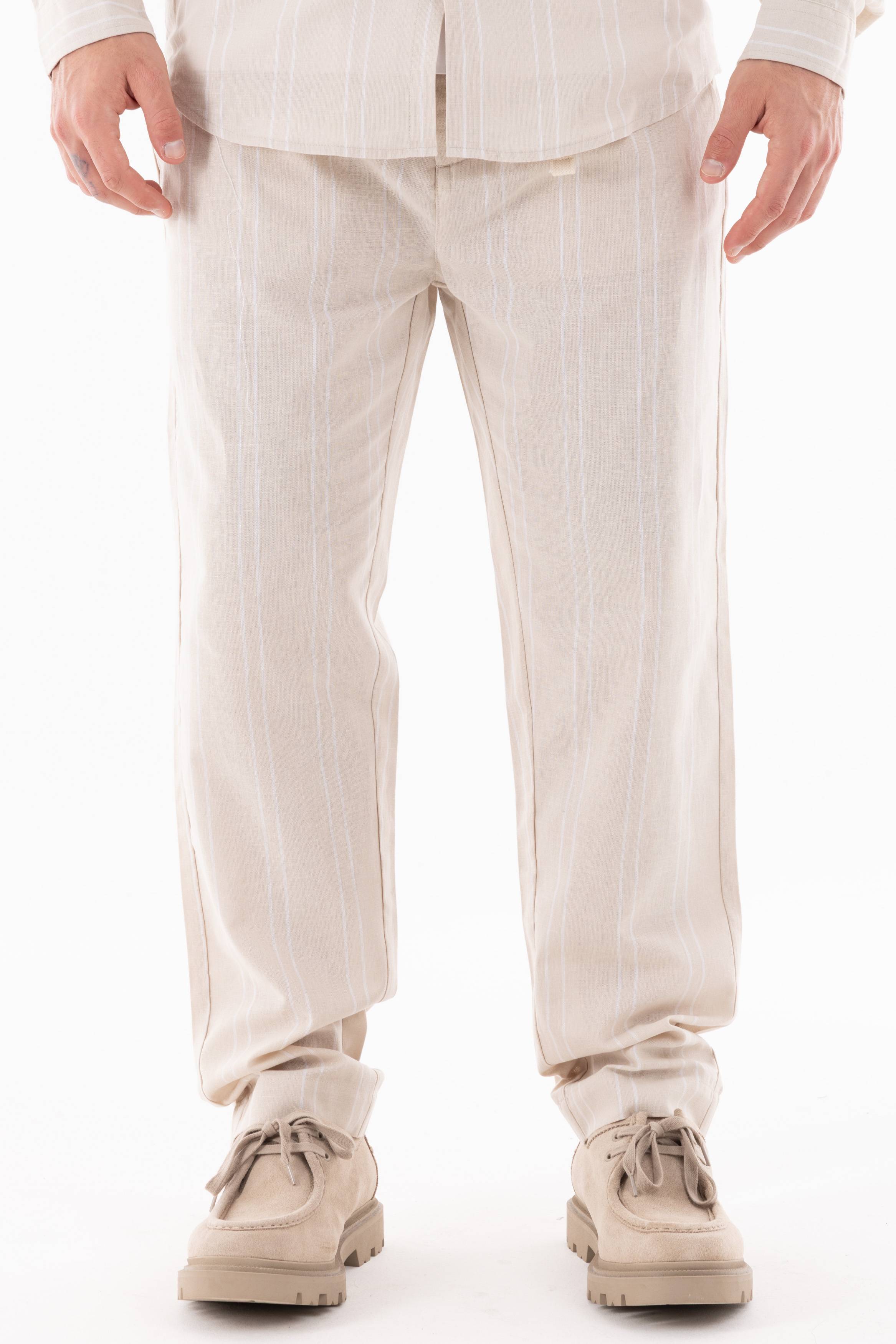 PANTALONI UOMO MISTO LINO - BEIGE/BIANCO / 42 ...è stato ordinato al fornitore e verrà spedito non appena sarà di nuovo disponibile.