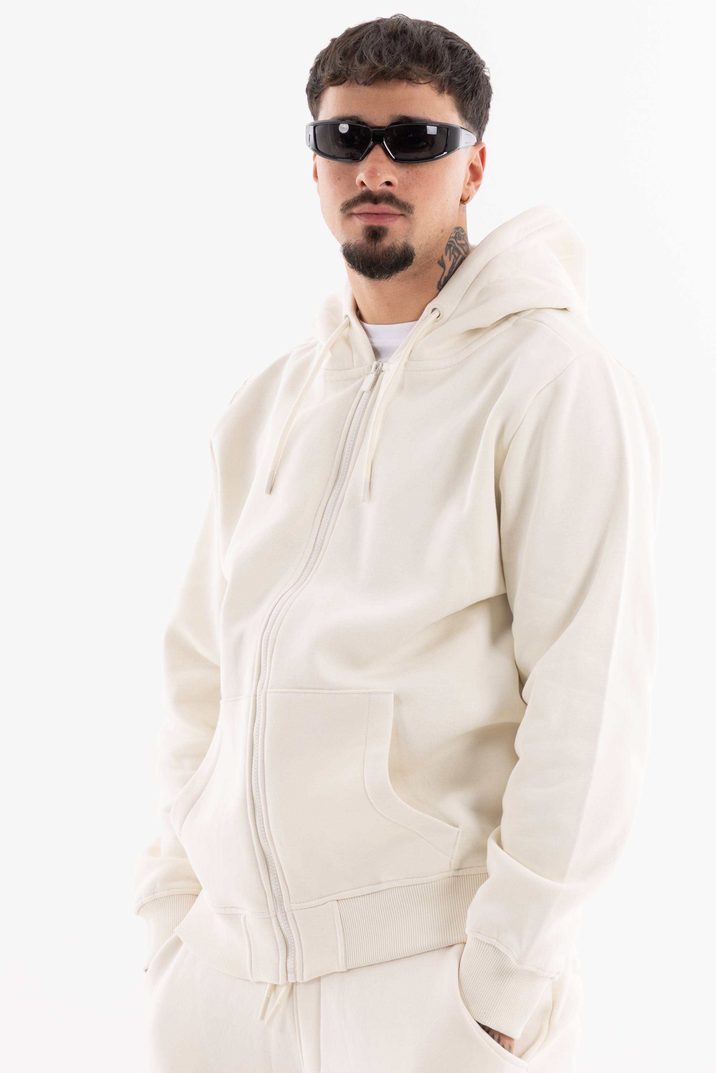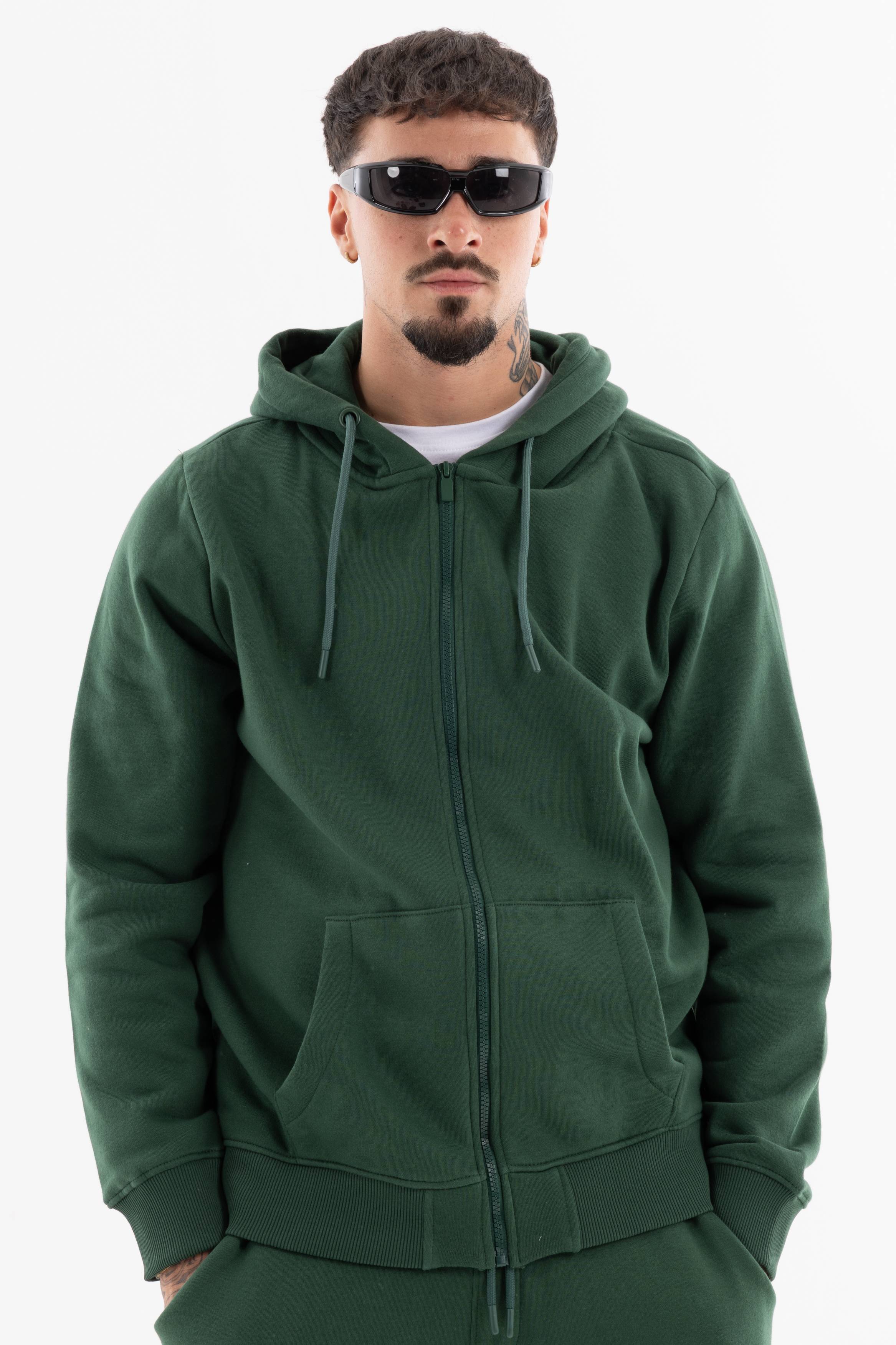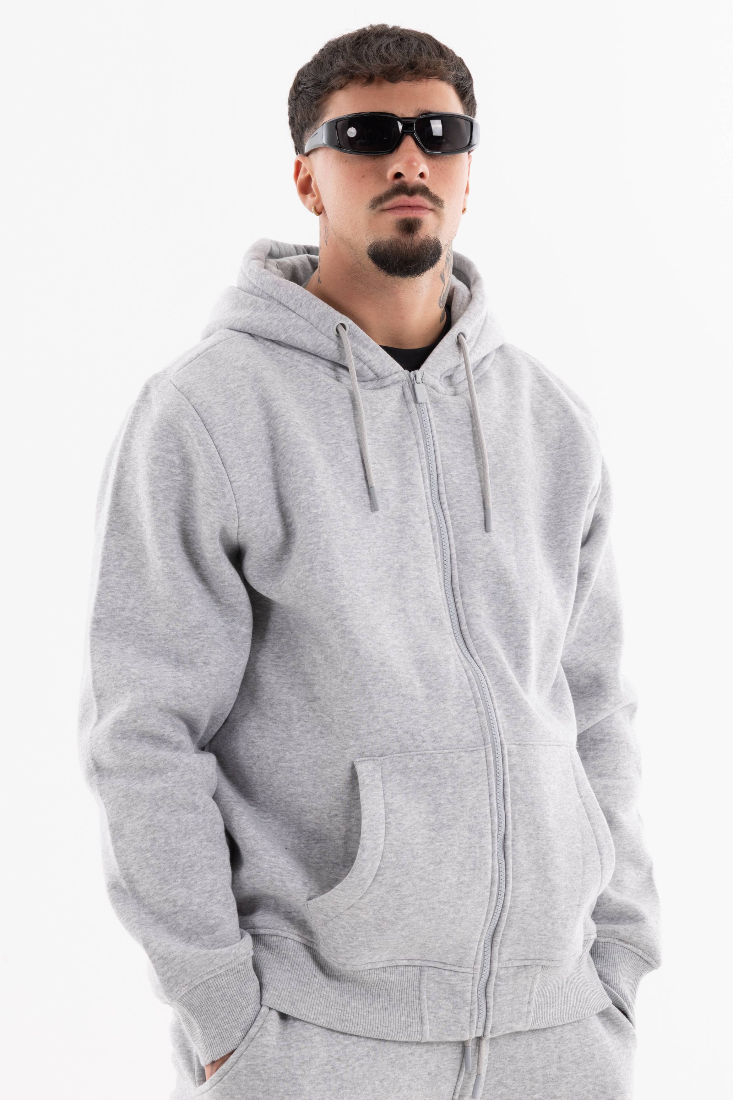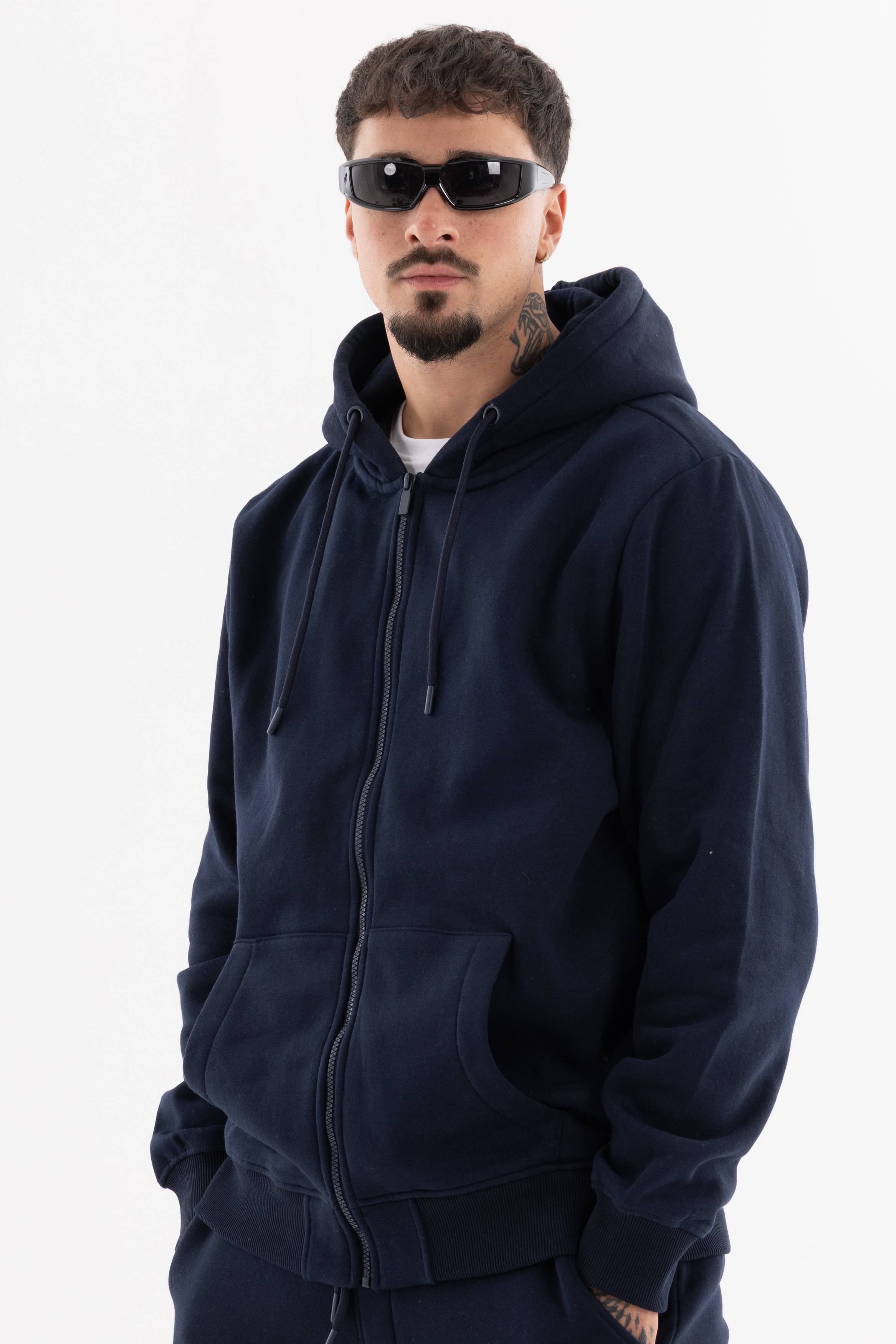 Felpa uomo basic con cappuccio e chiusura con zip. Capo versatile e leggero ideale per un look casual dal design sportivo. Disponibili joggers coordinabili.