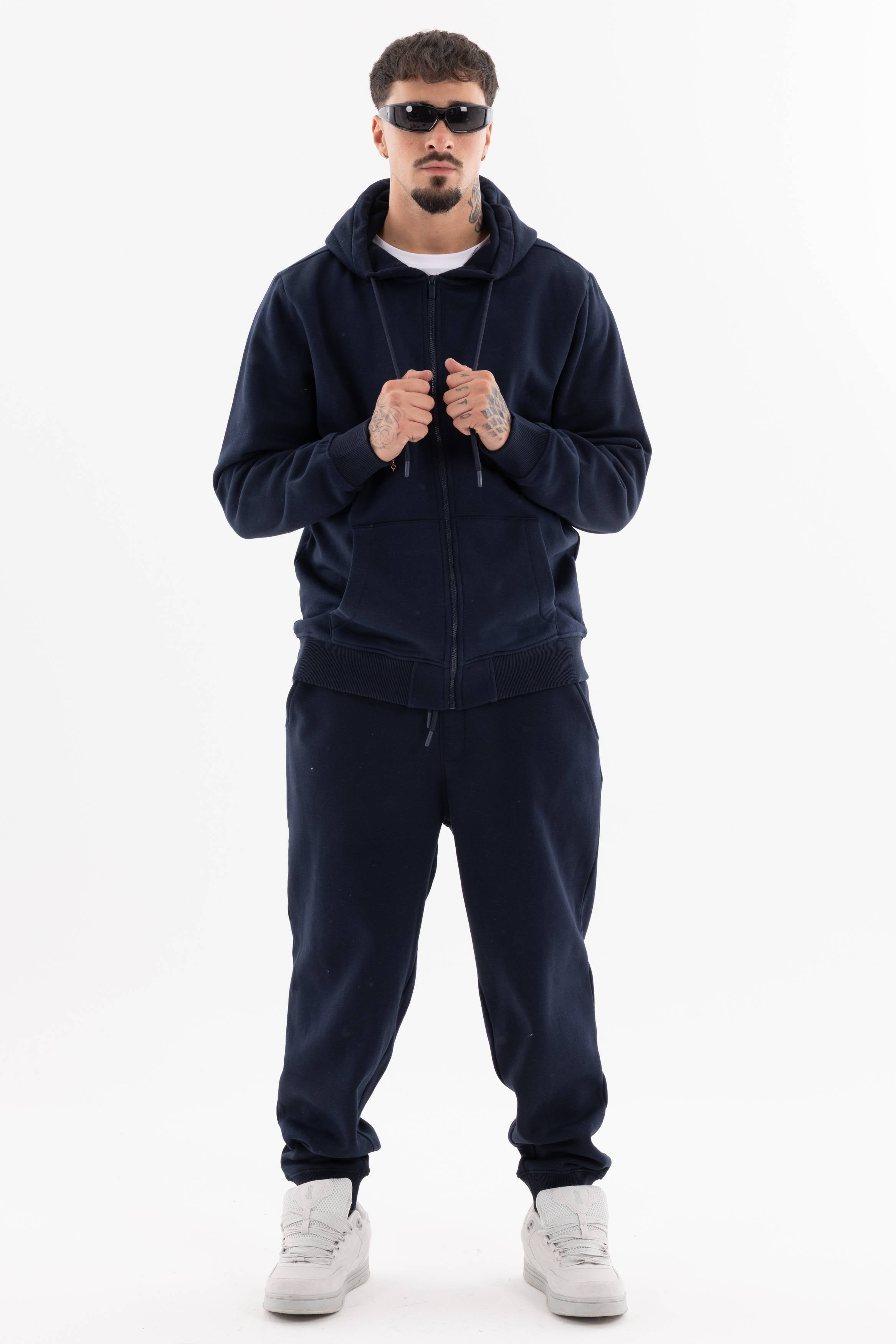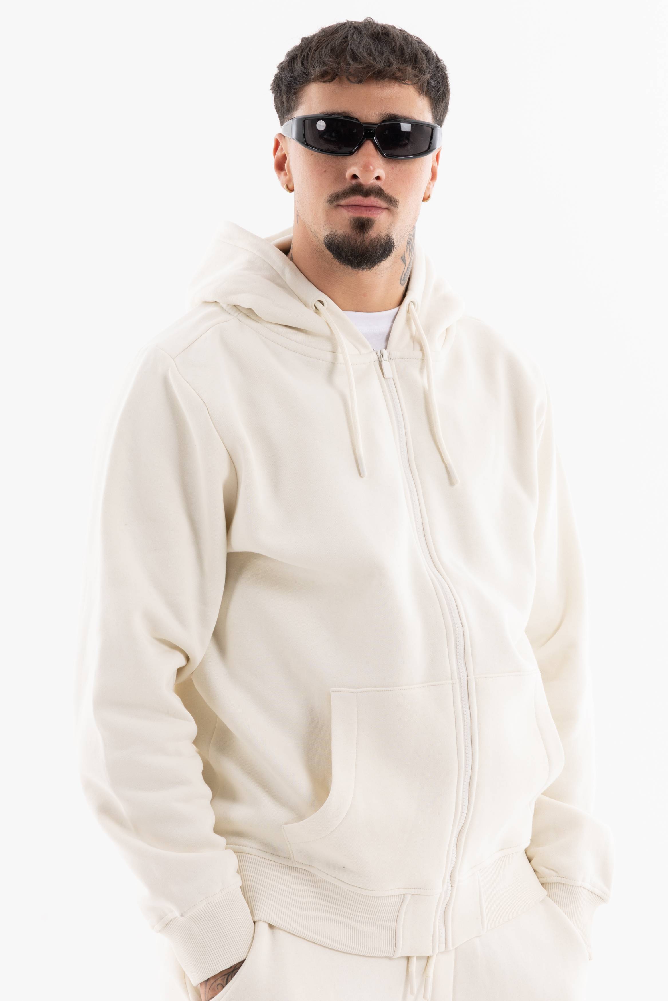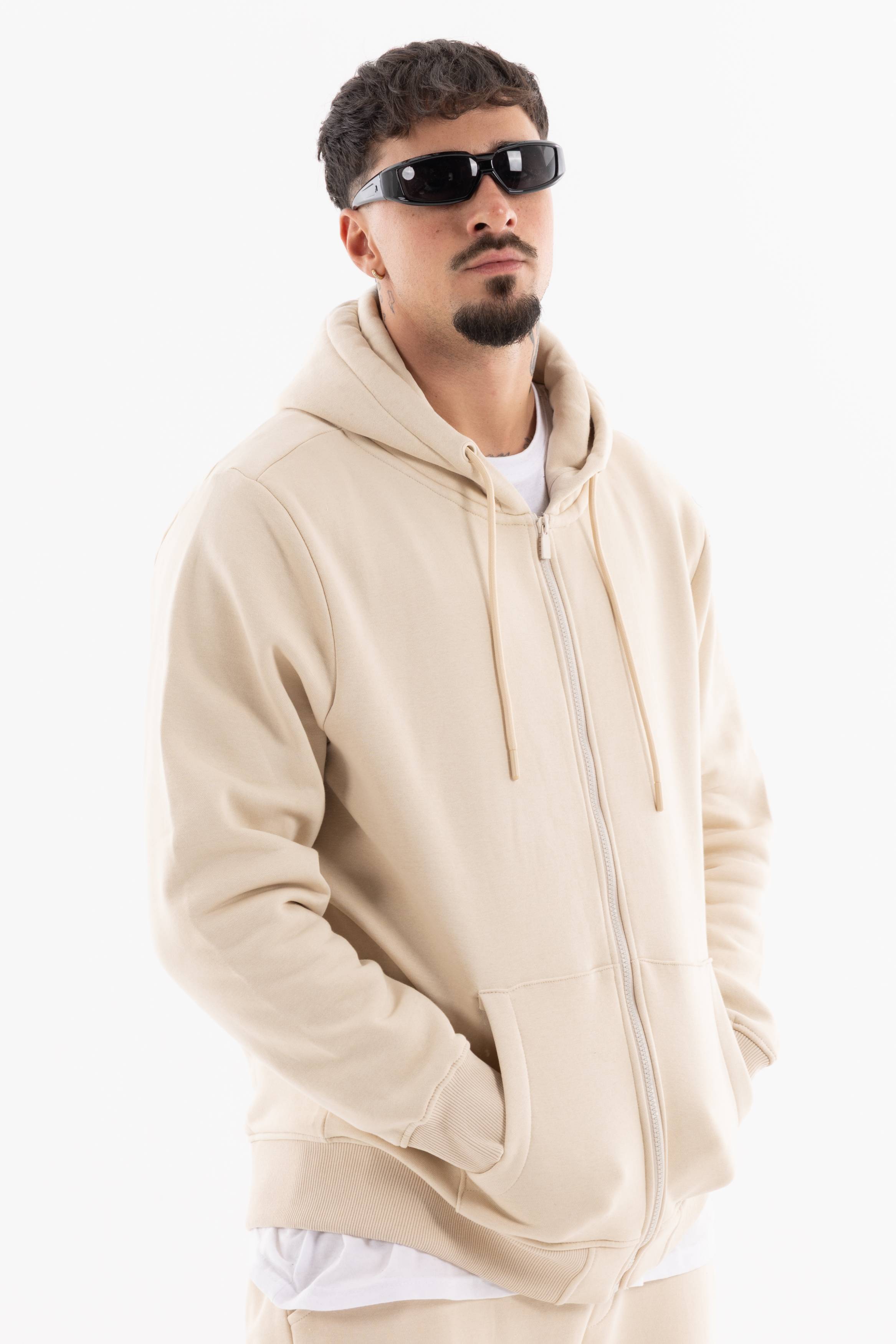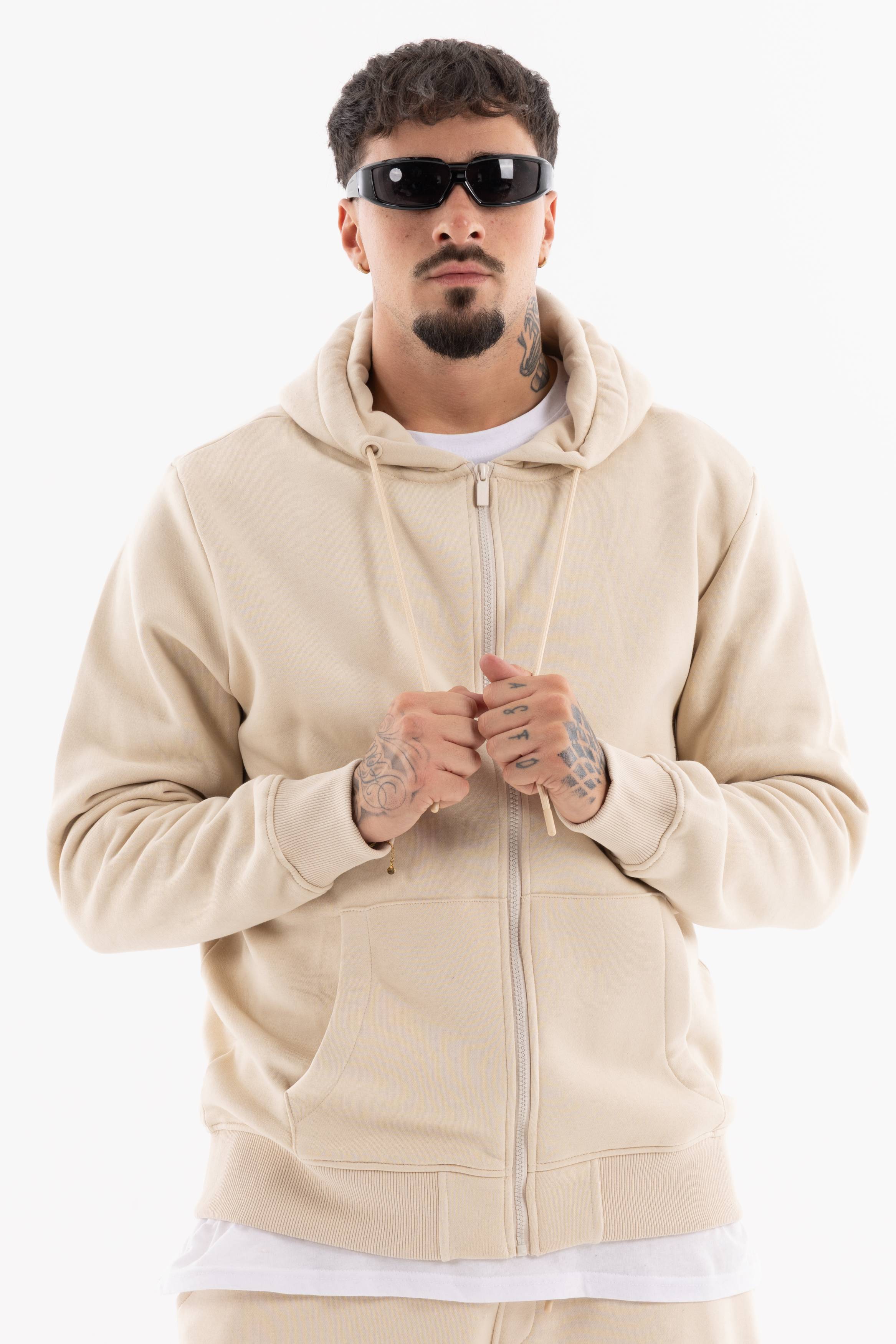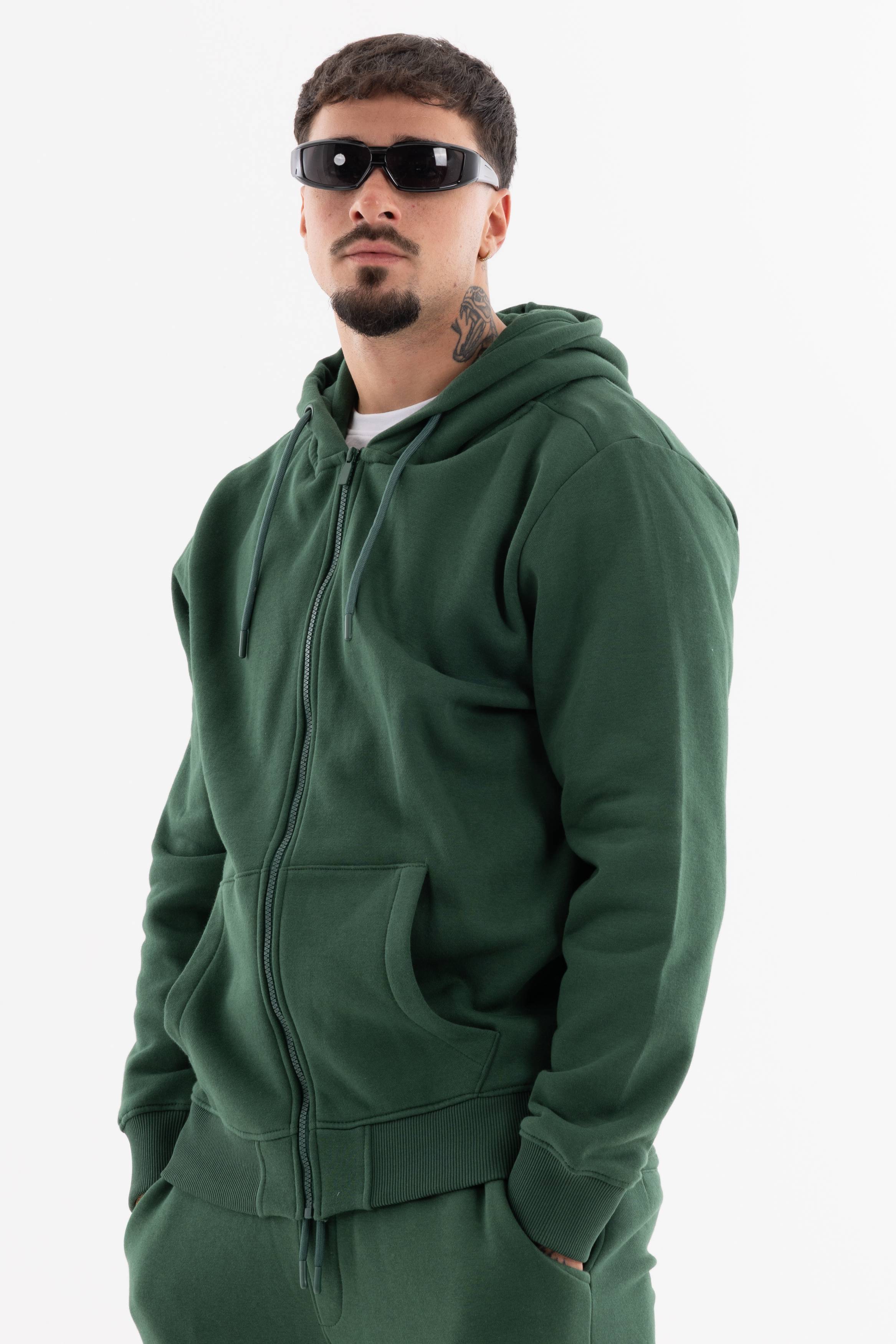 Felpa uomo basic con cappuccio e chiusura con zip. Capo versatile e leggero ideale per un look casual dal design sportivo. Disponibili joggers coordinabili.