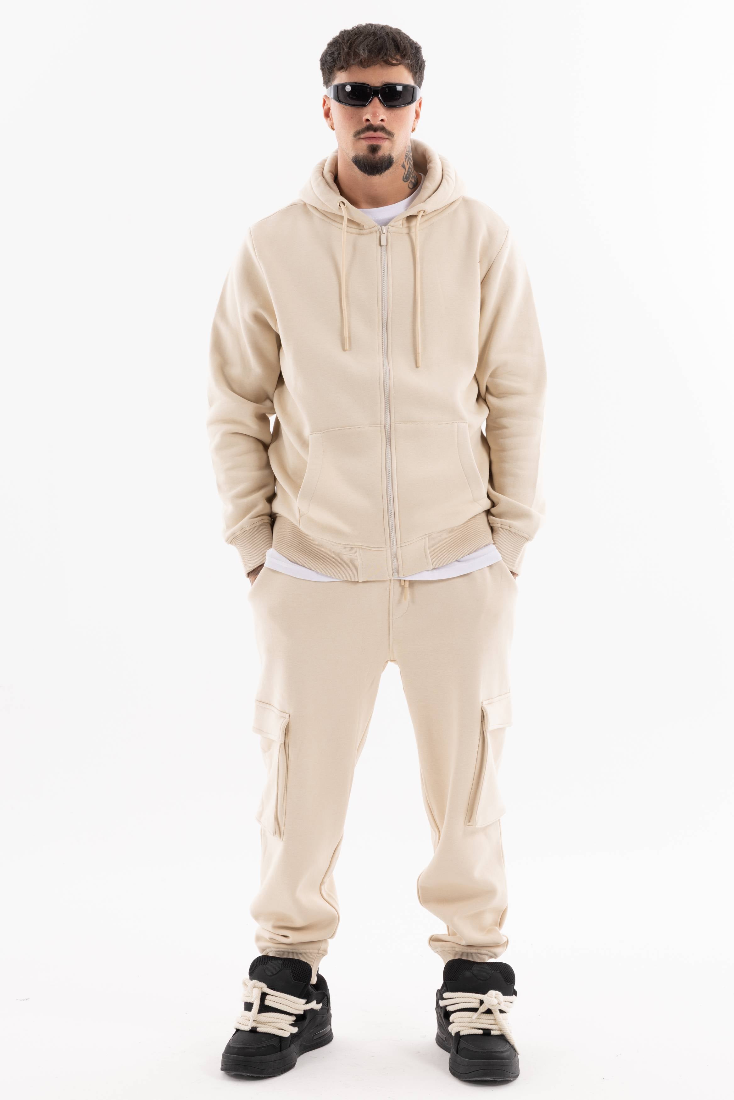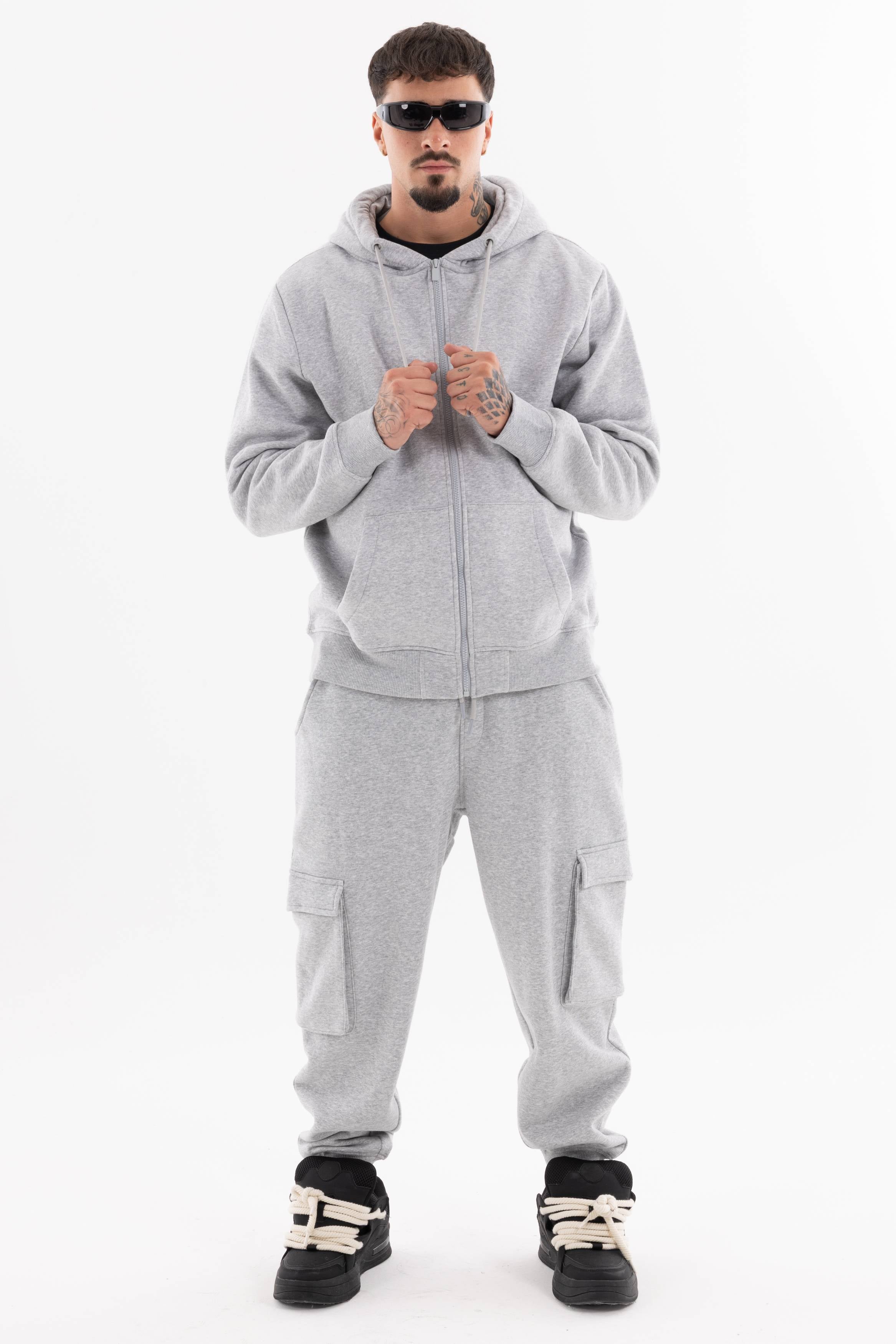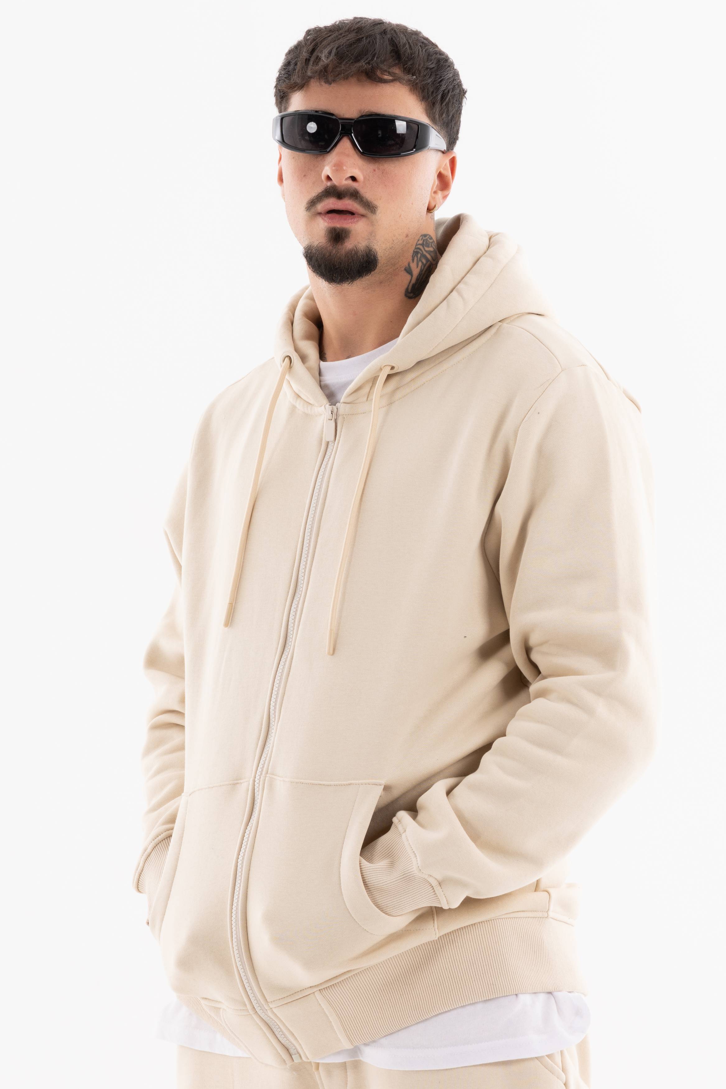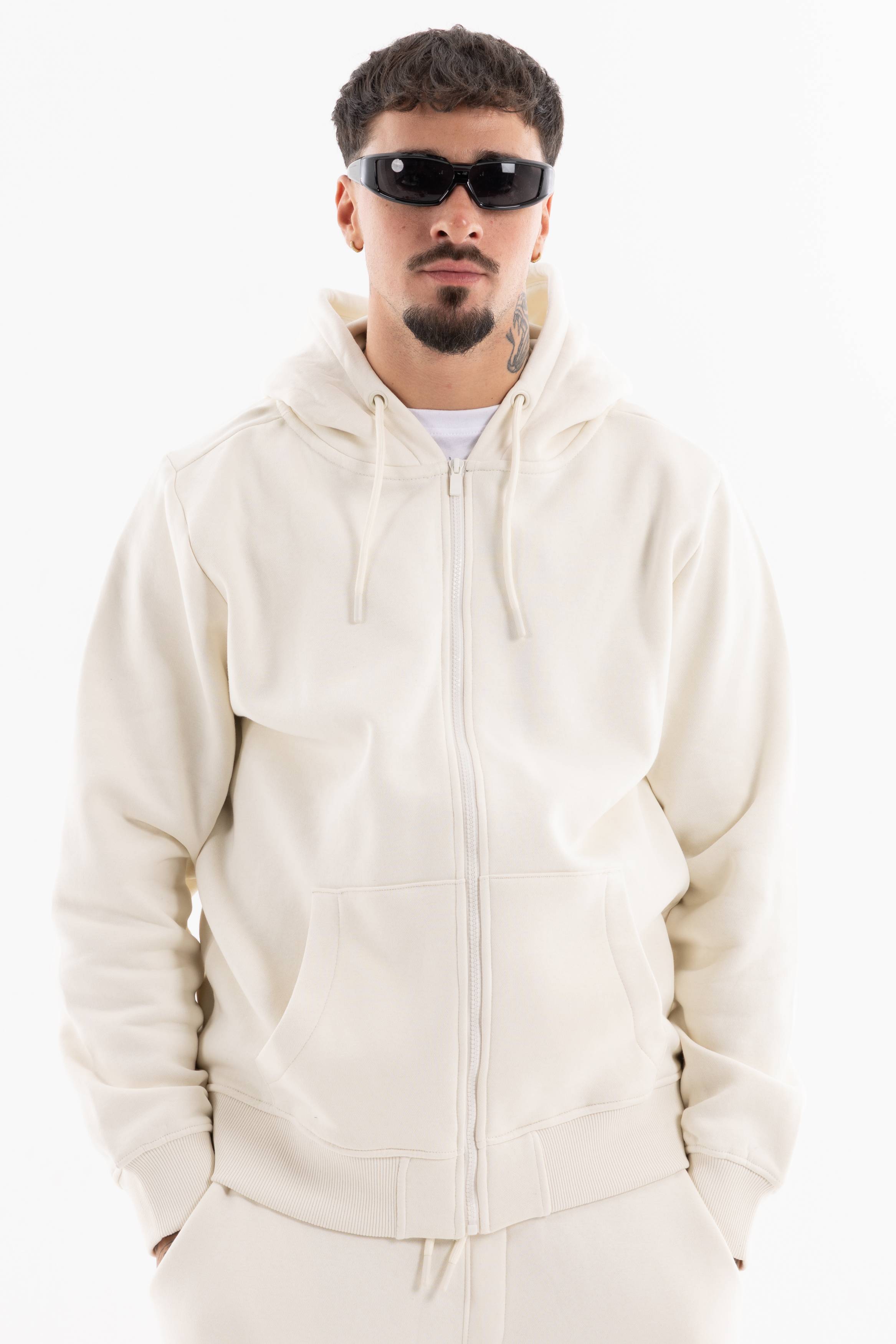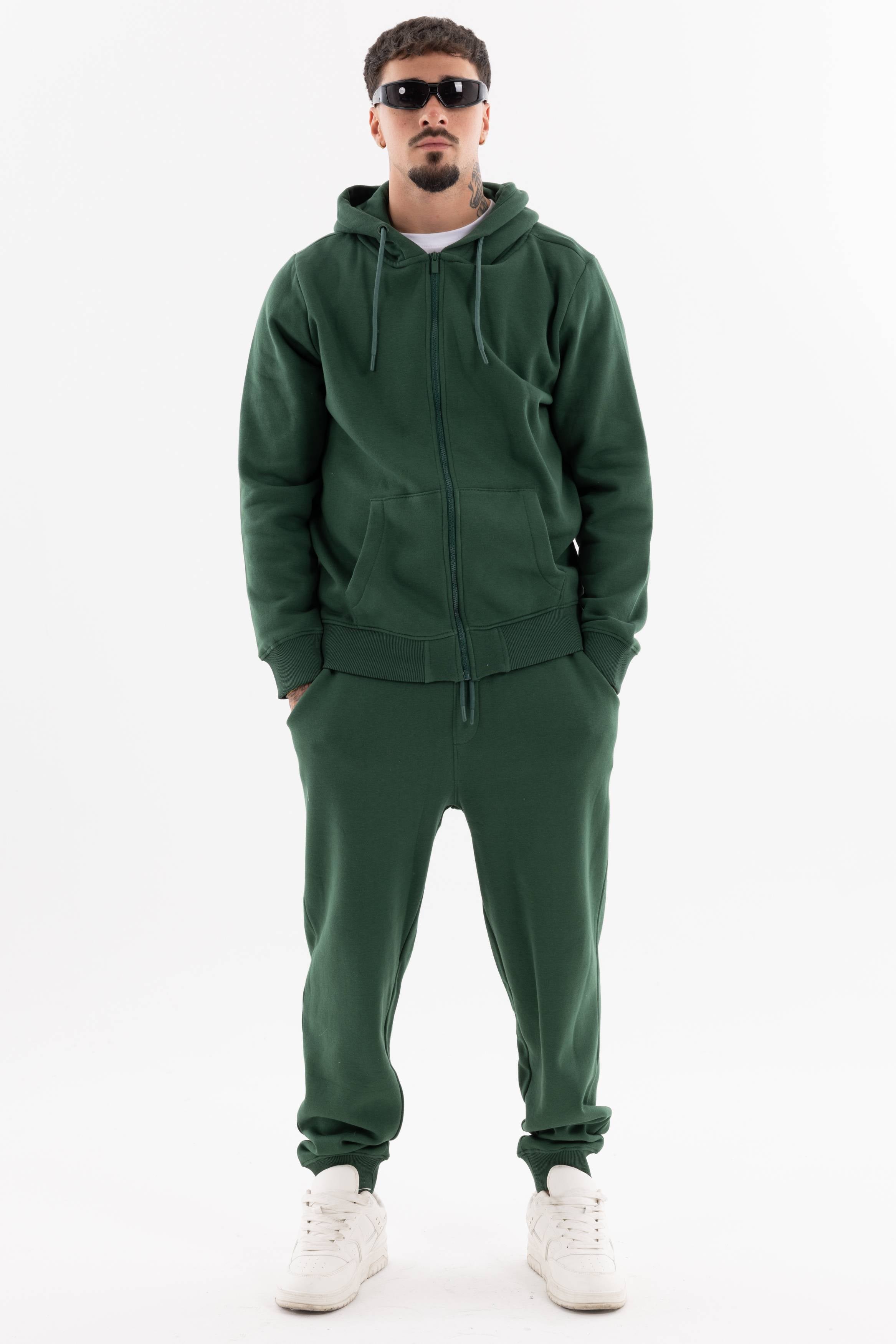 Felpa uomo basic con cappuccio e chiusura con zip. Capo versatile e leggero ideale per un look casual dal design sportivo. Disponibili joggers coordinabili.