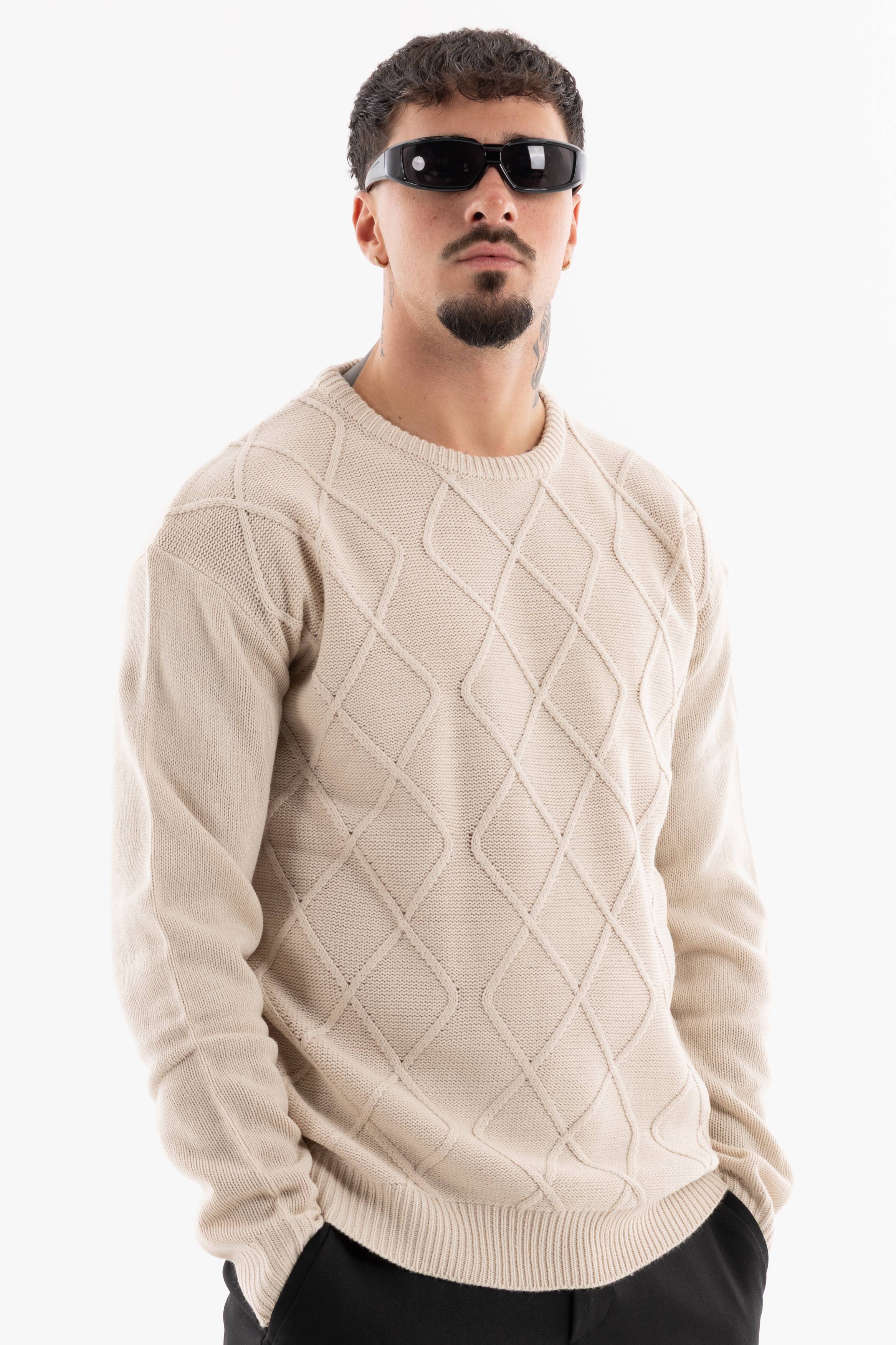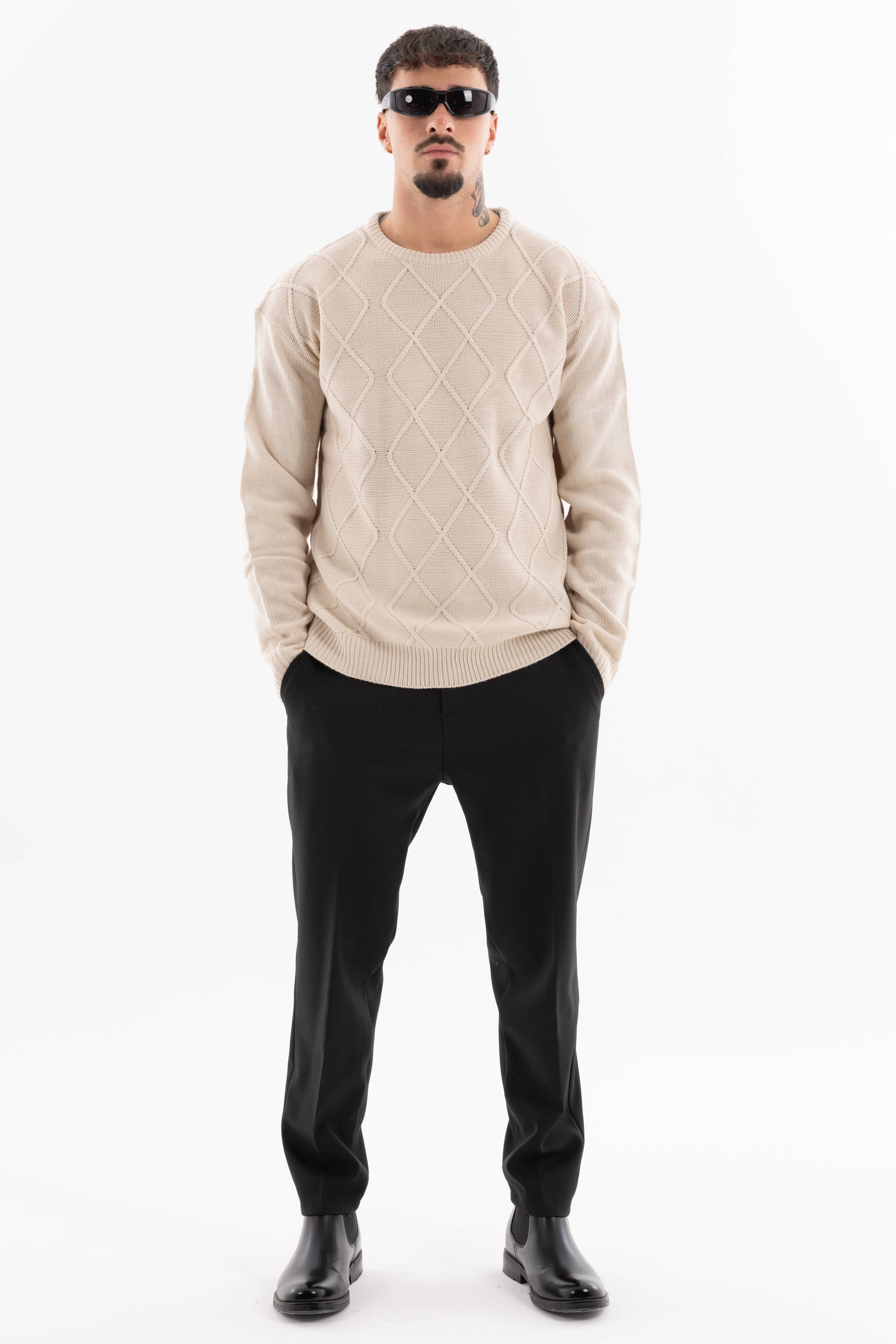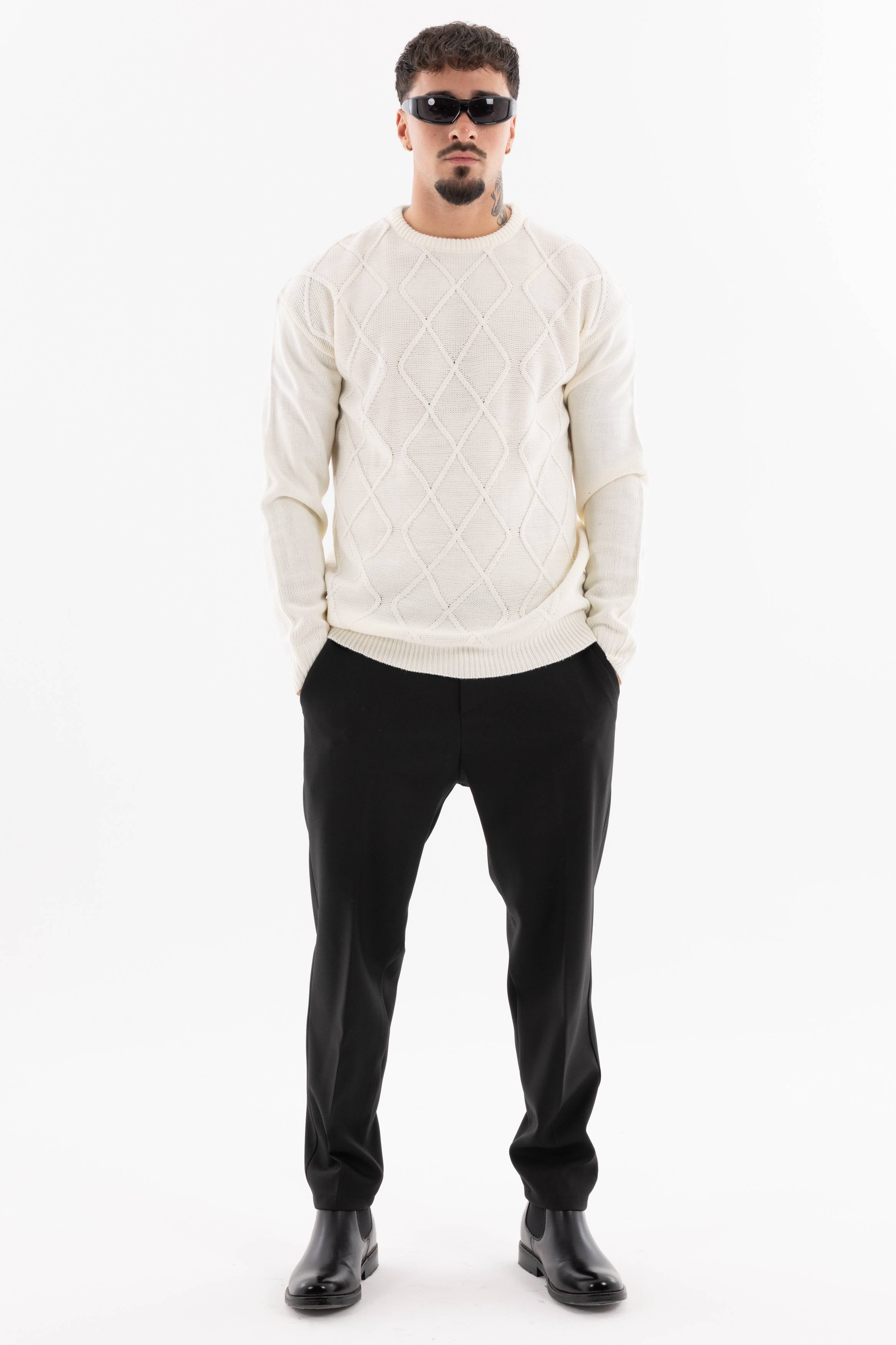 Maglioncino uomo in trama operata dal design pulito e moderno. Capo versatile e morbido perfetto per completare un look elegante ma informale.