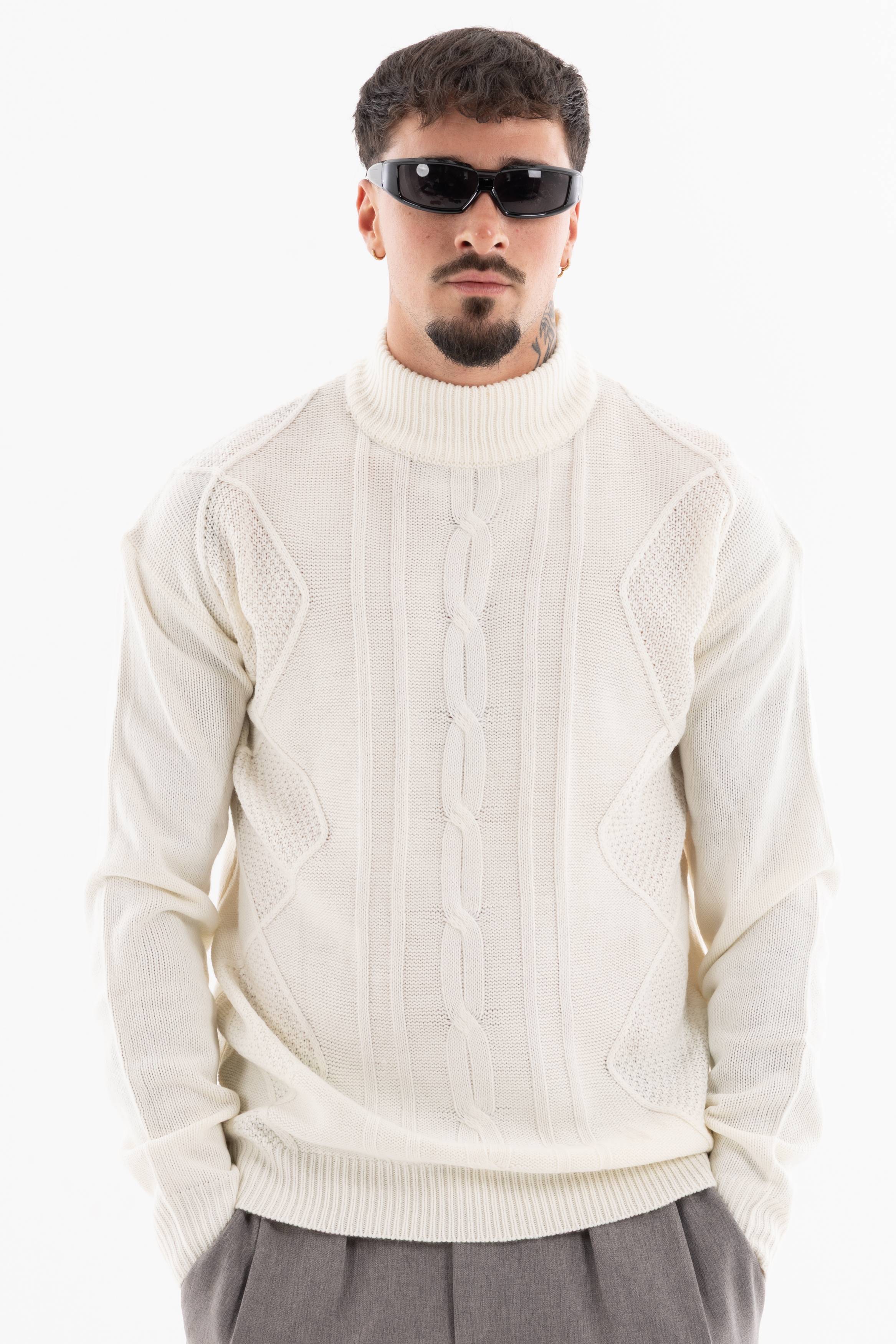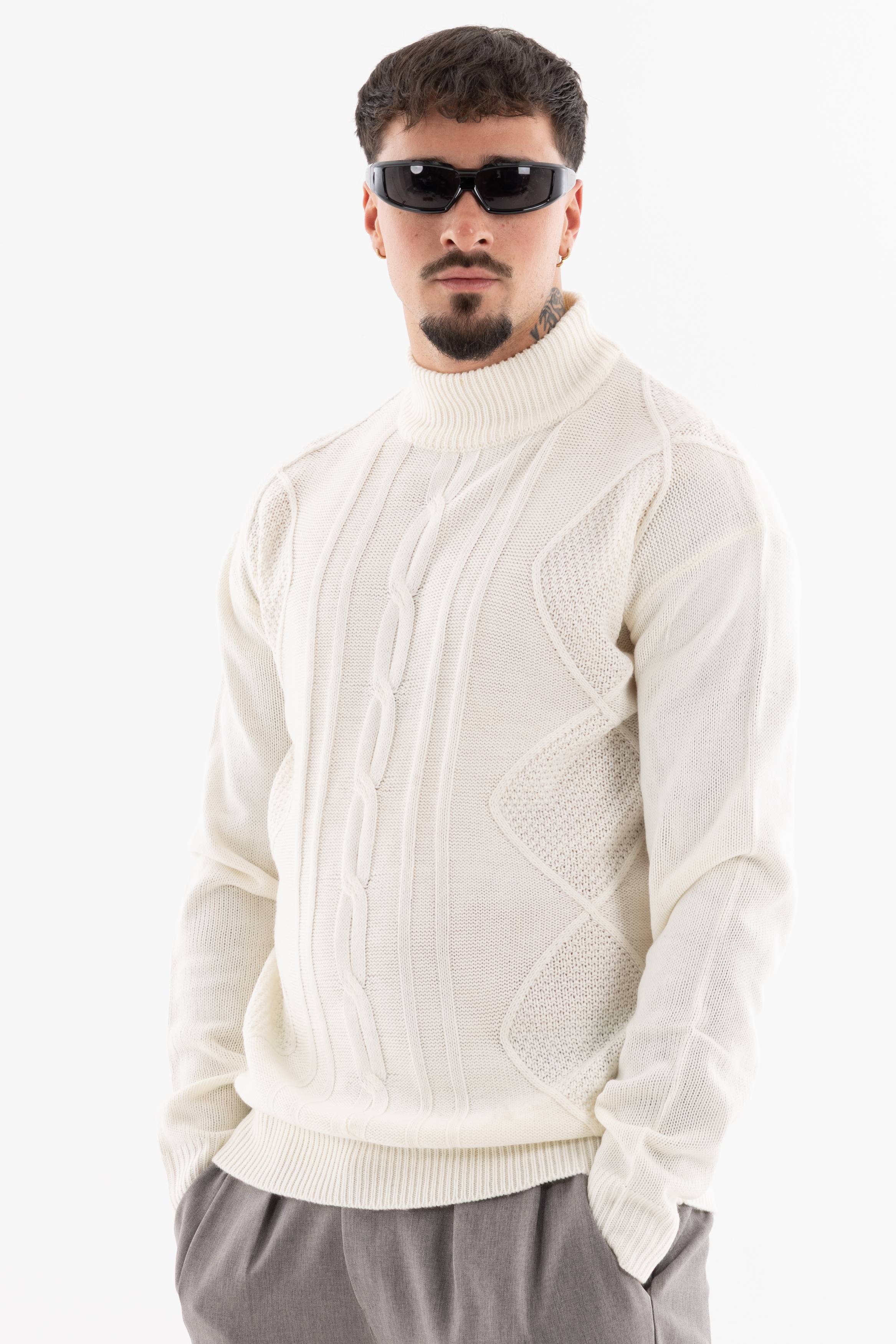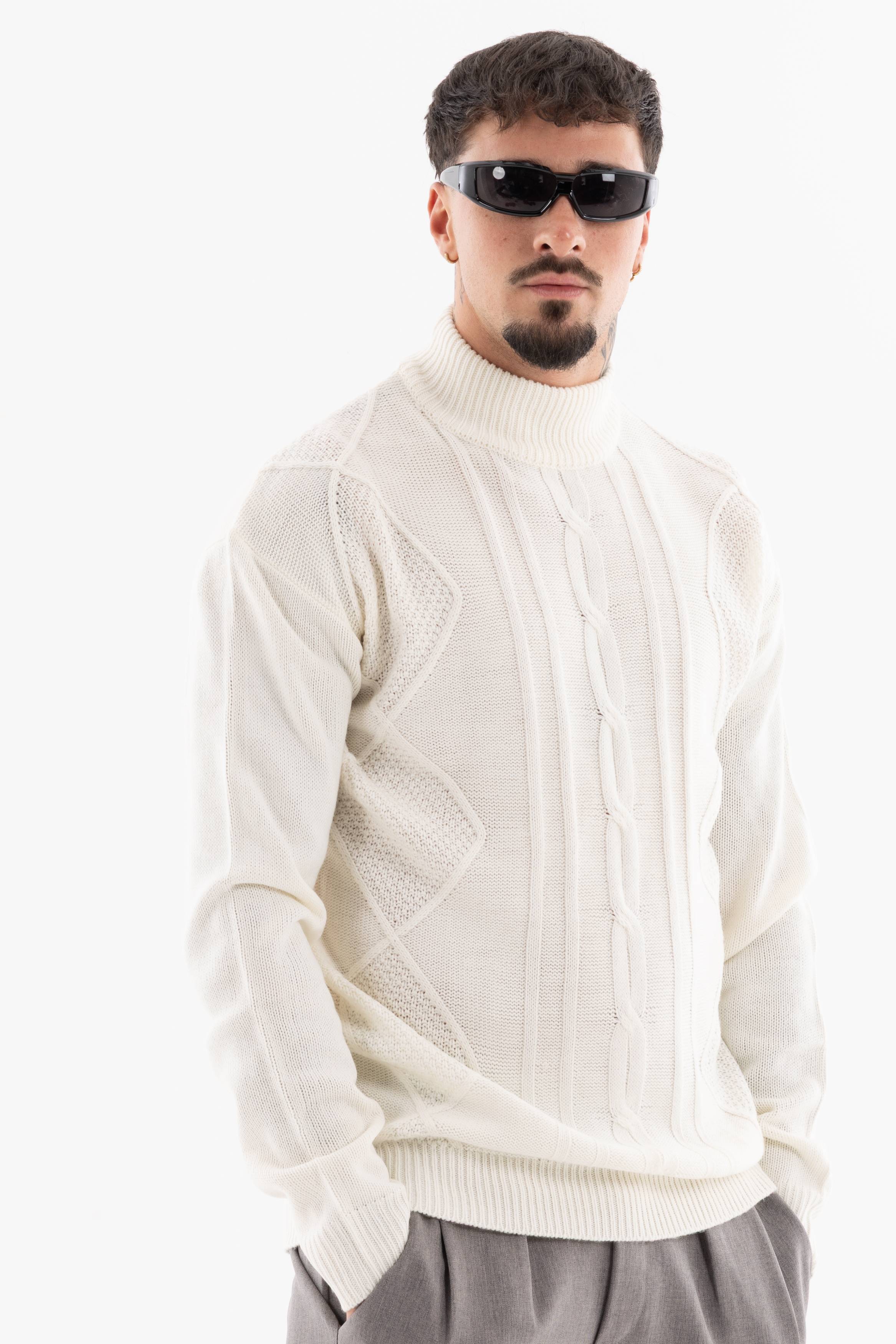 Maglioncino uomo dolcevita in trama operata dal design classico e linee essenziali. Capo versatile e morbido perfetto per completare con stile un look moderno.