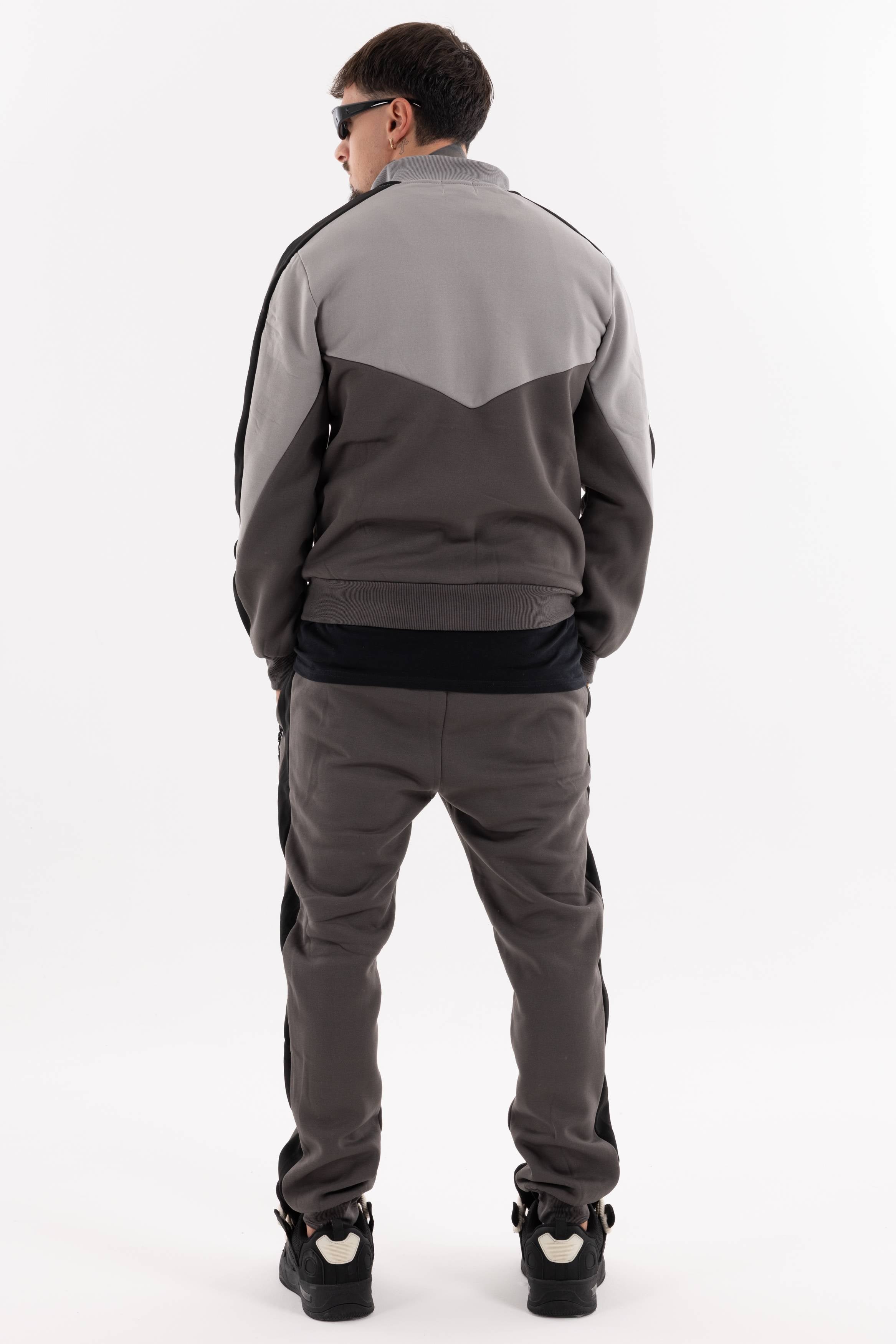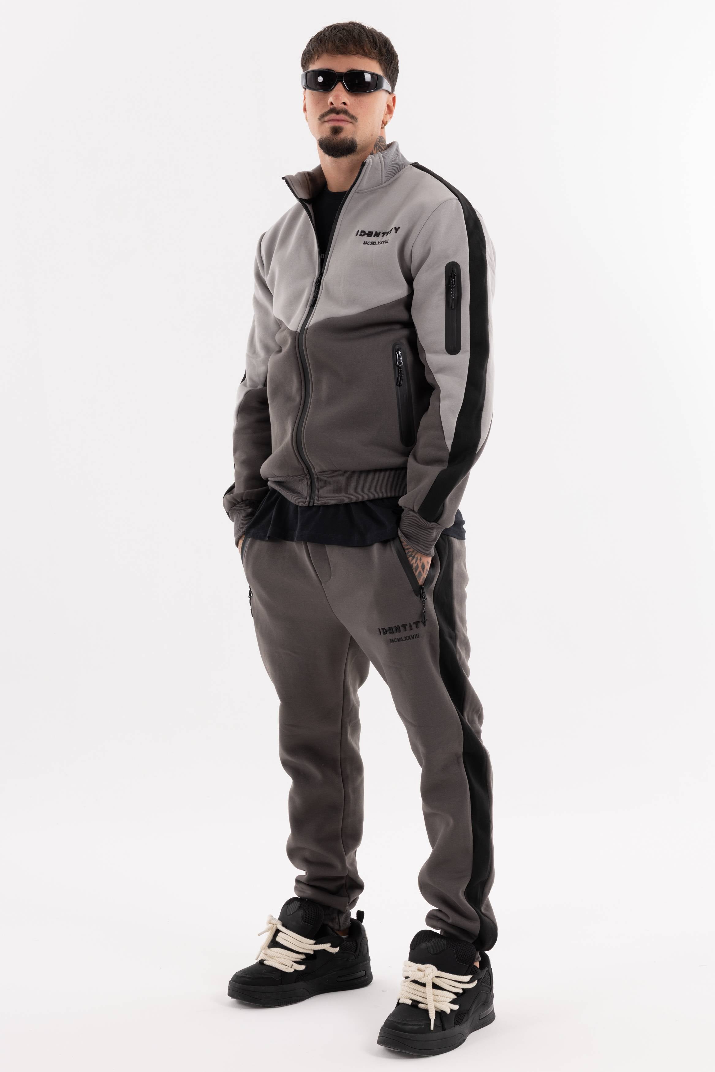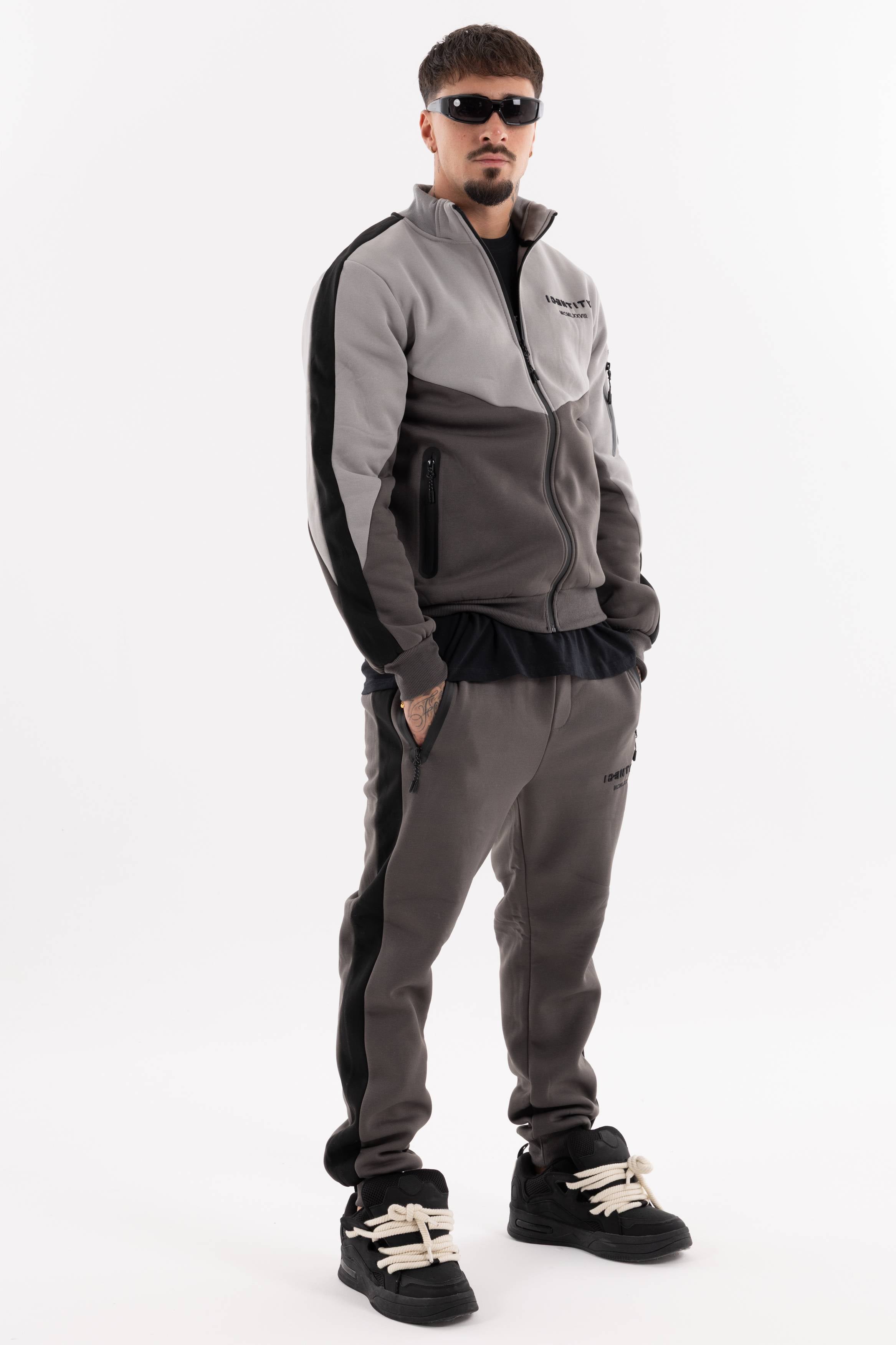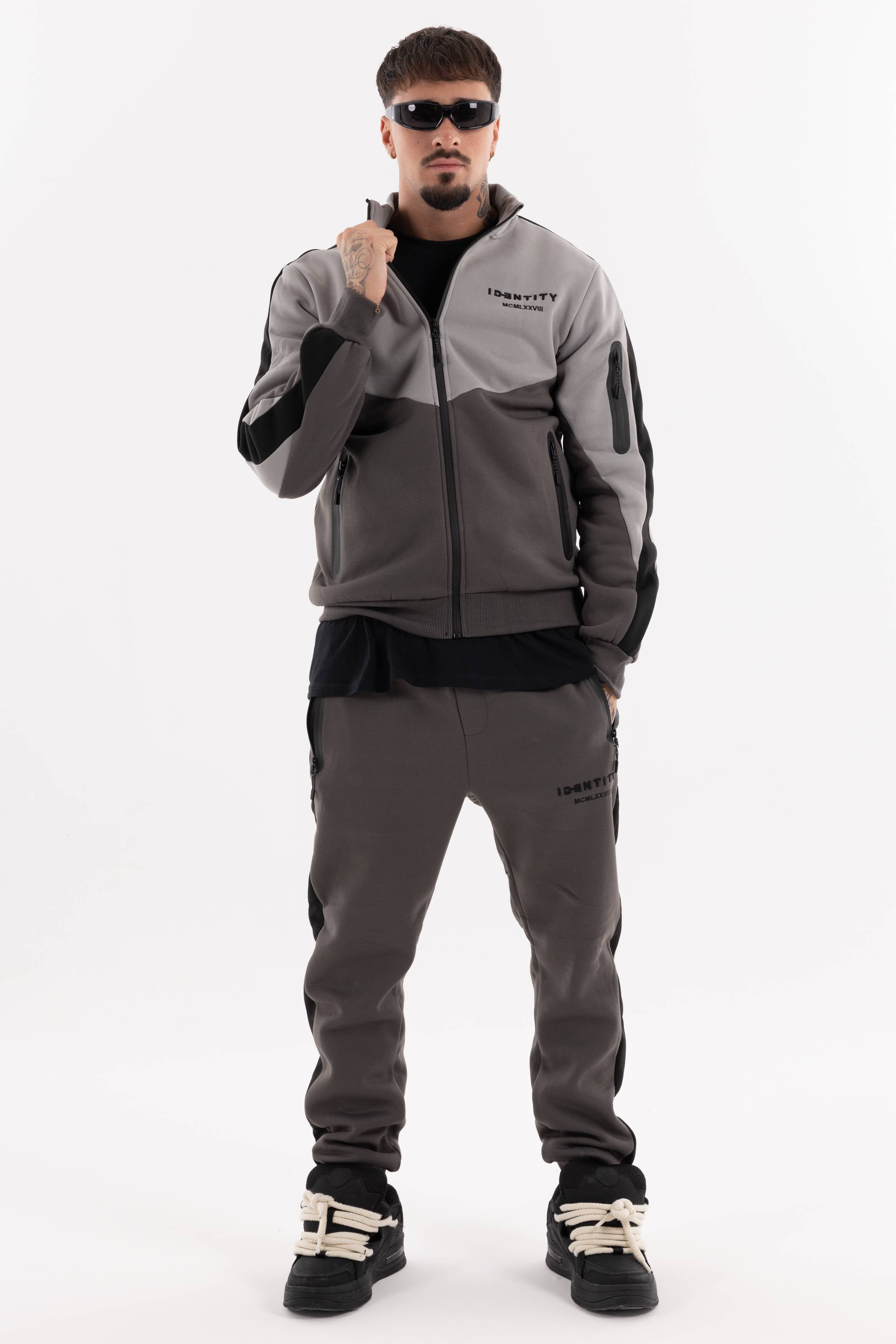 Tuta color block con zip frontale logo sul petto e tasche con zip sul davanti e sulla manica.Joggers con tasche frontali e logo stampato.Un set dinamico per un look sportivo e deciso.