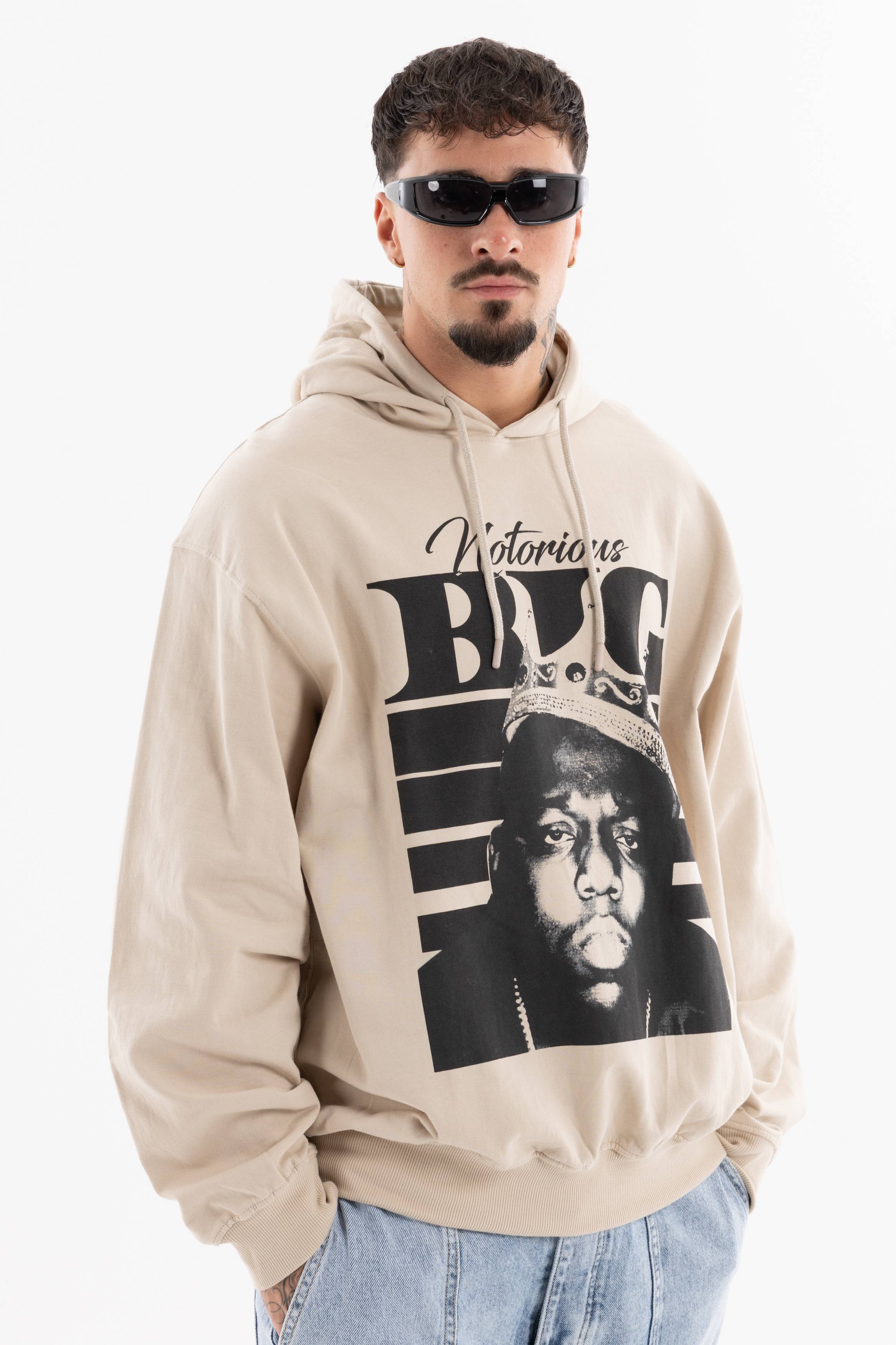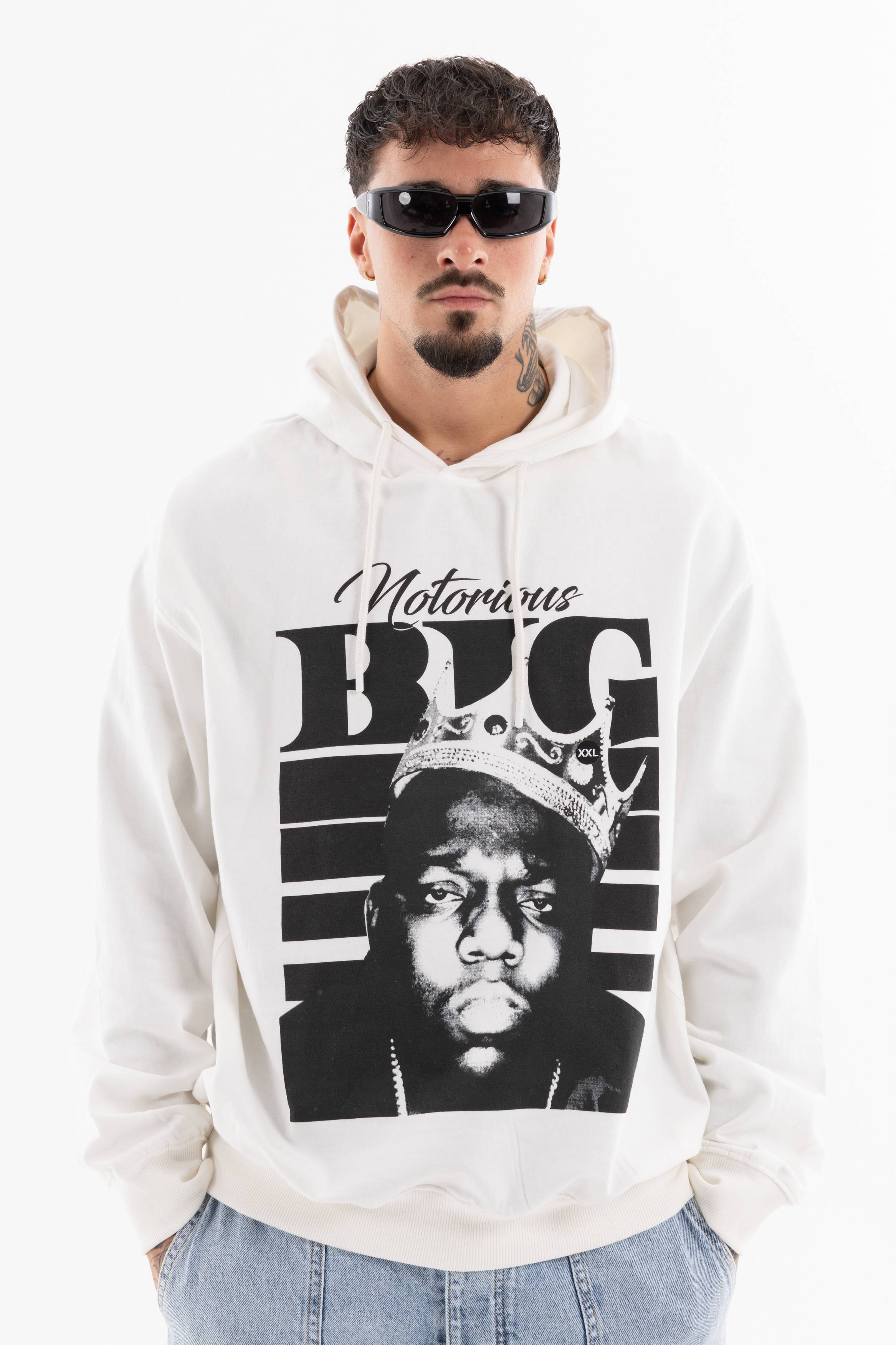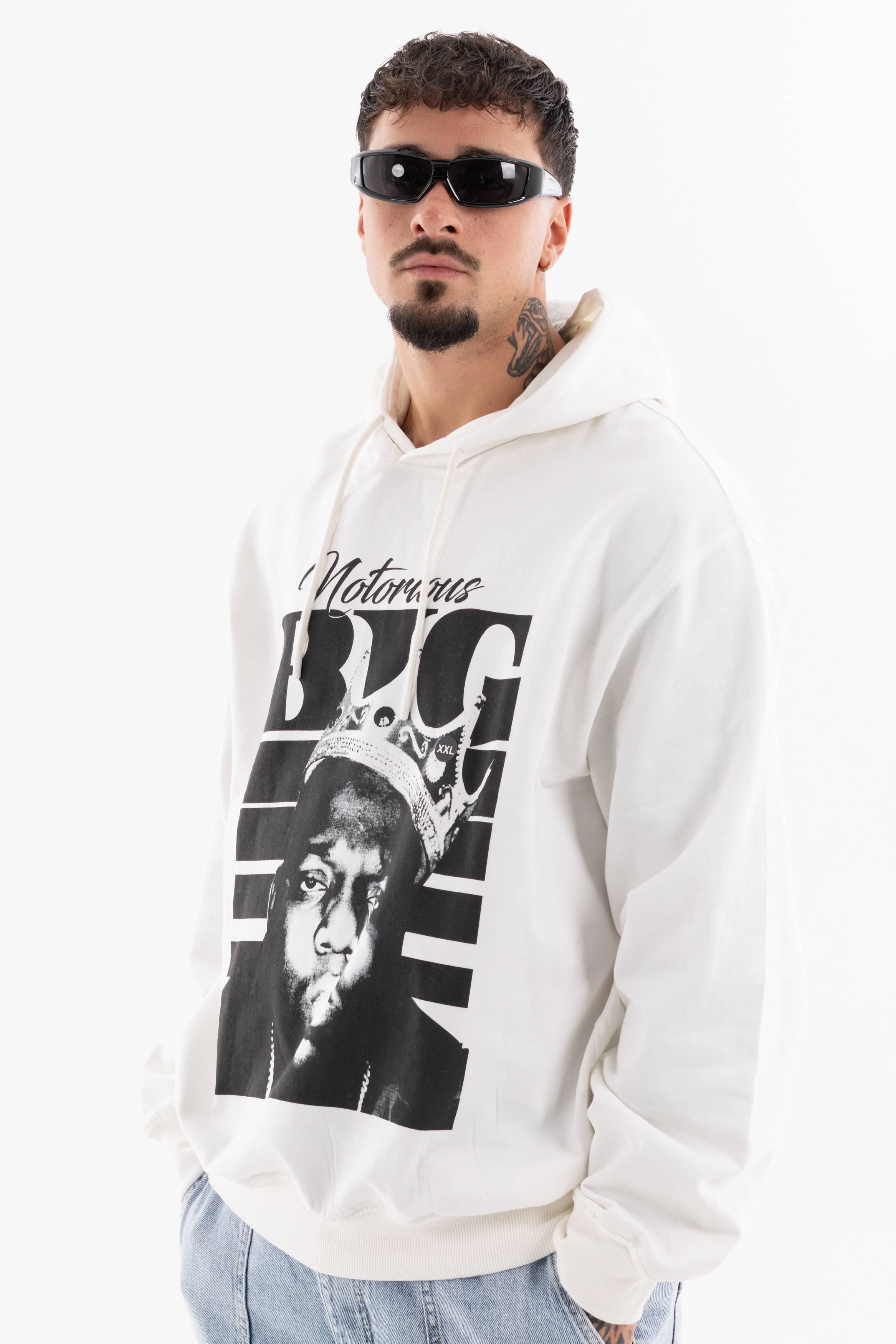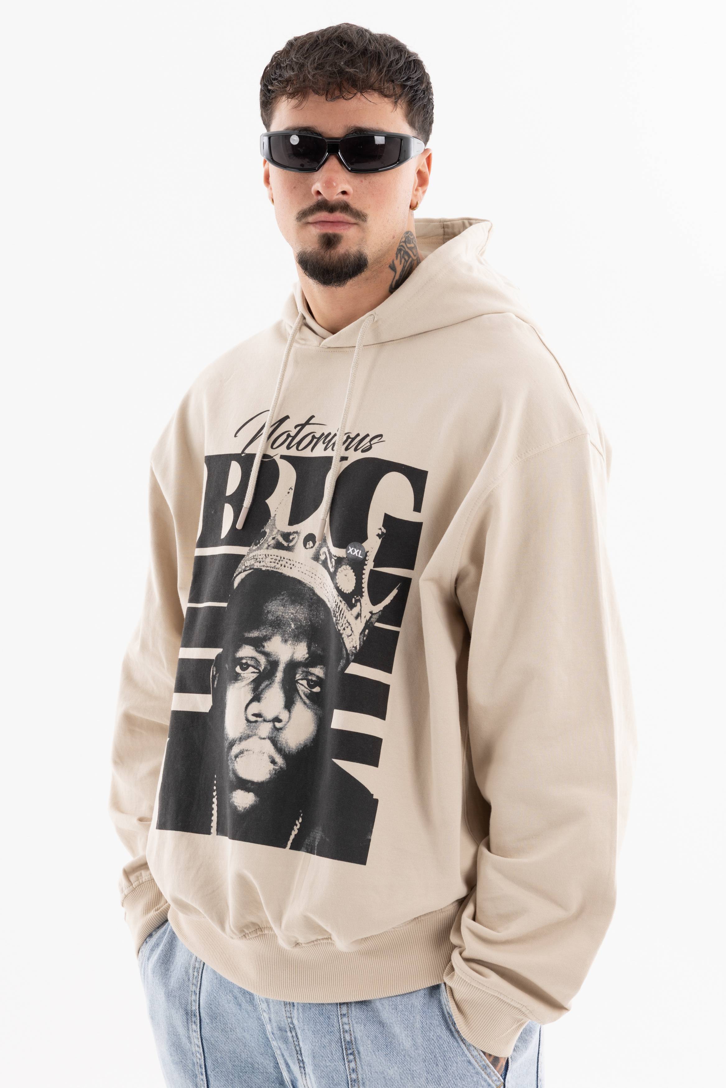 Felpa uomo boxy fit con cappuccio e stampa licensed Big Notorius dal taglio ampio e moderno. Morbida e confortevole un capo dallo stile urbano e distintivo che valorizza ogni outfit.