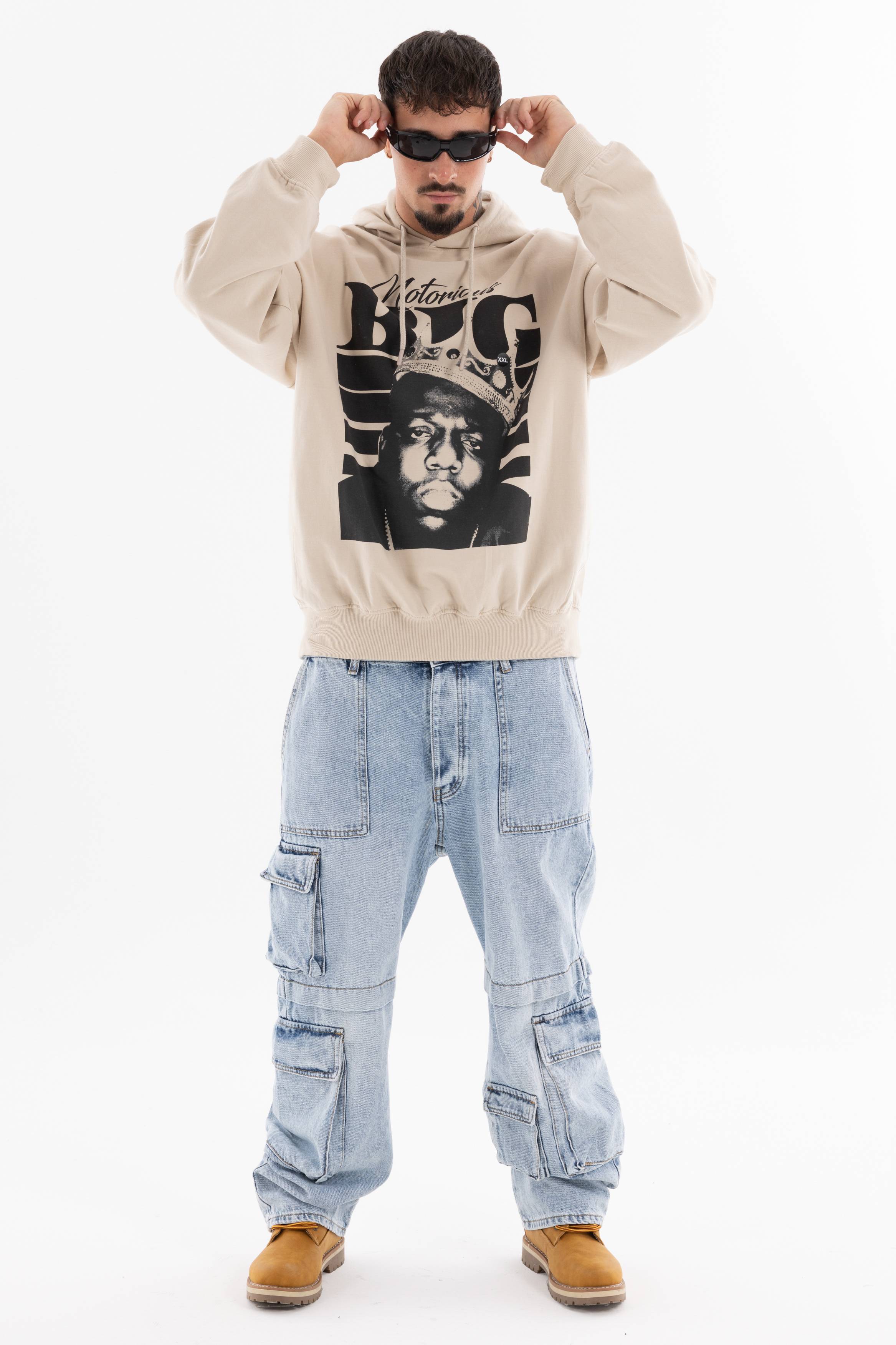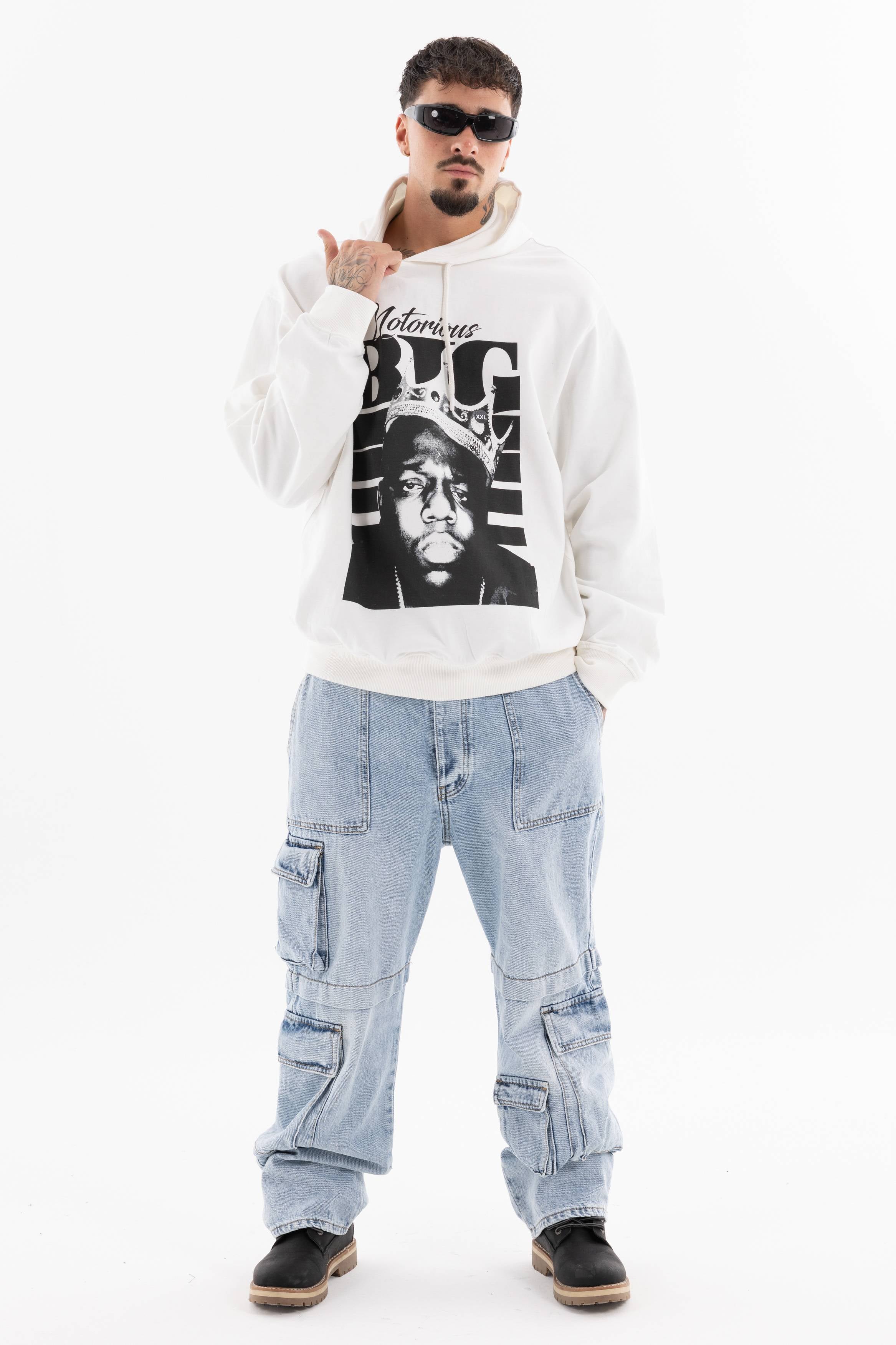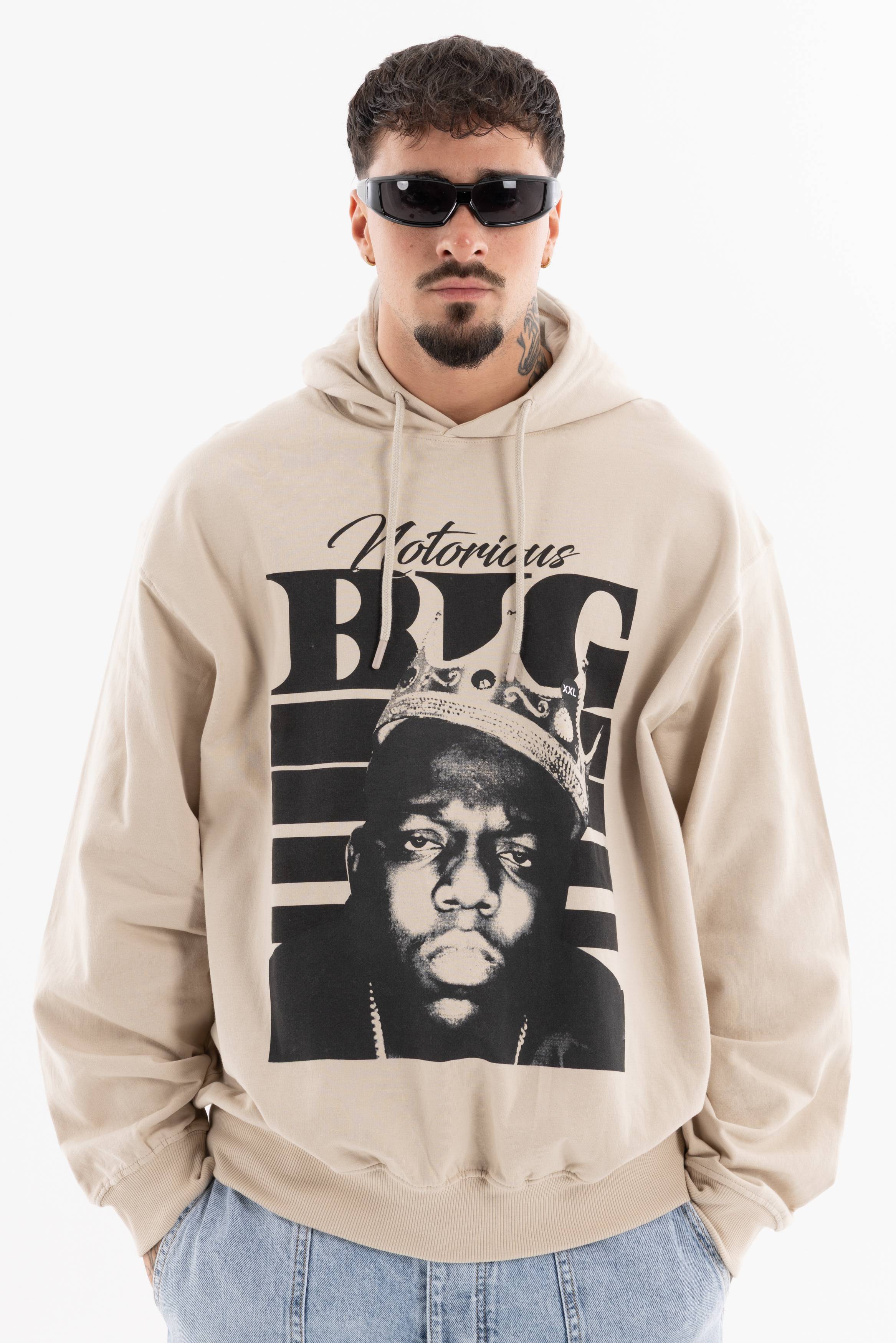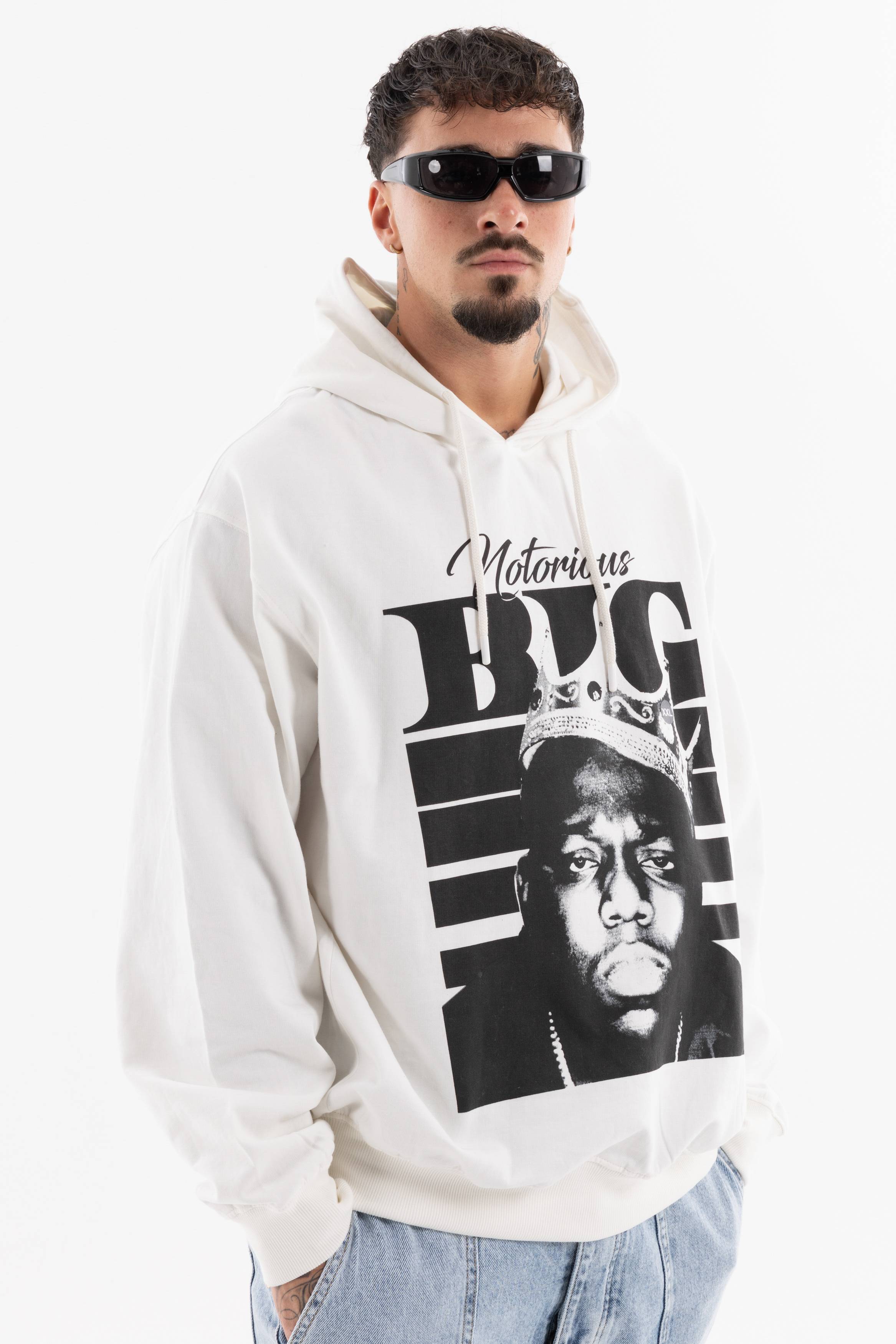 Felpa uomo boxy fit con cappuccio e stampa licensed Big Notorius dal taglio ampio e moderno. Morbida e confortevole un capo dallo stile urbano e distintivo che valorizza ogni outfit.