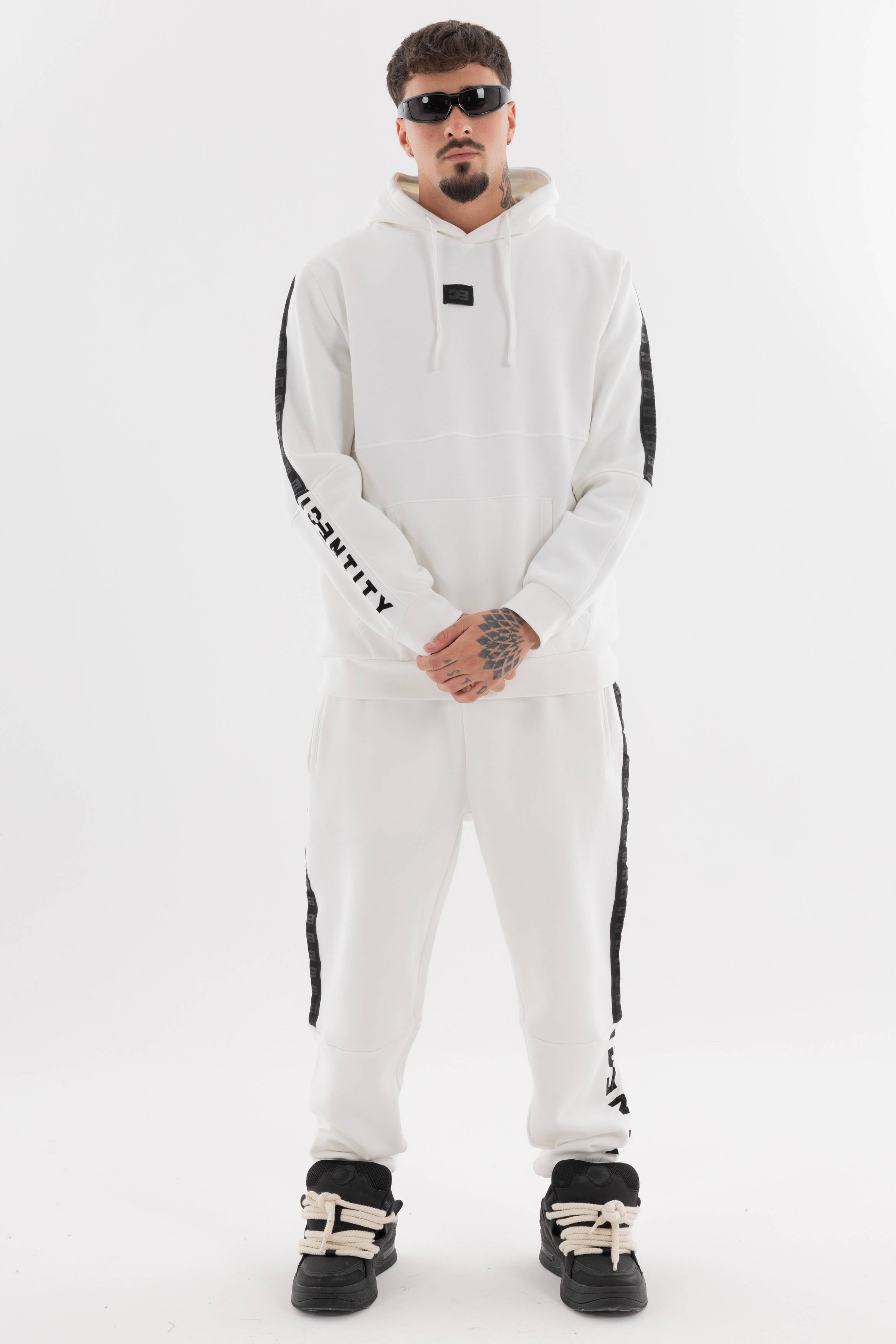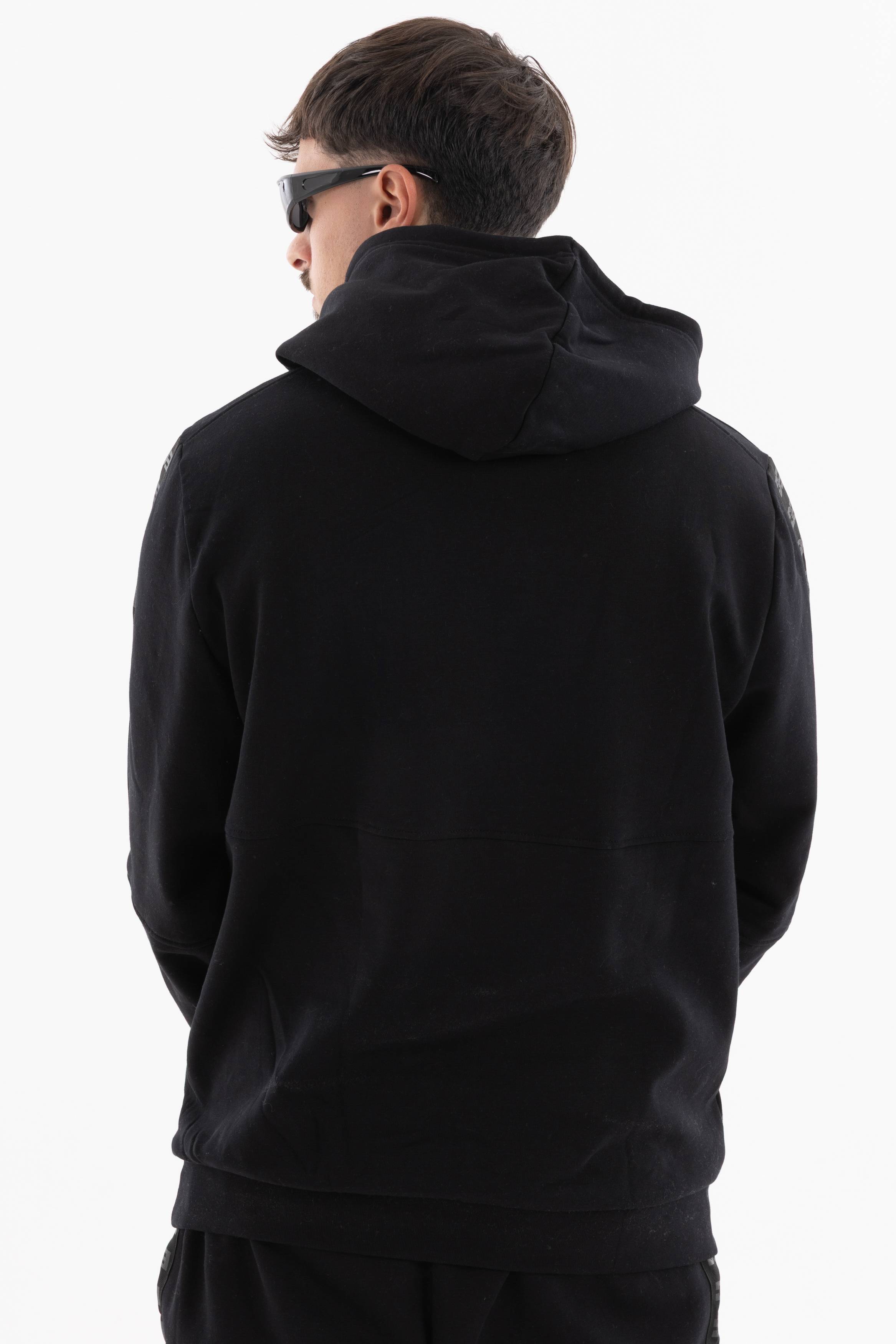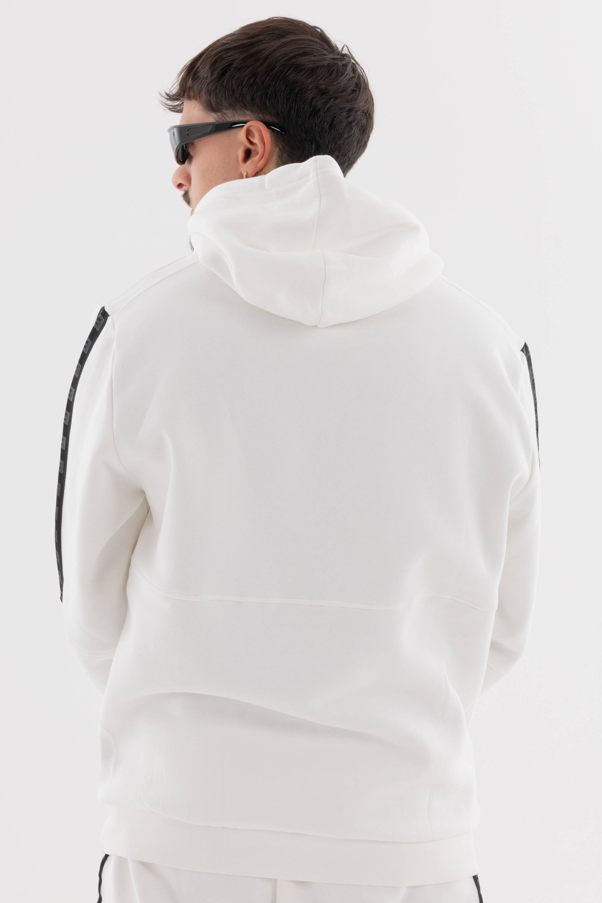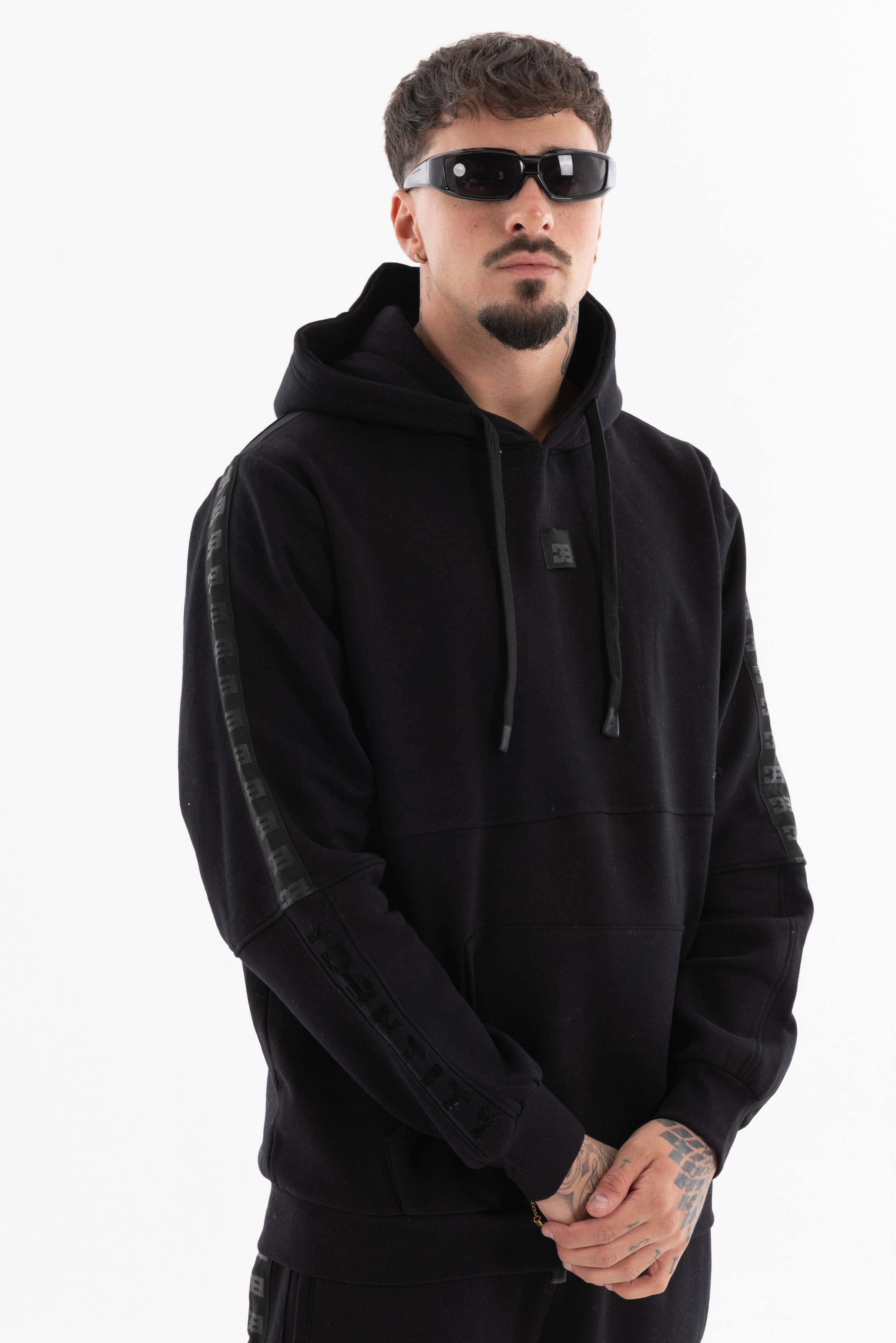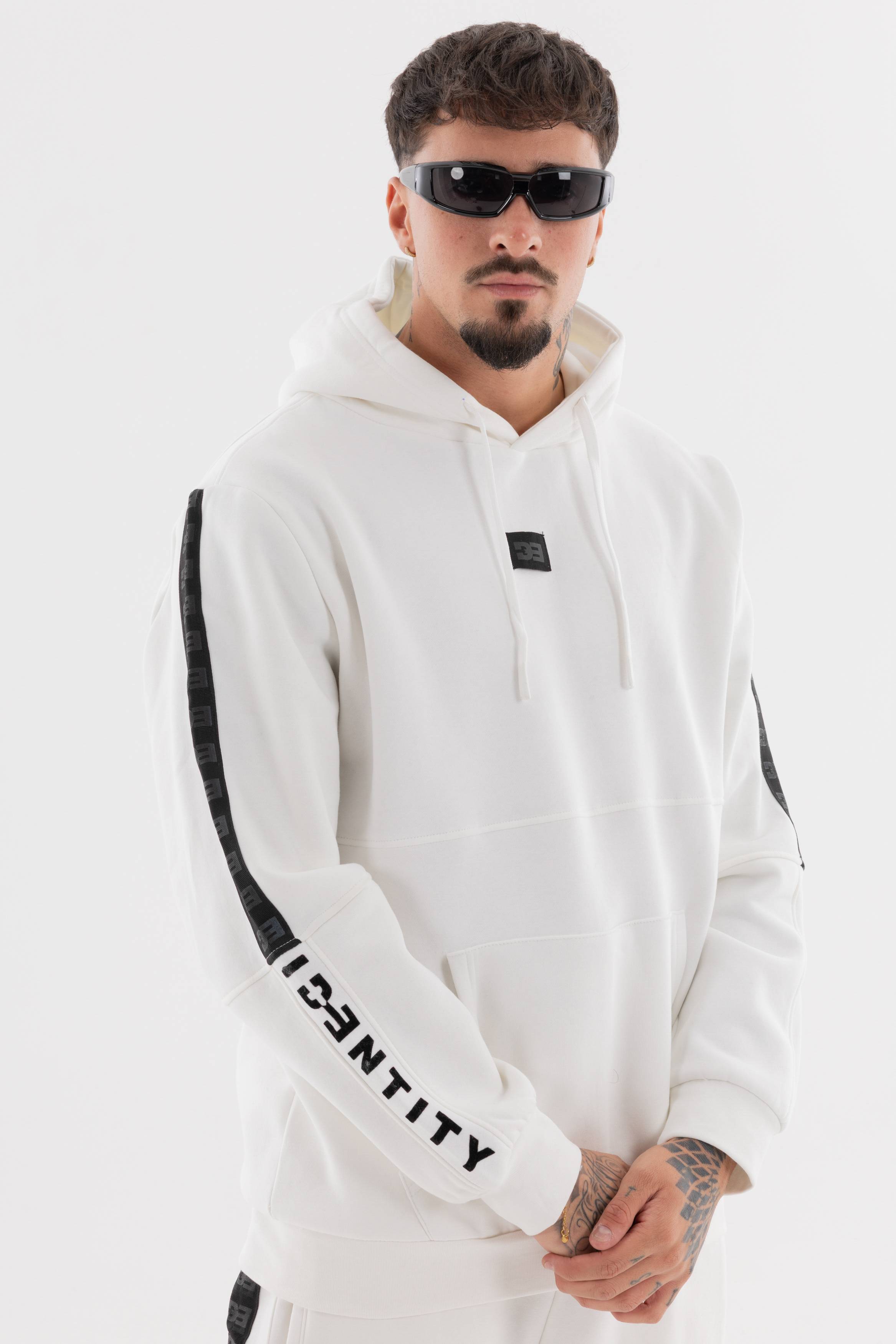 Felpa con cappuccio tasca frontale e bande laterali a contrasto con logo. Dotata di passante per laccetti sul davanti un capo comodo e moderno perfetto per look urban. Joggers coordinabili.