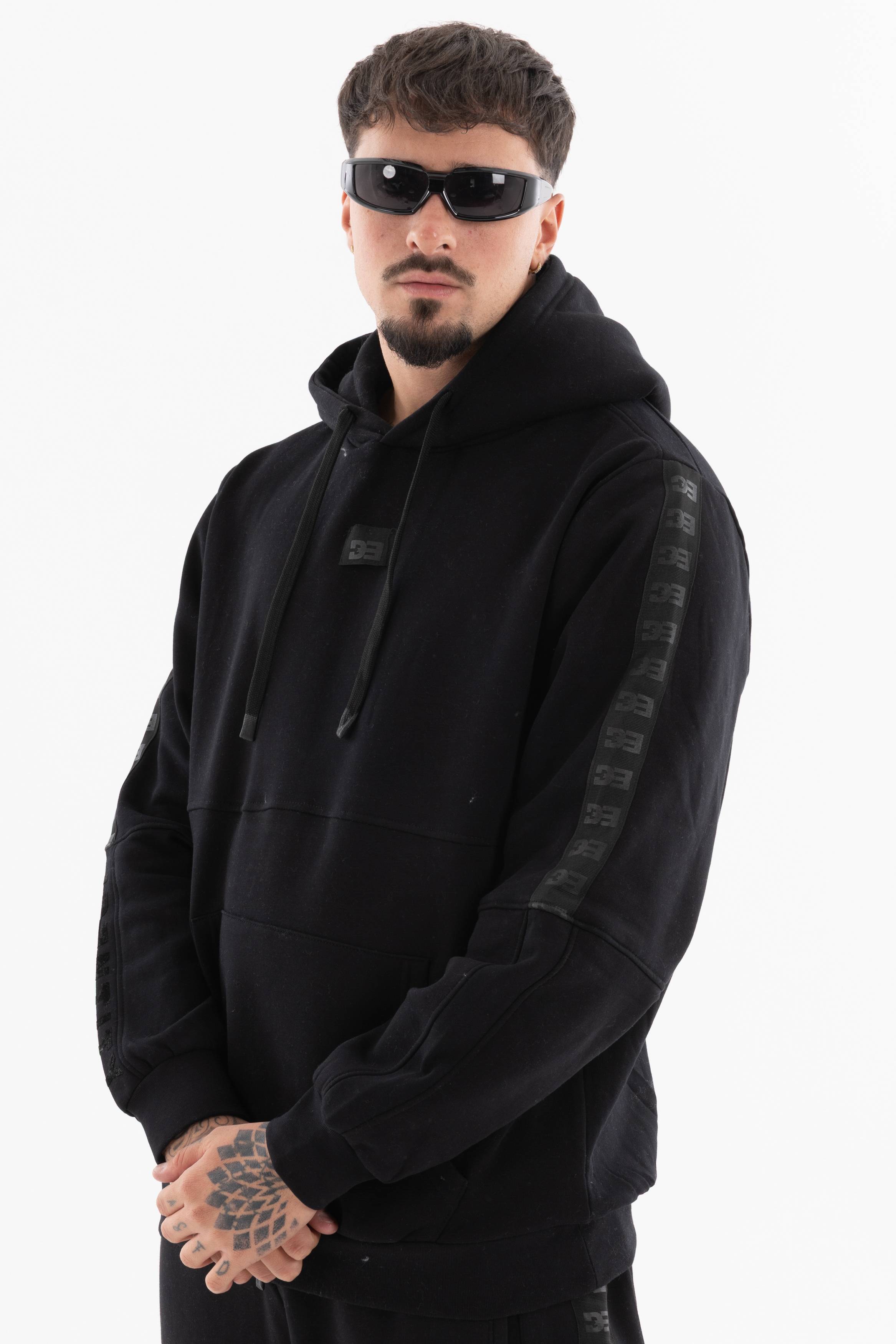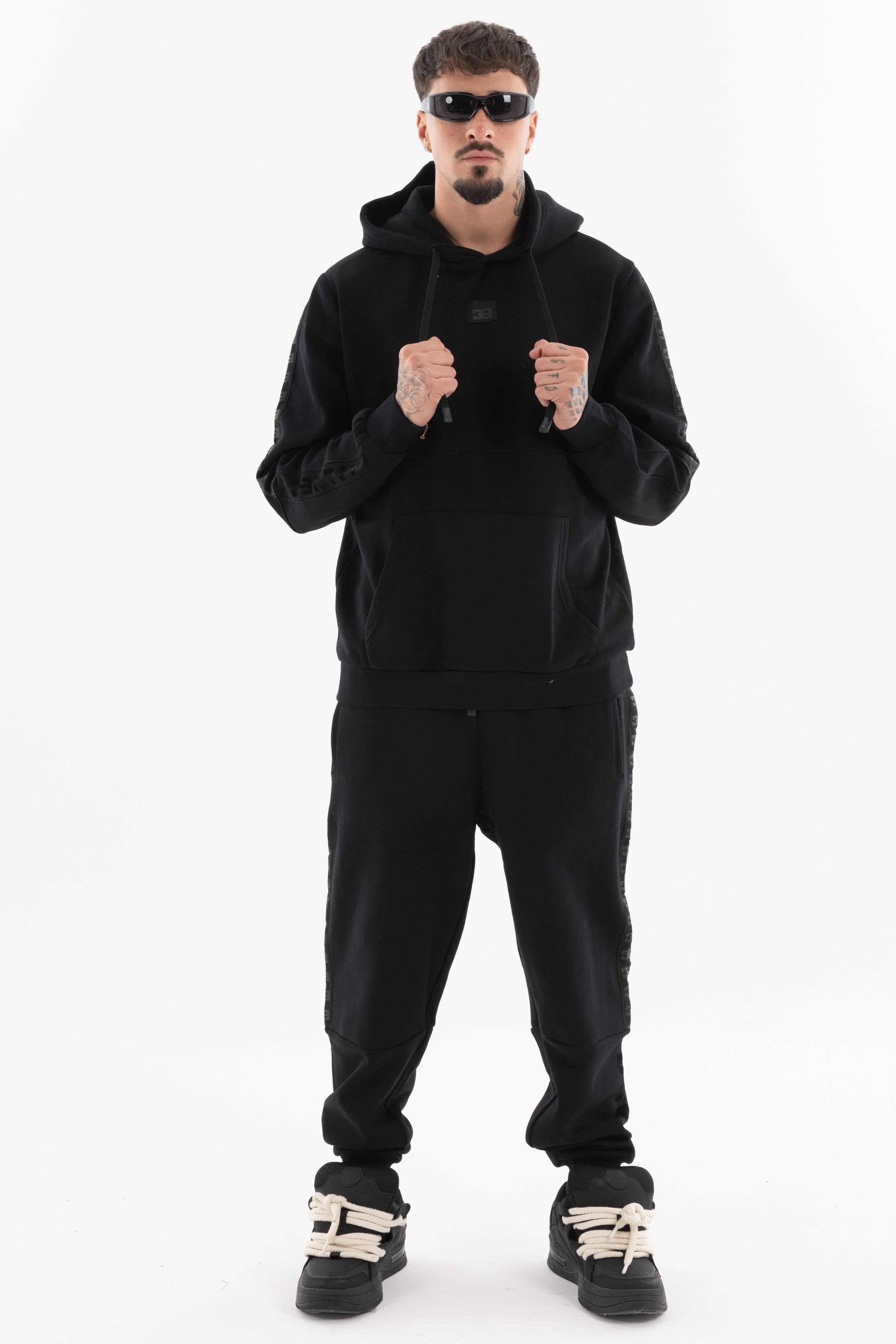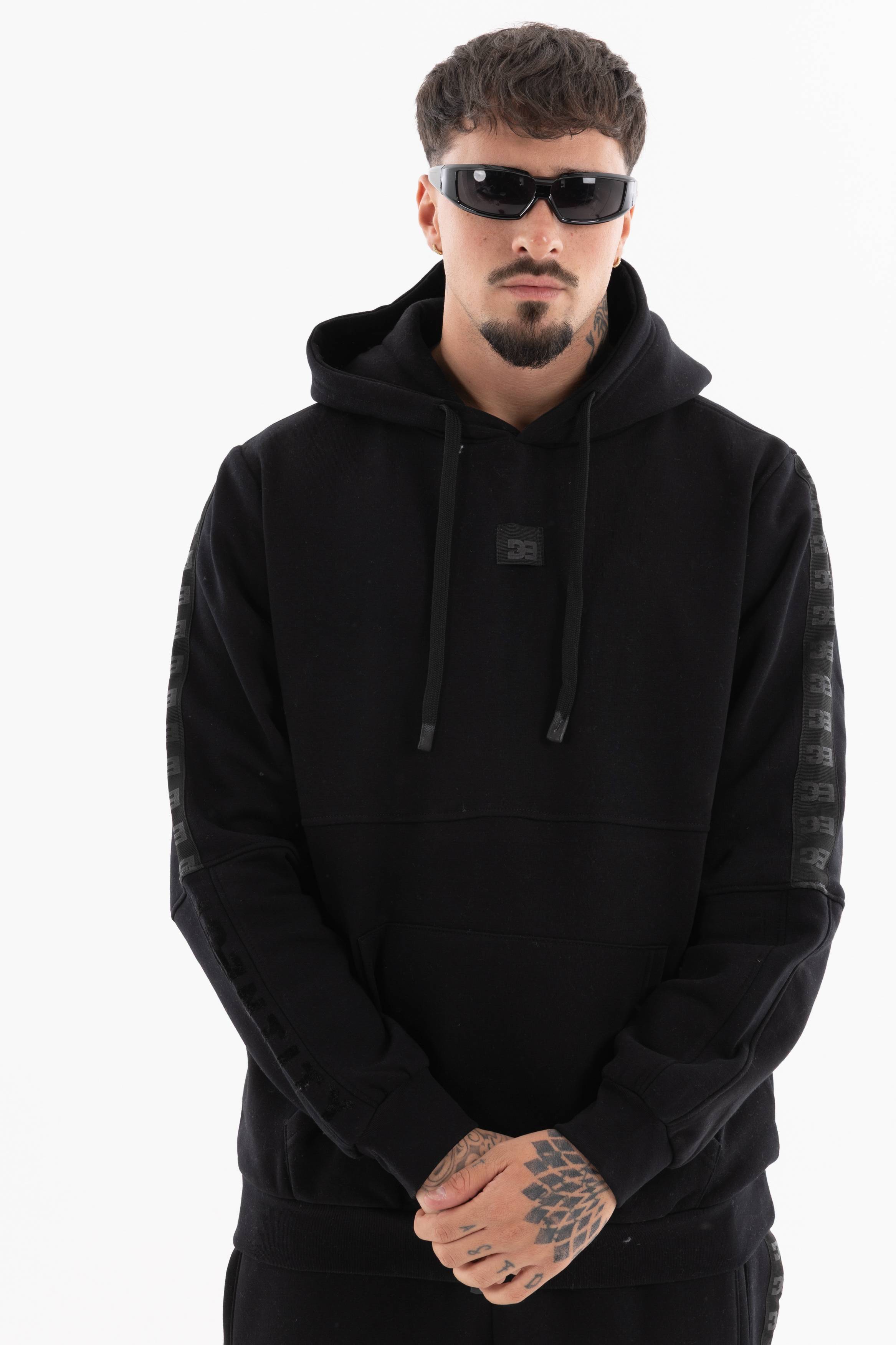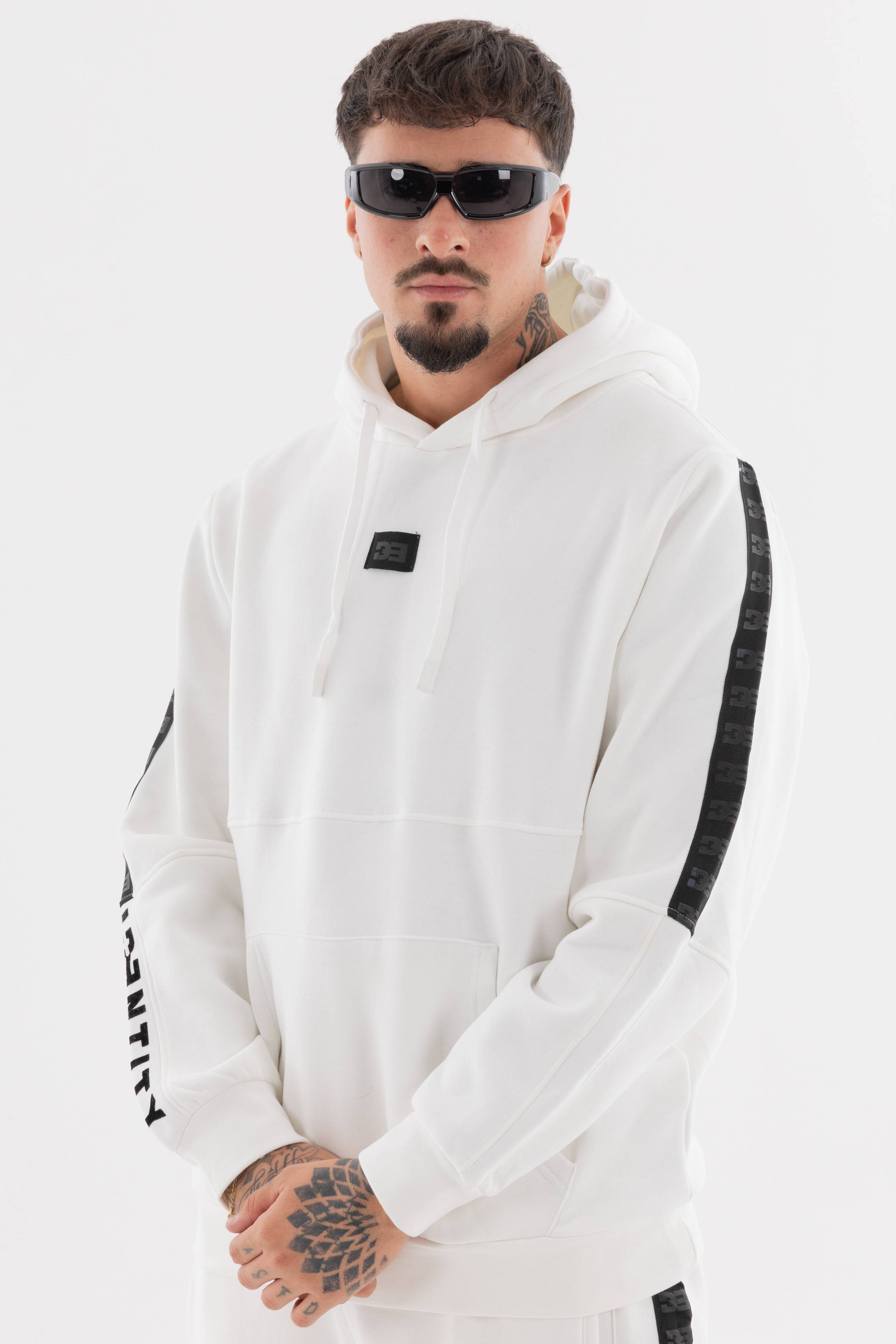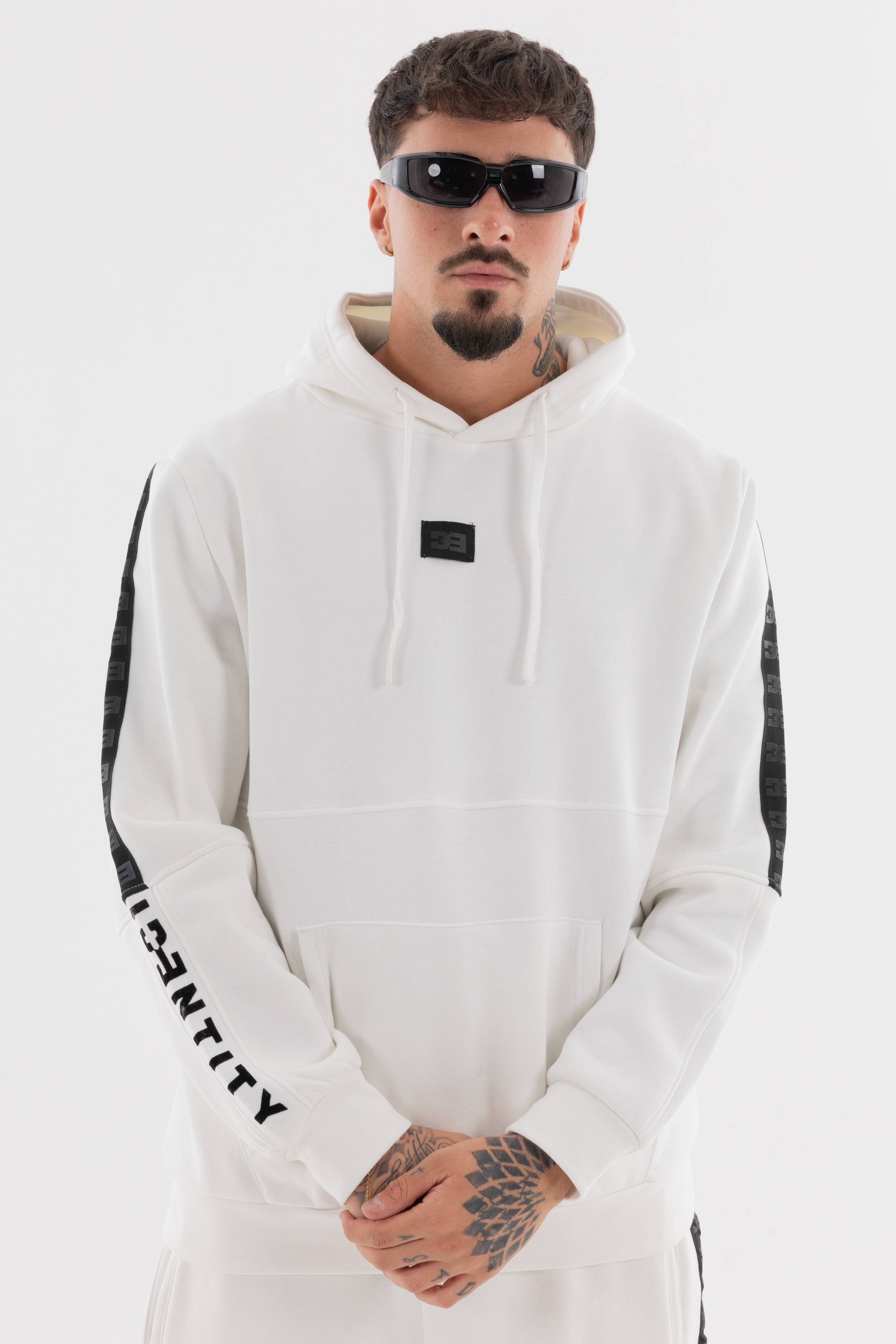 Felpa con cappuccio tasca frontale e bande laterali a contrasto con logo. Dotata di passante per laccetti sul davanti un capo comodo e moderno perfetto per look urban. Joggers coordinabili.