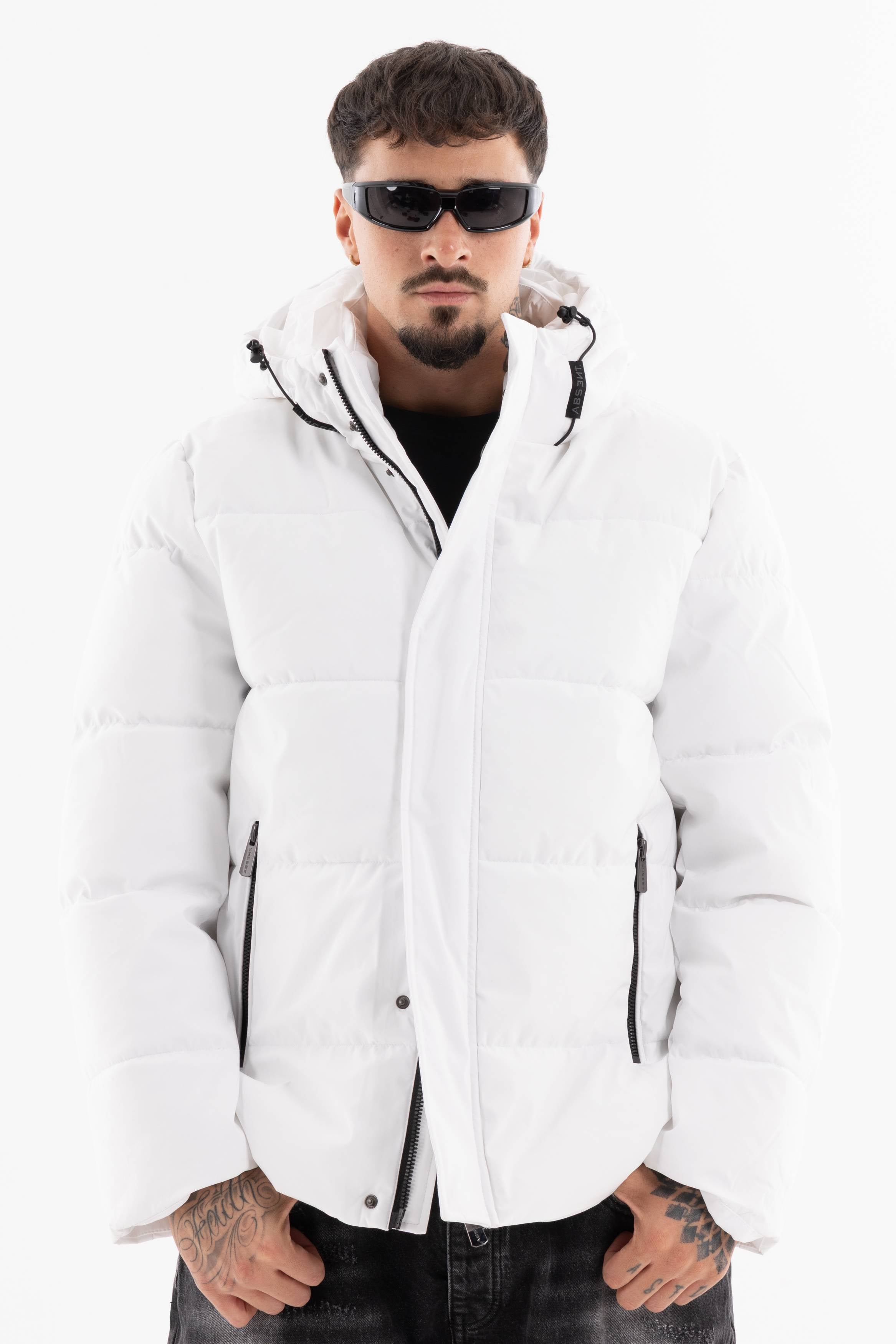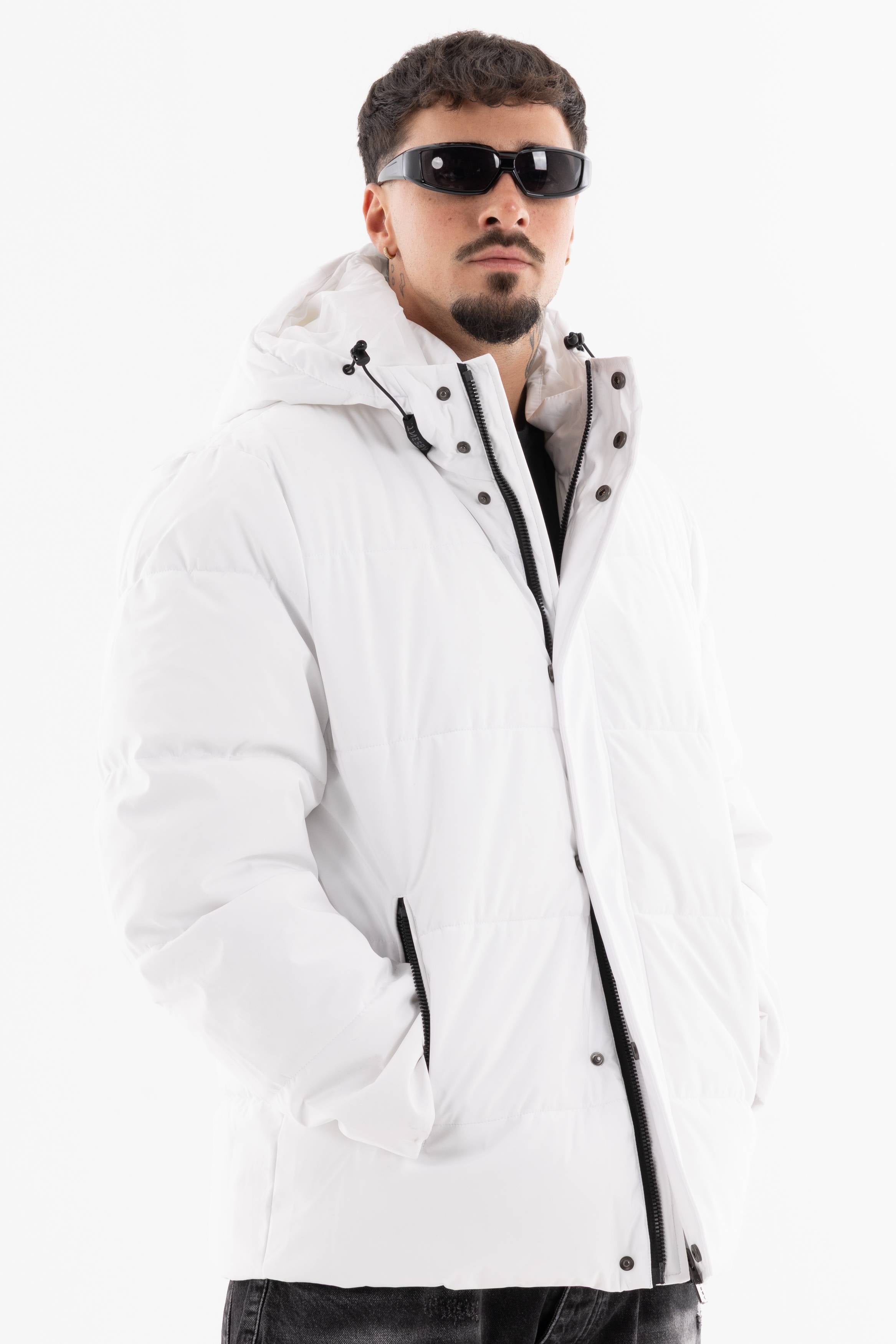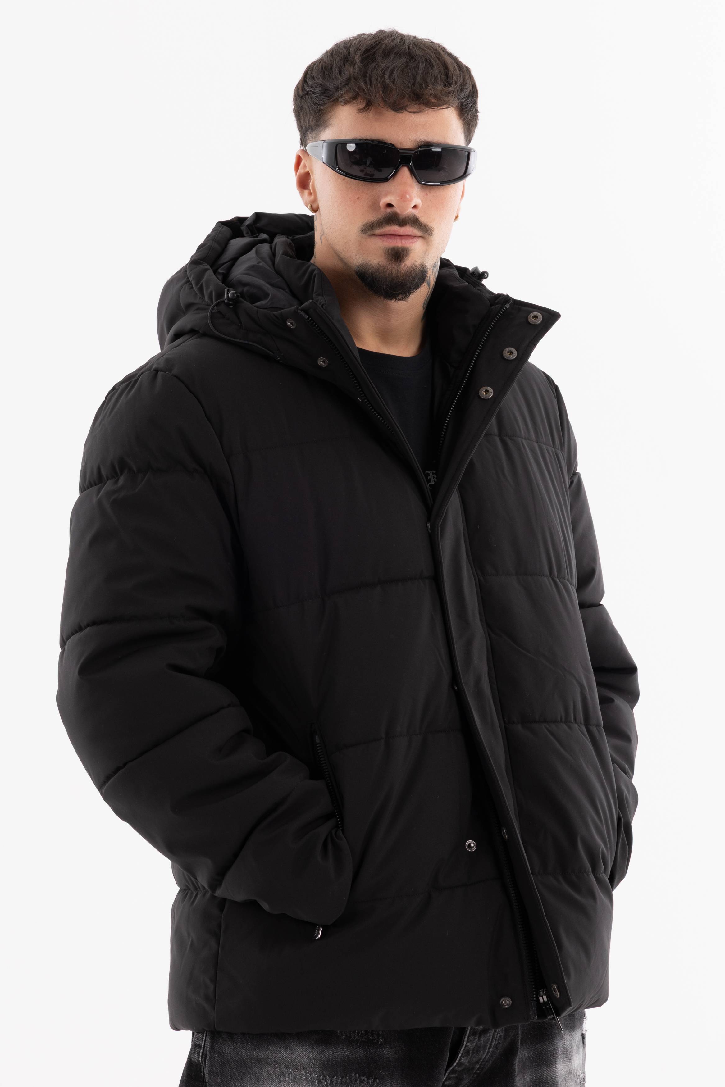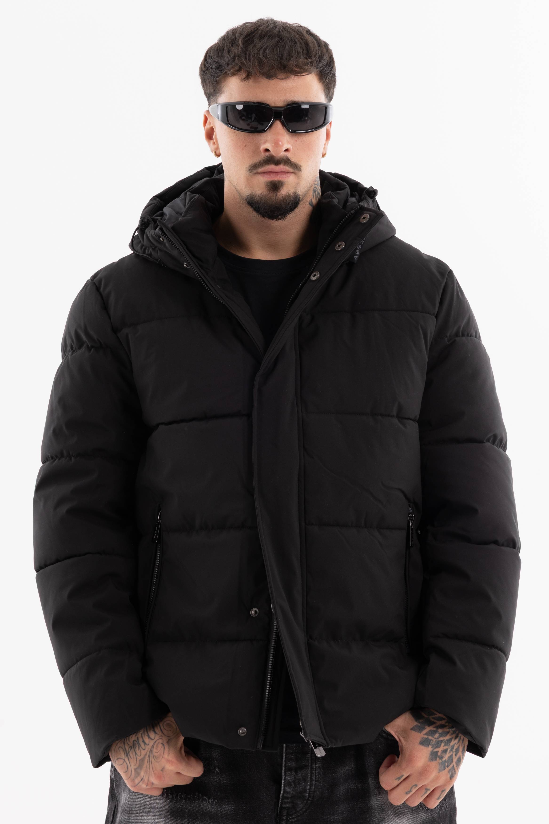 Giubbotto uomo imbottito trapuntato con cappuccioregolabile chiusura con zip e tasche frontali. Capo caldo e funzionale ideale per un look pratico e alla moda.