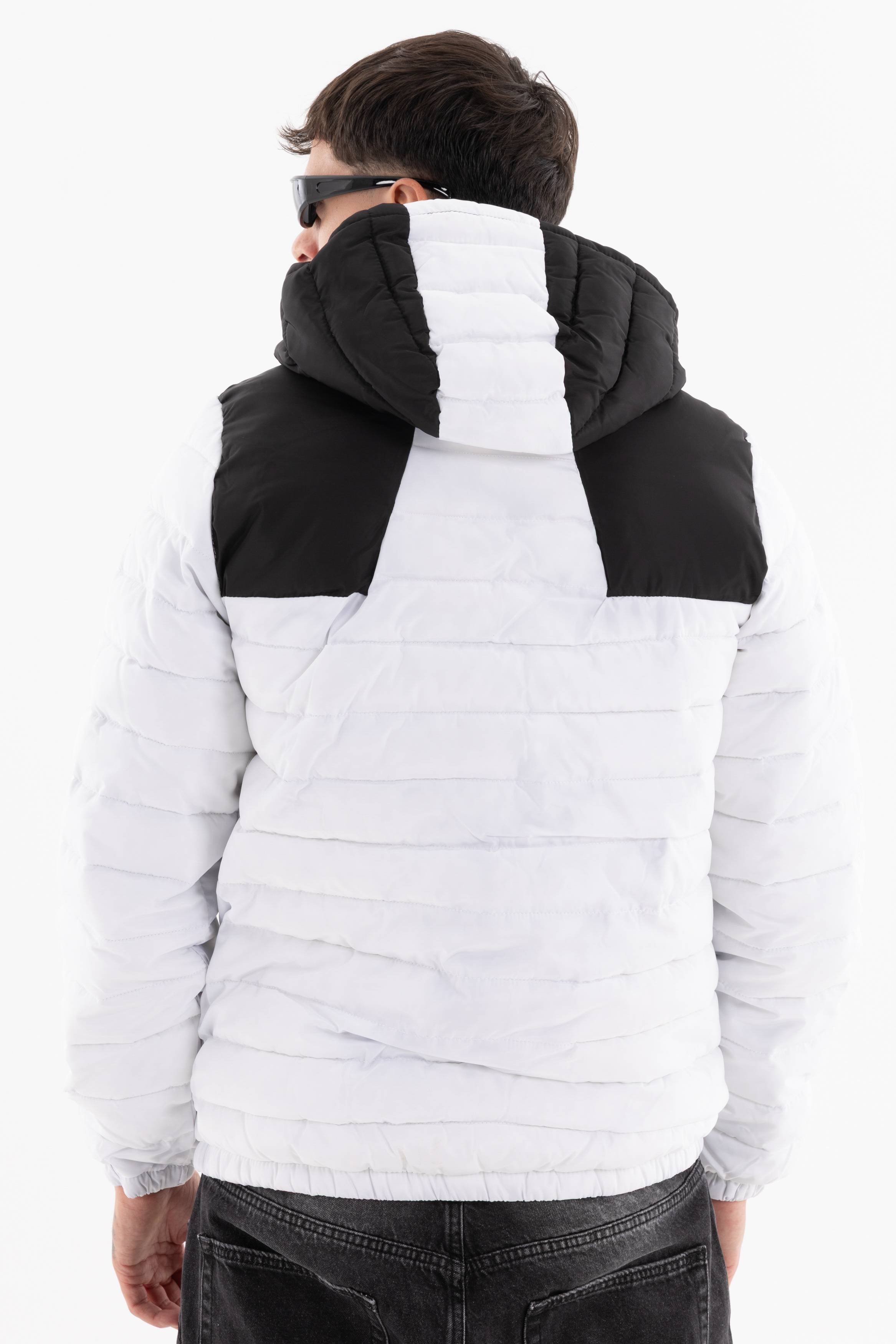 Giubbotto uomo color block con cappuccio e tasche. Morbido e trapuntato garantisce comfort e calore. Perfetto per look pratici e carichi di stile.