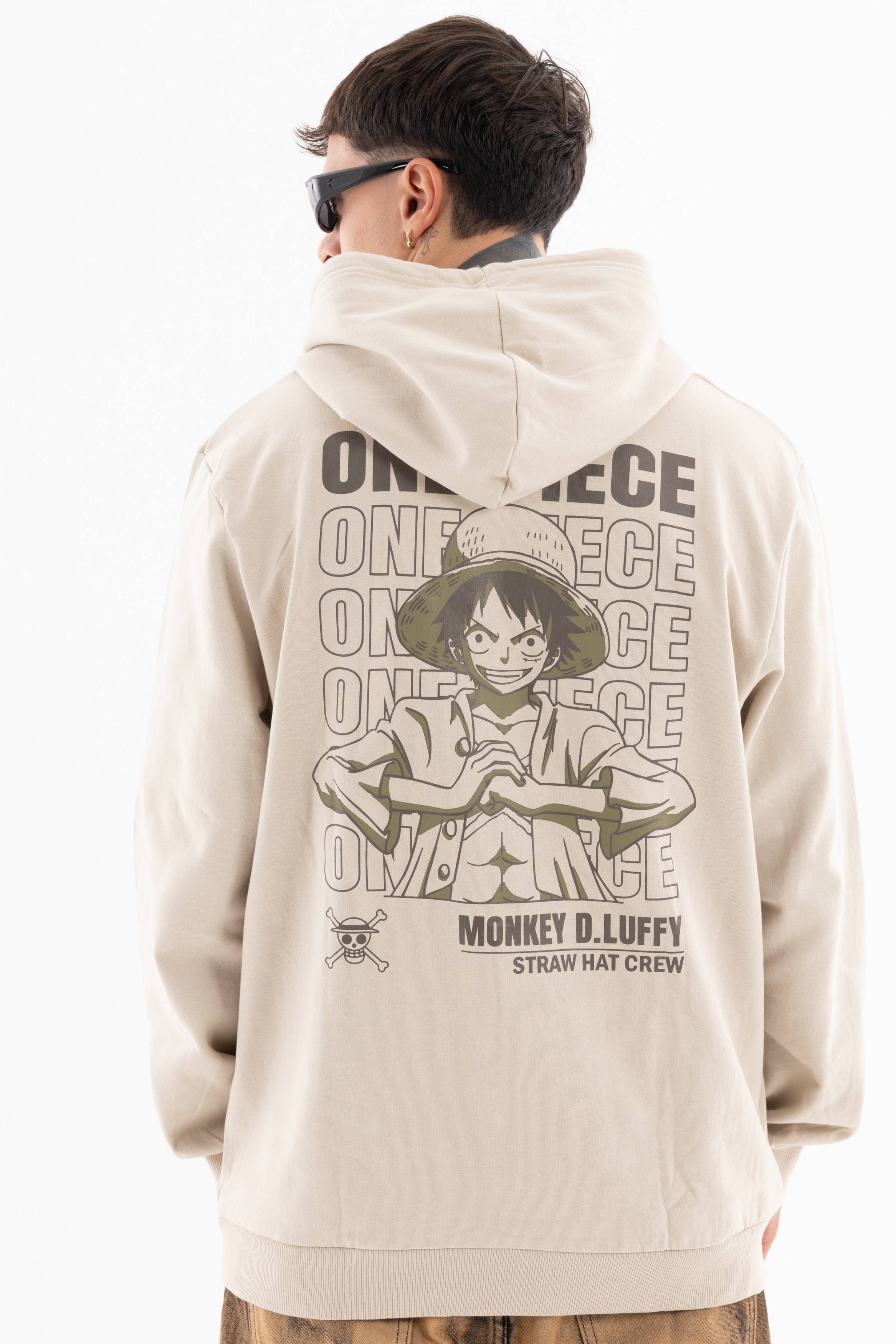 Felpa boxy con cappuccio e stampa di Monkey D. Luffy l iconico Cappello di Paglia di One Piece sufronte e retro. Un capo bold e d'impatto perfetto per un look street inconfondibile.