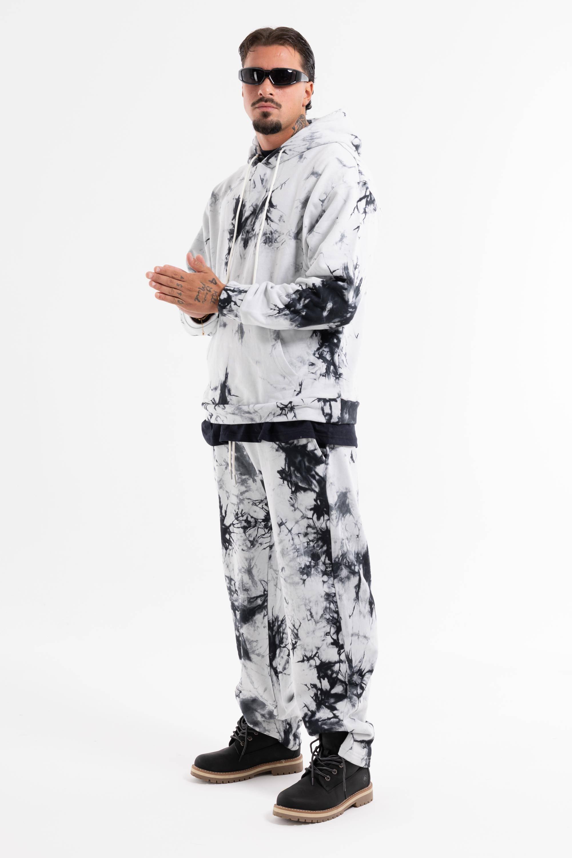 Tuta dallo stile originale e sportivo perfetta per il tempo libero. Pattern grafico all-over con dettagli a contrasto felpa con cappuccio e tasca sul davanti polsini e caviglie elasticizzati.