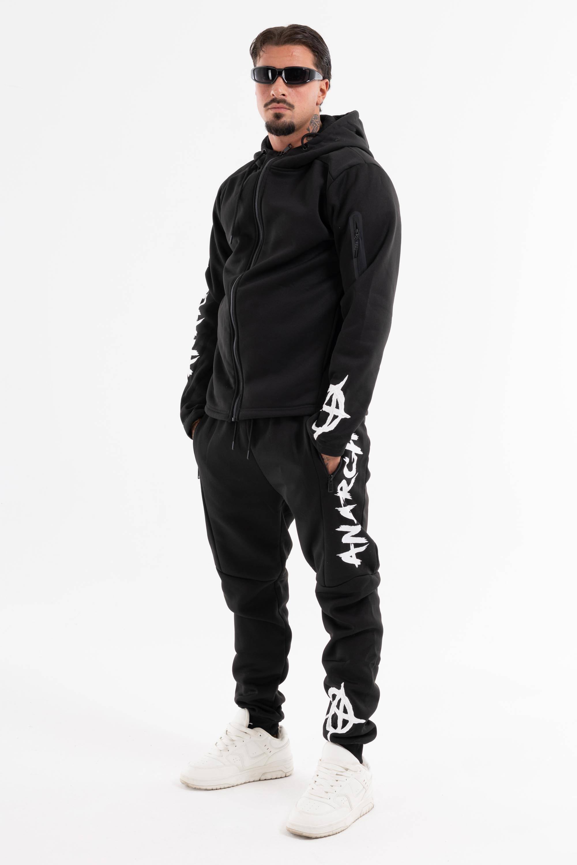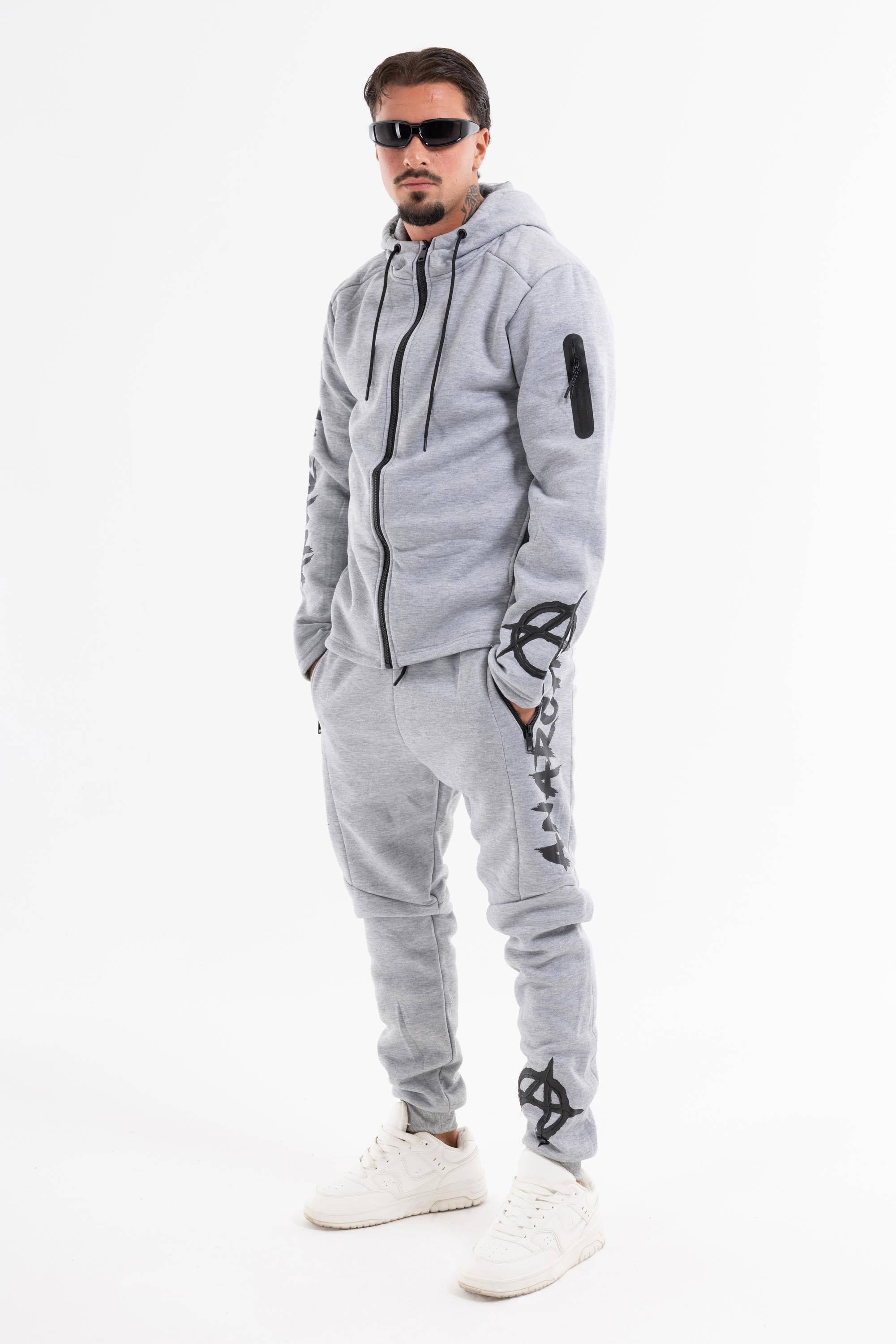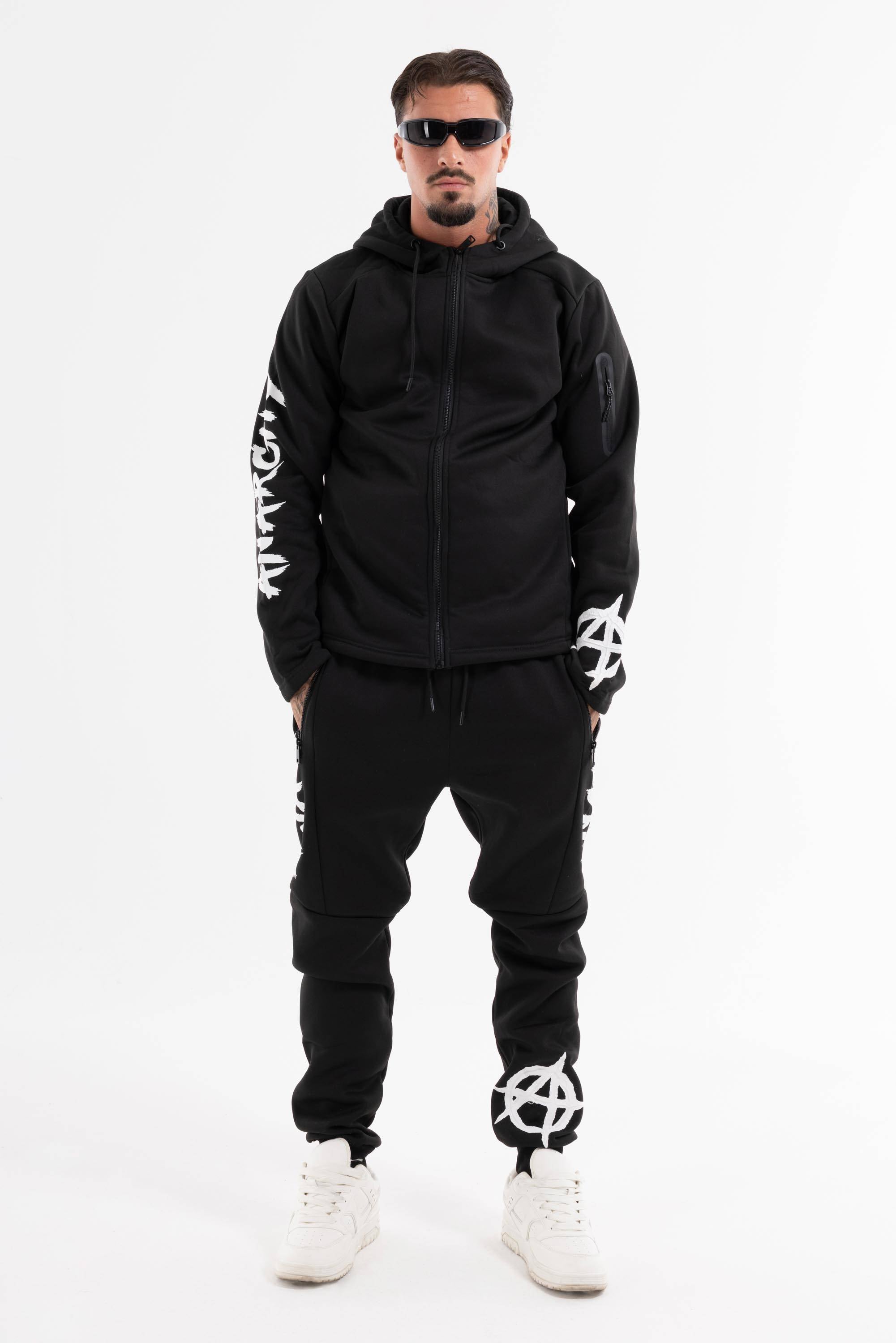 Tuta con cappuccio e zip frontale logo Anarchy sumaniche e gambe per un look grintoso e di carattere. Taglio urban ispirazione metropolitana. Perfetta per uno stile deciso da vivere ogni giorno.