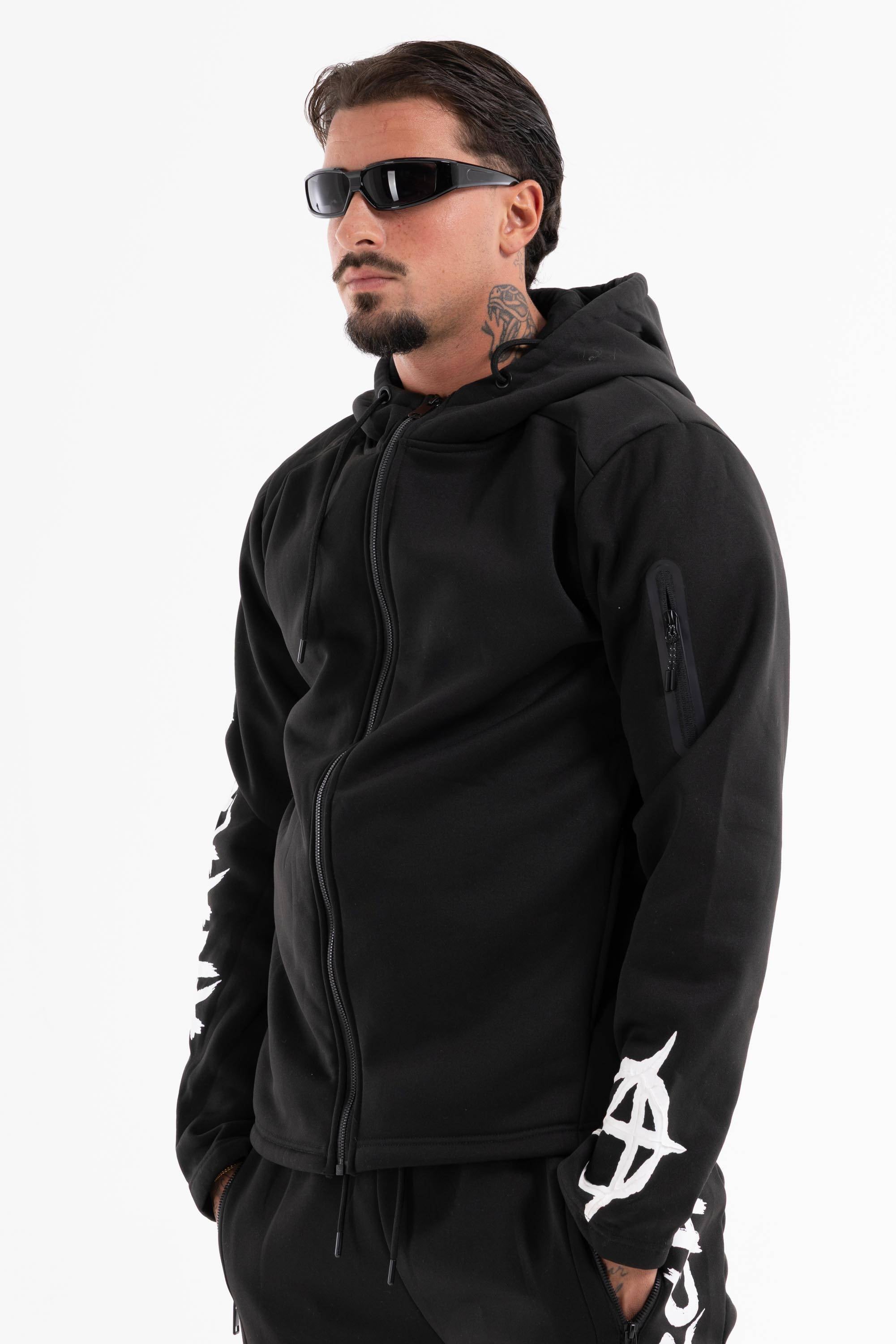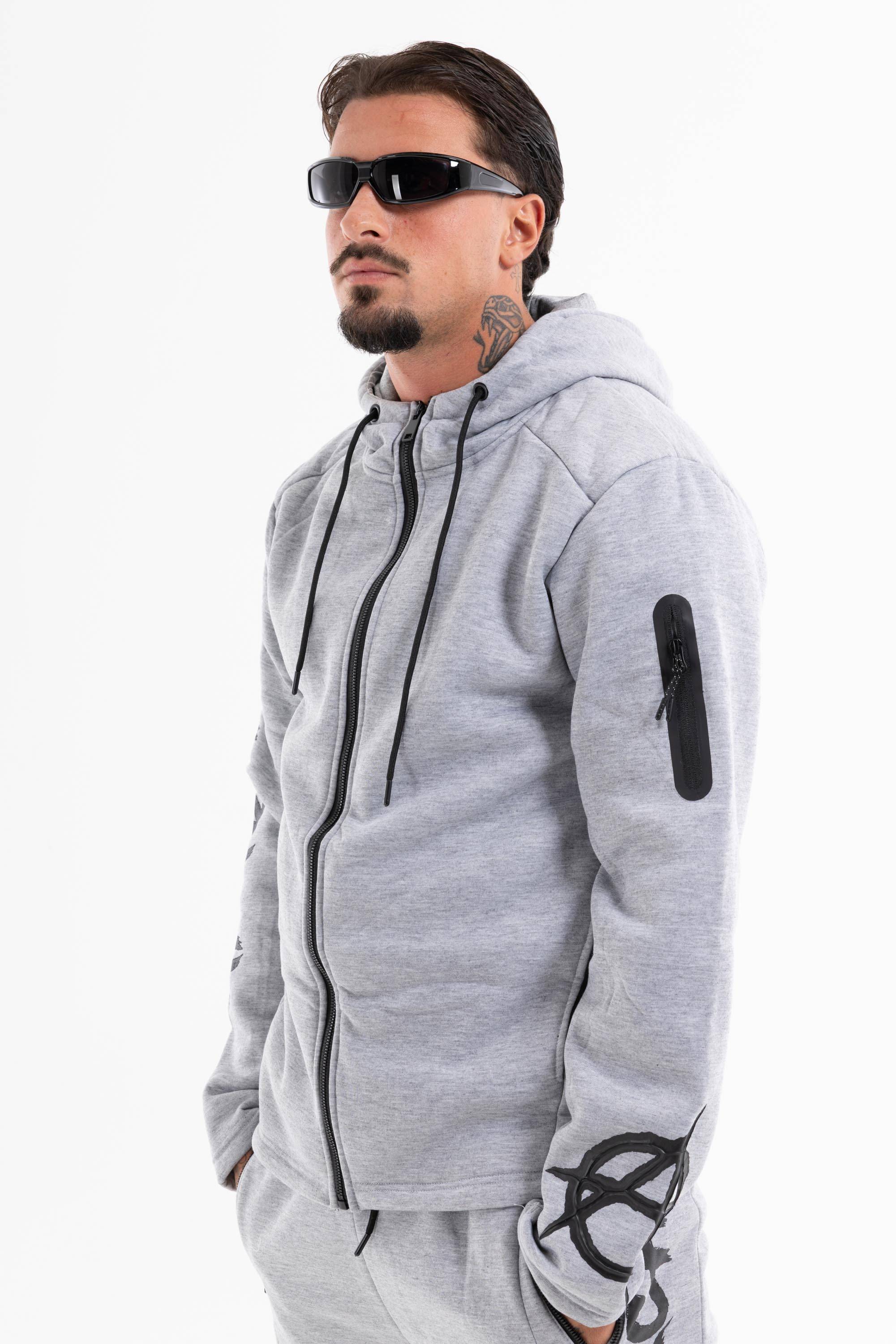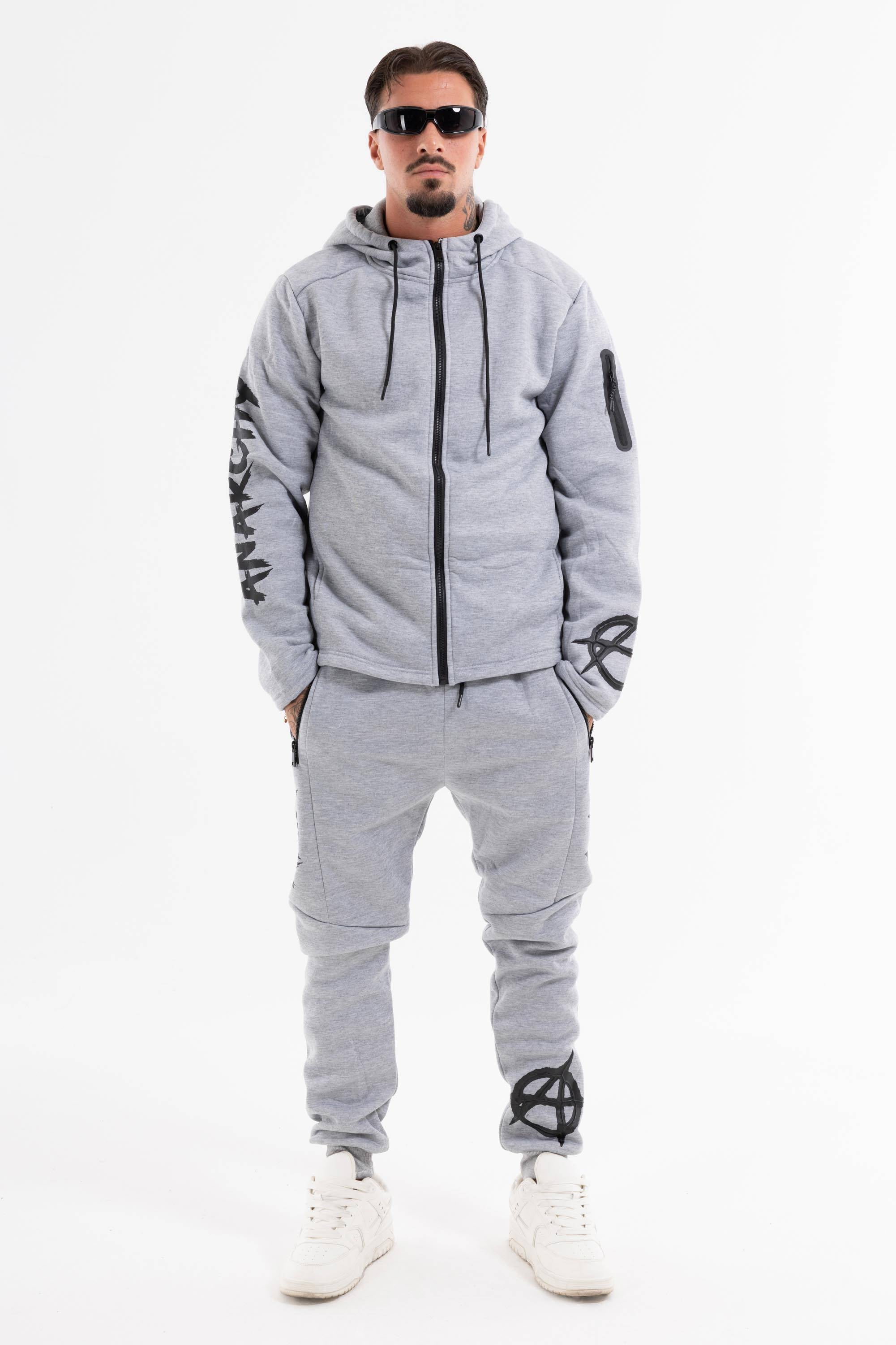 Tuta con cappuccio e zip frontale logo Anarchy sumaniche e gambe per un look grintoso e di carattere. Taglio urban ispirazione metropolitana. Perfetta per uno stile deciso da vivere ogni giorno.
