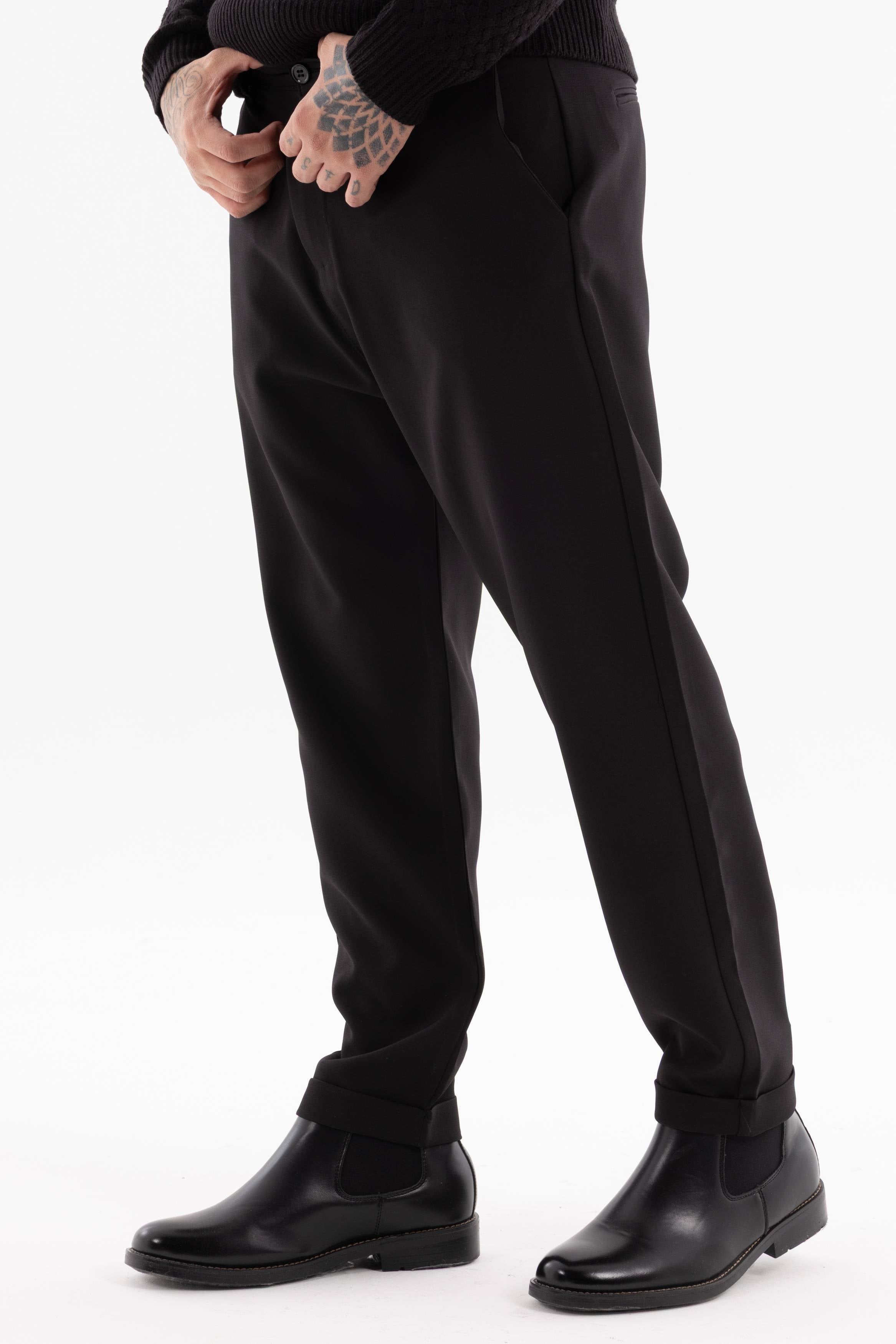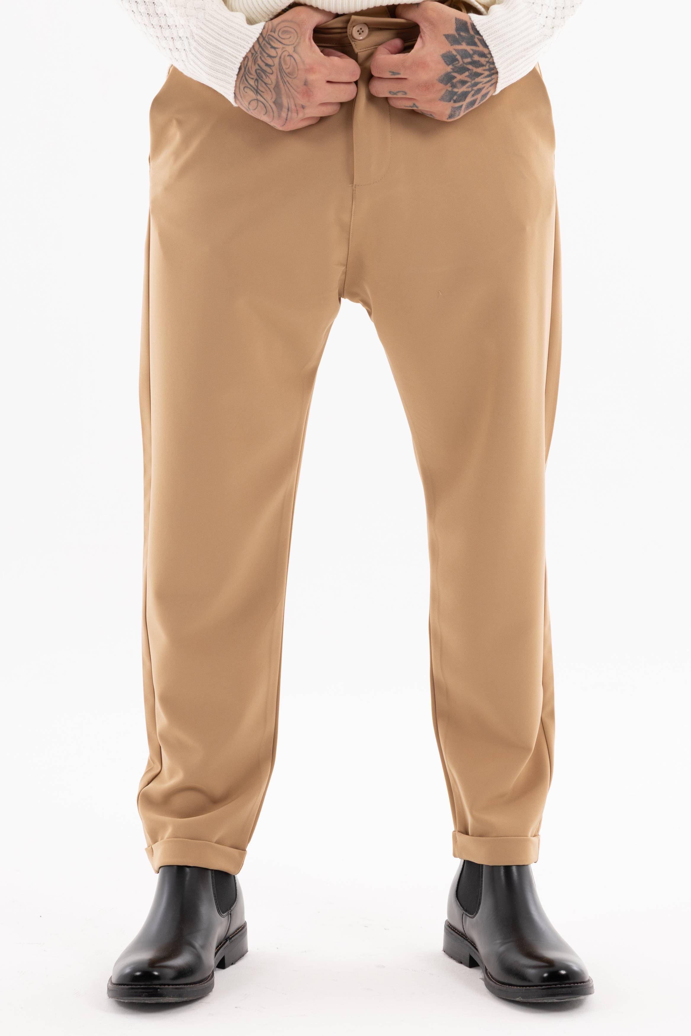 Pantalone uomo classico con risvolto alla caviglia e taglio lineare. Capo versatile e leggero perfetto per completare con eleganza un look curato e moderno.