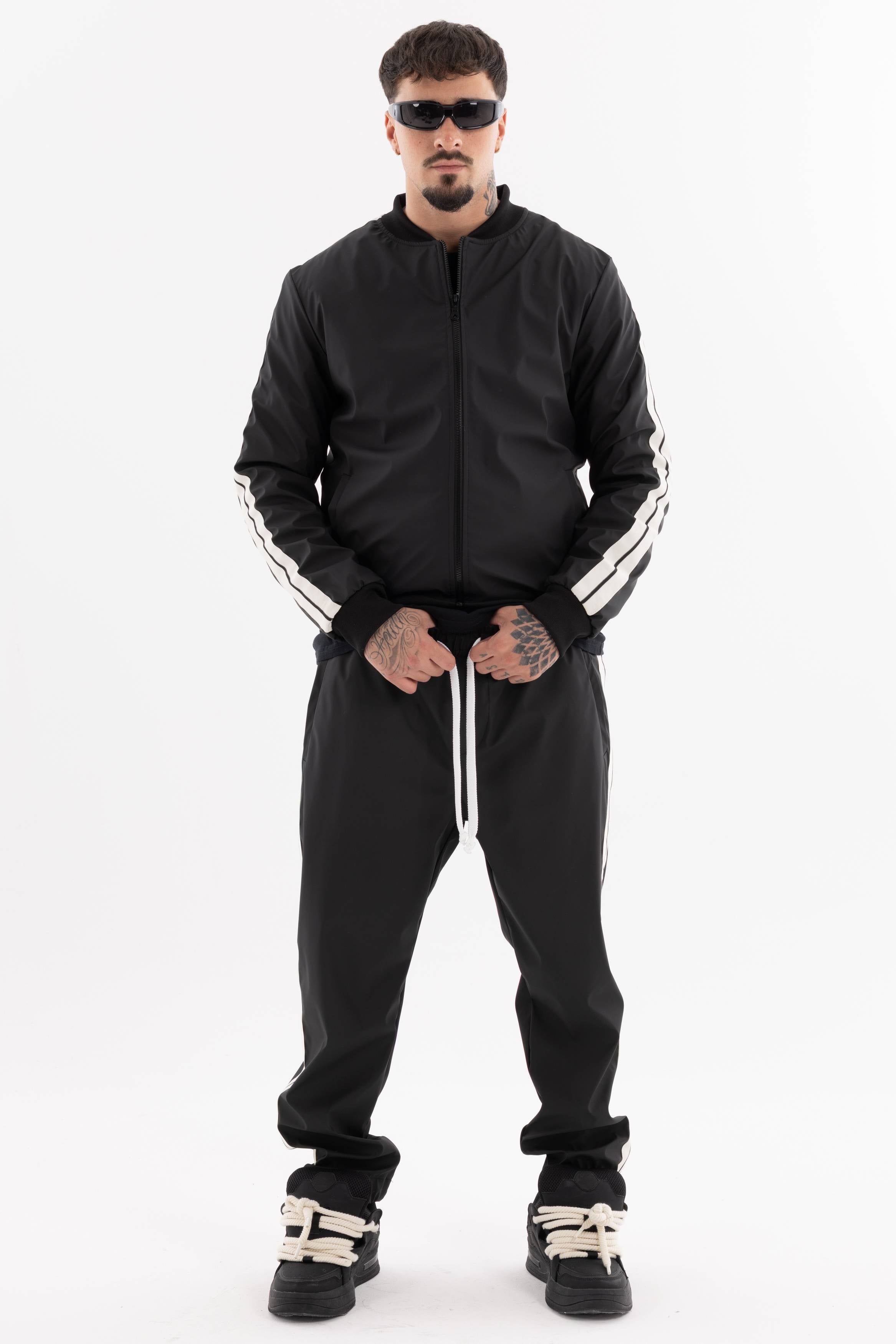 Pantaloni uomo in tessuto tecnico con bande laterali a contrasto. Capo versatile e moderno perfetto da abbinare al giubbotto coordinato per un look completo e dinamico.