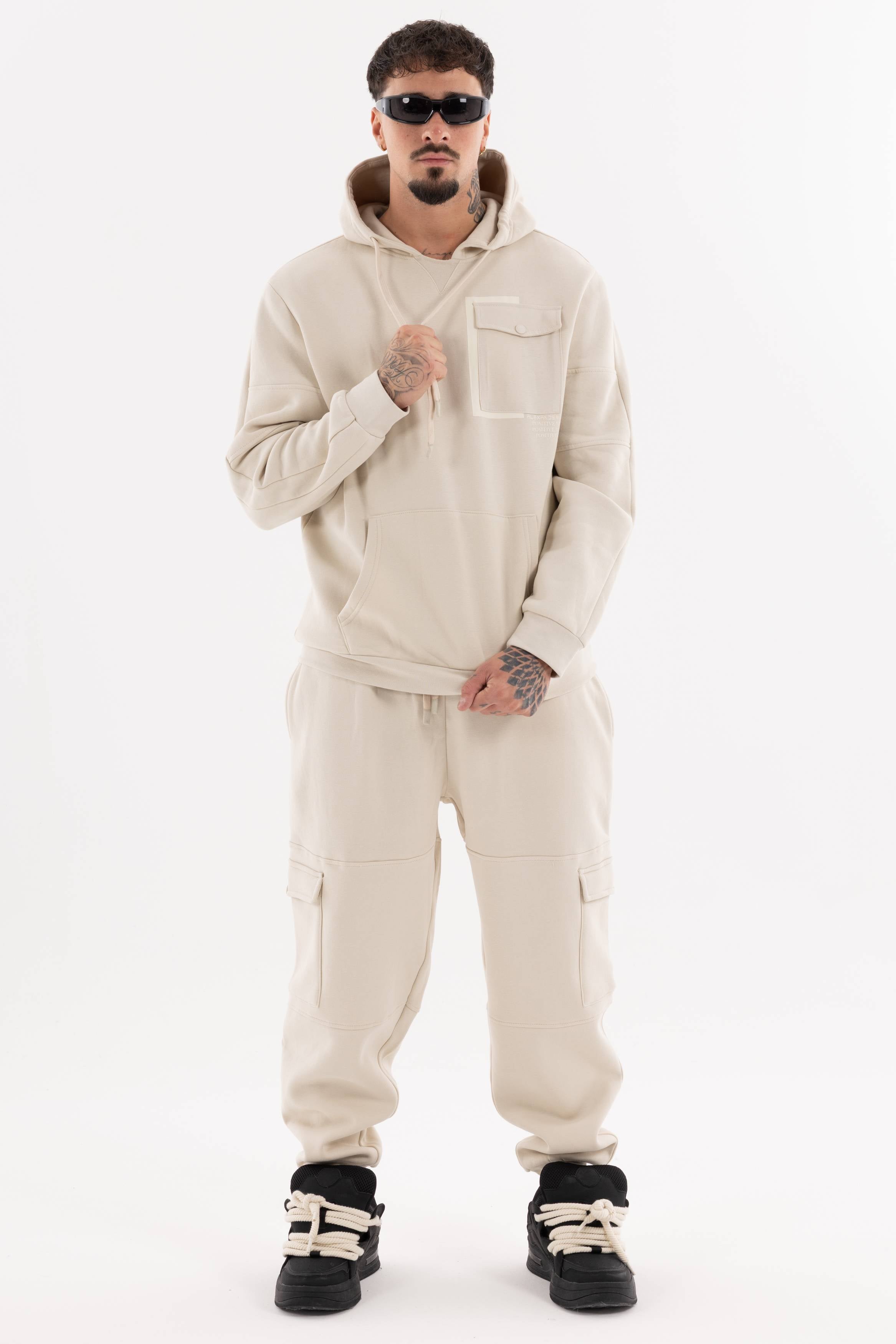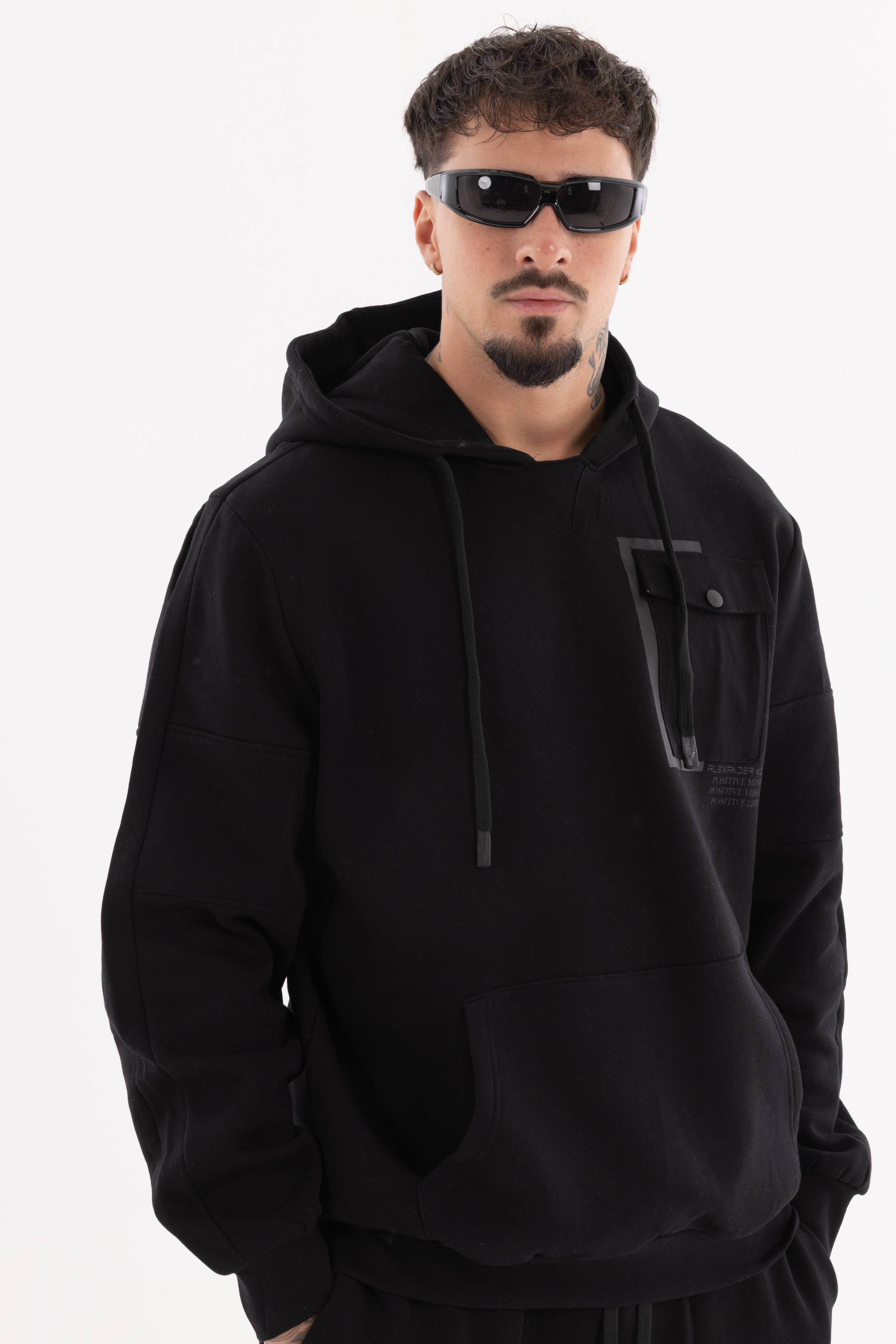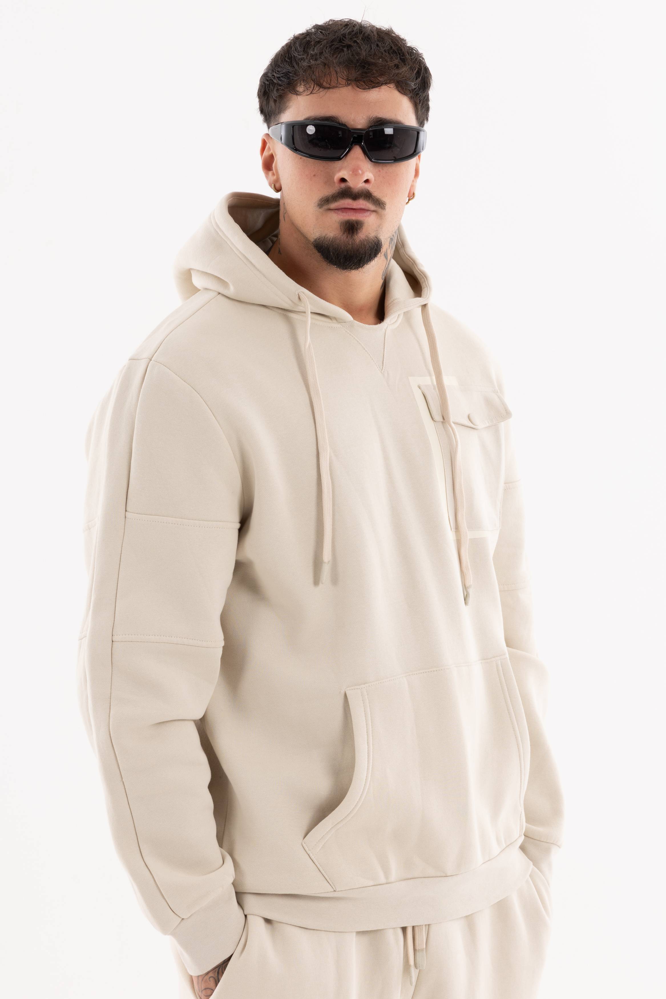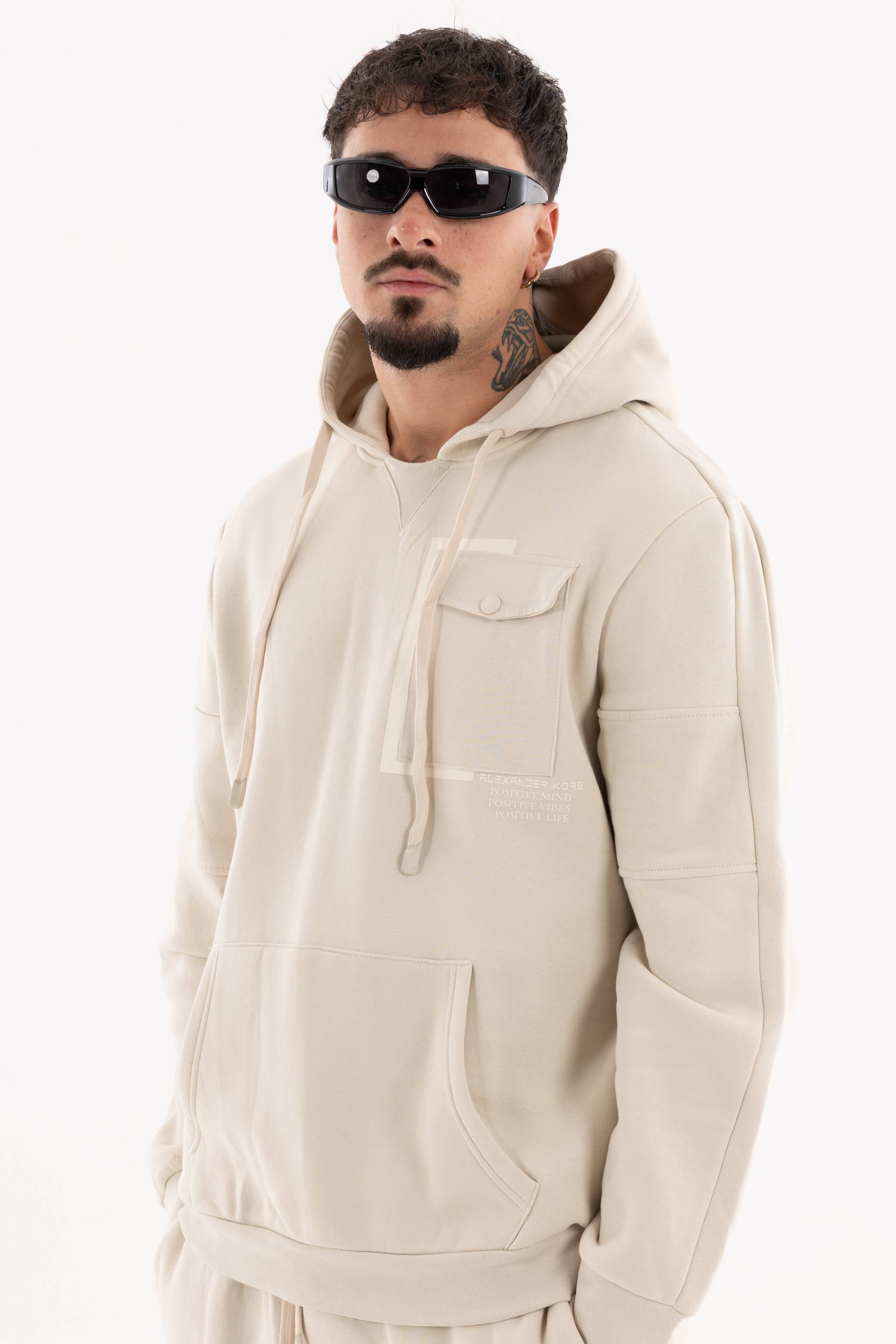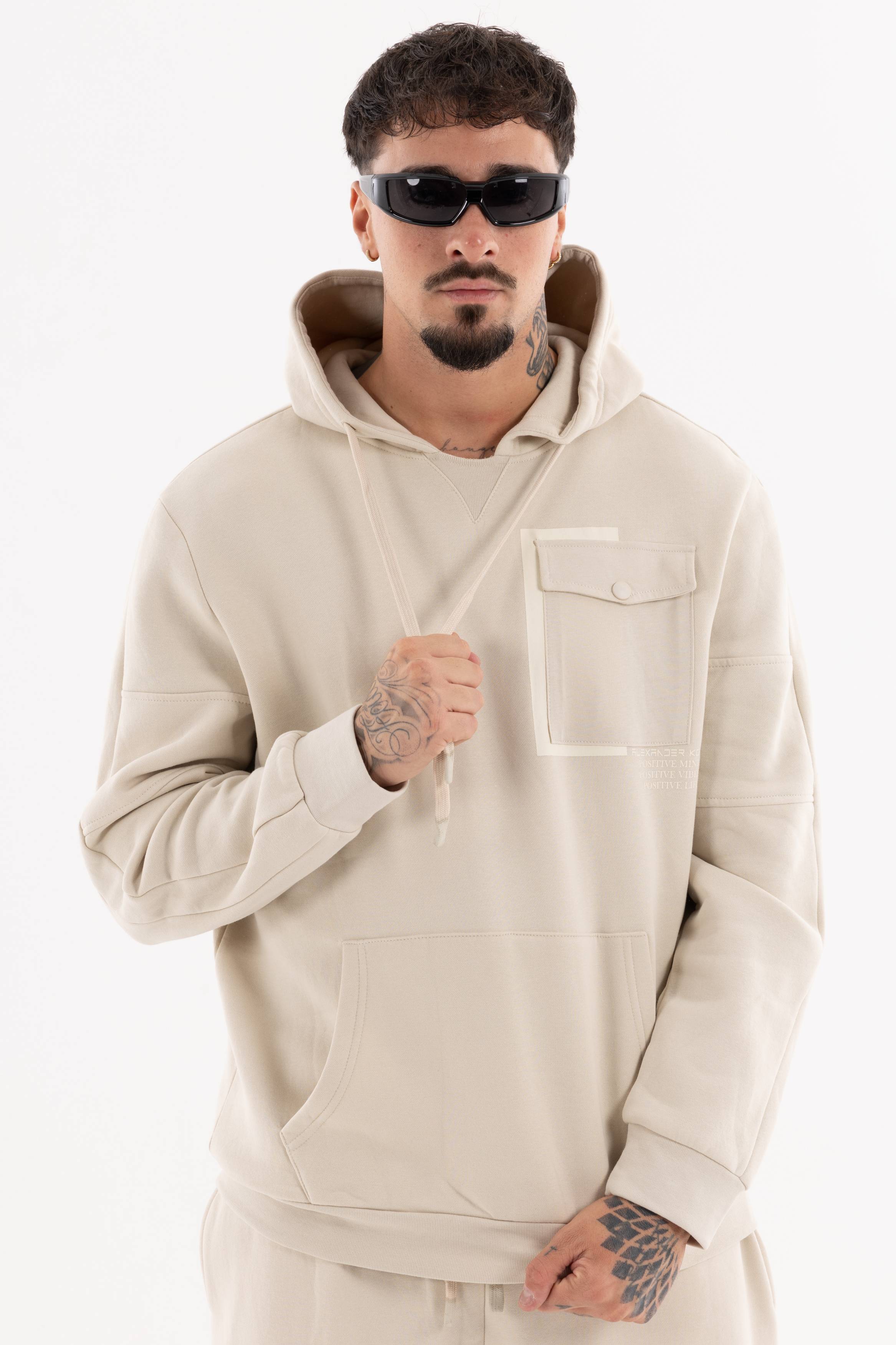 Felpa con cappuccio e tasca applicata sul petto. Design curato nei dettagli perfetta per uno stilecasual e dinamico. Disponibili joggers coordinabili.