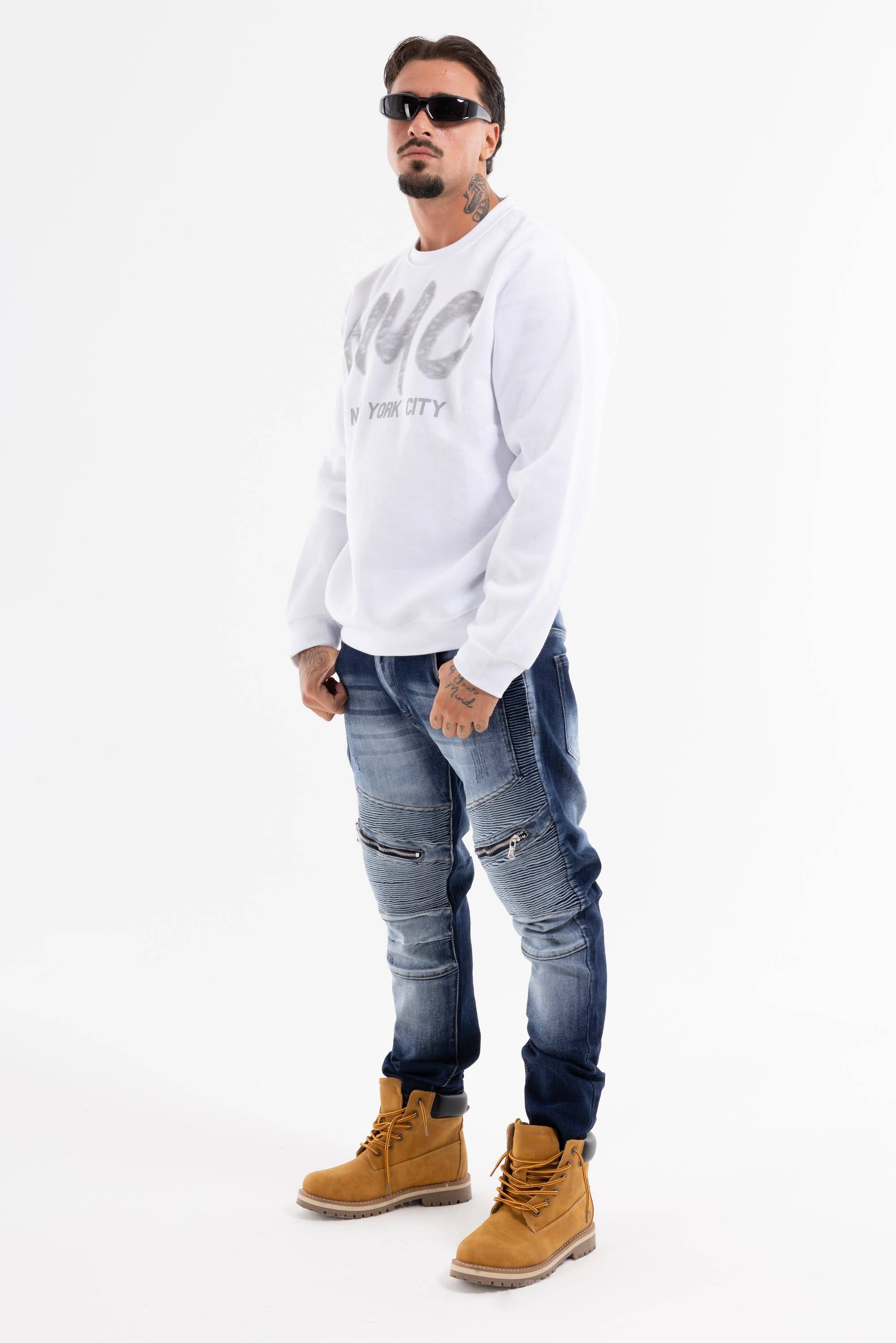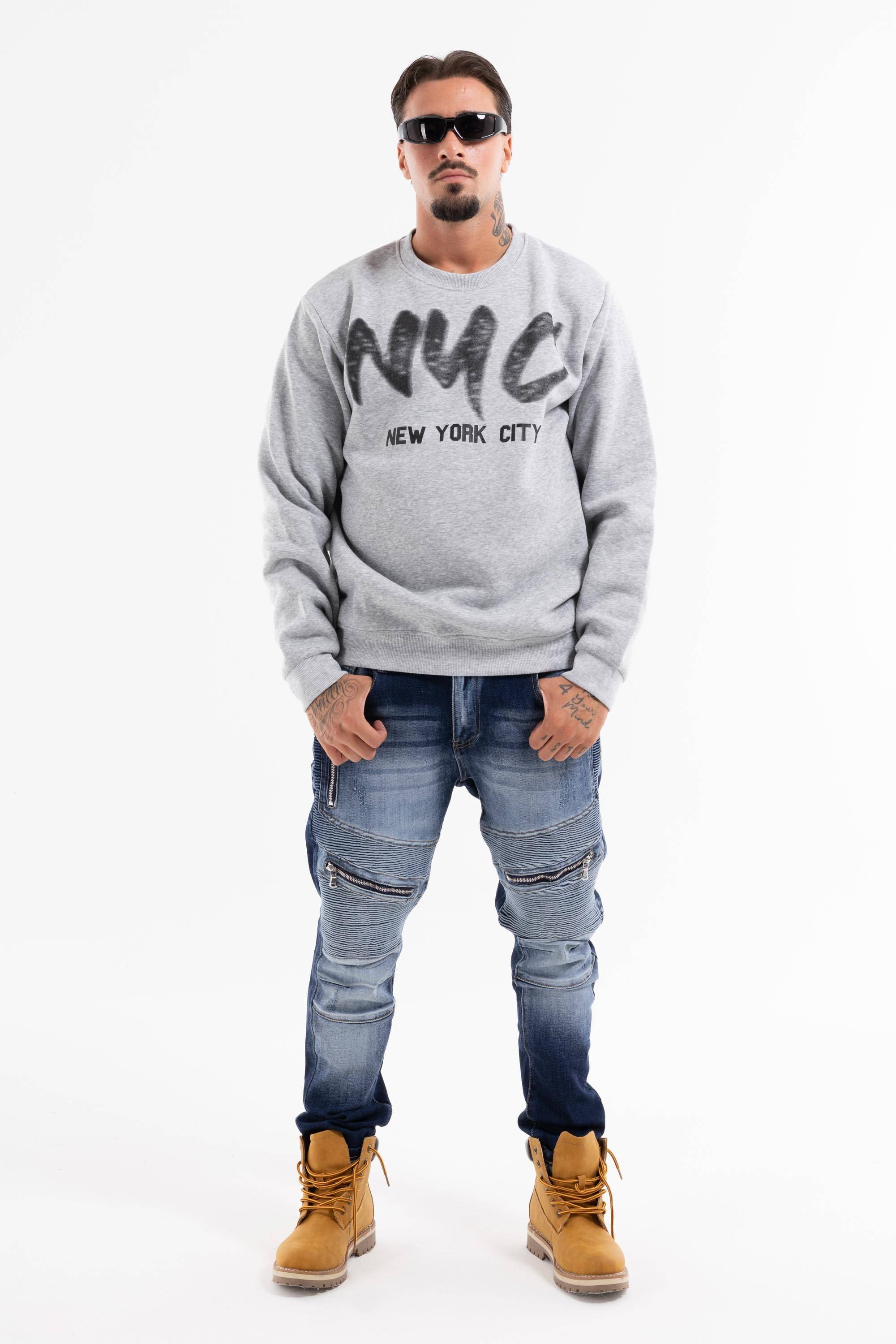 Felpa girocollo con stampa NYC pensata per uno stile urban. Polsi e fondo elasticizzati fit comfort. Perfetta per il quotidiano da indossare da sola o in layering. Ideale con jeans cargo joggers.