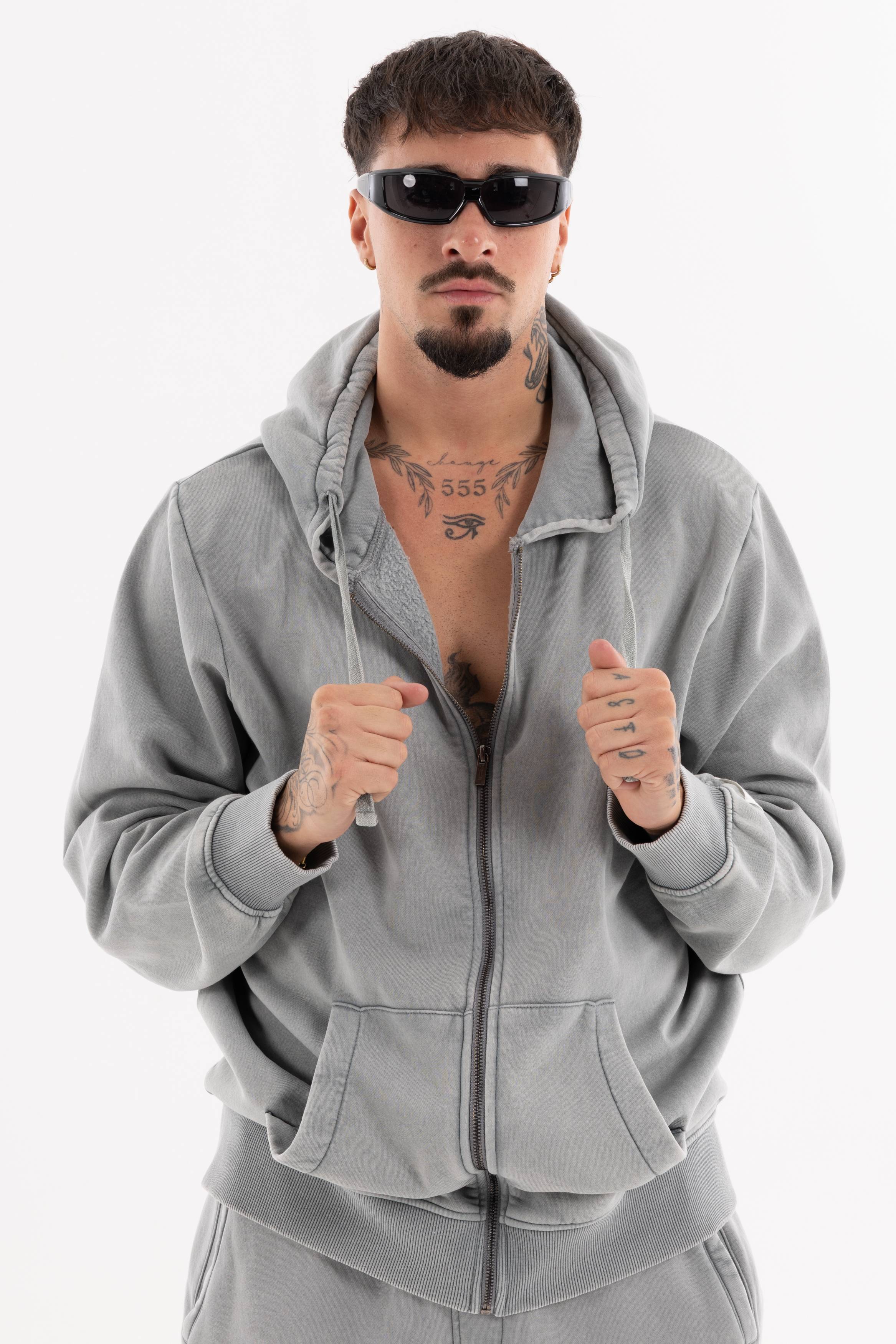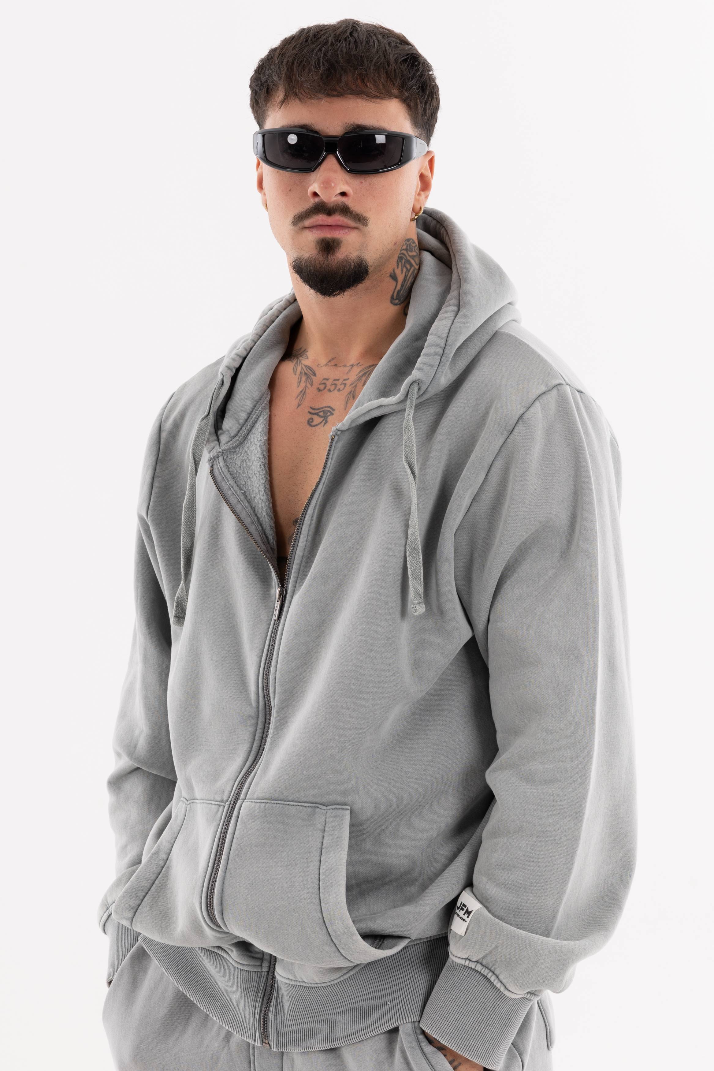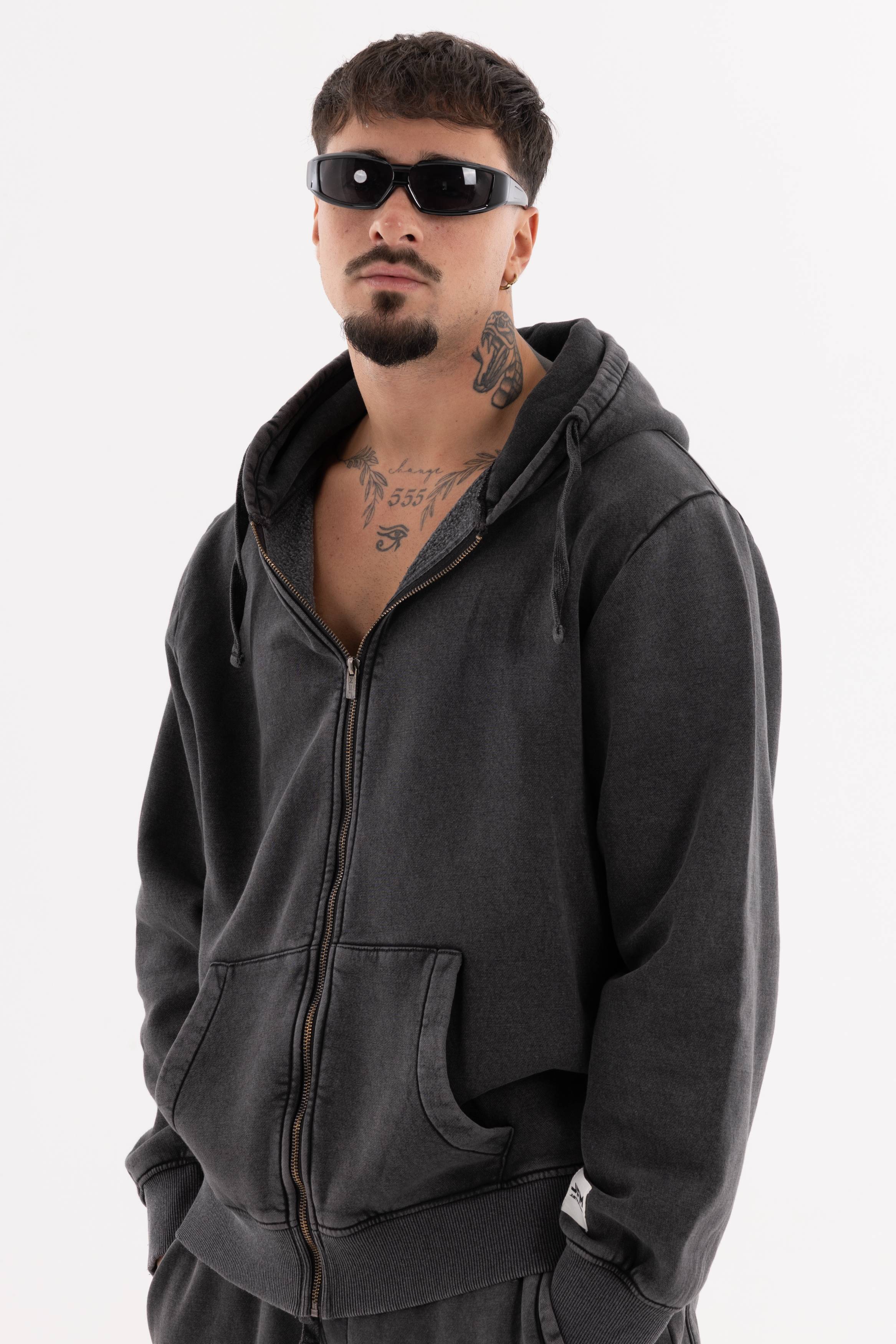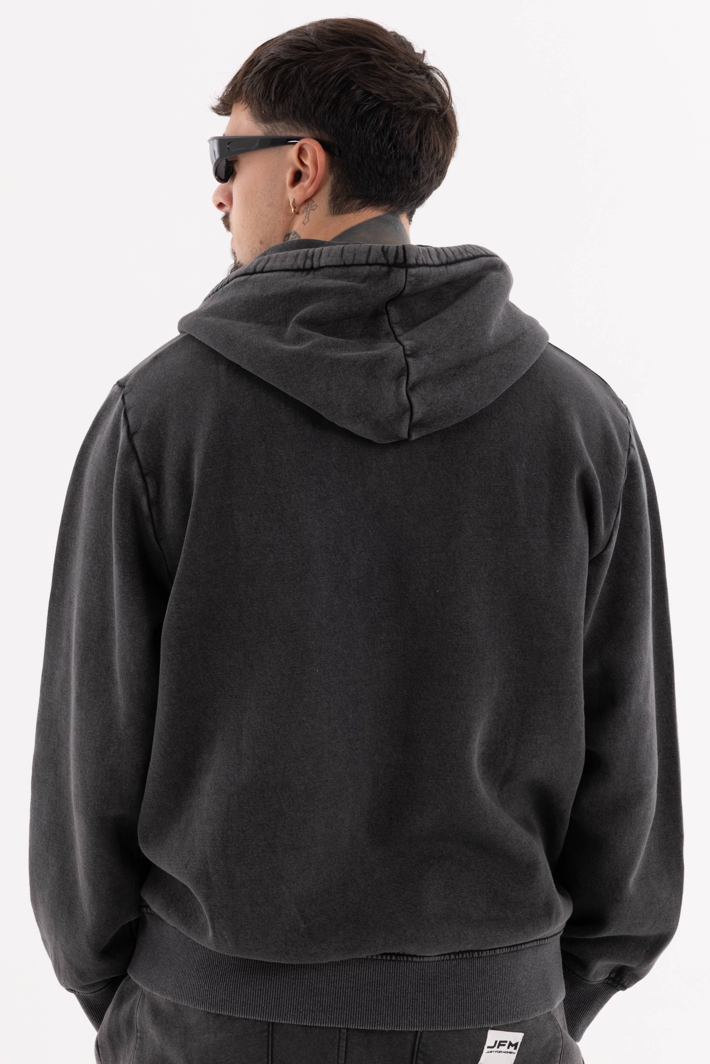 Felpa con zip e cappuccio dallo stile metropolitano con dettagli vissuti che conferiscono carattere al capo. Ideale per un look urbano moderno e ditendenza. Disponibili joggers coordinabili.