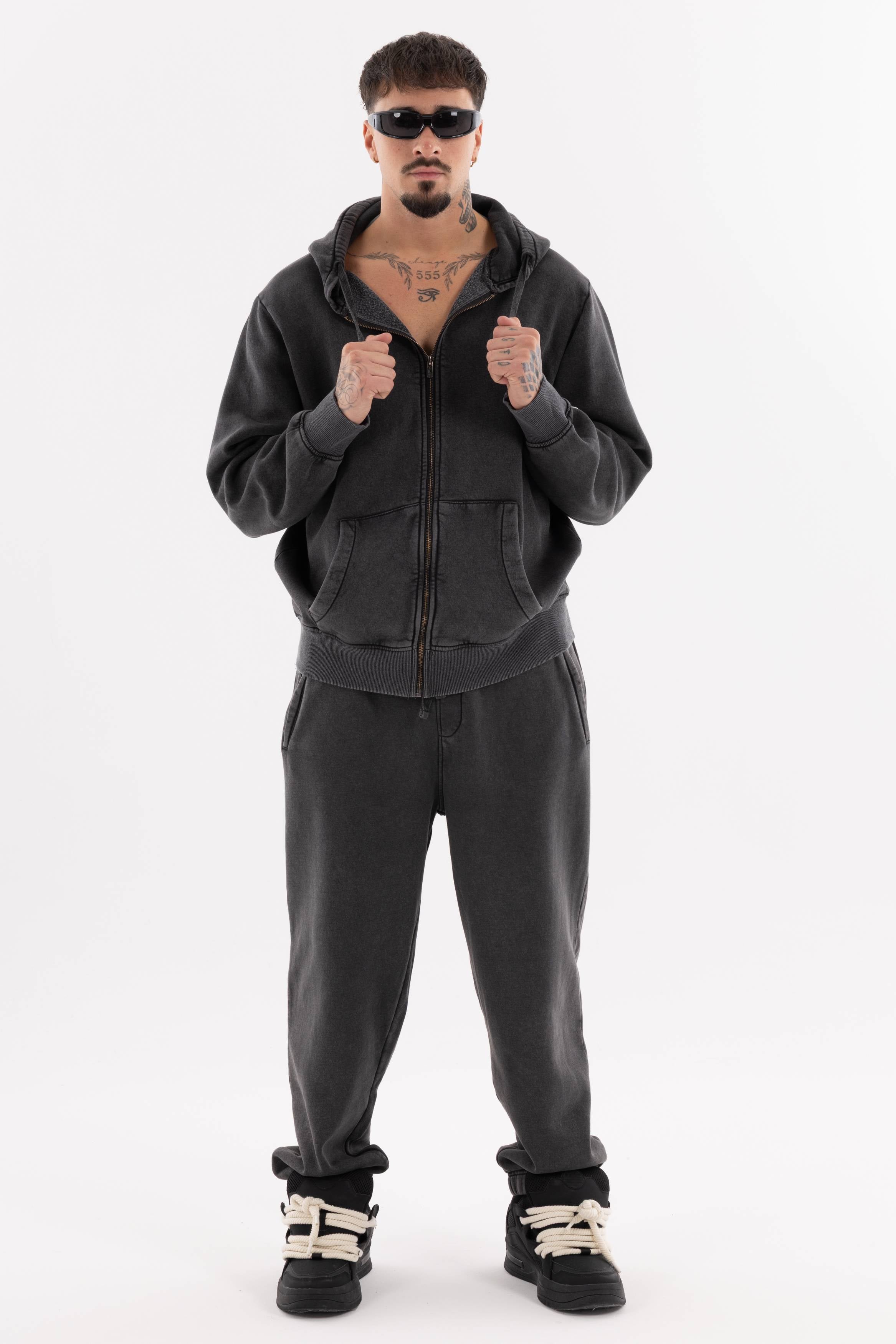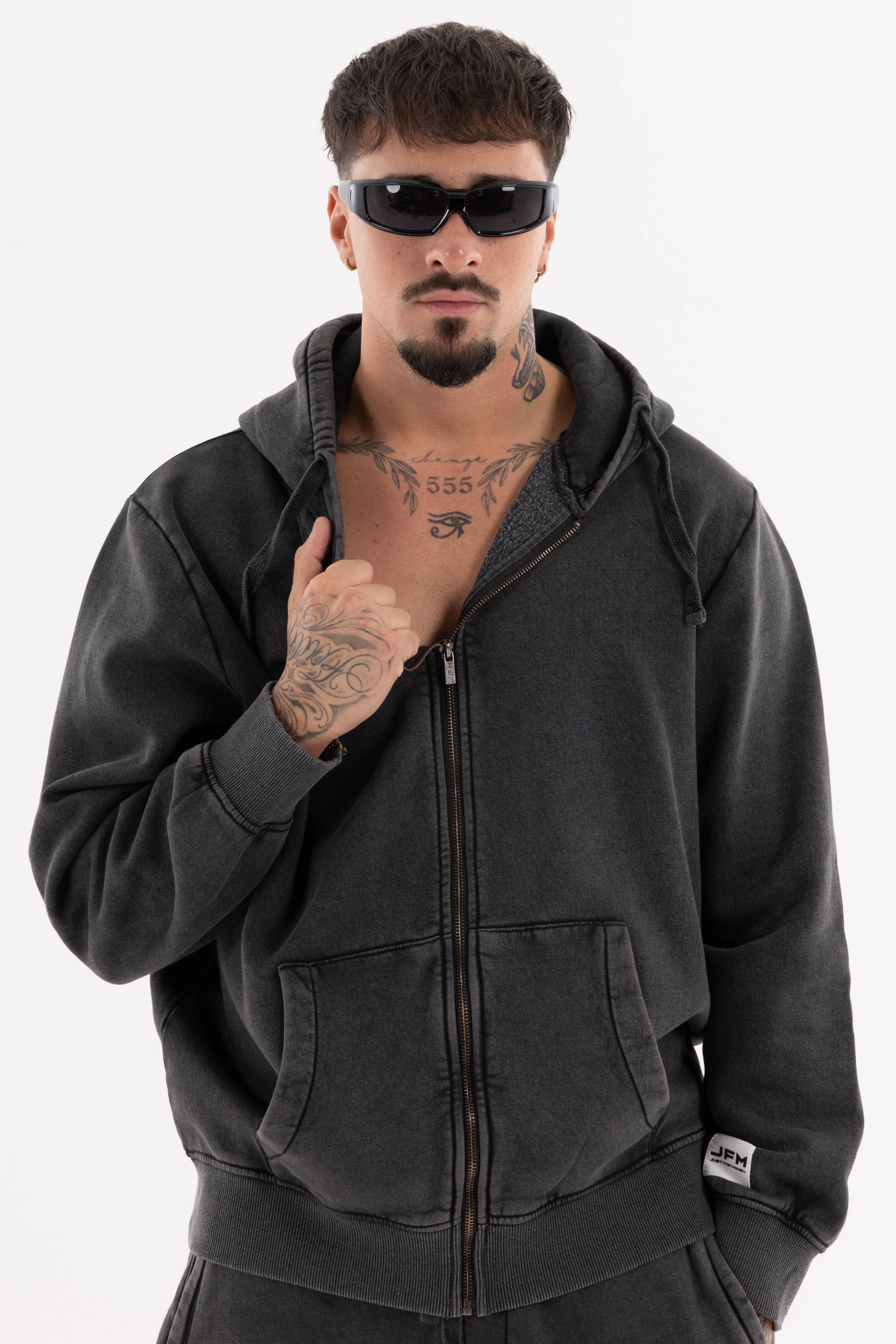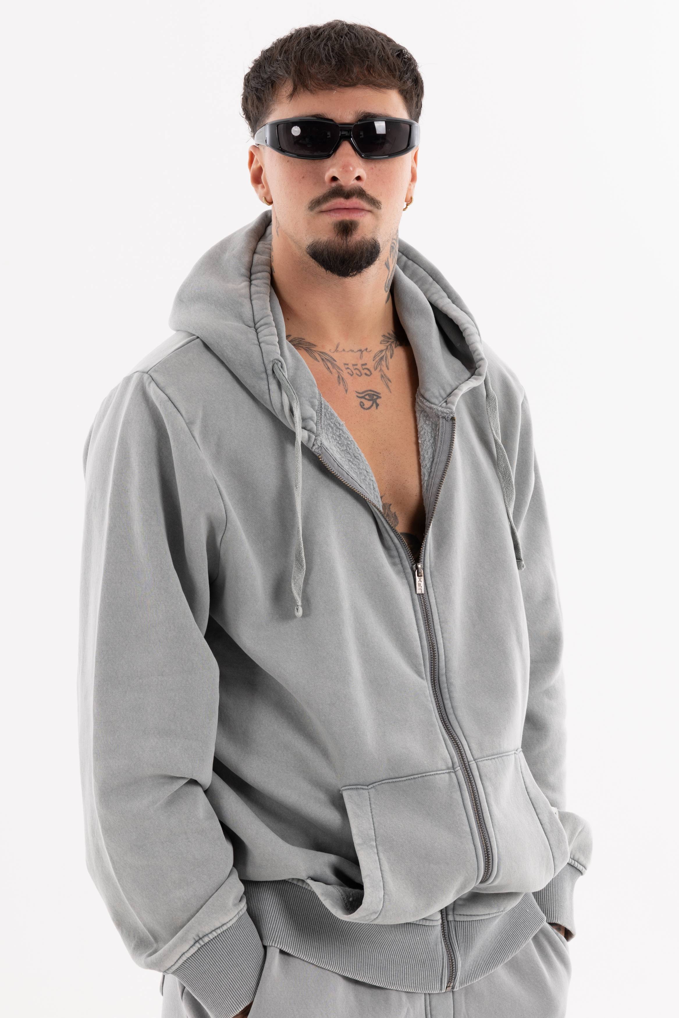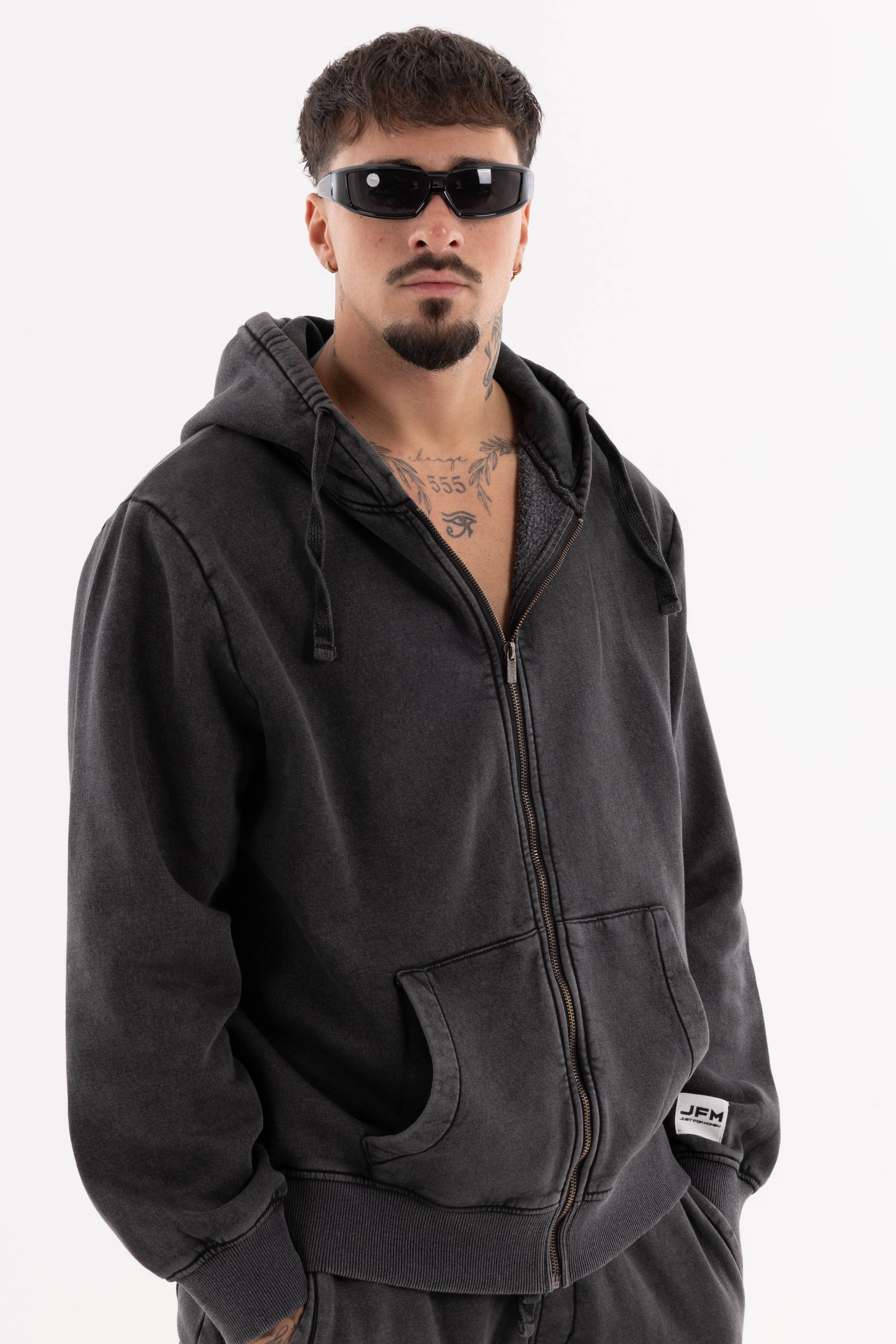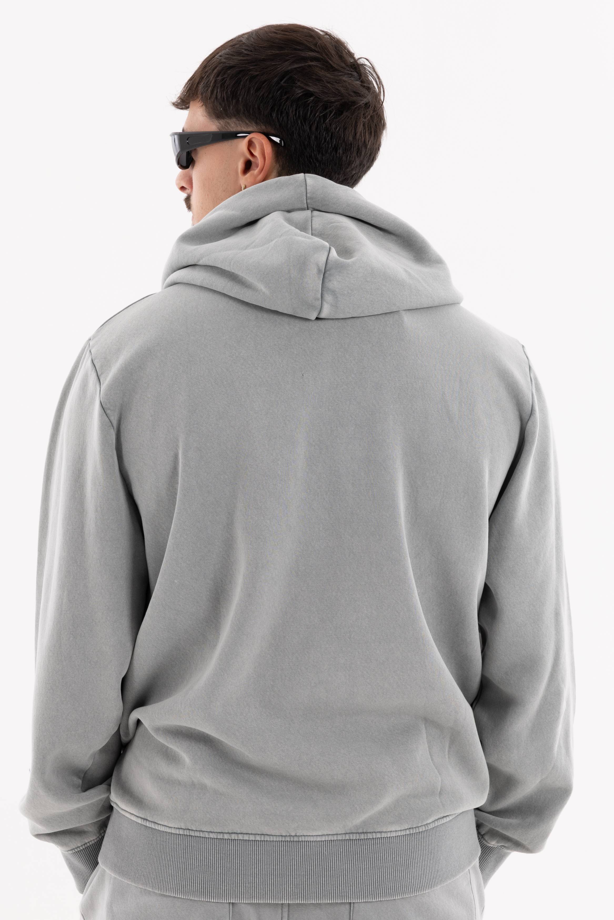 Felpa con zip e cappuccio dallo stile metropolitano con dettagli vissuti che conferiscono carattere al capo. Ideale per un look urbano moderno e ditendenza. Disponibili joggers coordinabili.