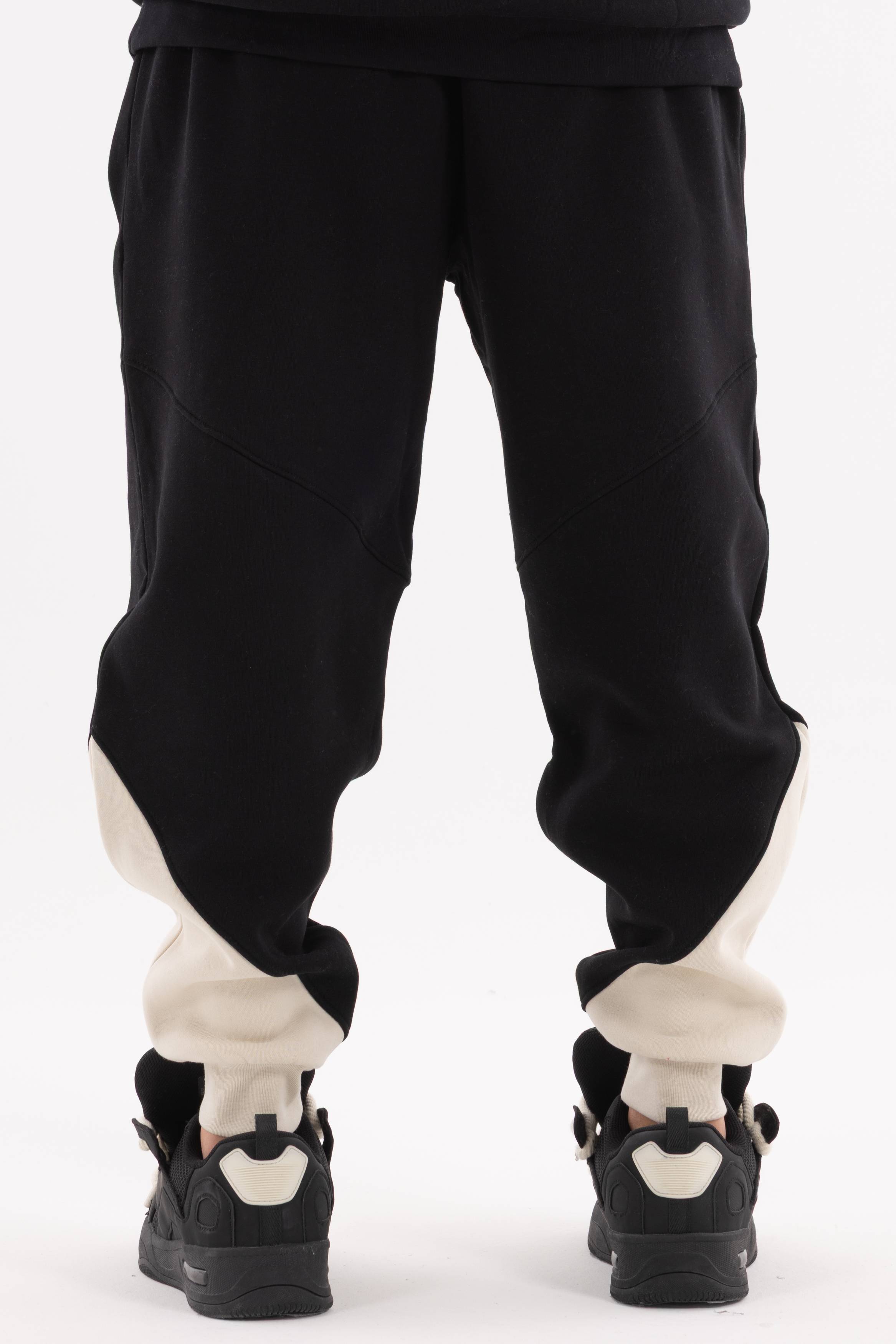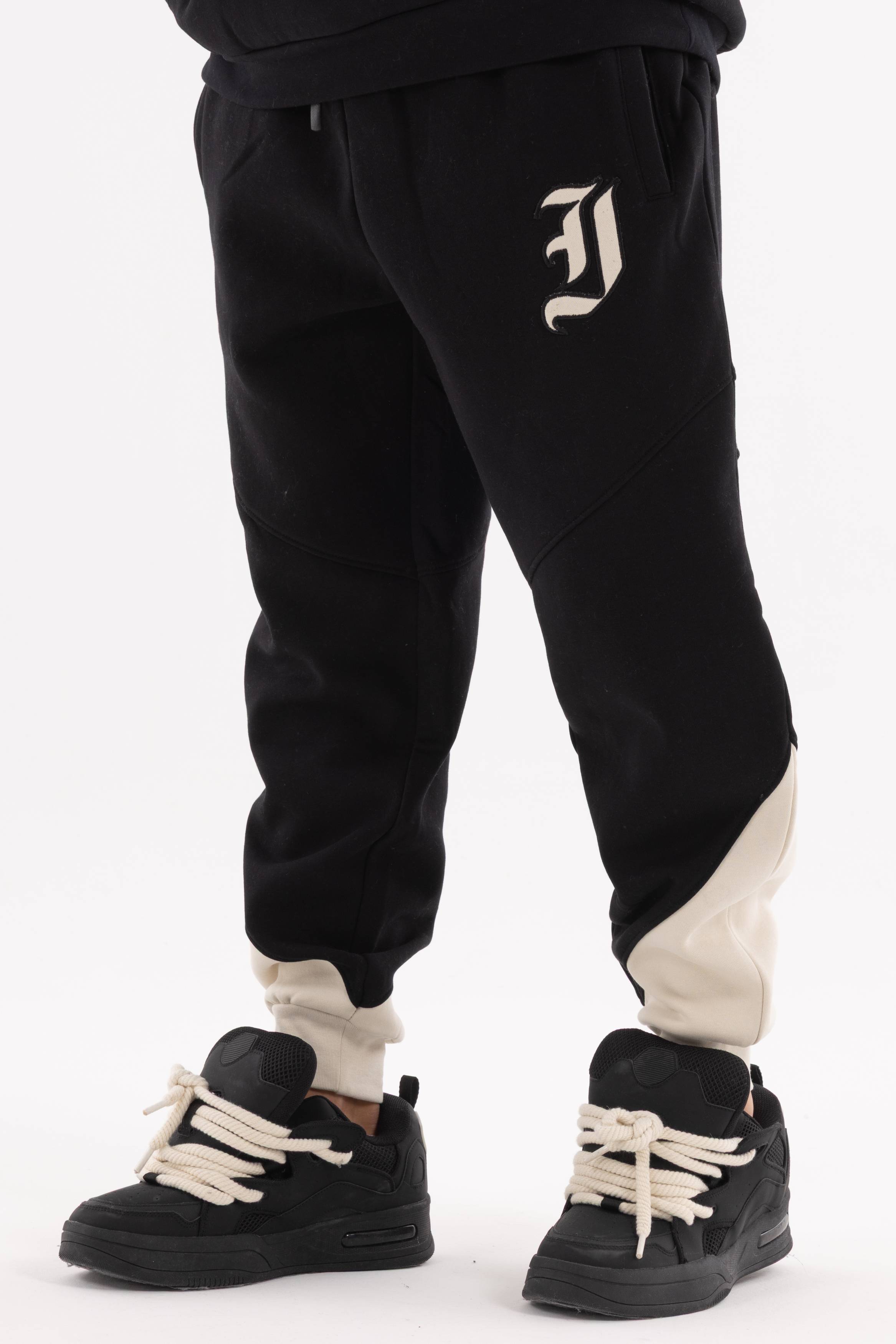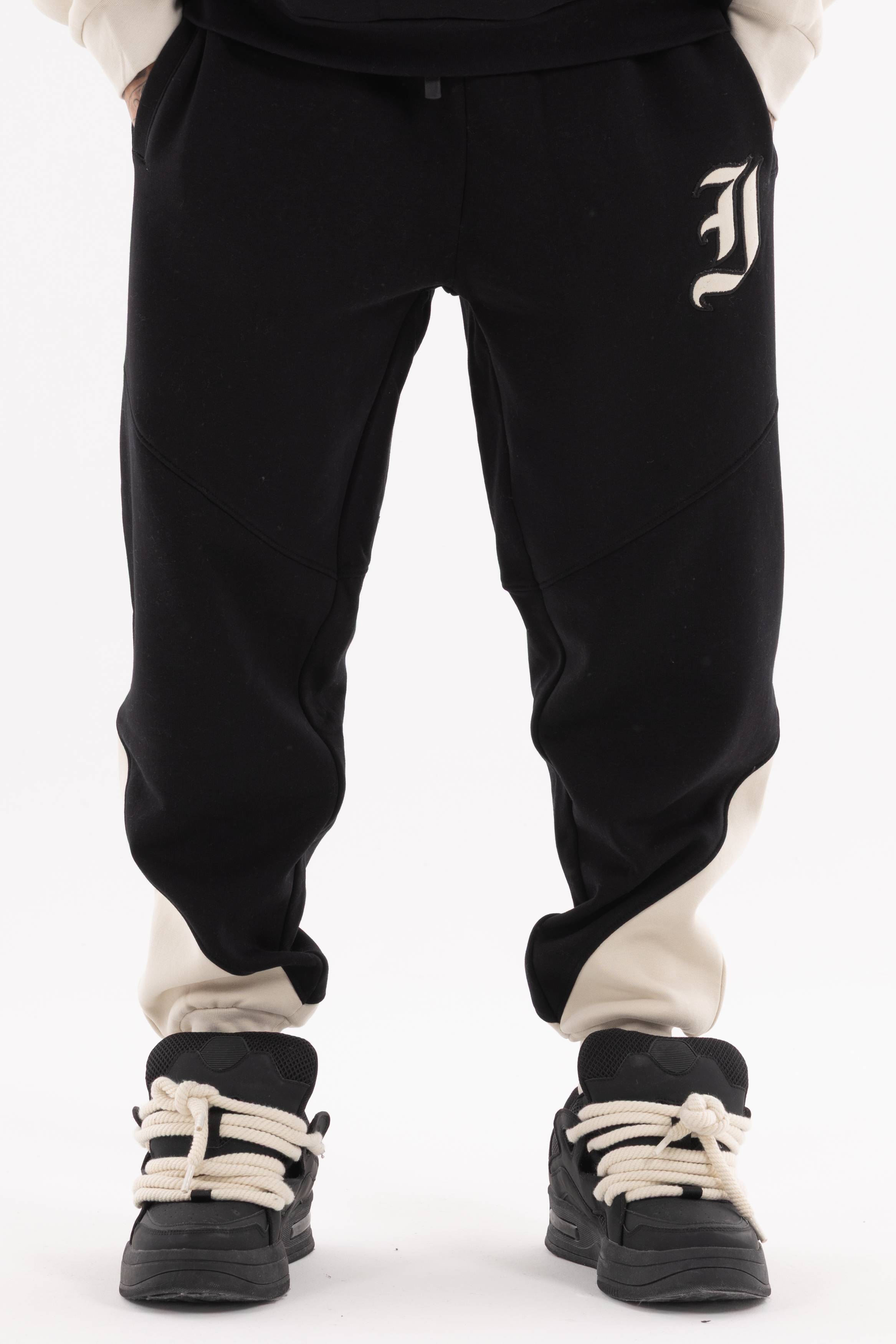 Pantaloni tuta color block con carattere gotico sulla gamba. Stile sportivo e moderno ideali per un look urbano deciso. Disponibile felpa coordinabile per un outfit completo.