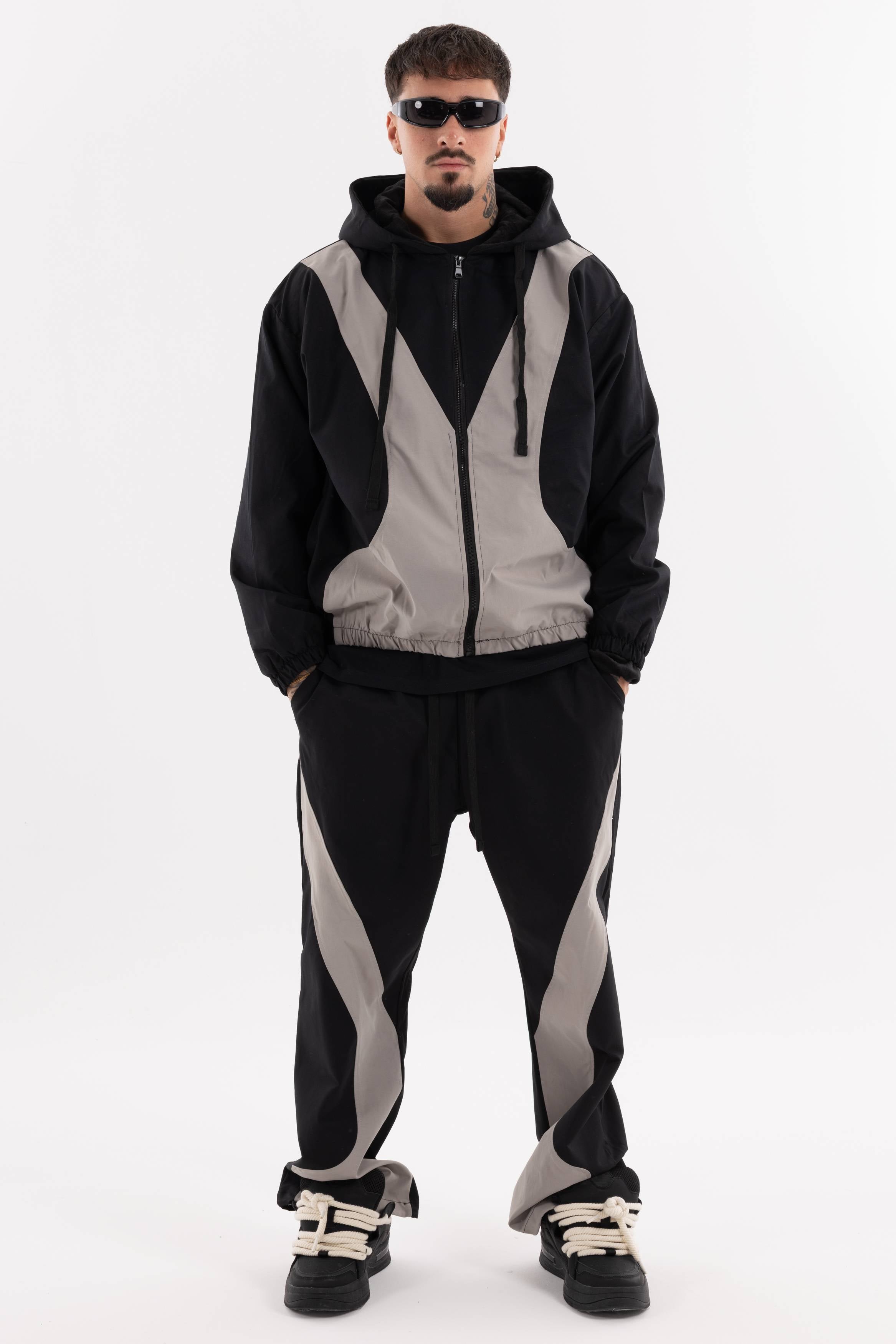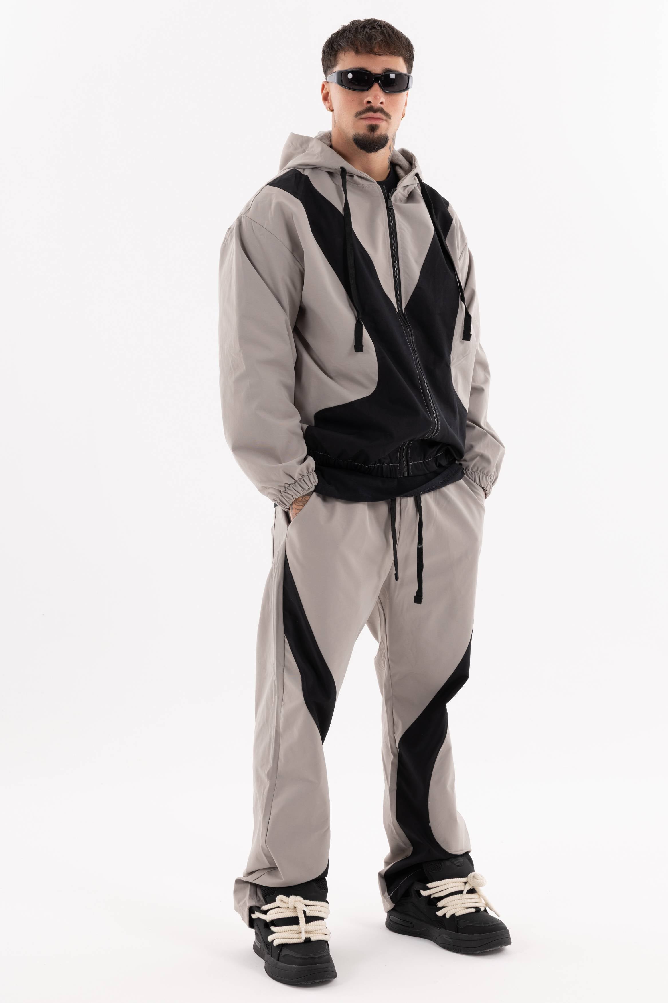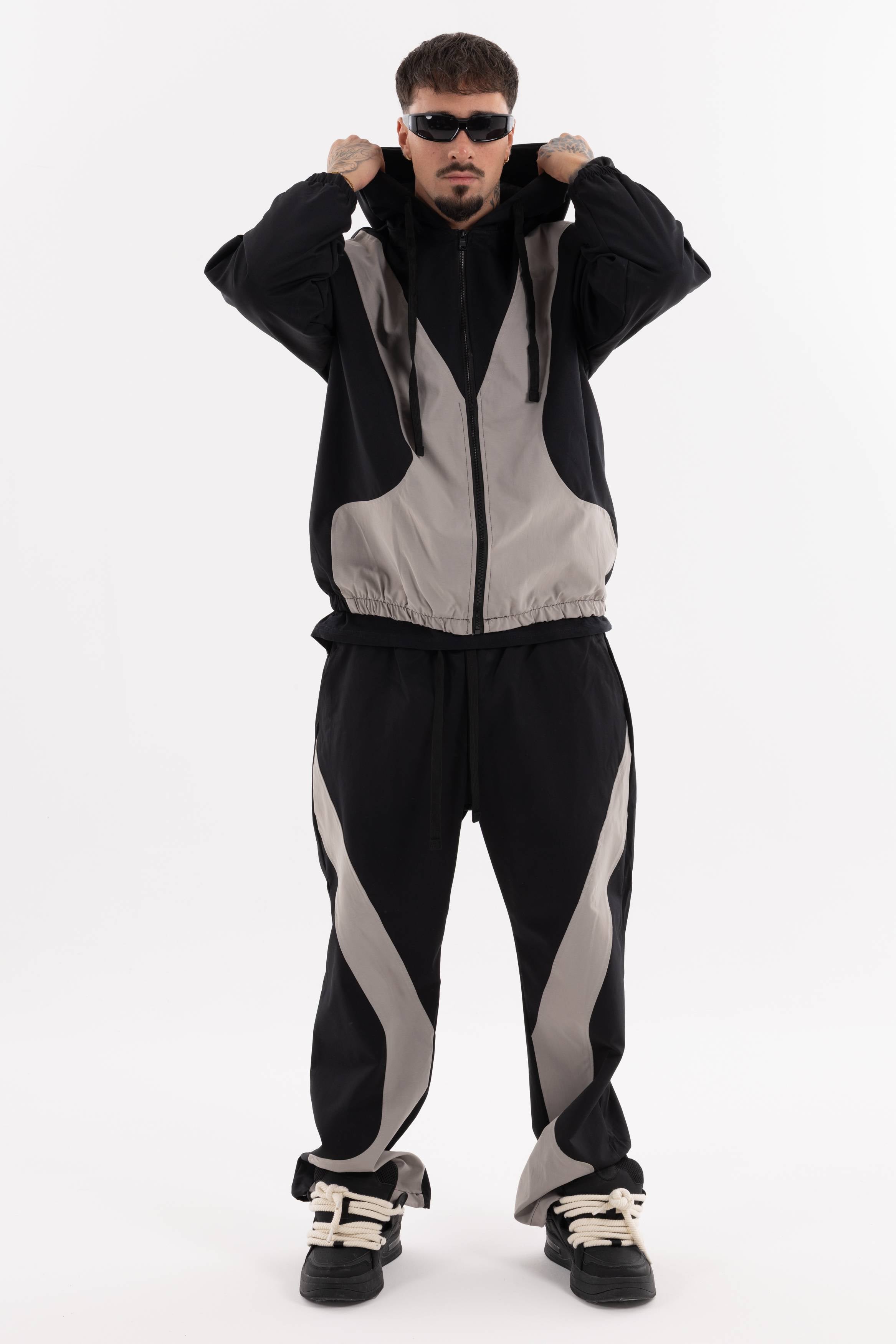 Completo tuta color block con felpa con zip e cappuccio abbinata a joggers con coulisse. Un insiemedallo stile sportivo e moderno ideale per un look dinamico e di tendenza.