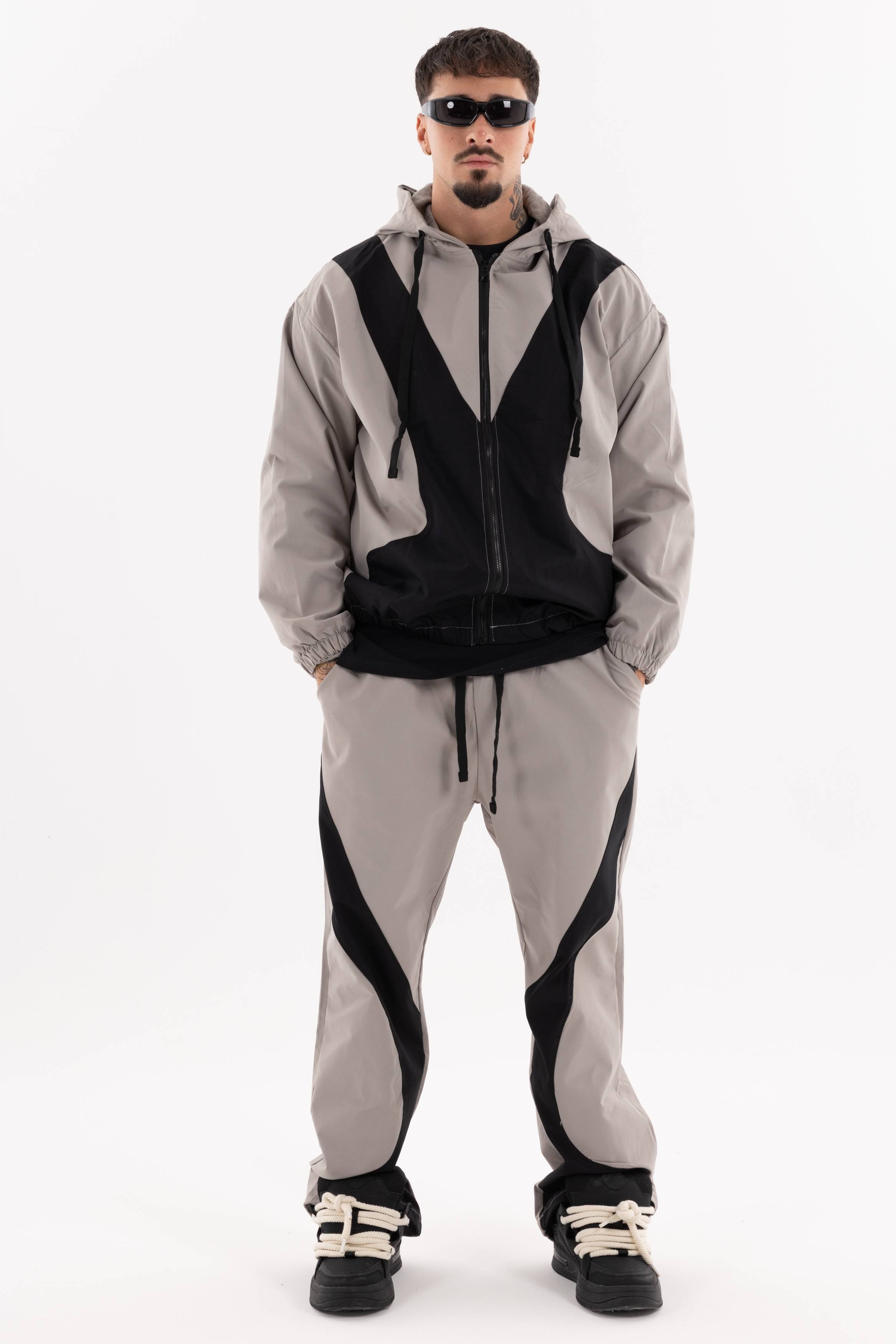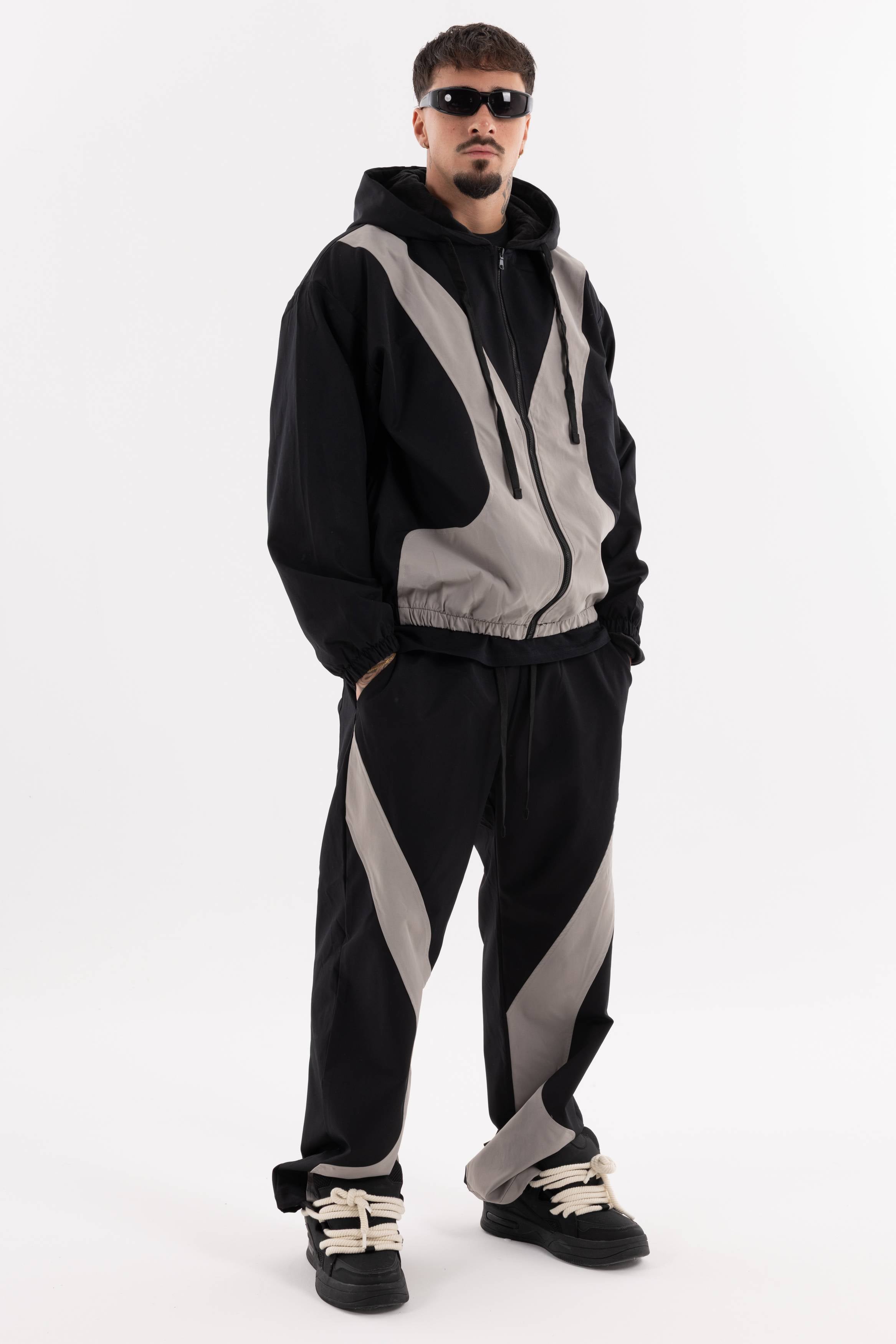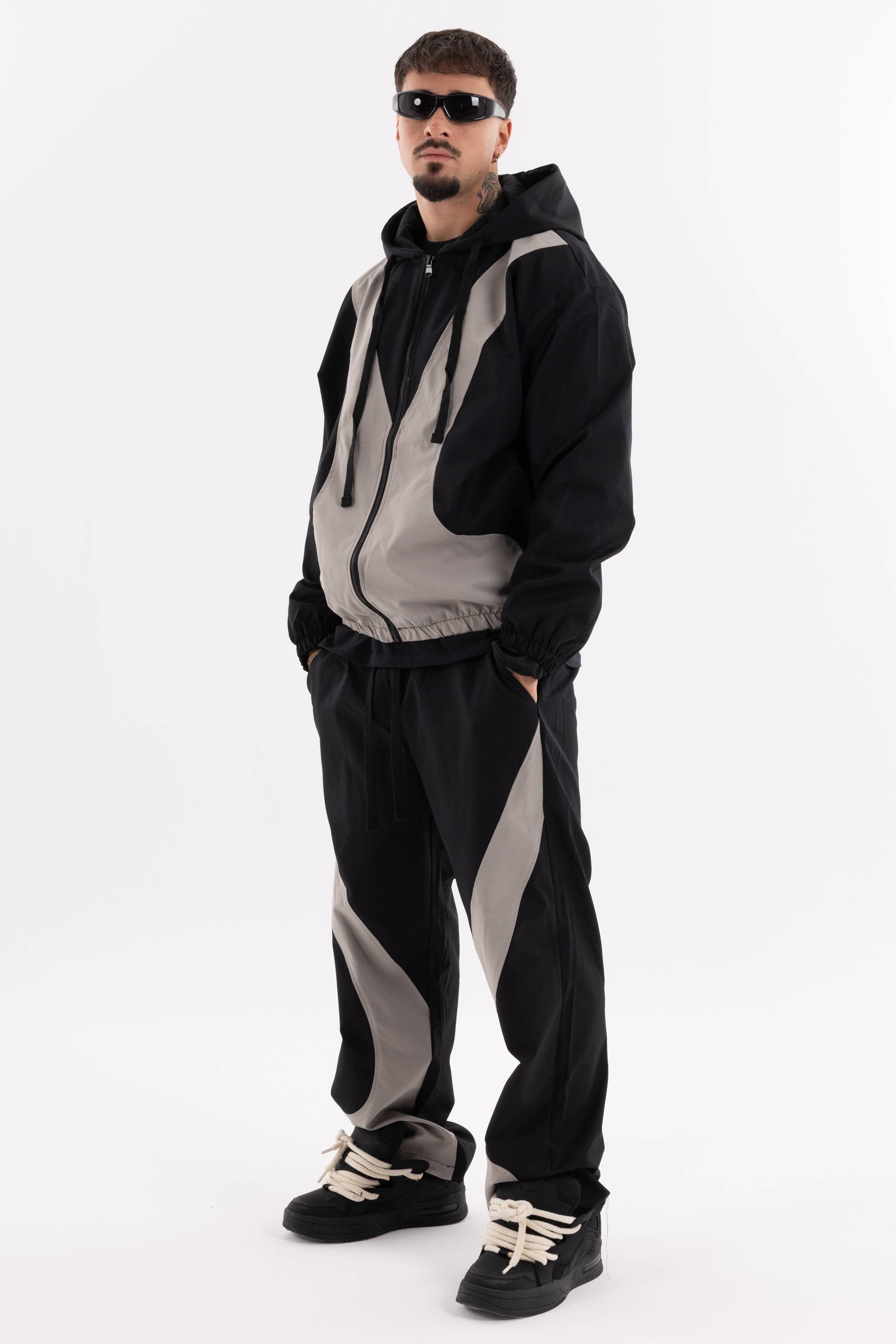 Completo tuta color block con felpa con zip e cappuccio abbinata a joggers con coulisse. Un insiemedallo stile sportivo e moderno ideale per un look dinamico e di tendenza.